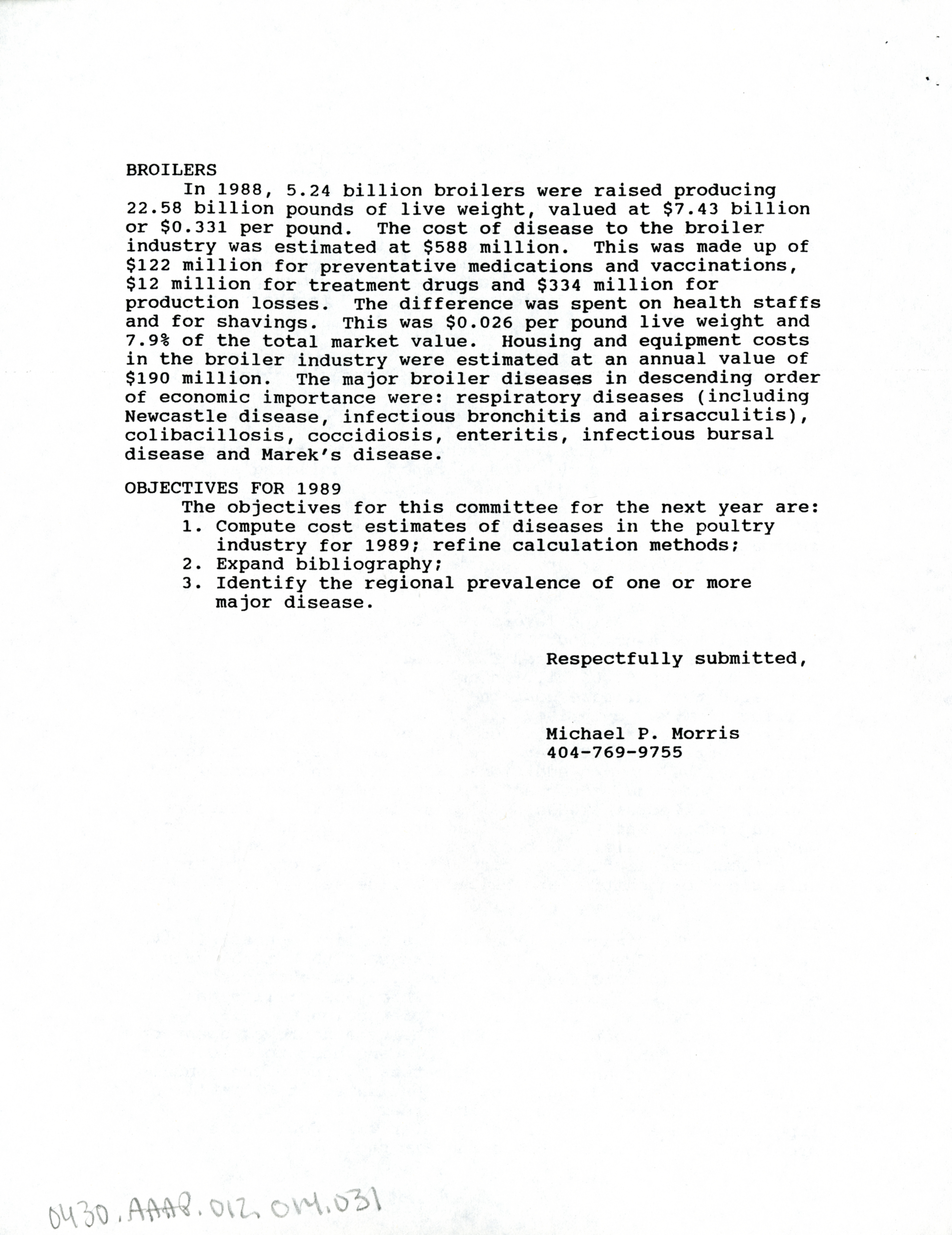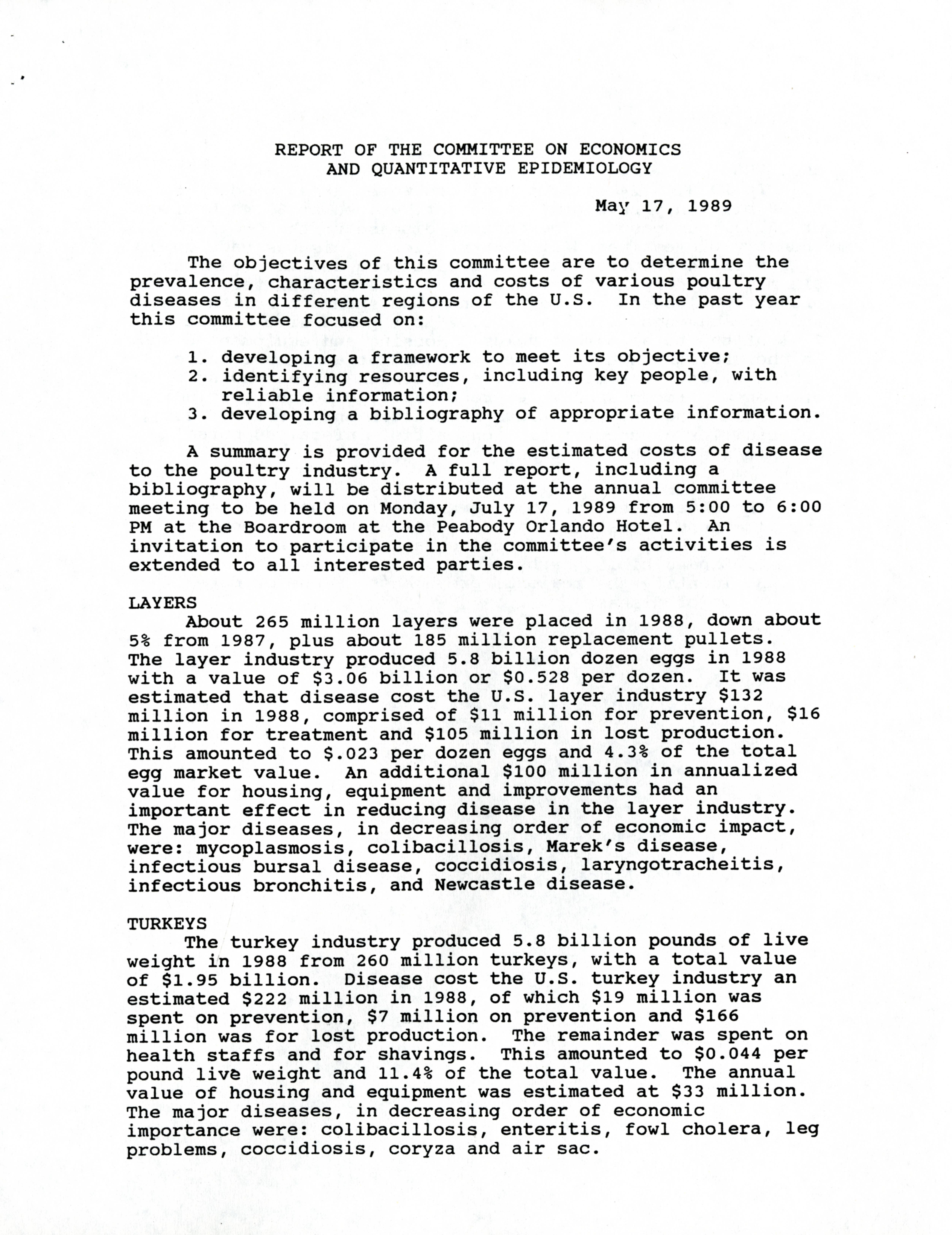 - "AAAP report of the committee on economics and quantitative epidemiology, May 17, 1989", American Association of Avian Pathologists Collection, Iowa State University Library Digital Collections