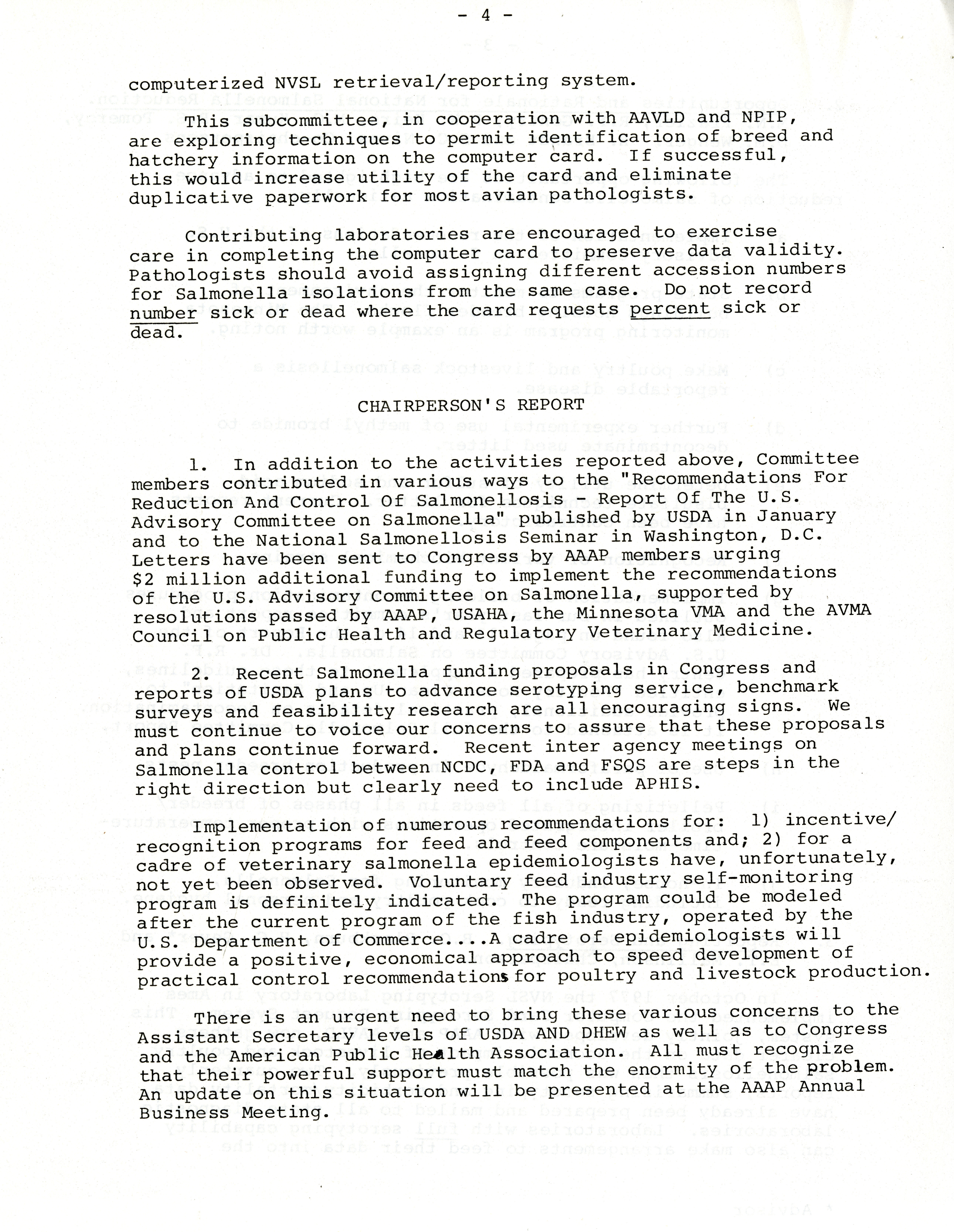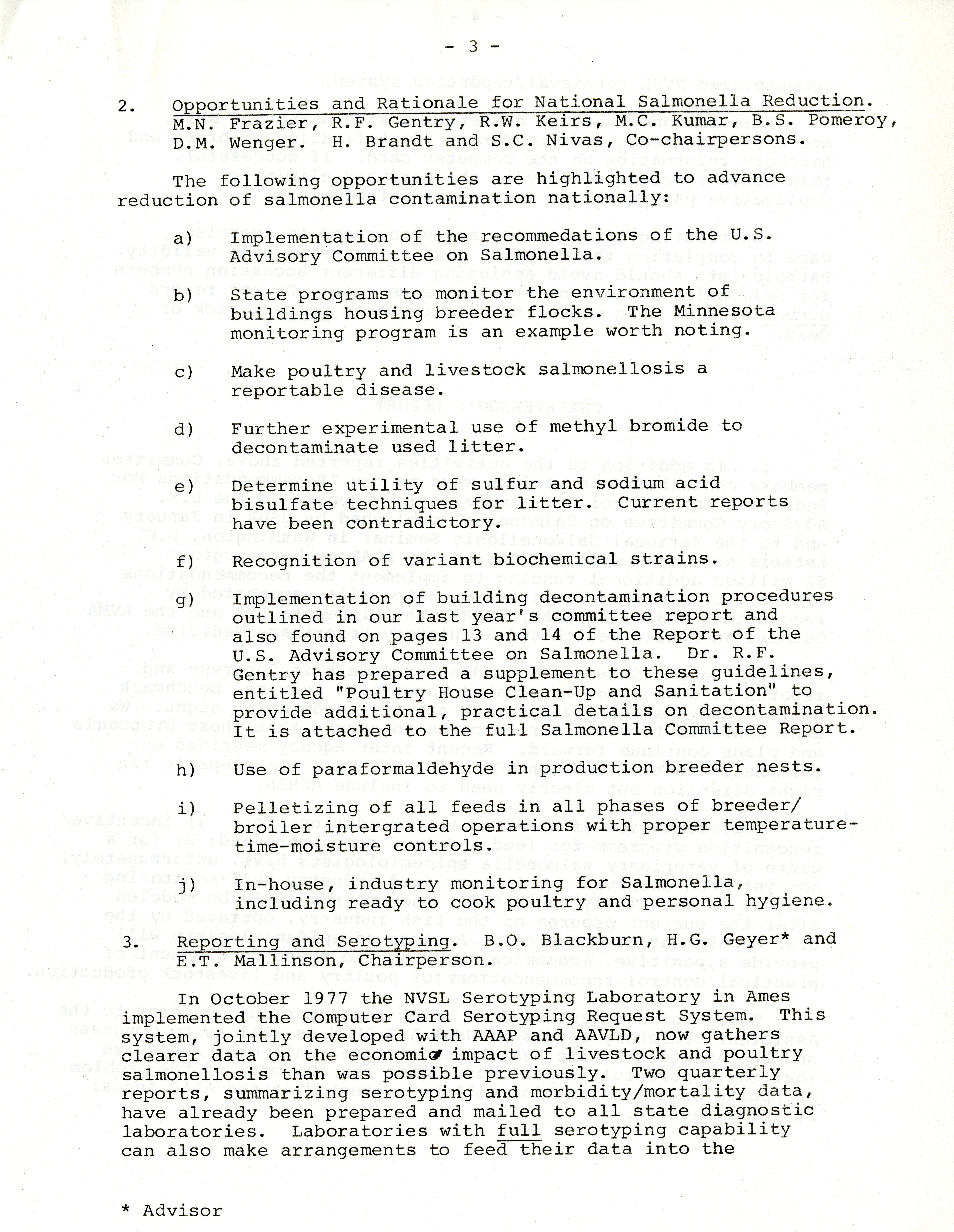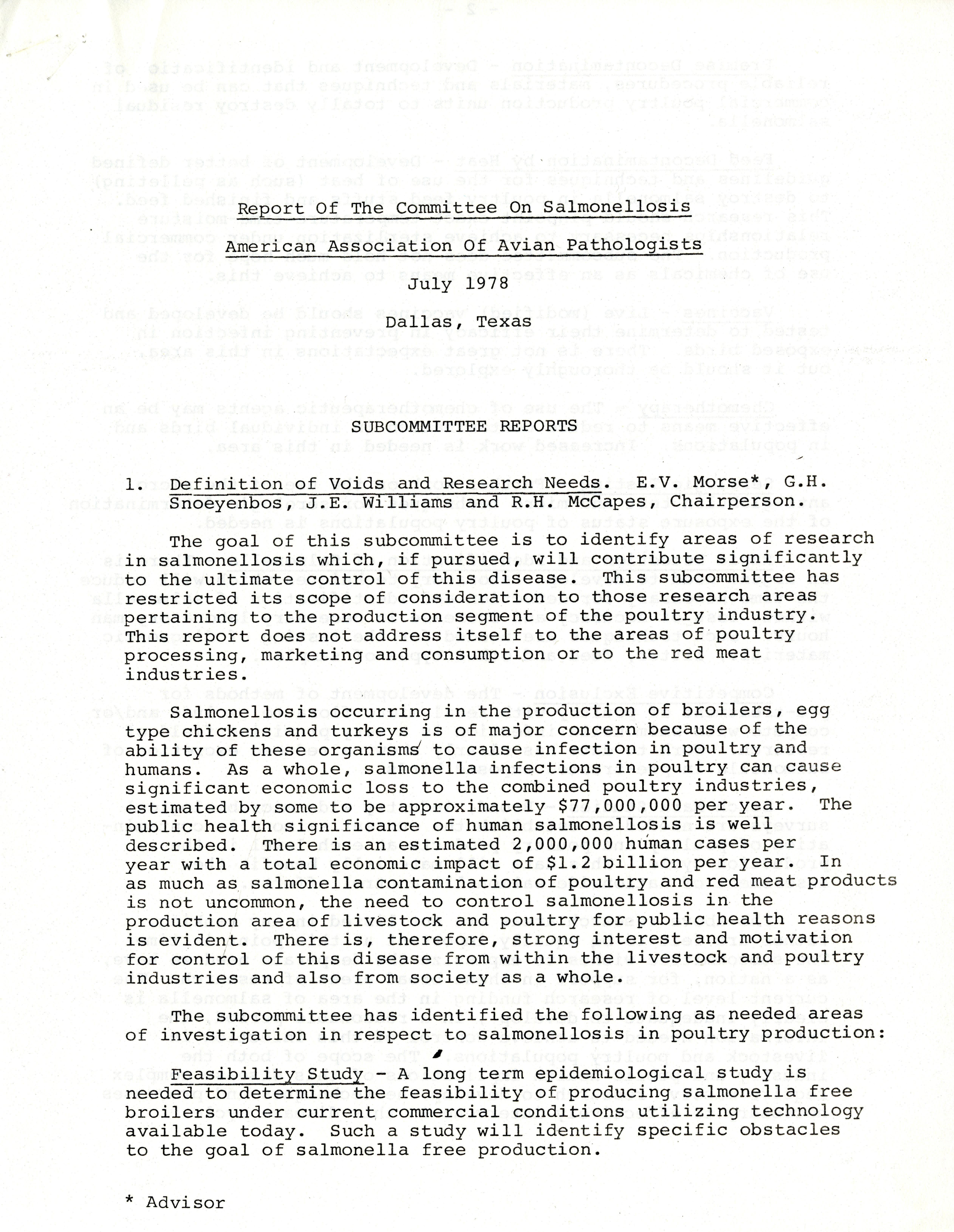 - "AAAP salmonellosis committee report, July 1978", American Association of Avian Pathologists Collection, Iowa State University Library Digital Collections