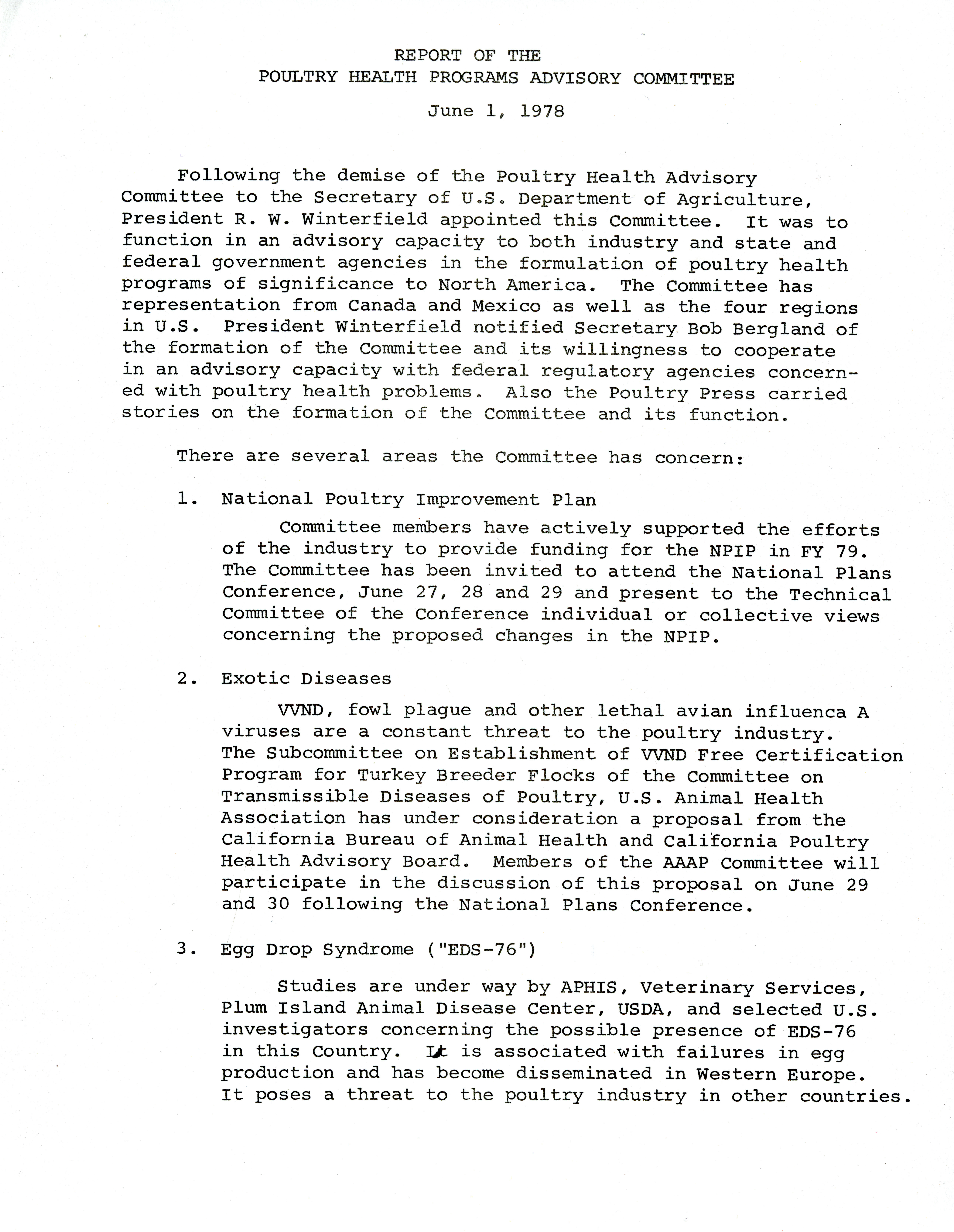 AAAP poultry health programs advisory committee report, June 1, 1978 Item Info