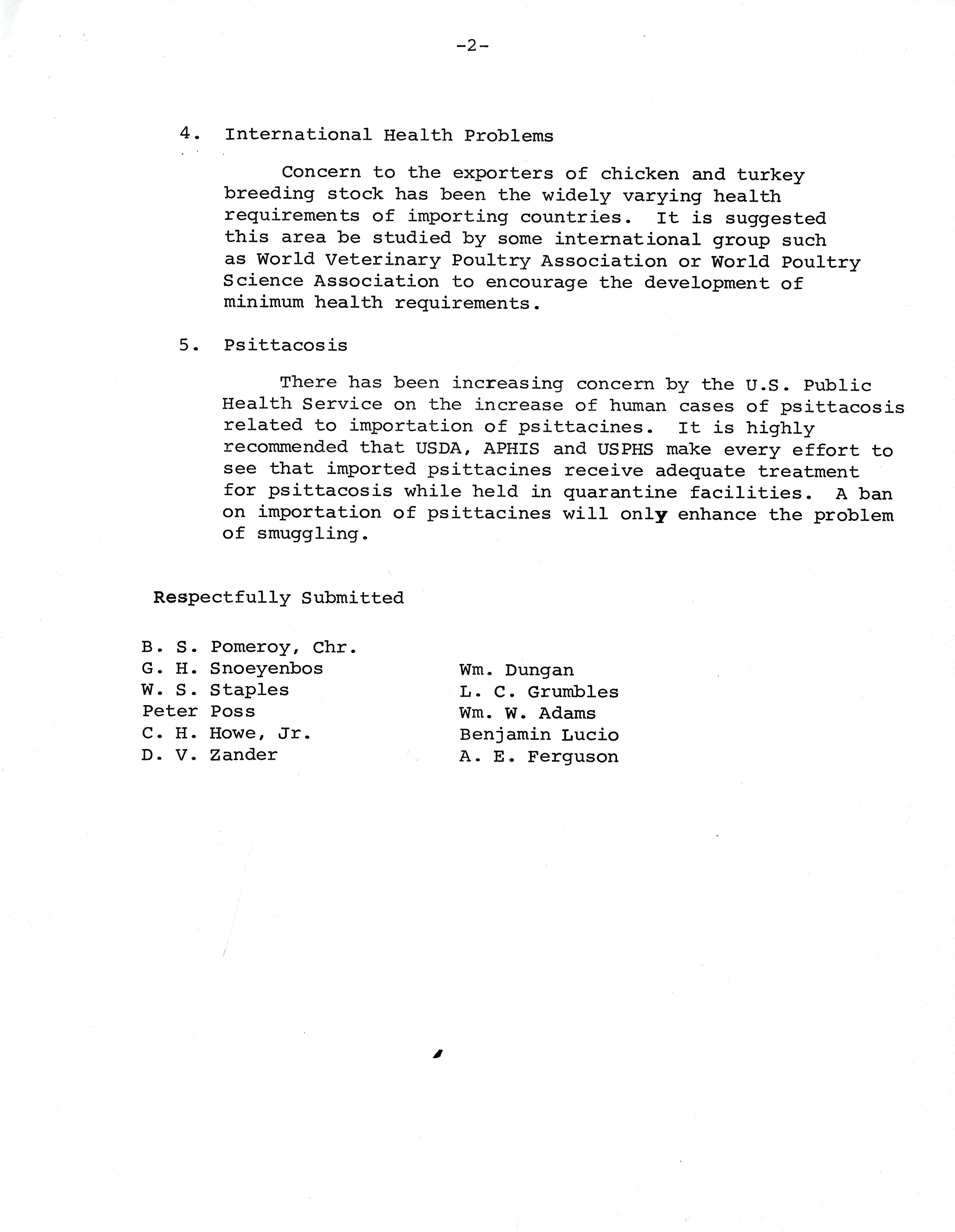 - "AAAP poultry health programs advisory committee report, June 1, 1978", American Association of Avian Pathologists Collection, Iowa State University Library Digital Collections