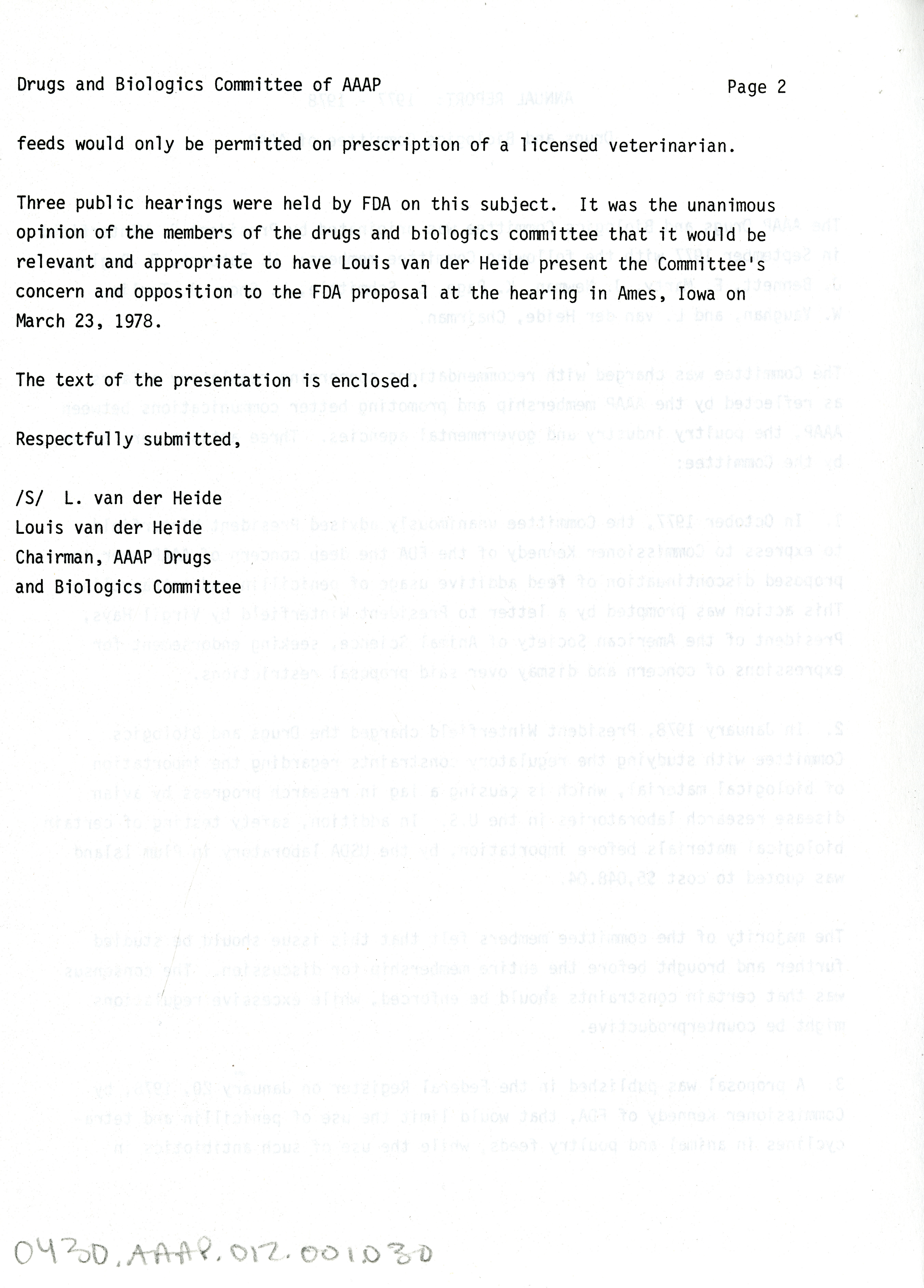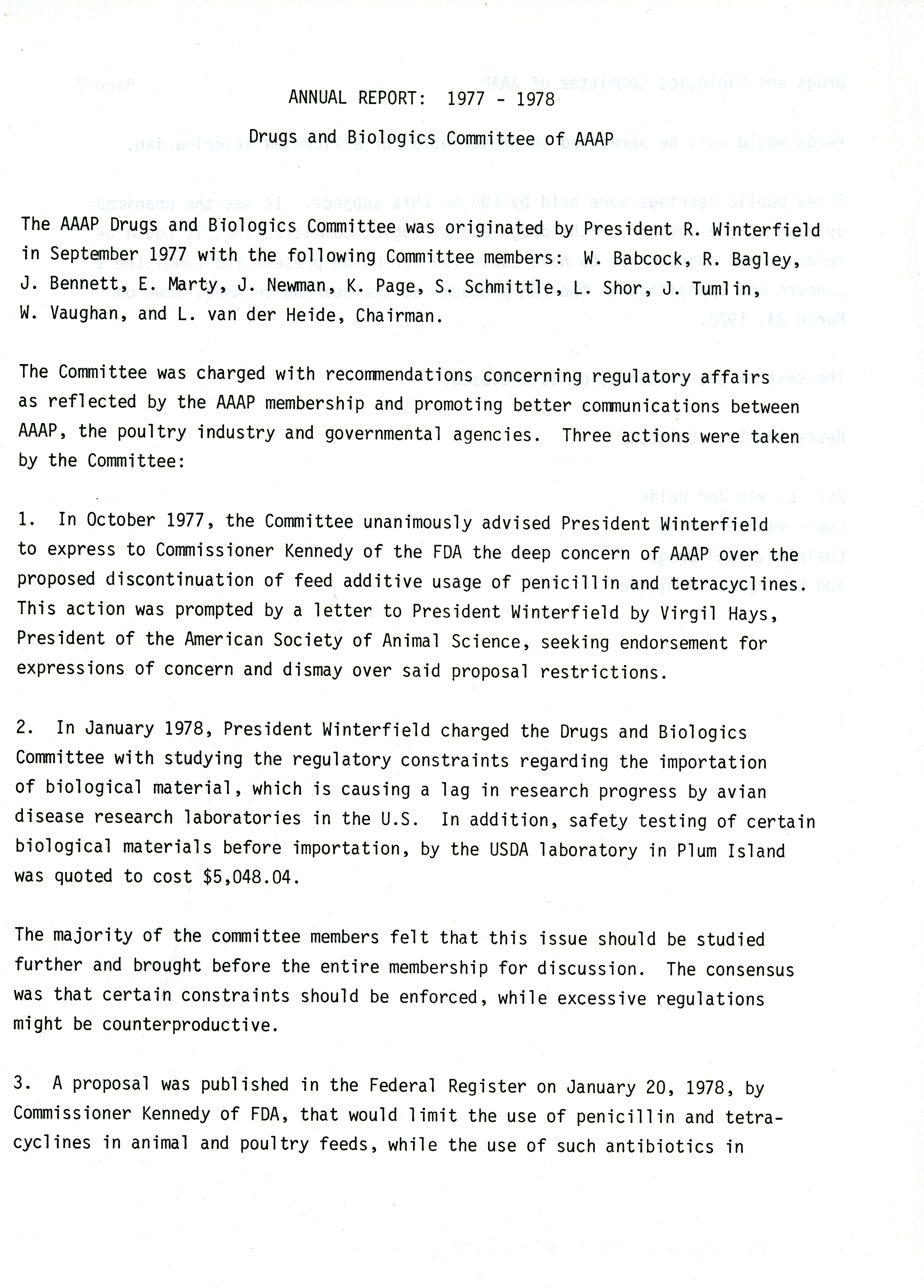 - "AAAP drugs and biologics committee annual report, 1977-1978", American Association of Avian Pathologists Collection, Iowa State University Library Digital Collections
