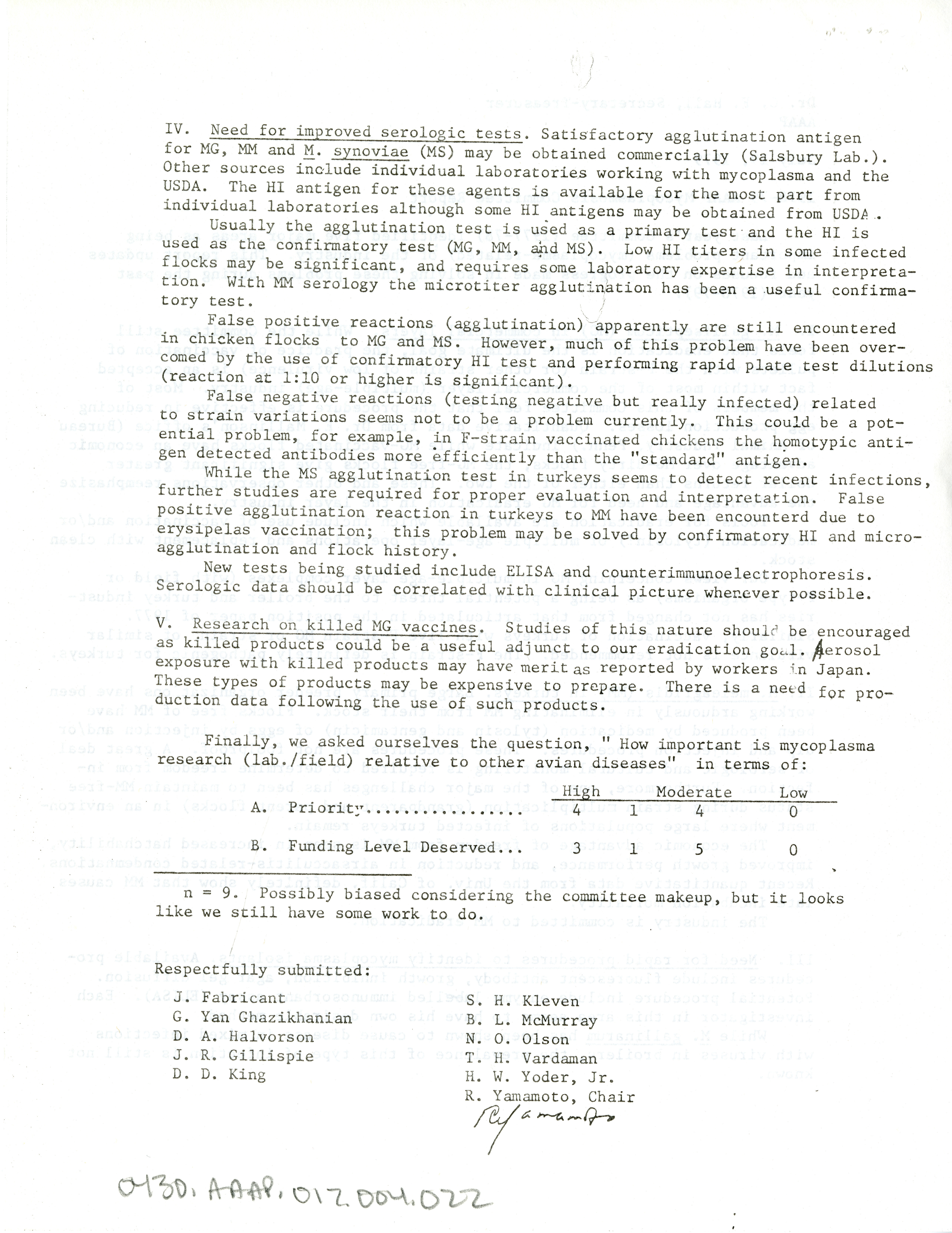 - AAAP mycoplasmosis committee report, July 19, 1979