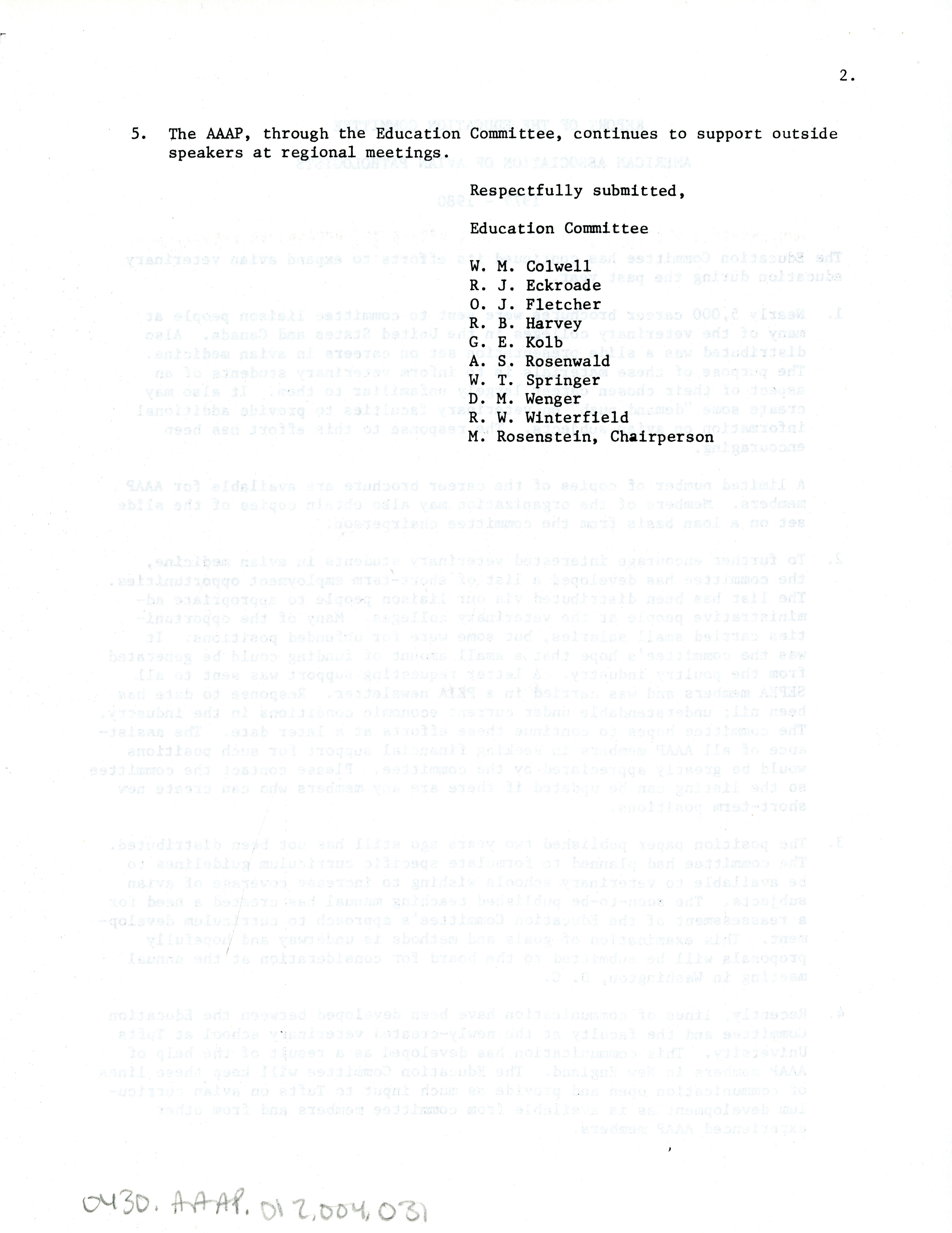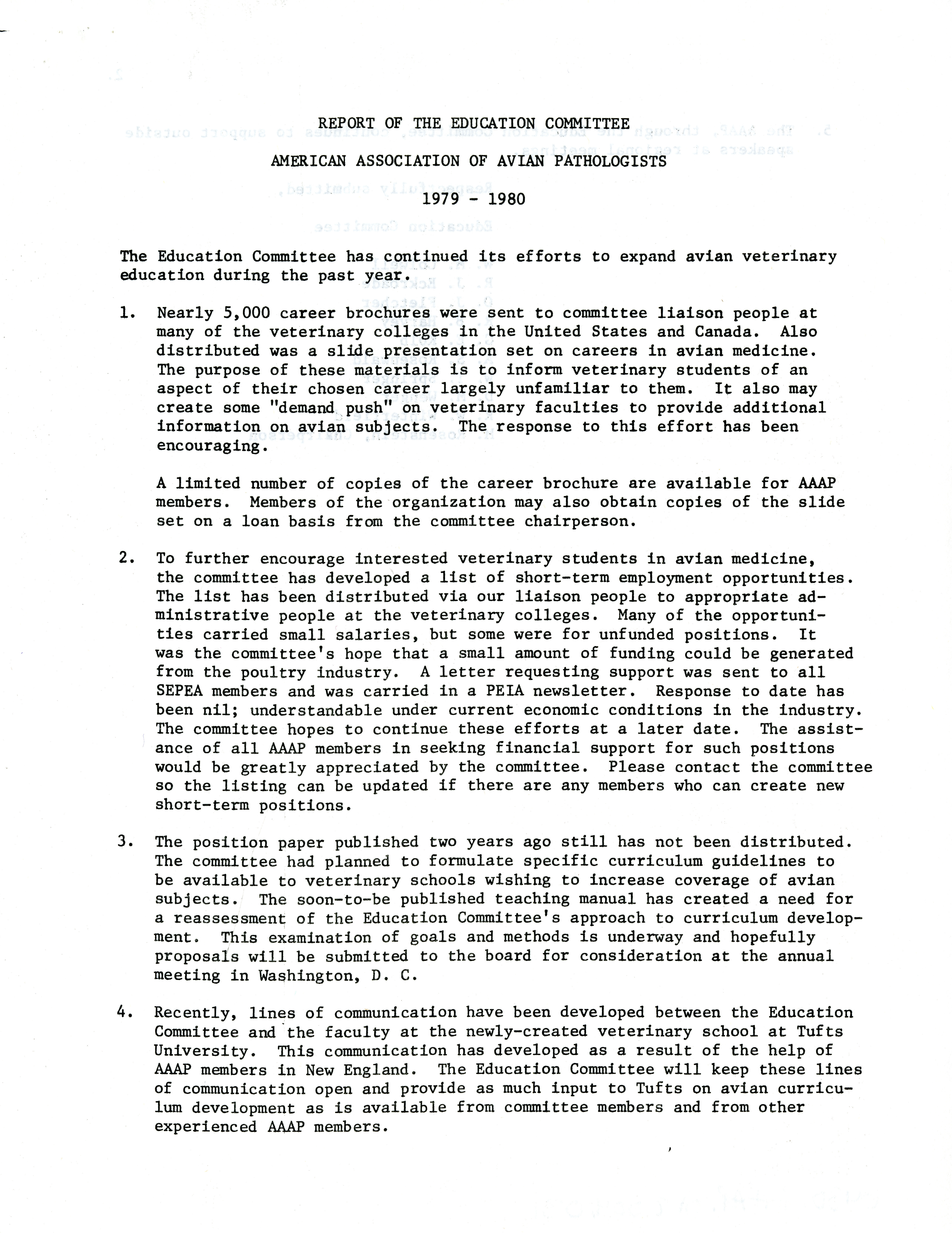 - "AAAP report of the education committee, 1979-1980", American Association of Avian Pathologists Collection, Iowa State University Library Digital Collections