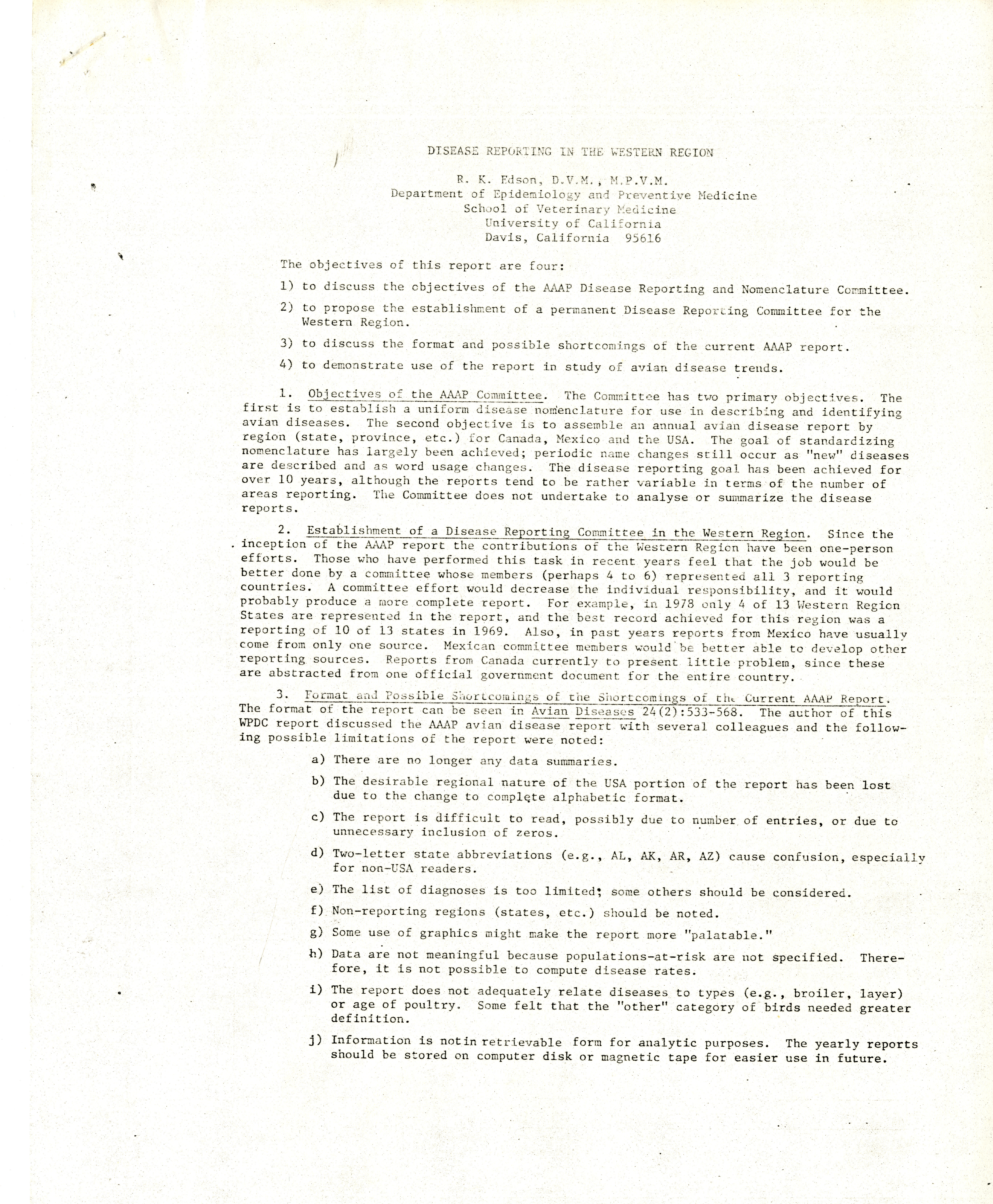 - "AAAP disease reporting in the western region", American Association of Avian Pathologists Collection, Iowa State University Library Digital Collections