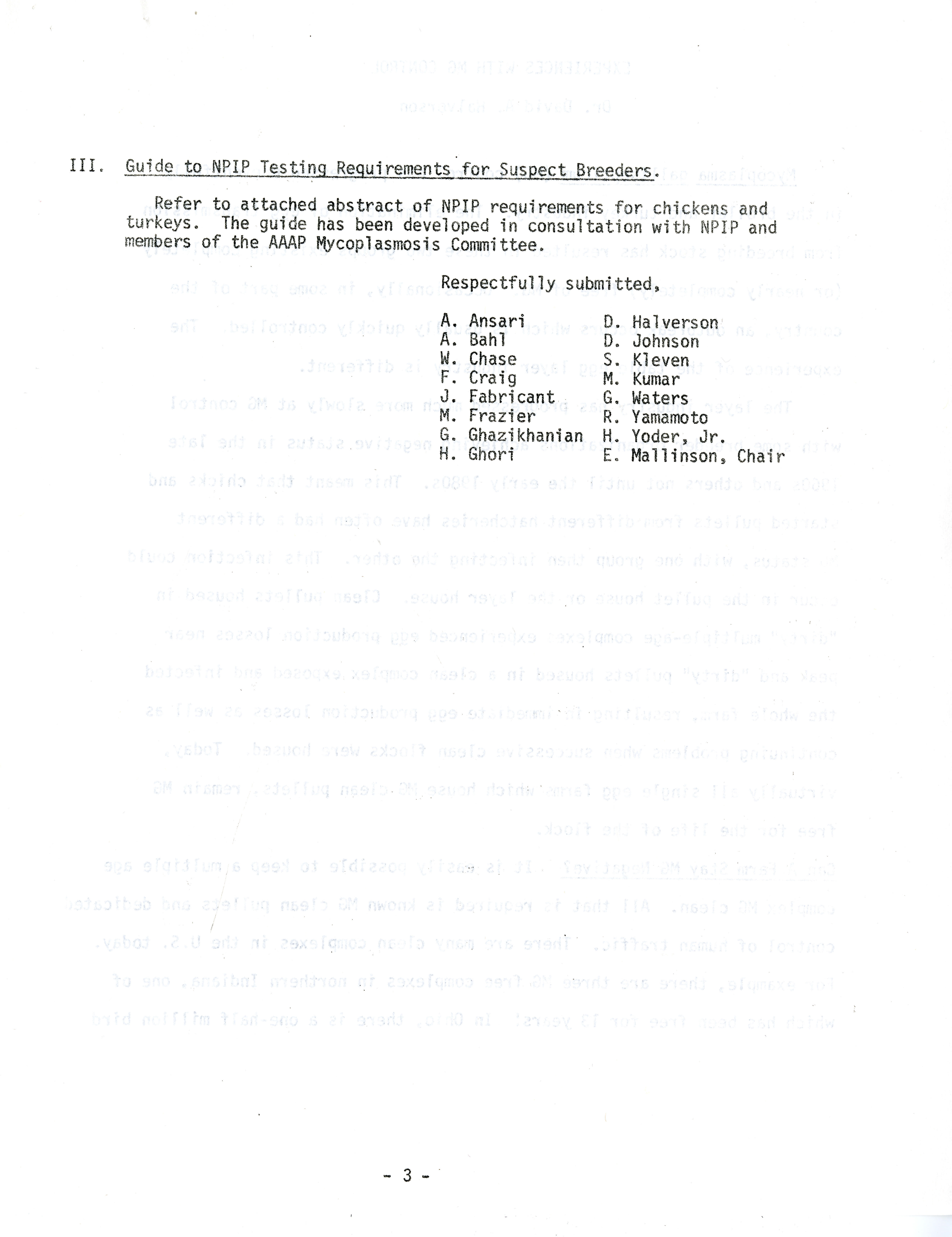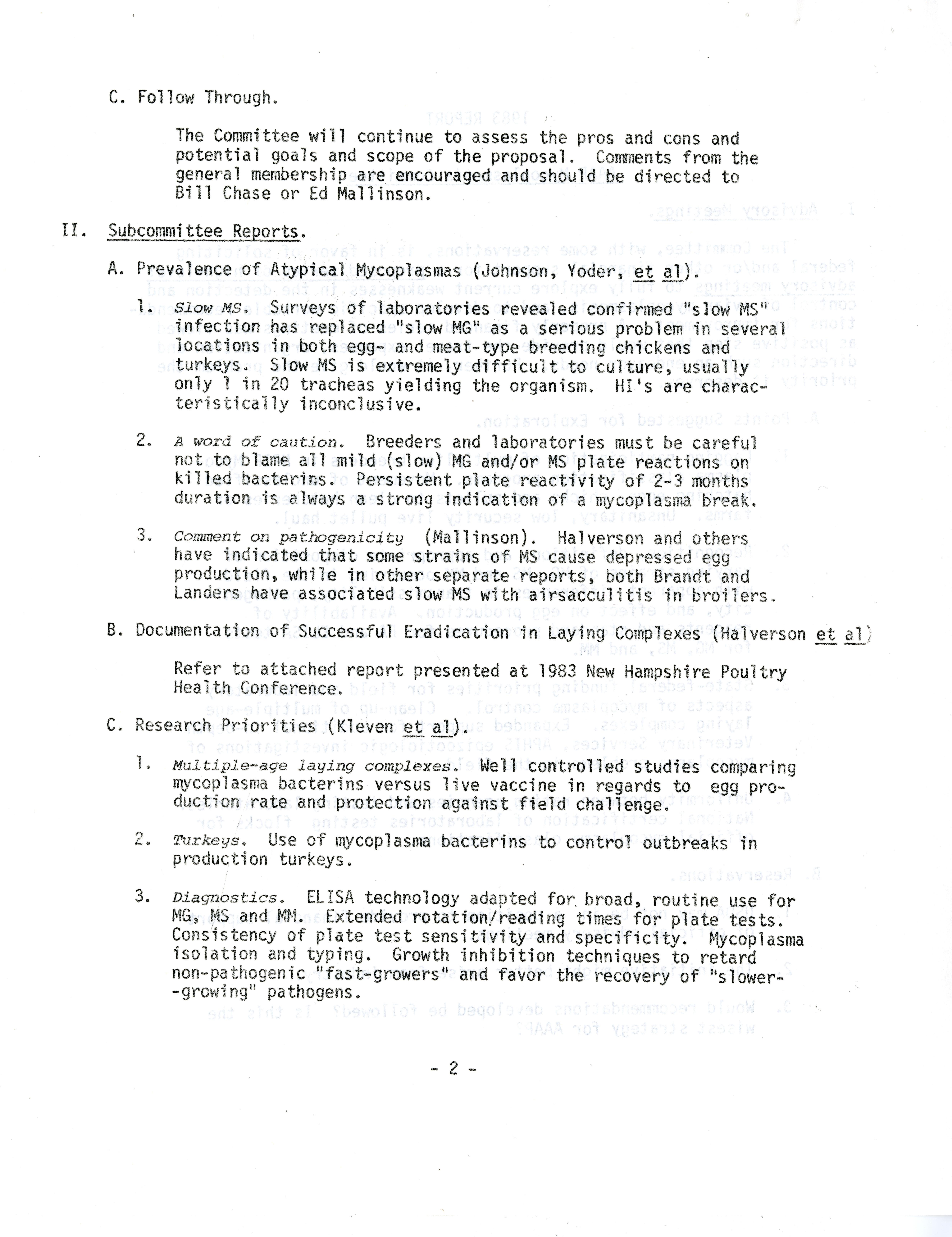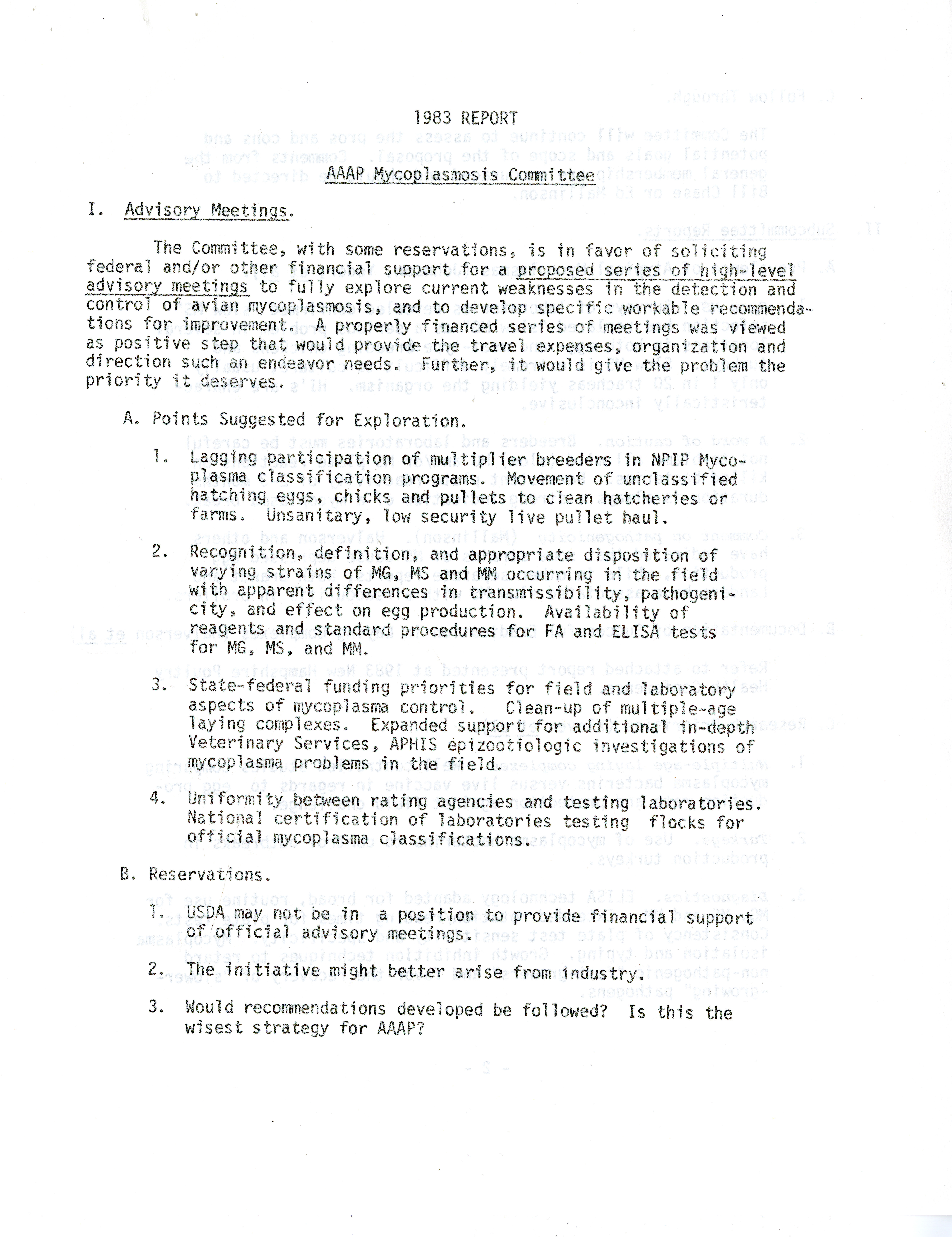 - "AAAP mycoplasmosis committee report, 1983", American Association of Avian Pathologists Collection, Iowa State University Library Digital Collections