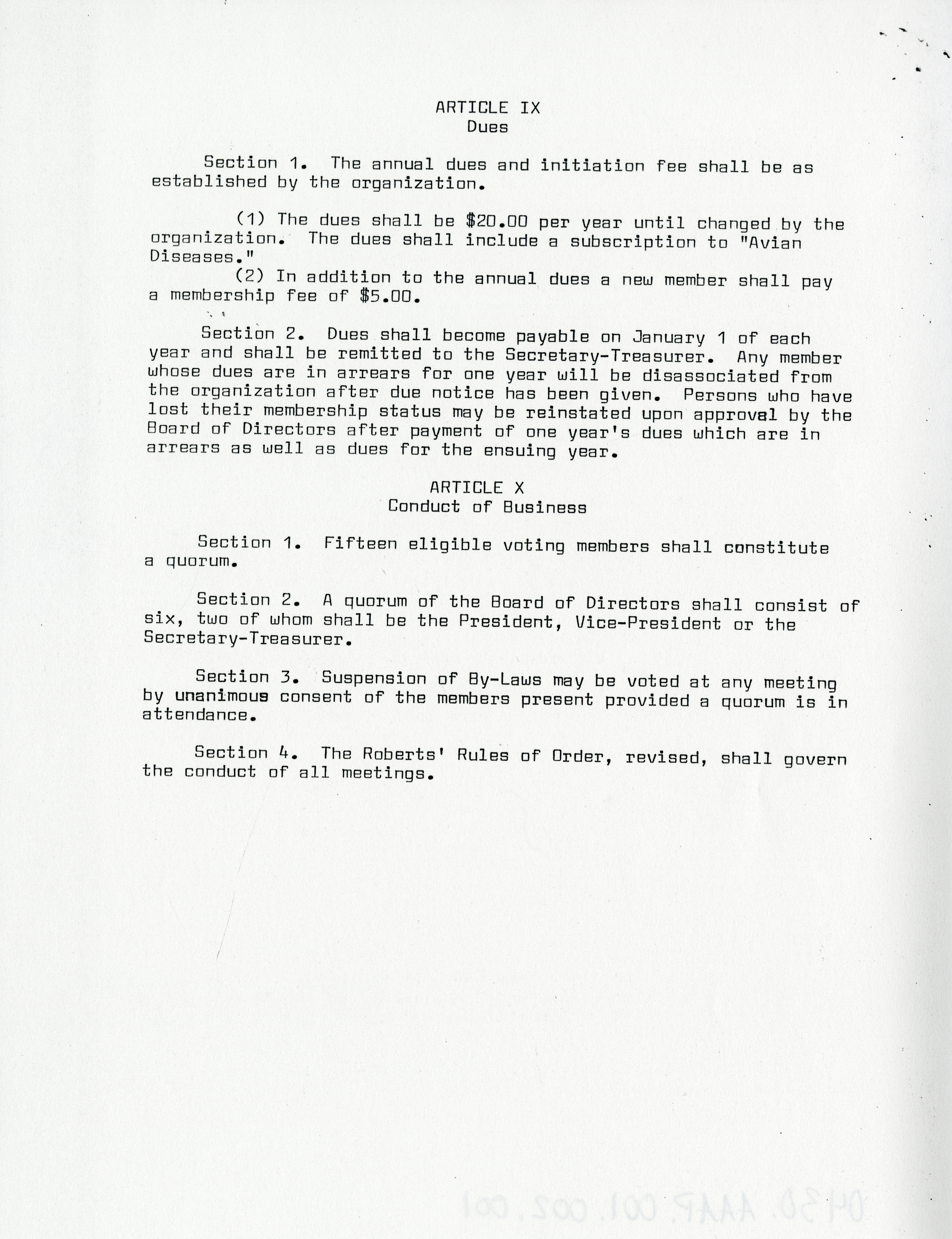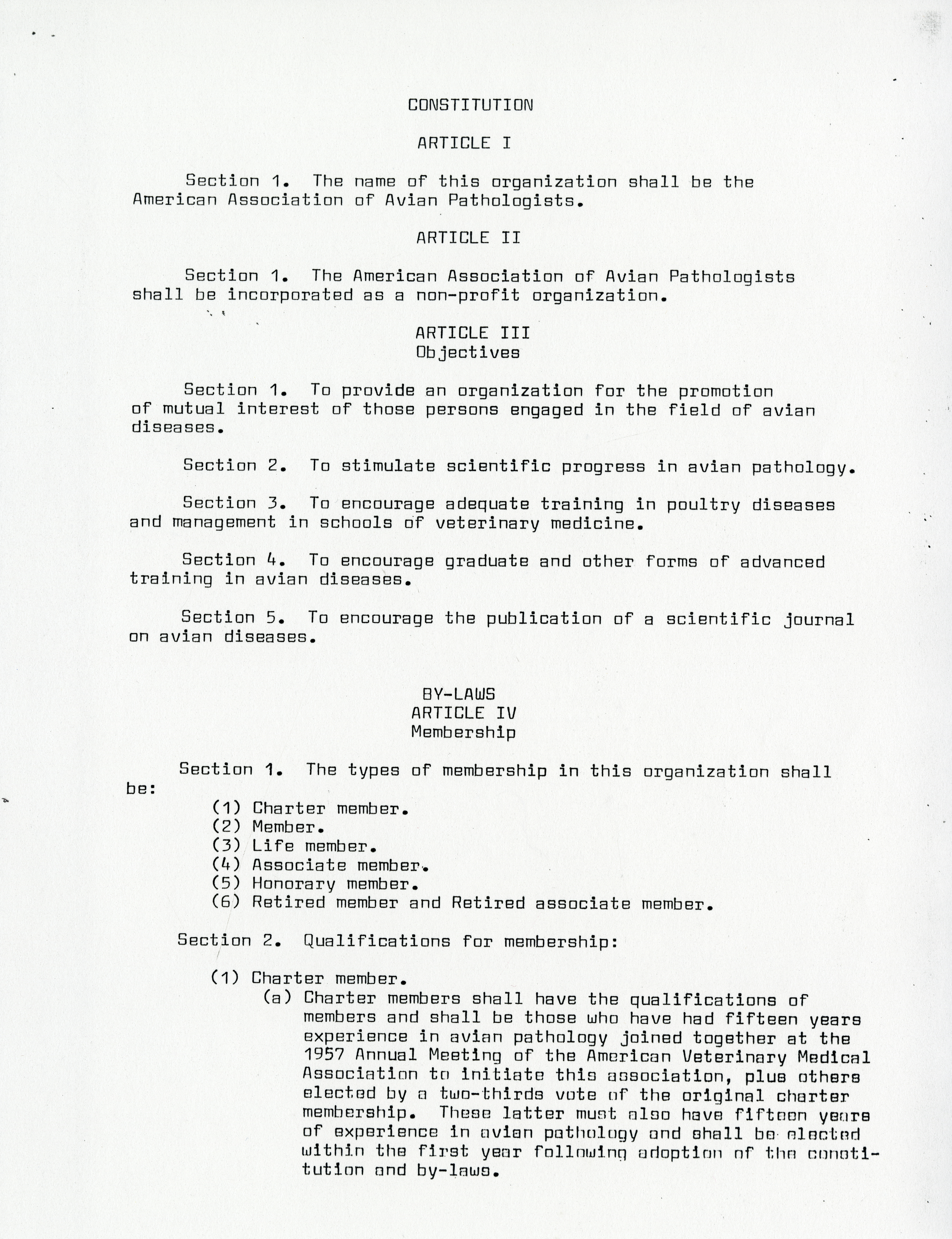 - "AAAP constitution and bylaws, 1976", American Association of Avian Pathologists Collection, Iowa State University Library Digital Collections