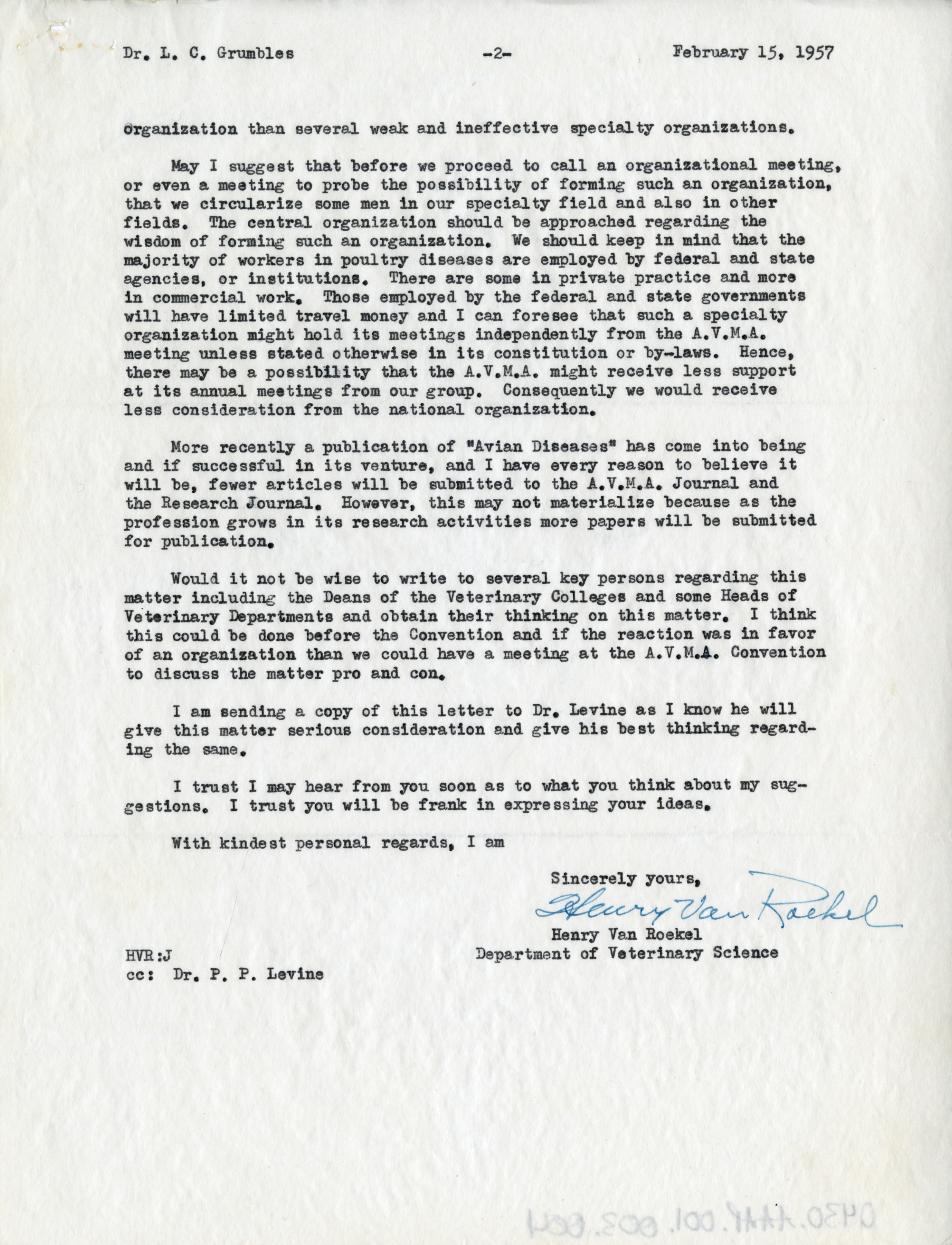 - "Henry Van Roekel letter to L. C. Grumbles, February 15, 1957", American Association of Avian Pathologists Collection, Iowa State University Library Digital Collections