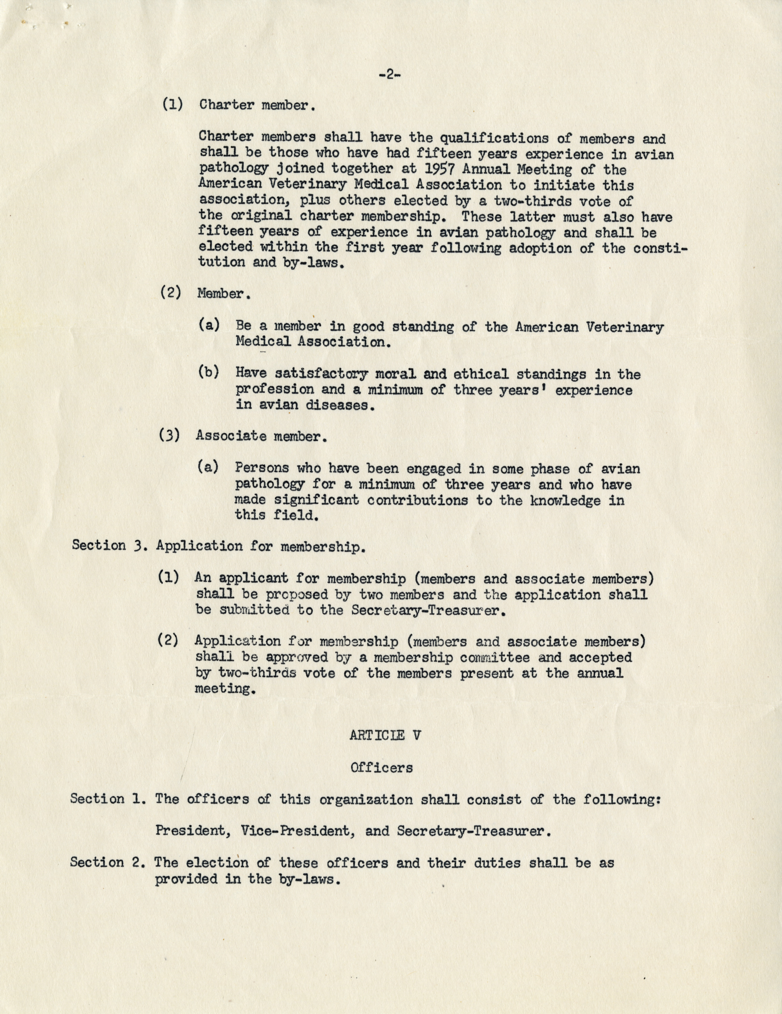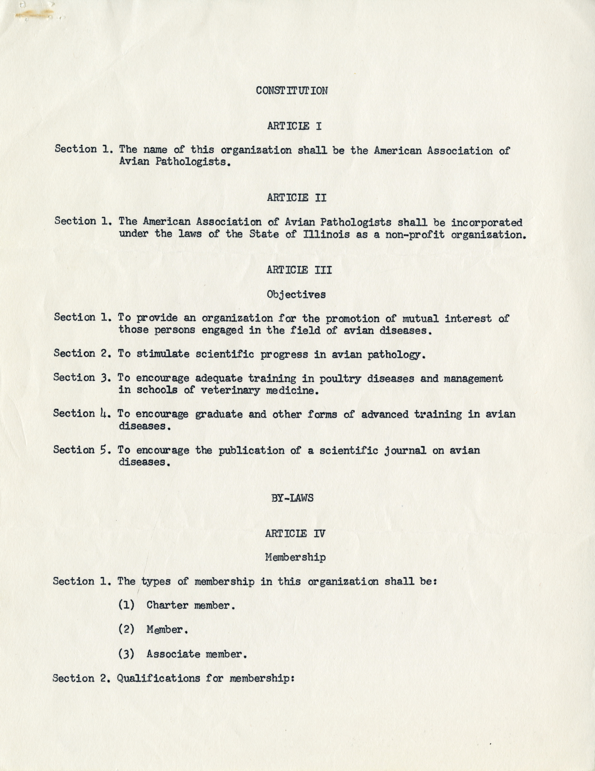 - "AAAP constitution, July 11, 1958", American Association of Avian Pathologists Collection, Iowa State University Library Digital Collections