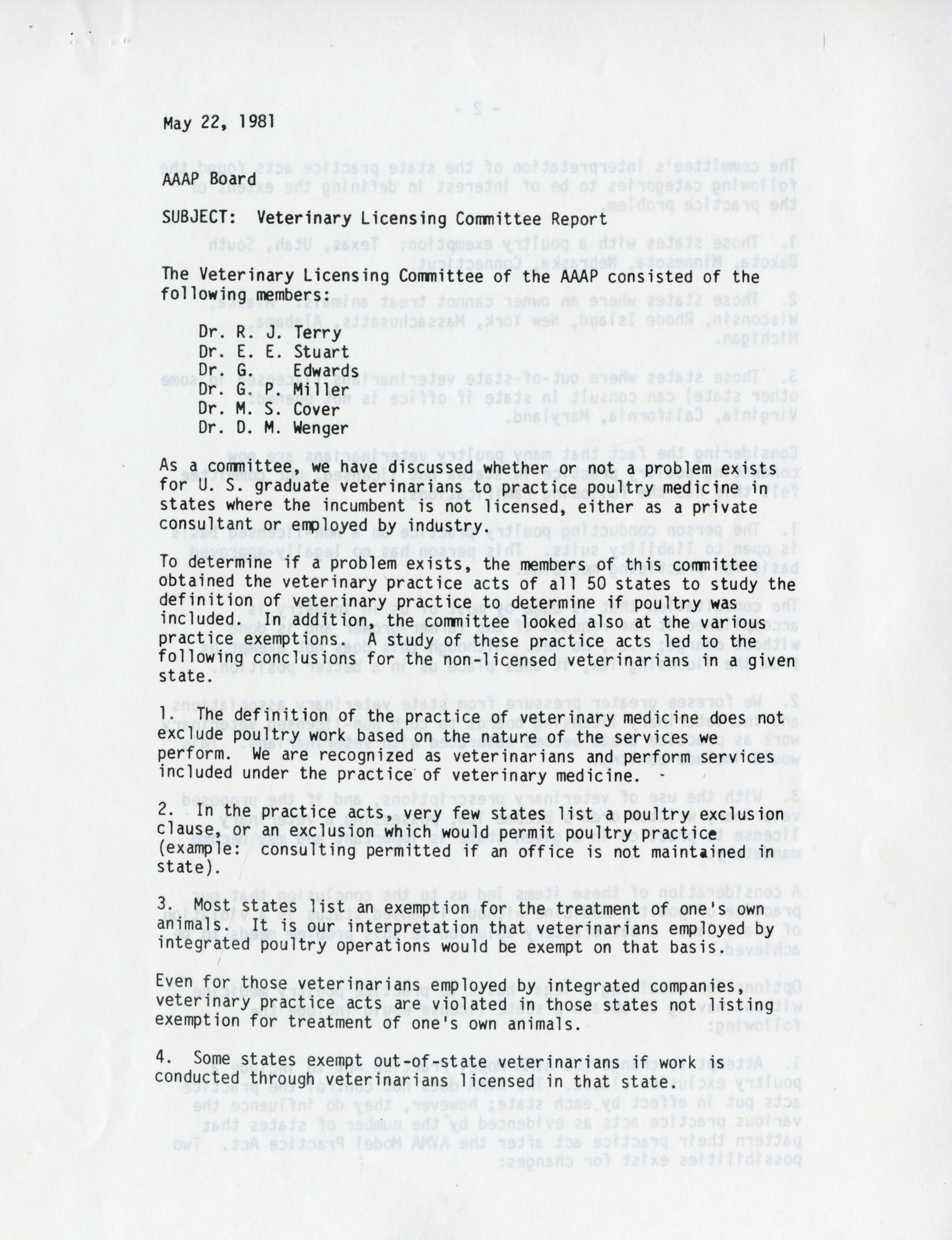 AAAP veterinary licensing committee report, May 22, 1981 Item Info