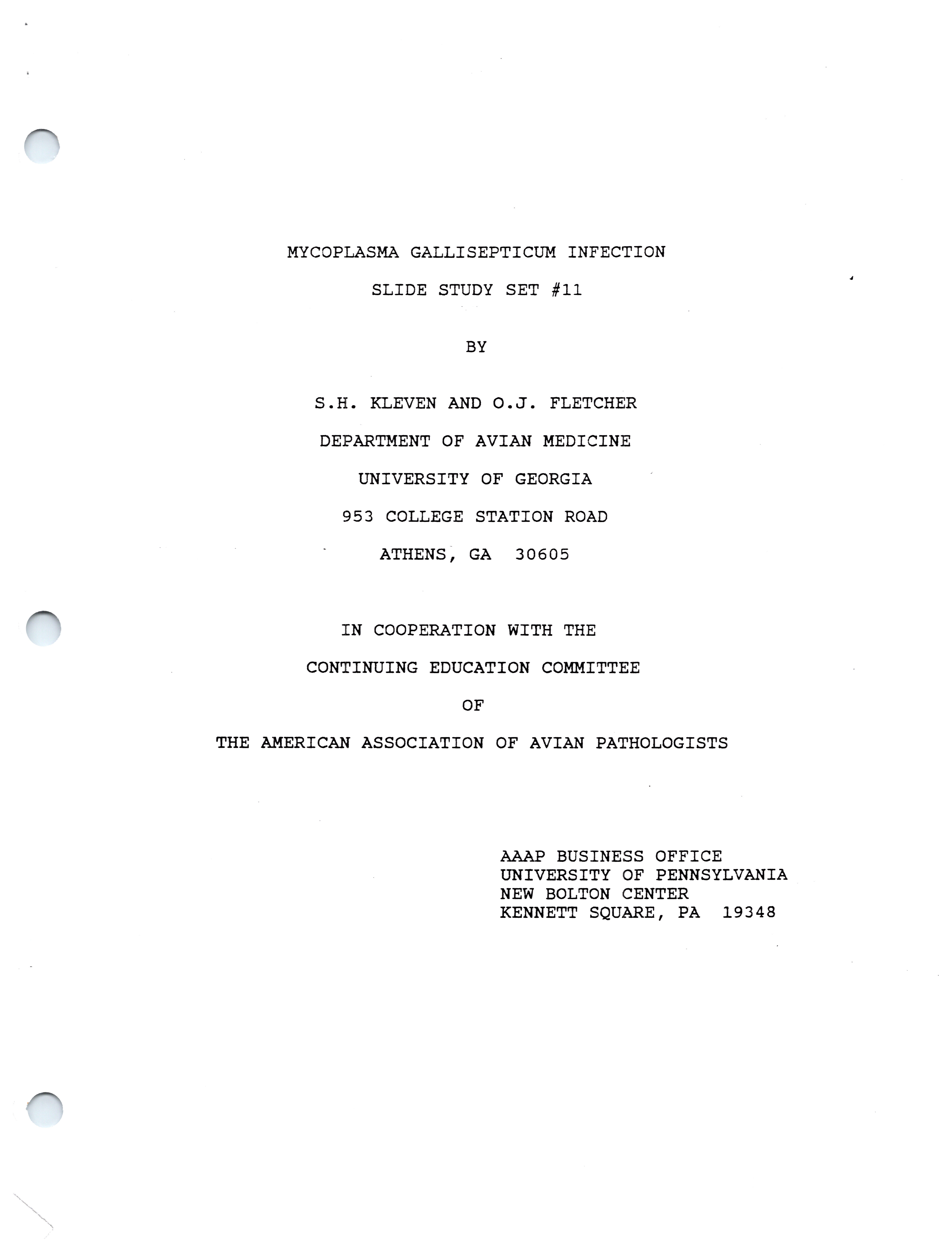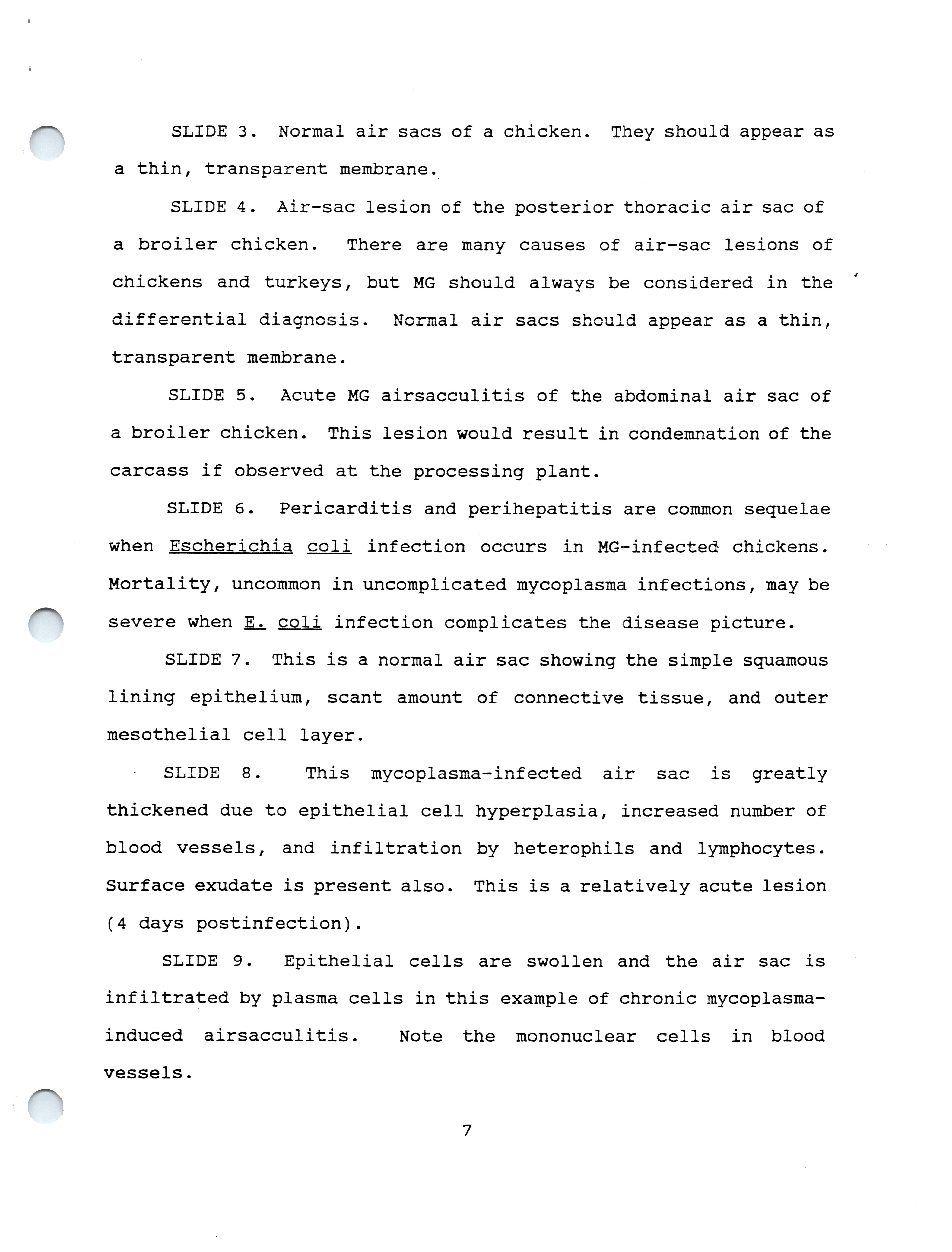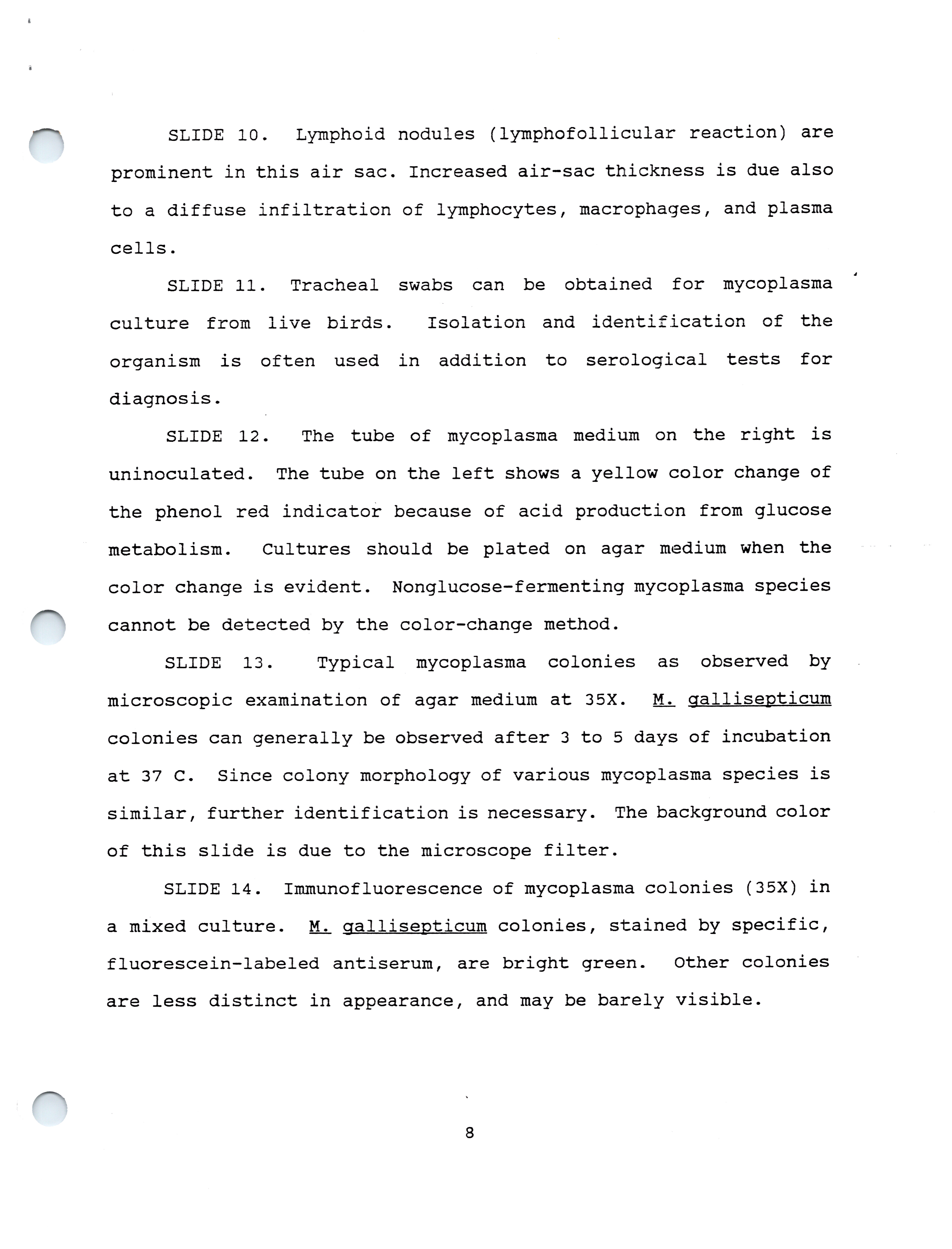 - Slide study set #11, mycoplasma gallisepticum infection, 2 sets (includes 37 color slides), 1983