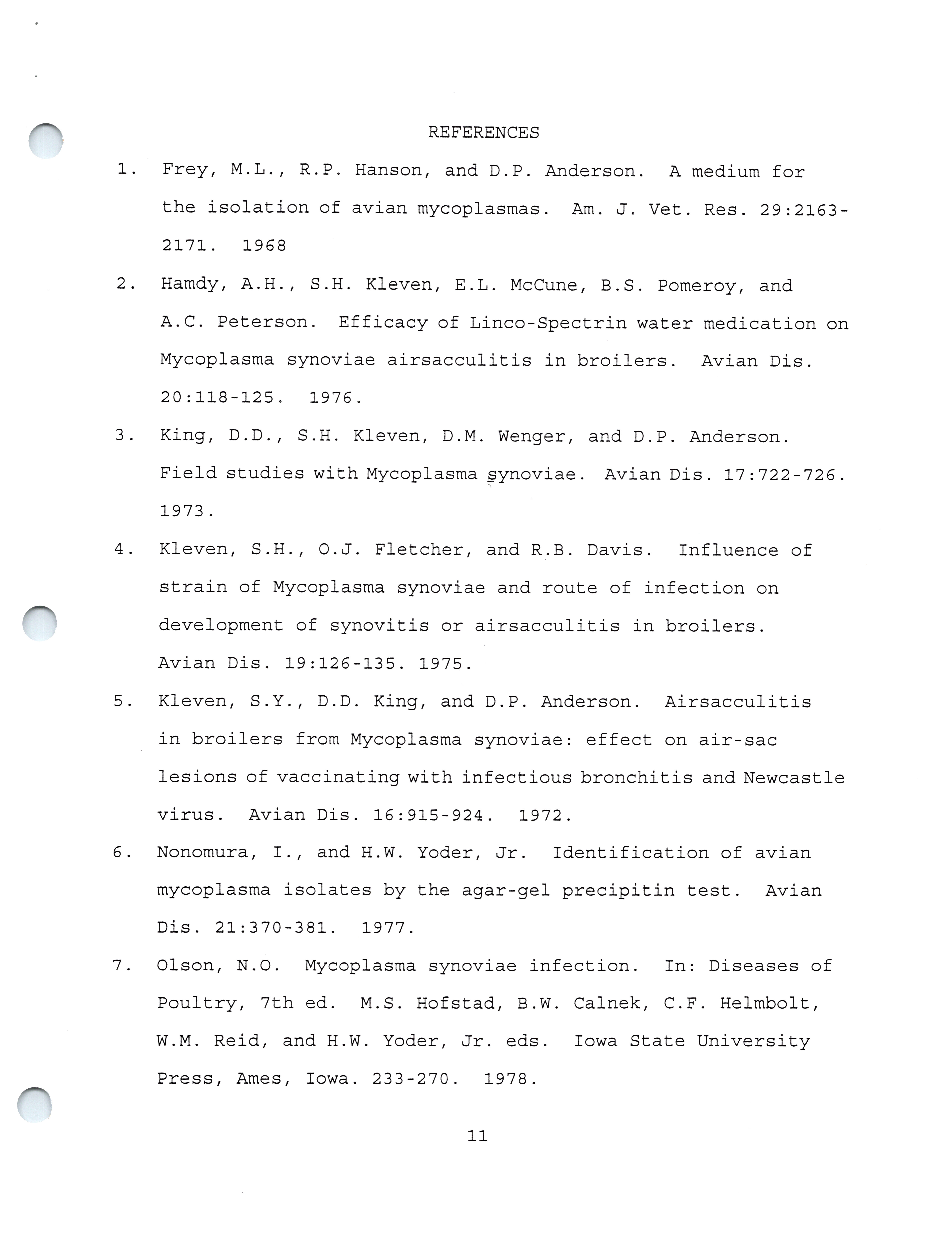 - "Mycoplasma synoviae infection", American Association of Avian Pathologists Collection, Iowa State University Library Digital Collections