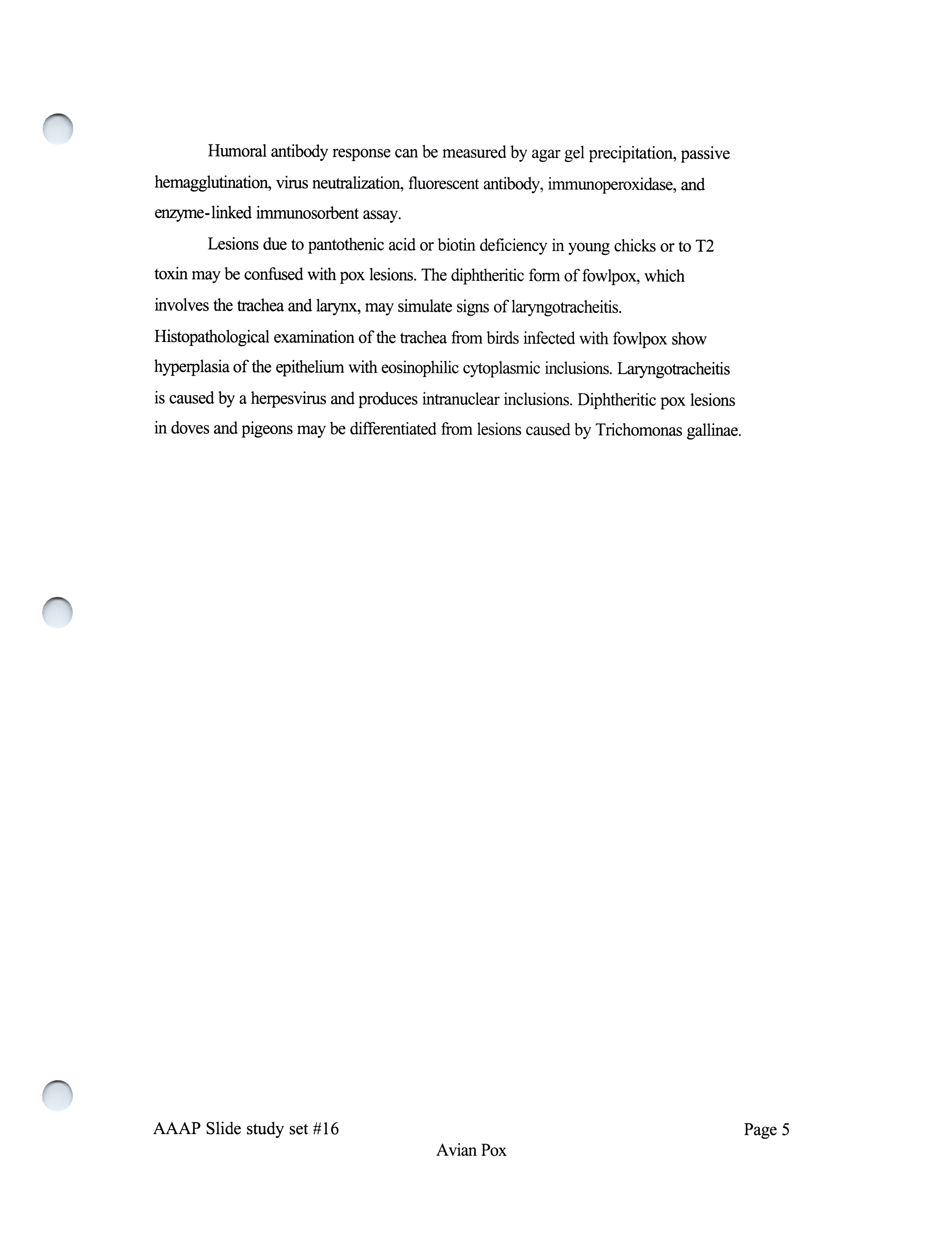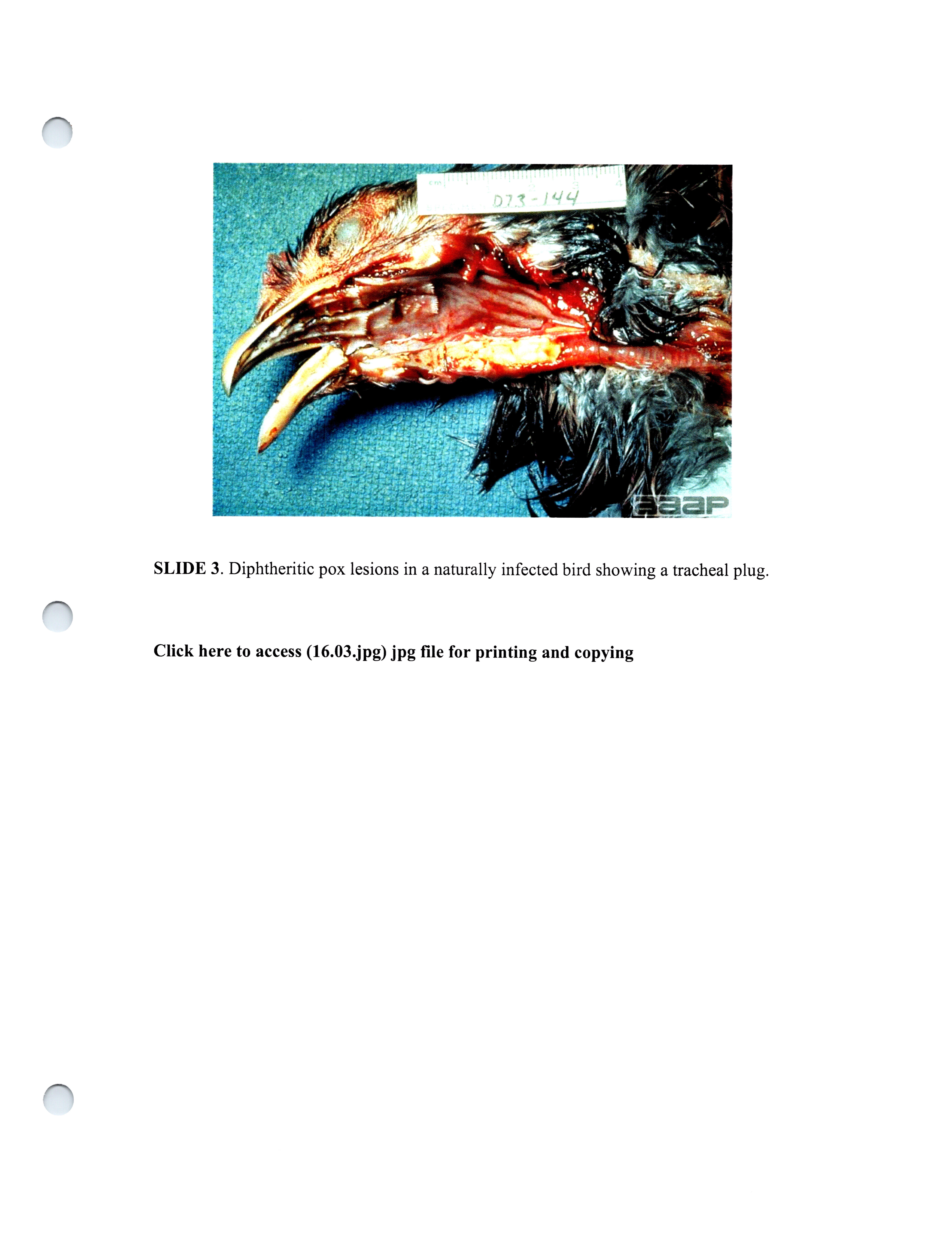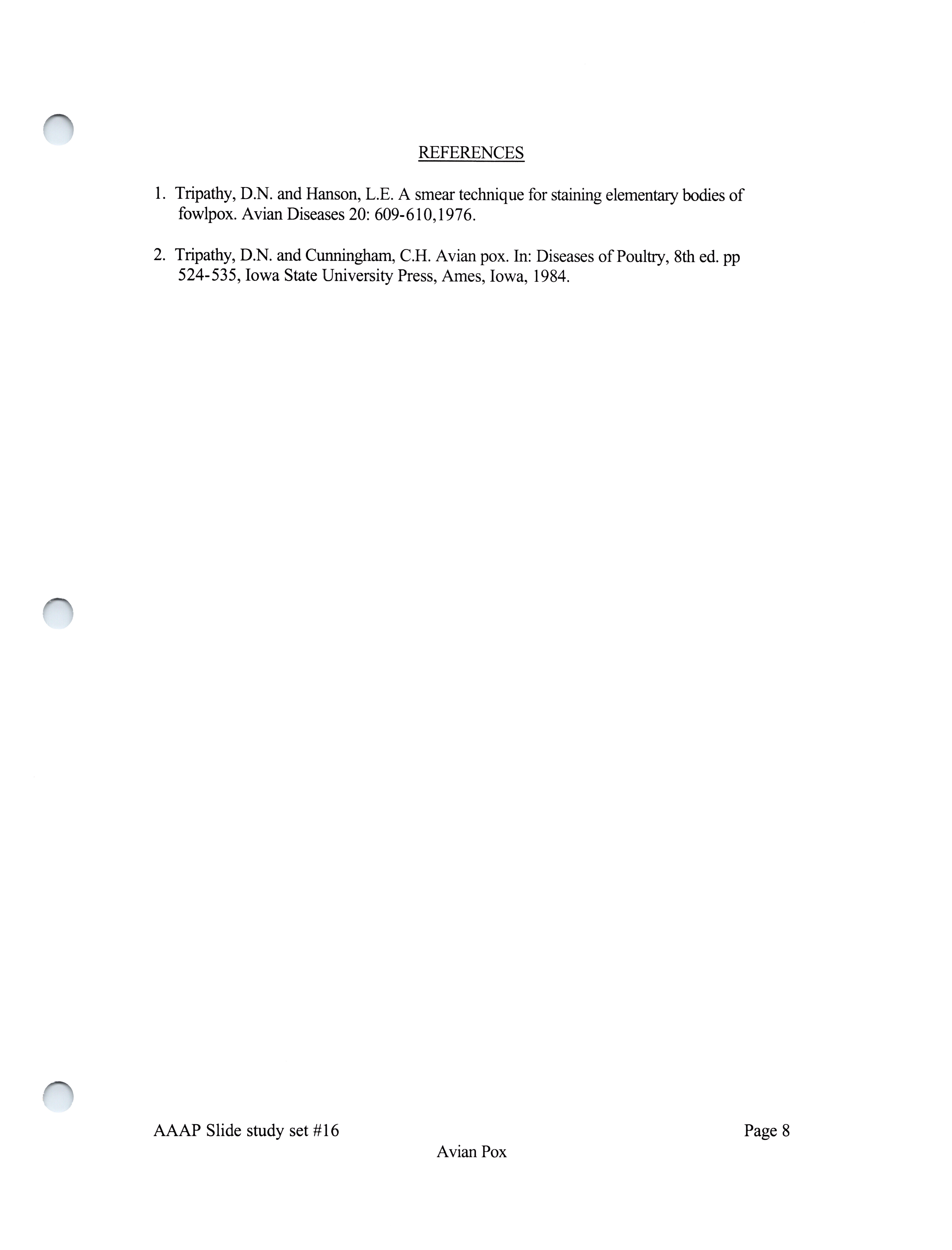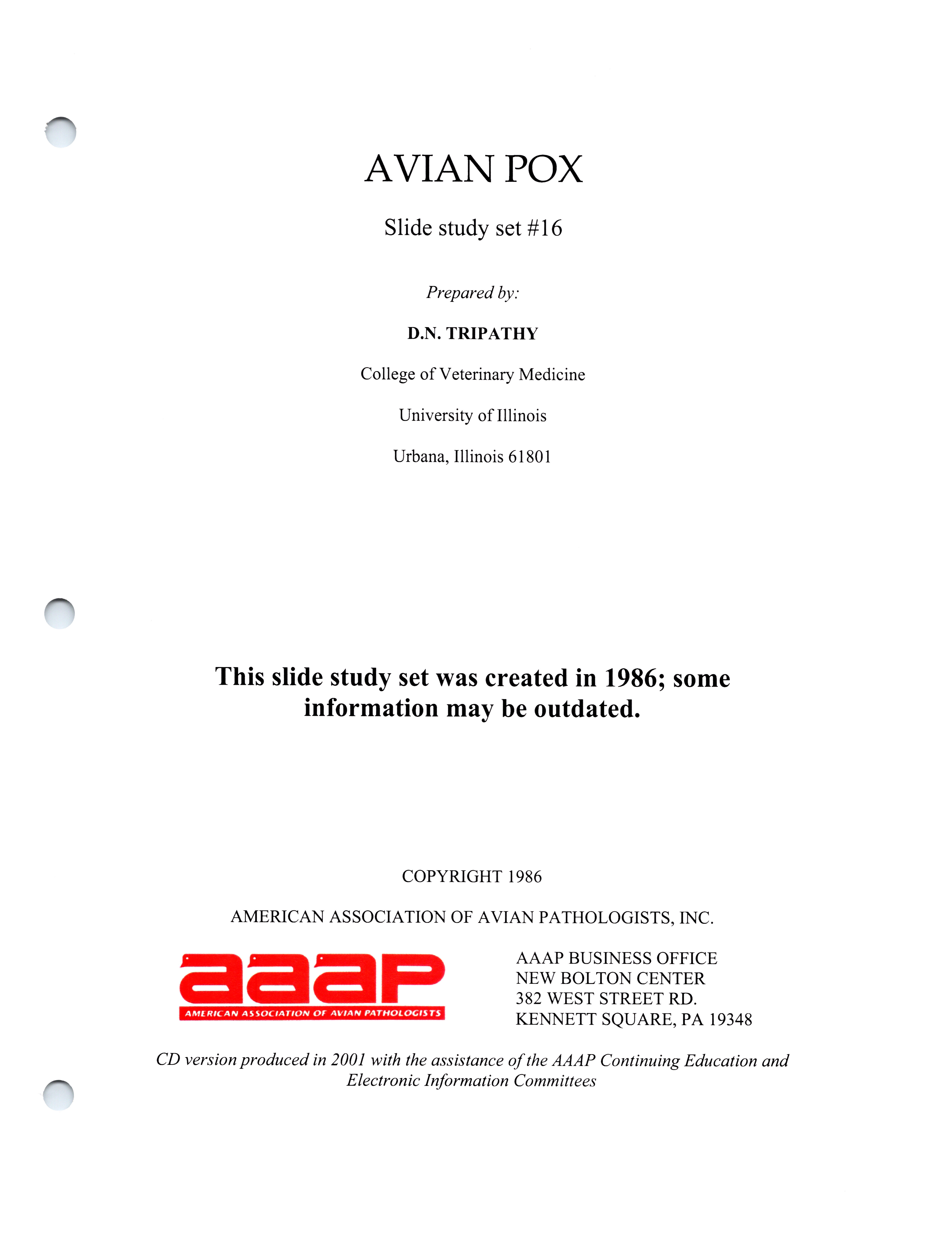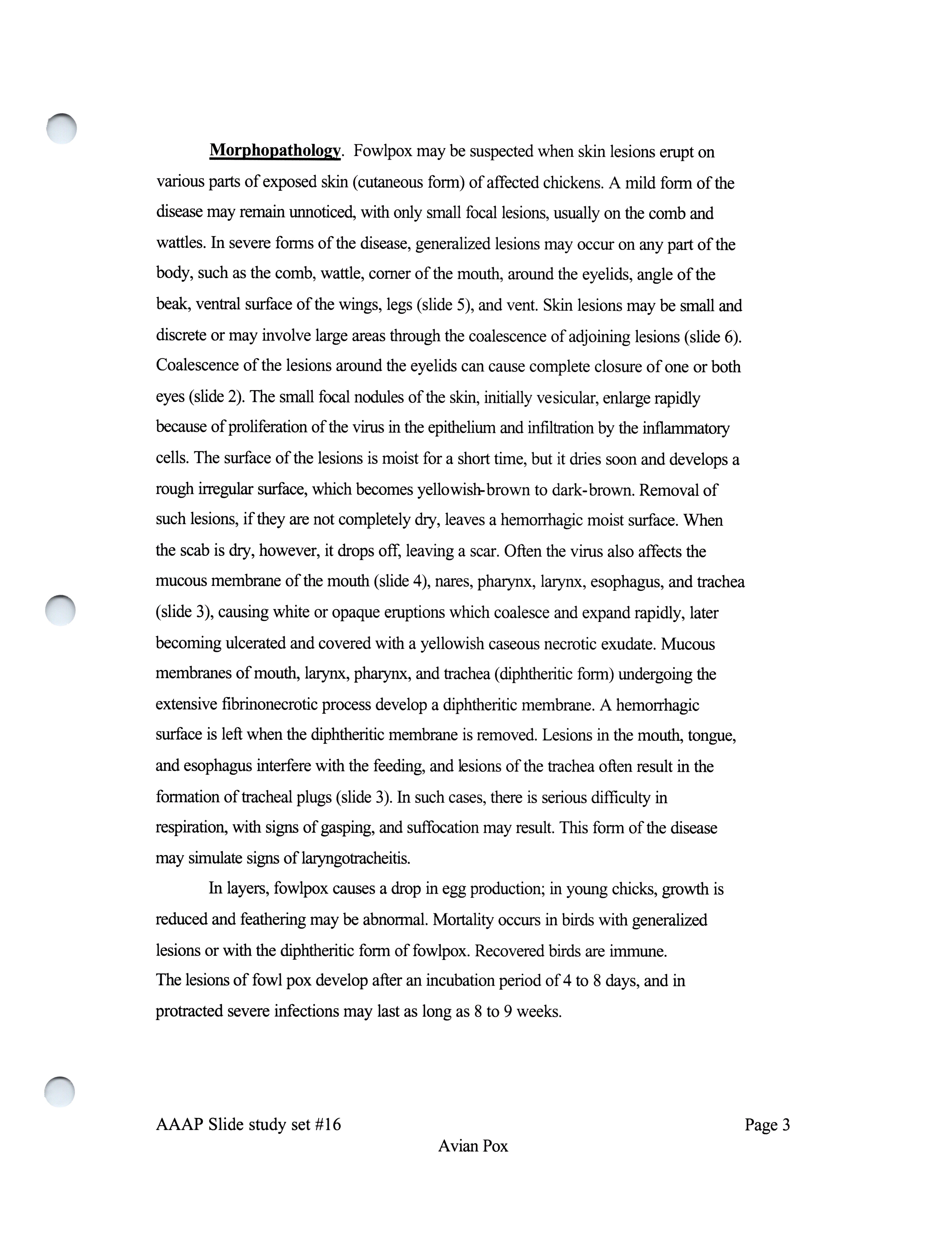 - Item from a series of AAAP records containing slide study sets, which consist of slides and their accompanying texts. The slide study sets mainly cover poultry diseases and their diagnosis, but also include other topics such as biotechnology in avian medicine and careers in avian medicine.