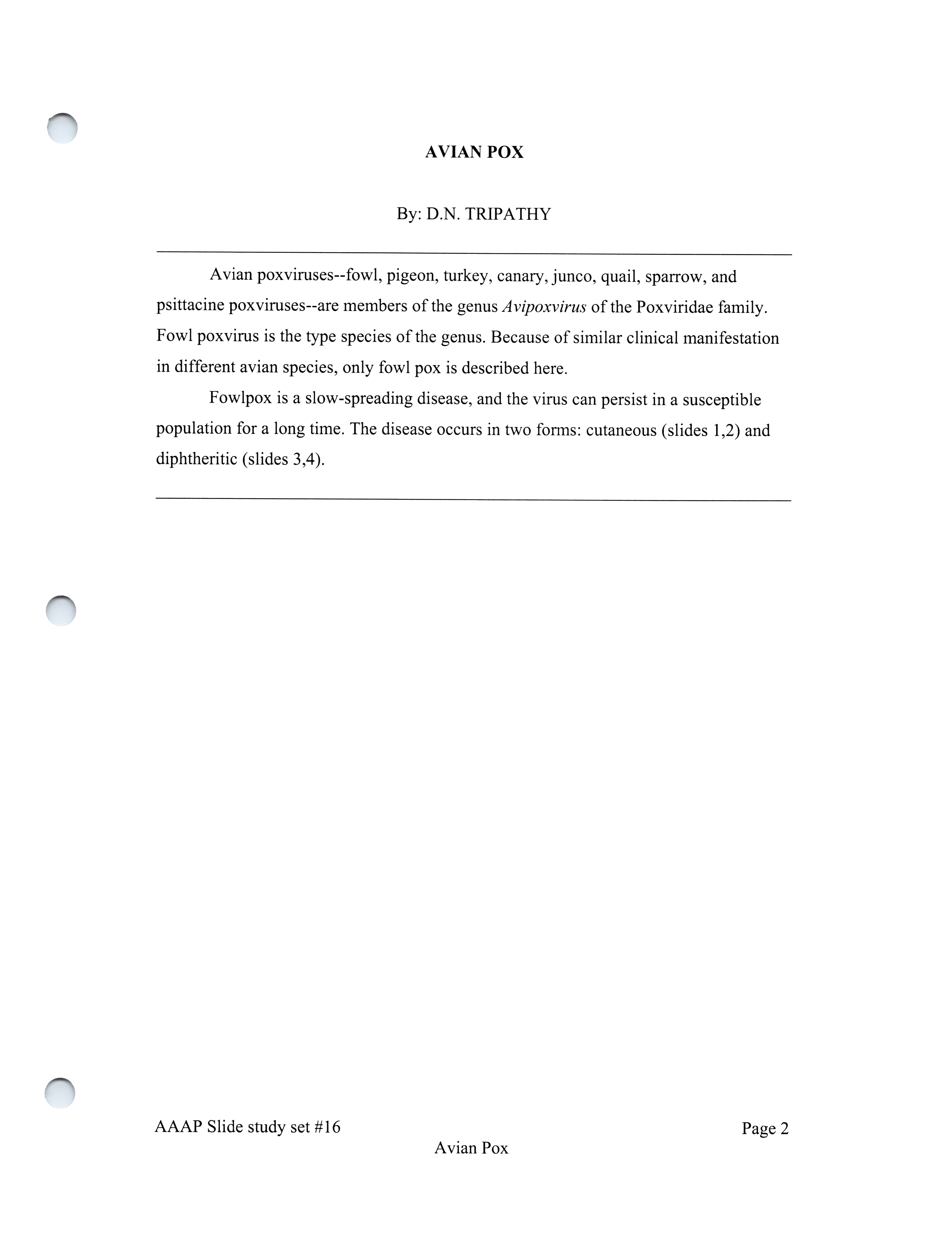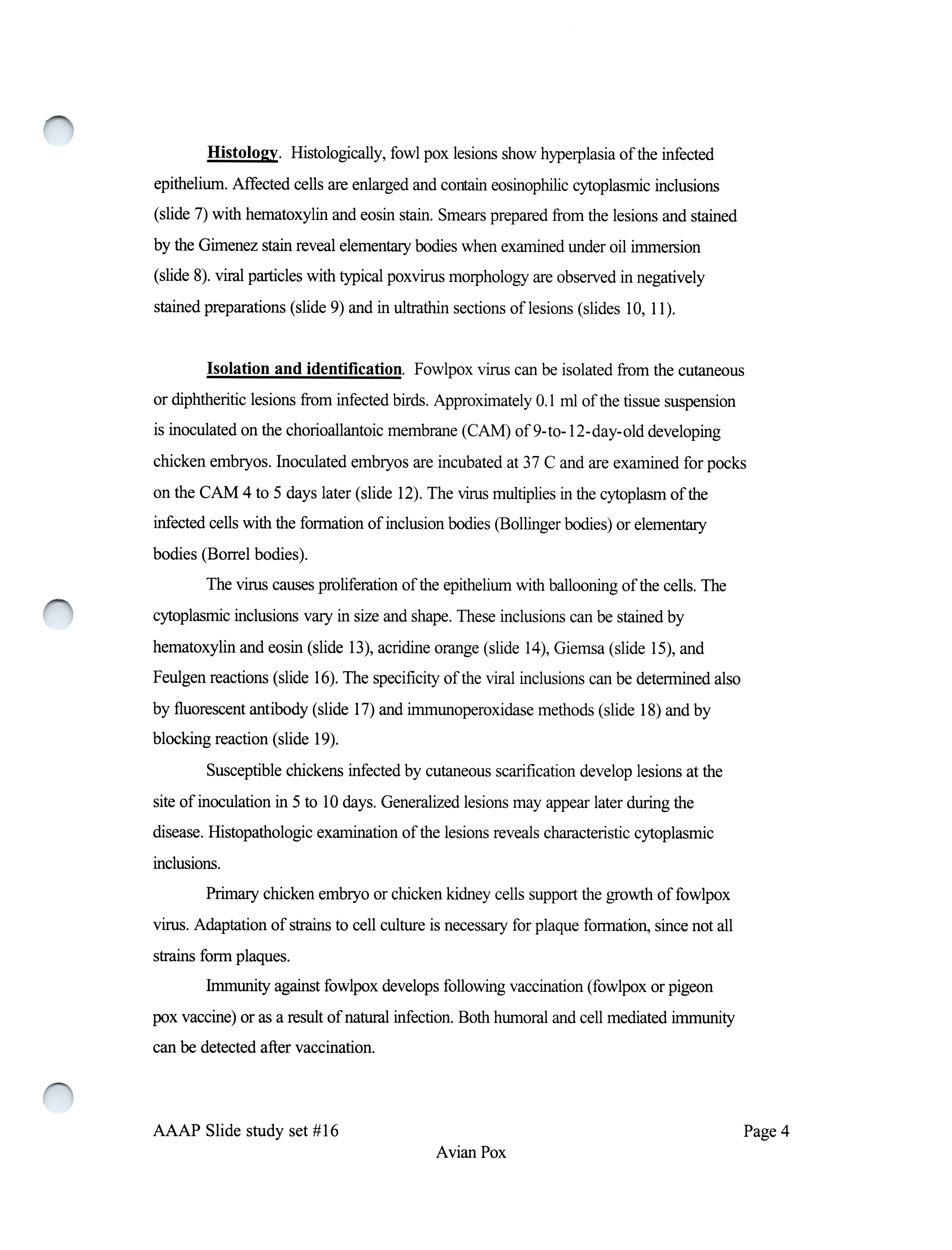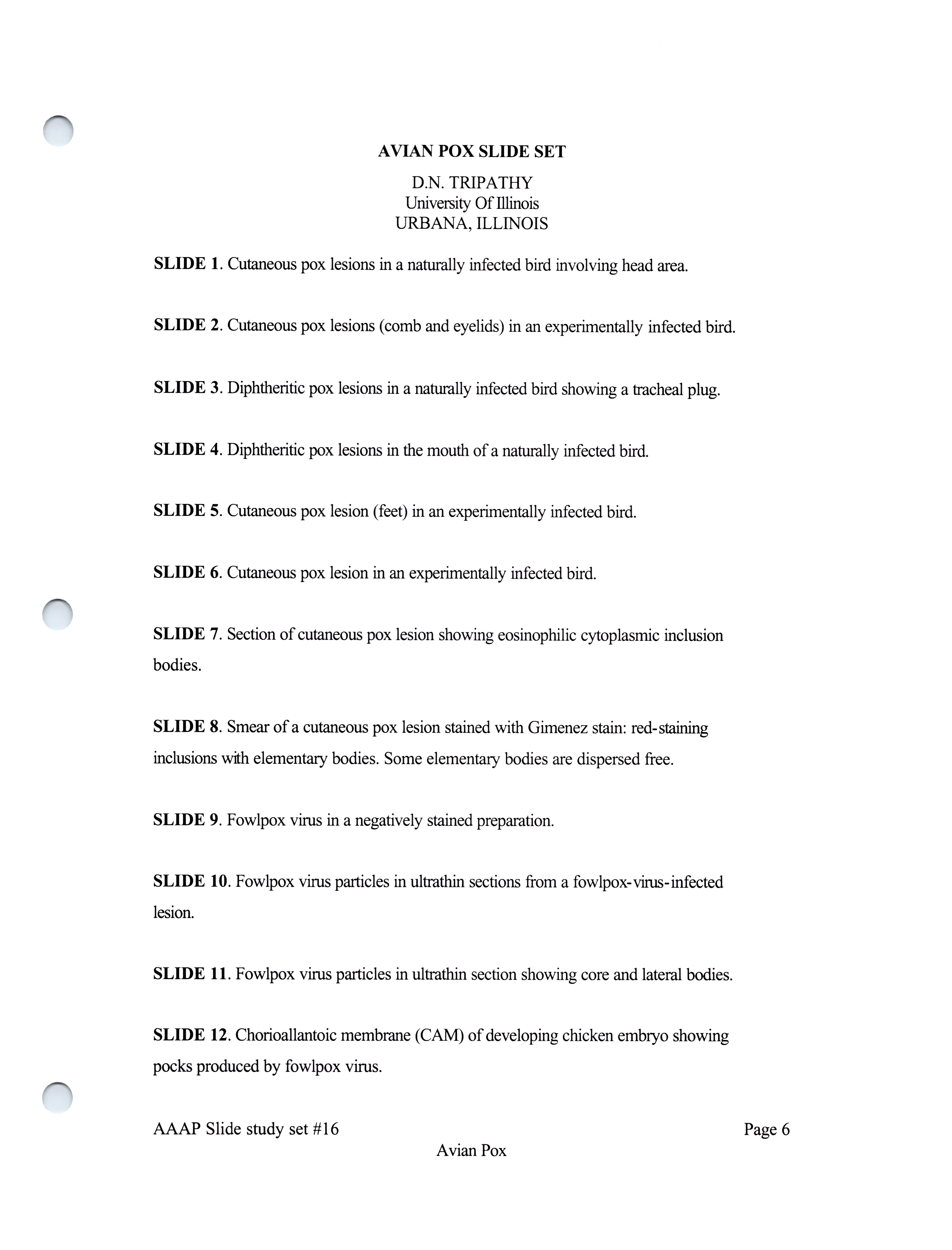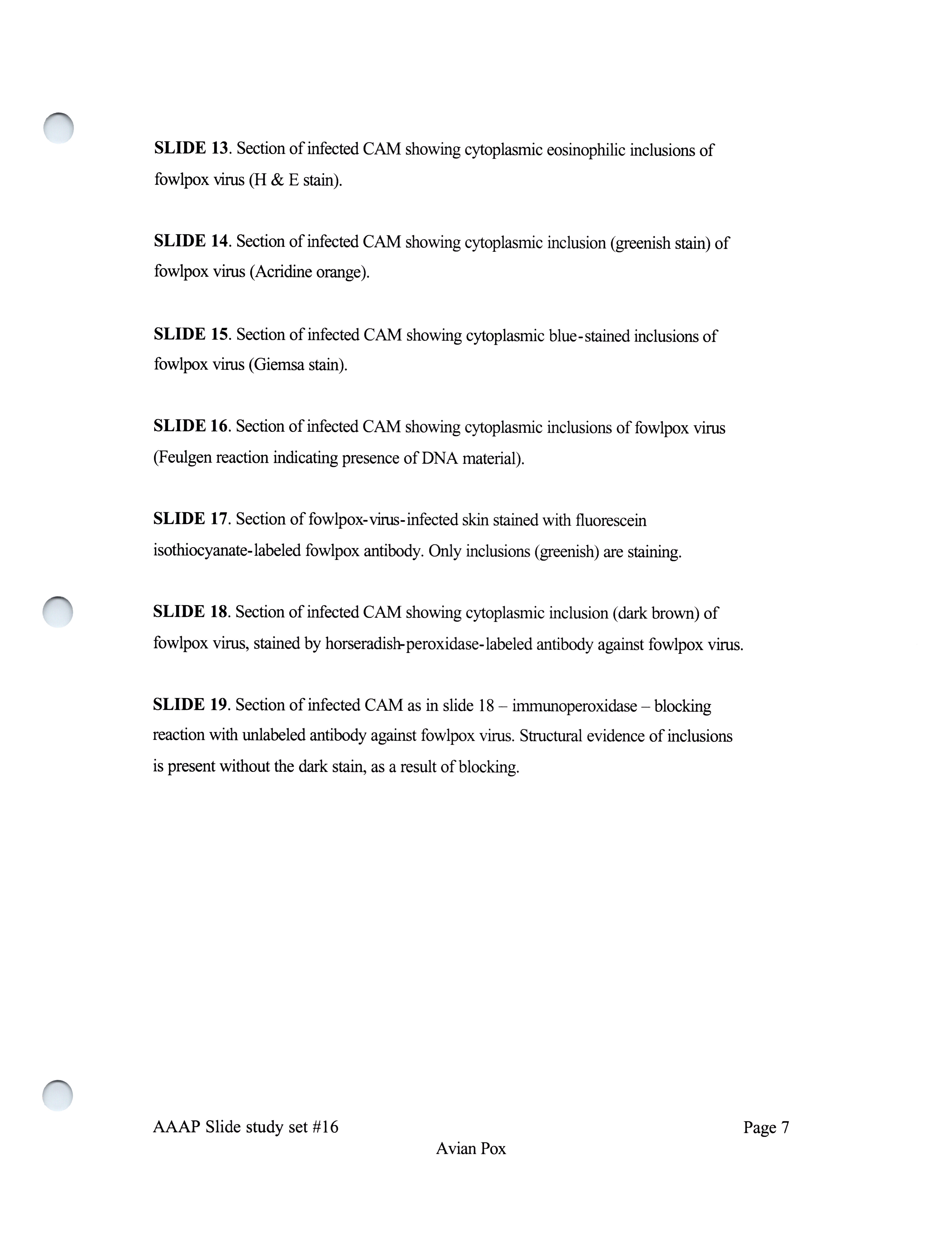 - Slide study set #16, avian pox, 2 sets (includes 38 color slides), 1986