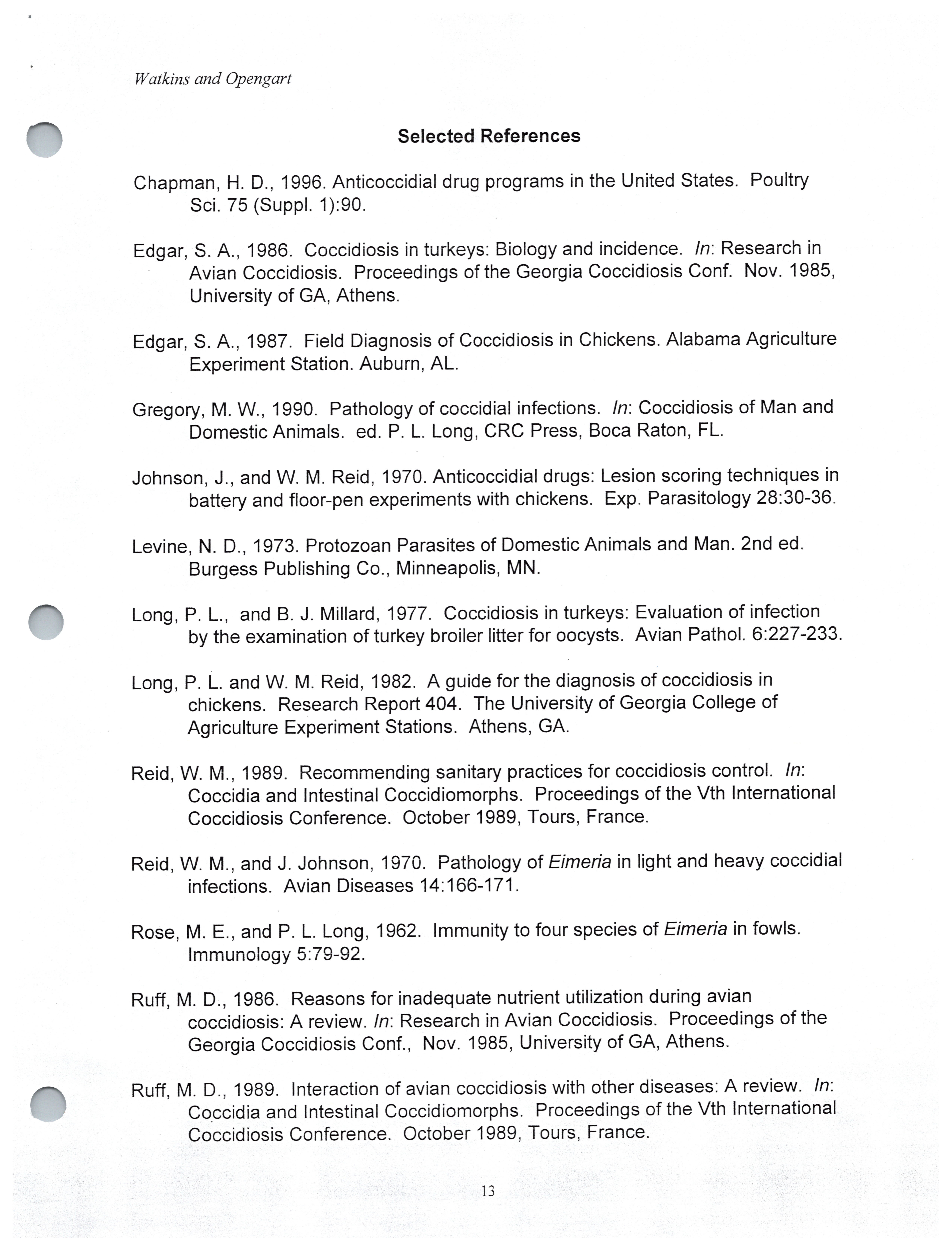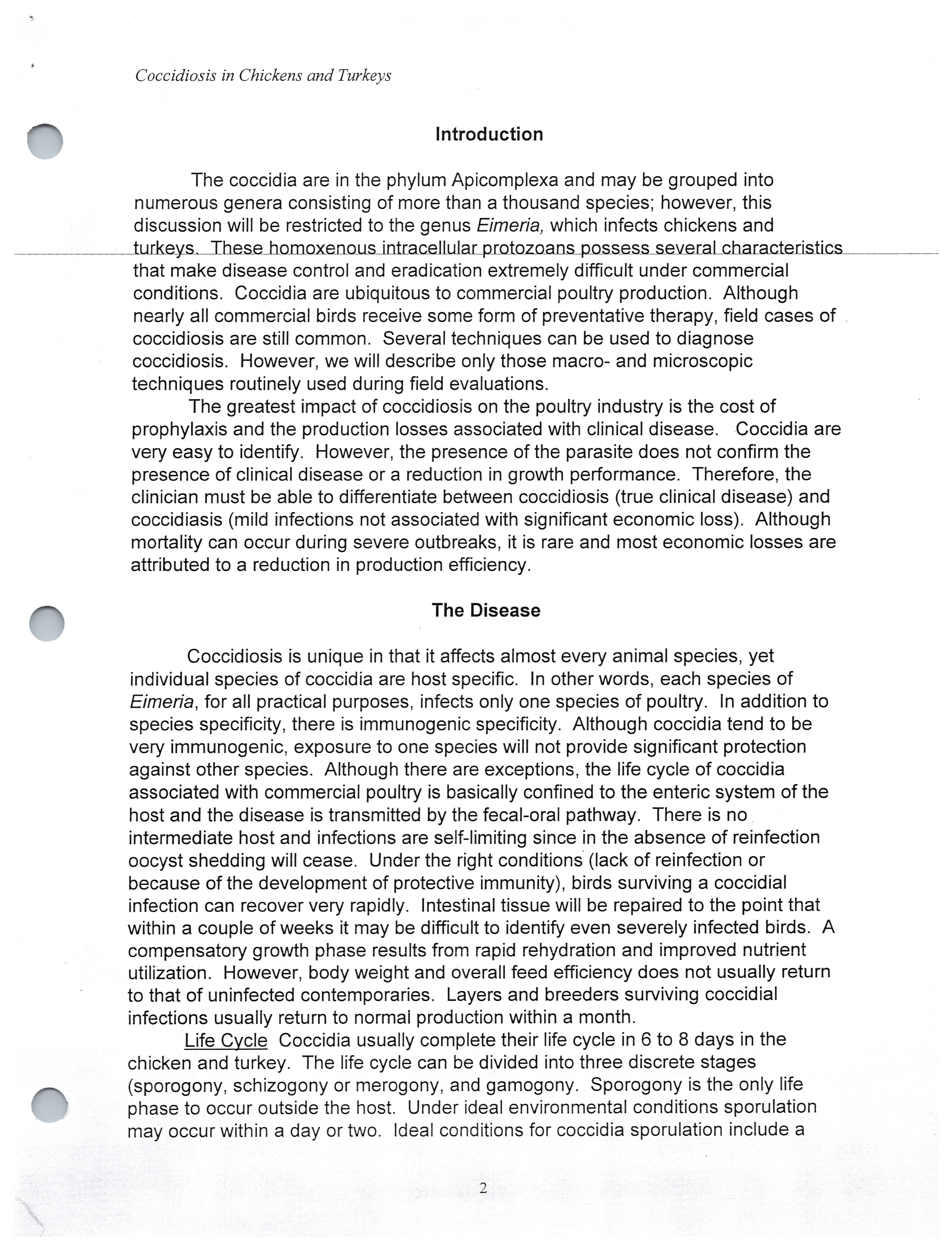 - "Coccidiosis in chickens and turkeys", American Association of Avian Pathologists Collection, Iowa State University Library Digital Collections