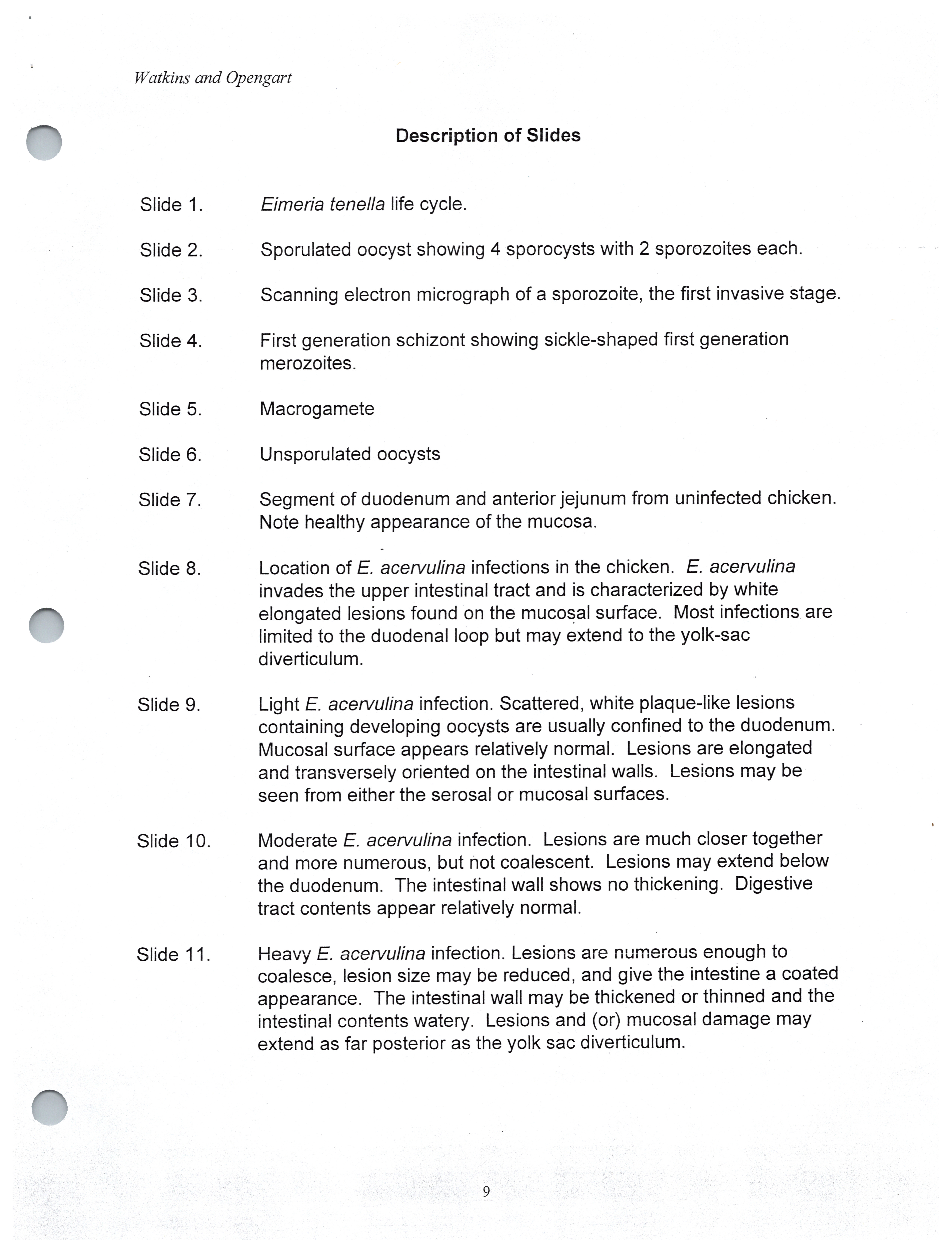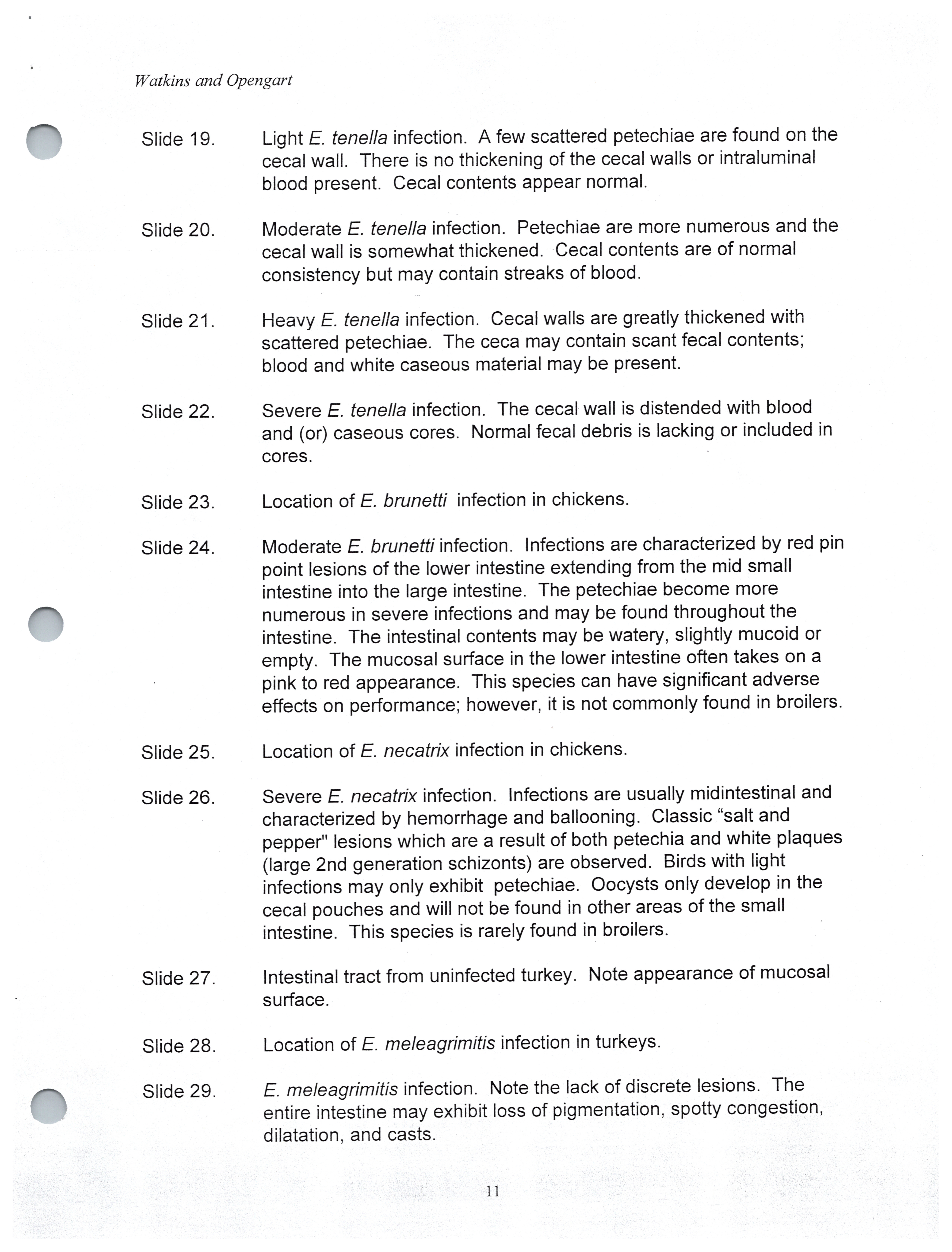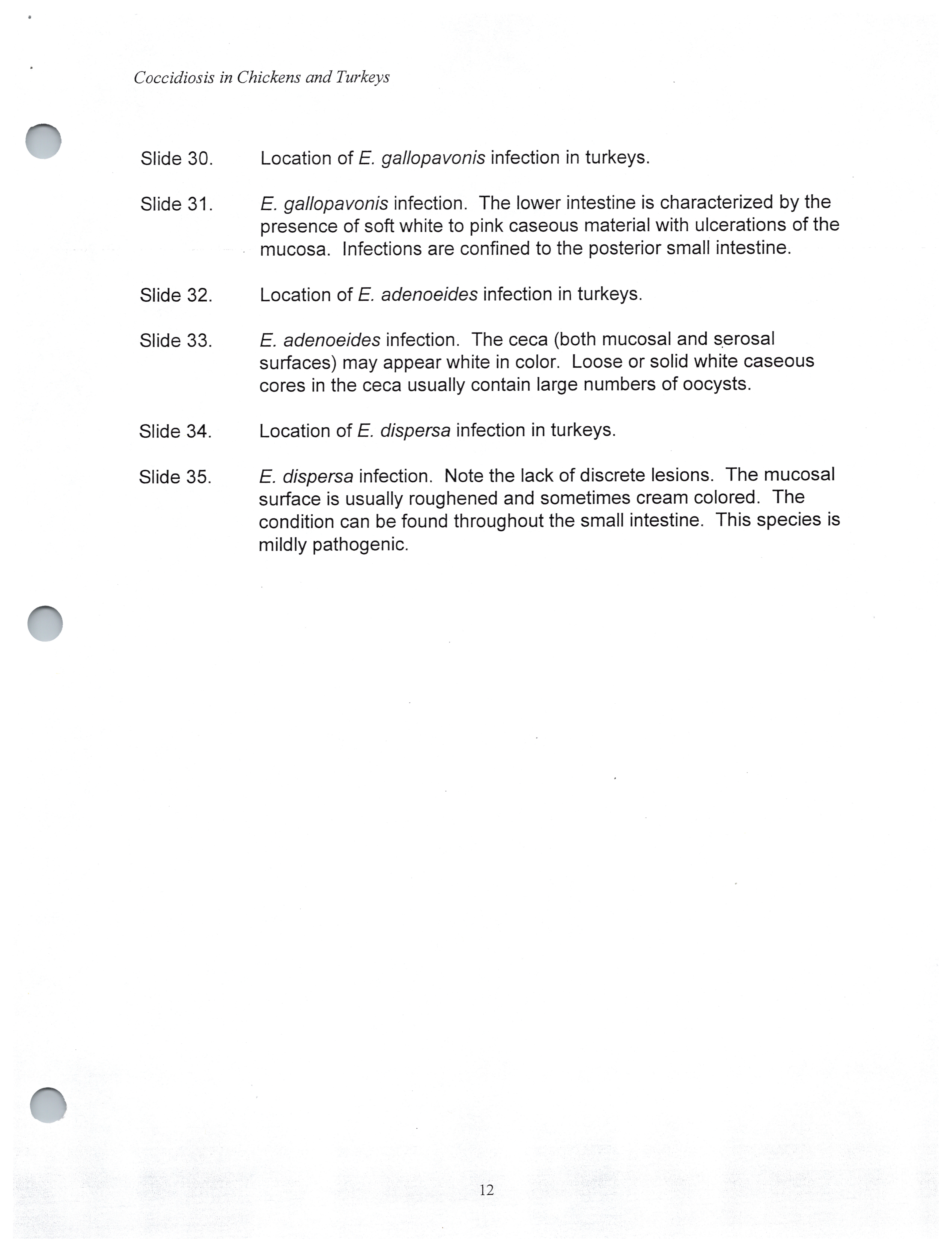 - Slide Study Set #7, Coccidiosis in Chickens and Turkeys, 2 sets (includes 70 color slides), undated