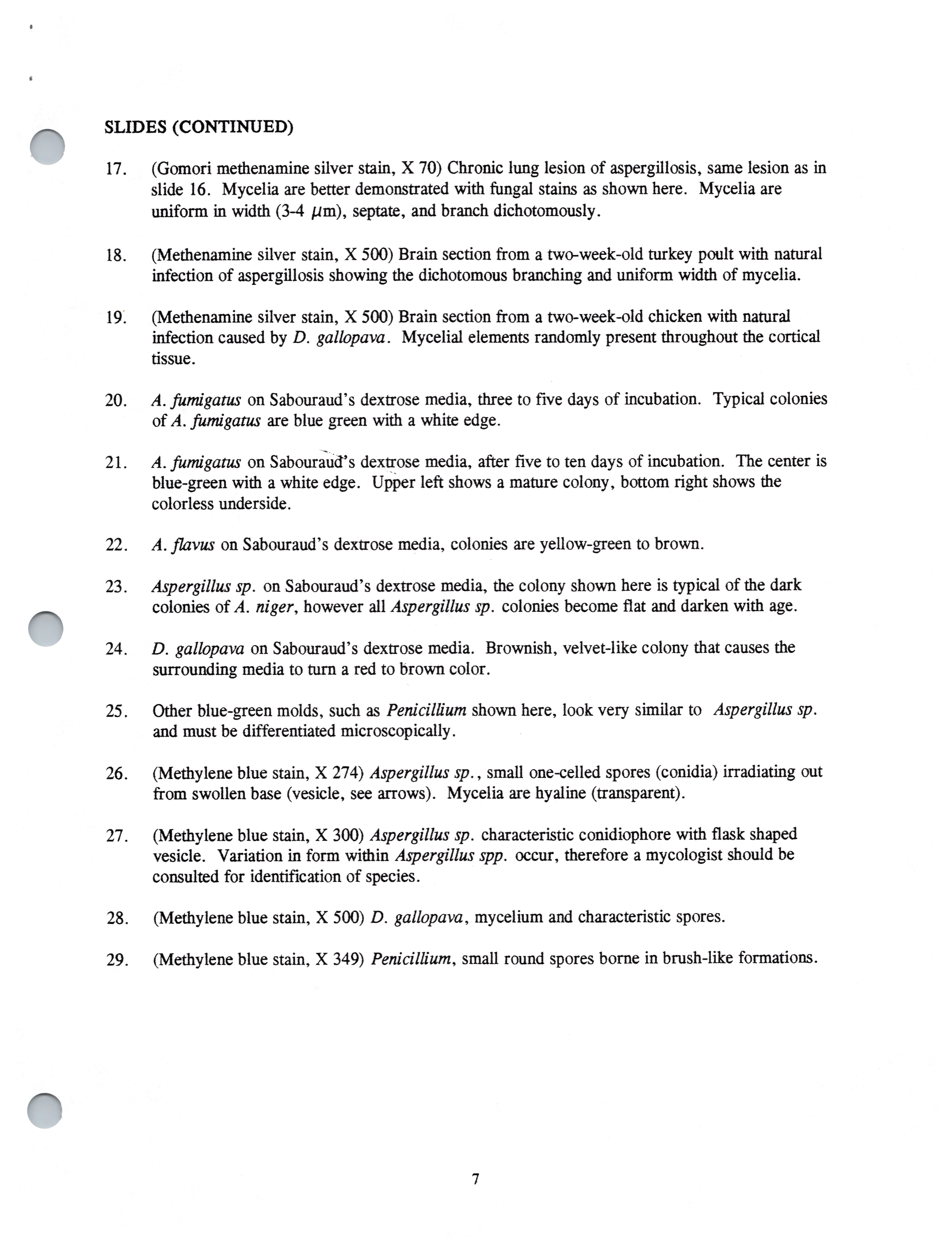 - Slide Study Set #9, Aspergillosis, revised, 2 sets (includes 58 color slides), 1995