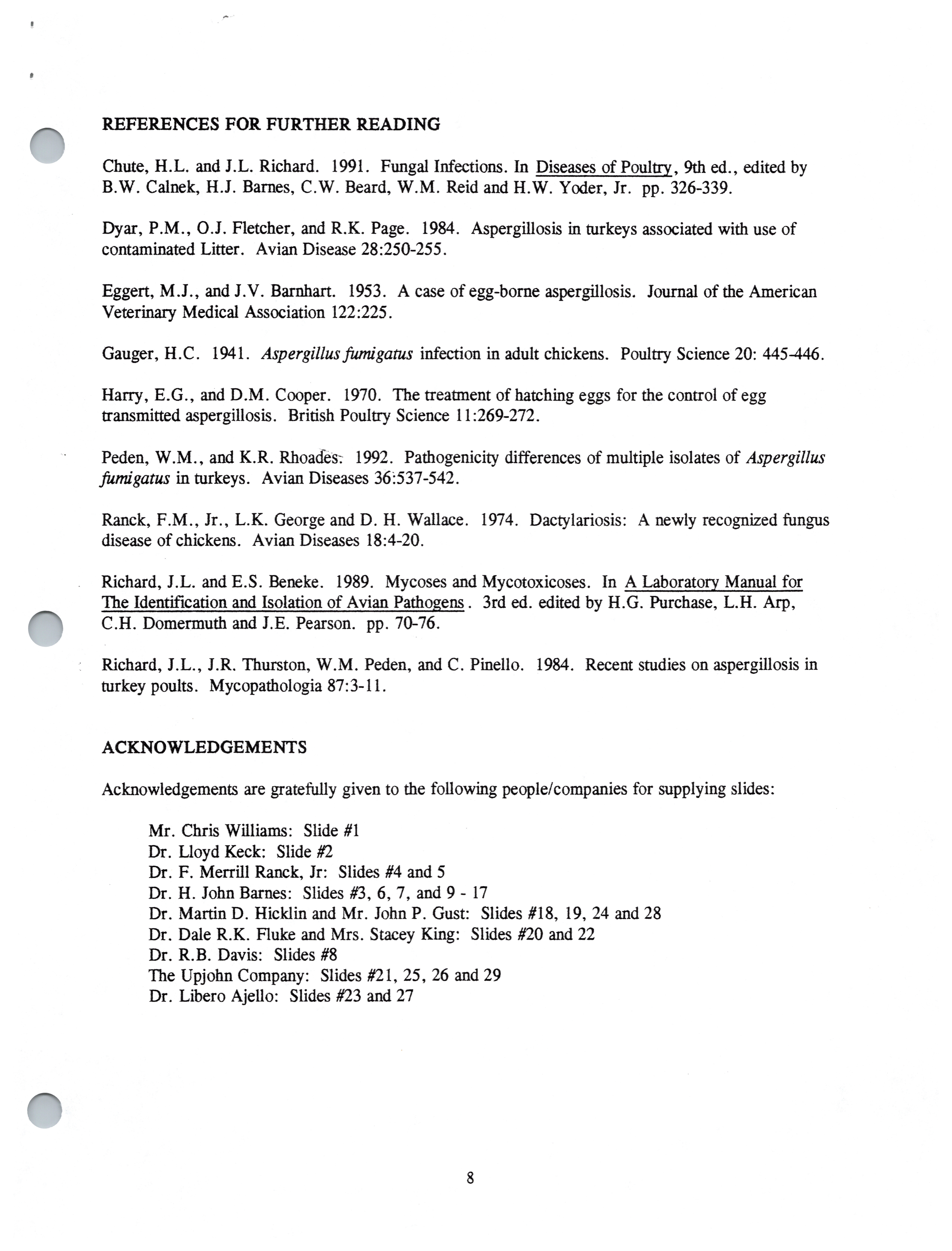 - "Aspergillosis", American Association of Avian Pathologists Collection, Iowa State University Library Digital Collections