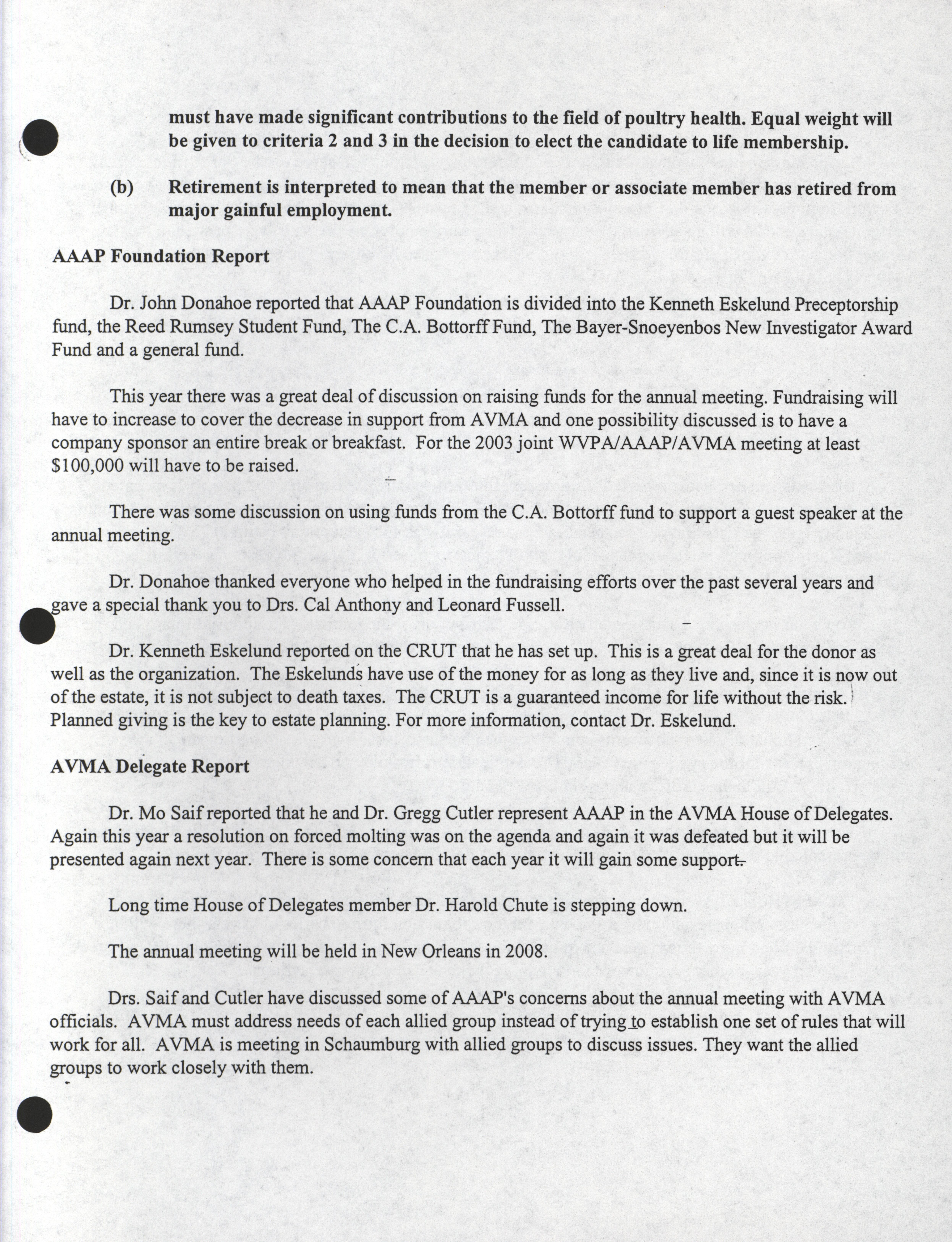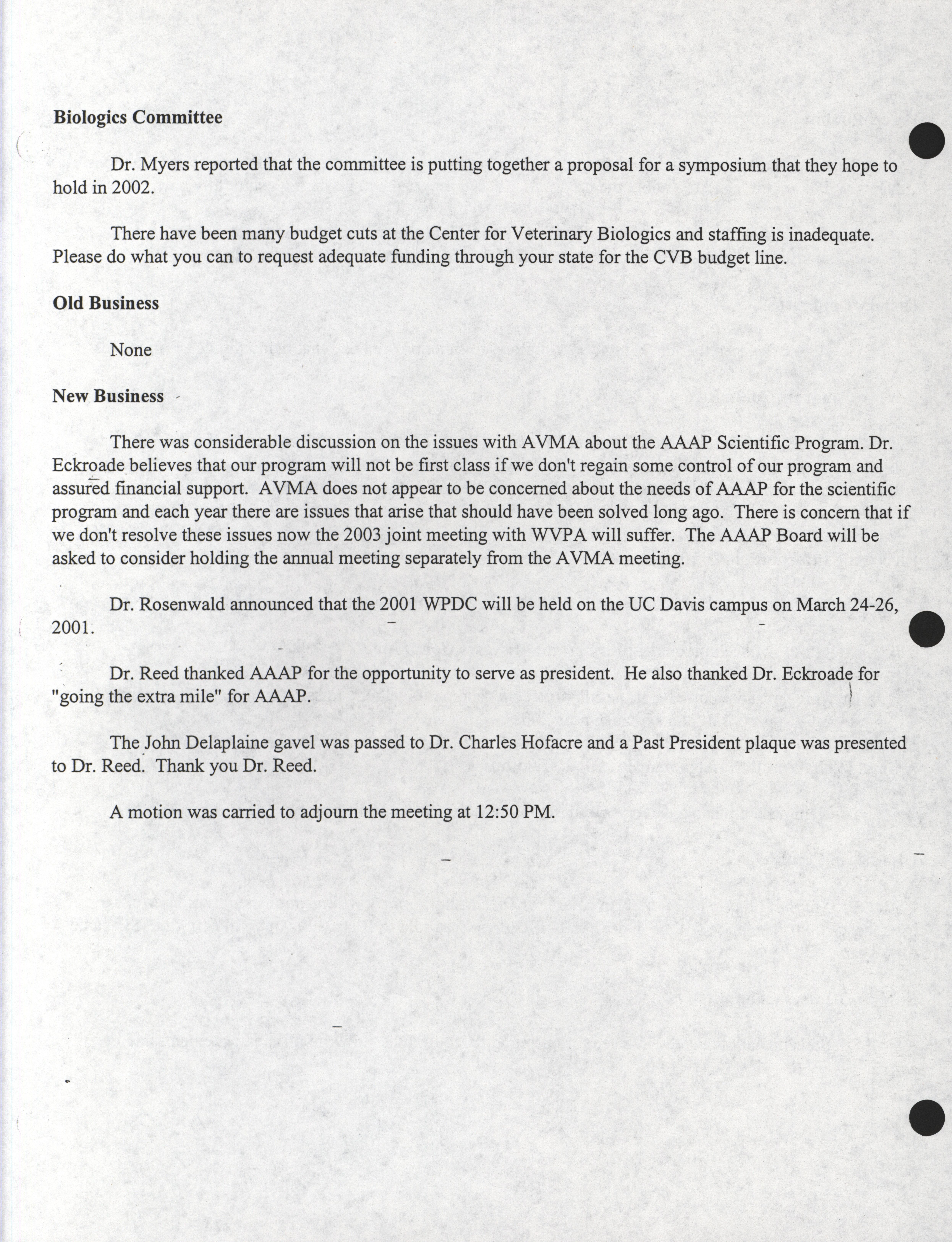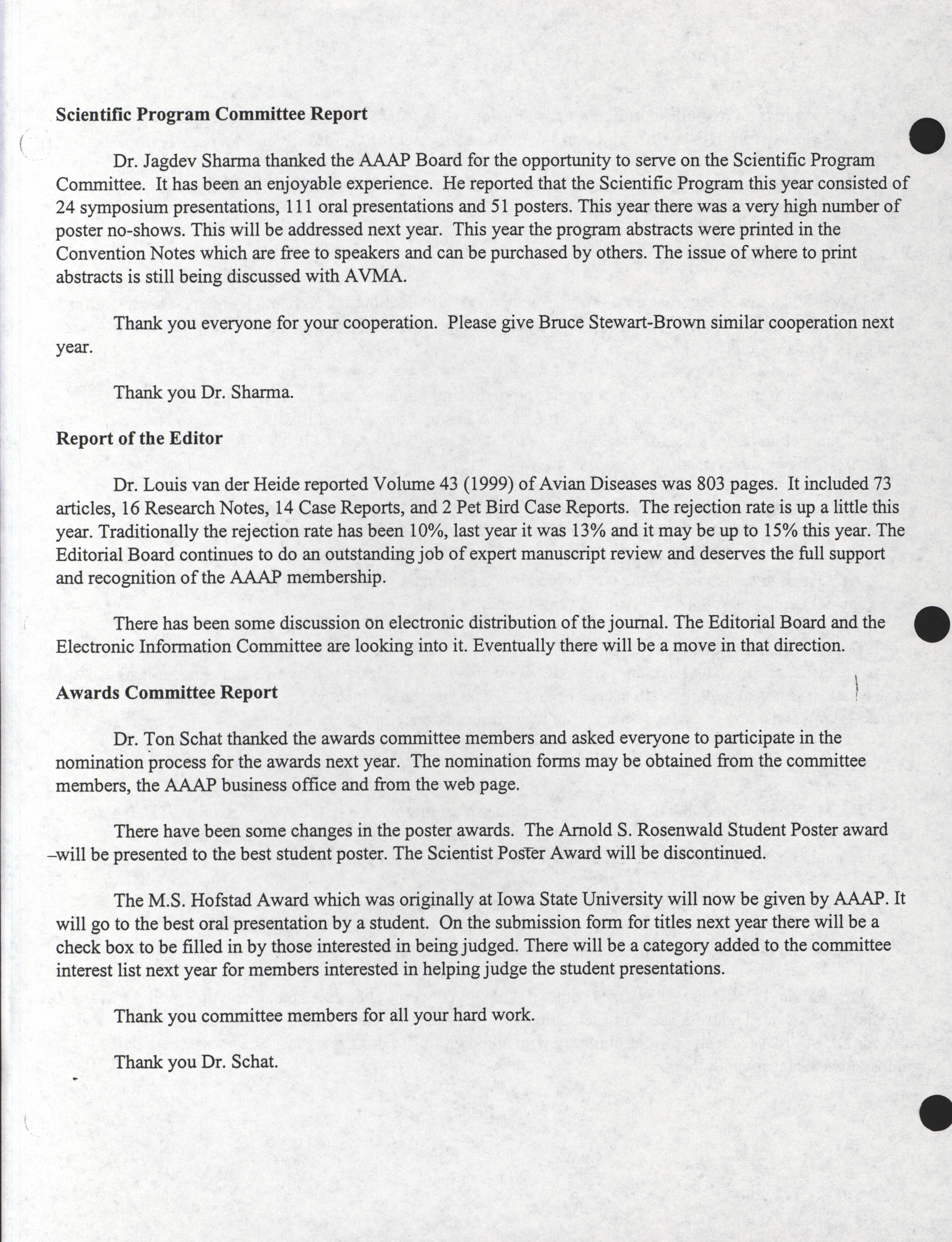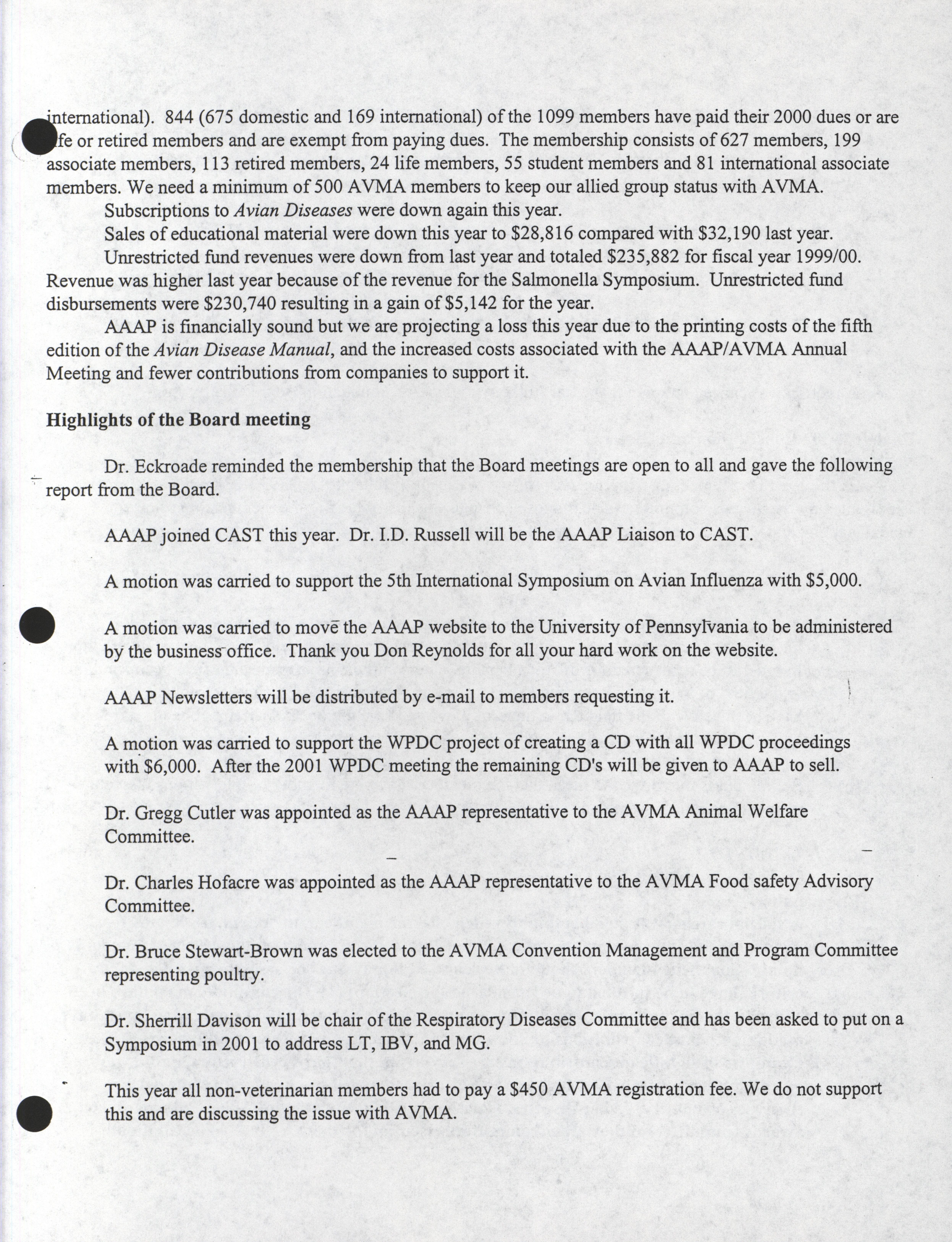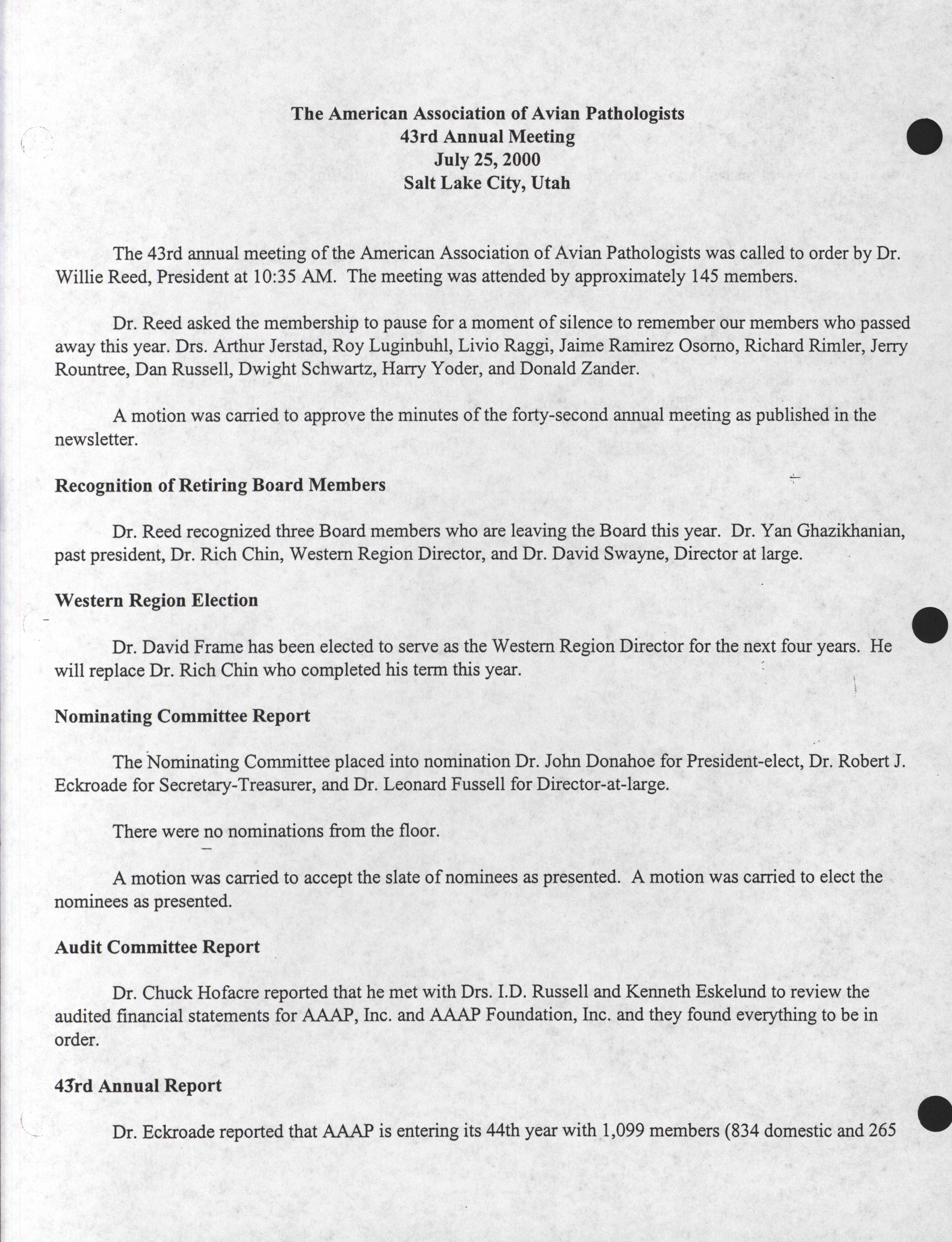 - "AAAP 43rd annual meeting, July 25, 2000", American Association of Avian Pathologists Collection, Iowa State University Library Digital Collections