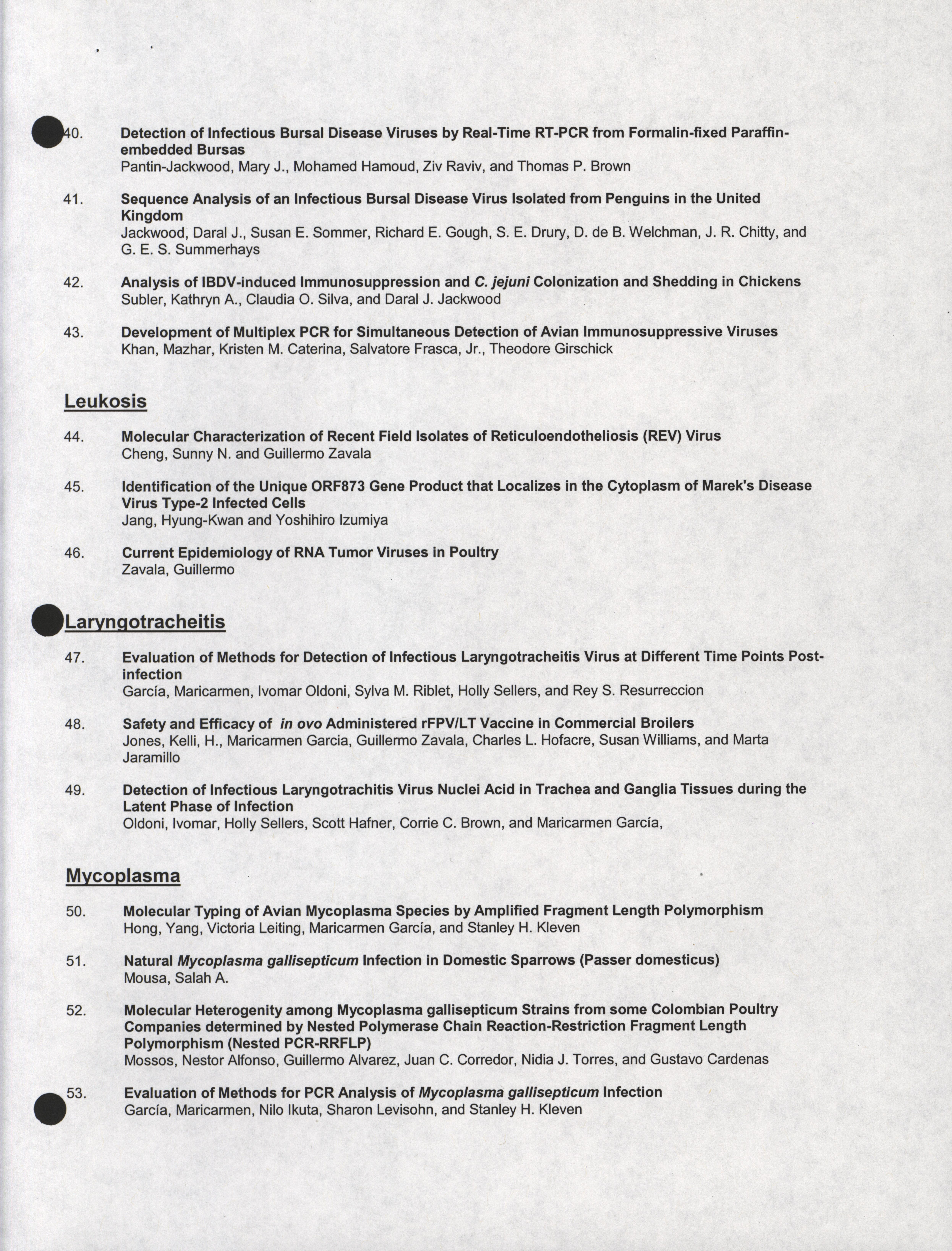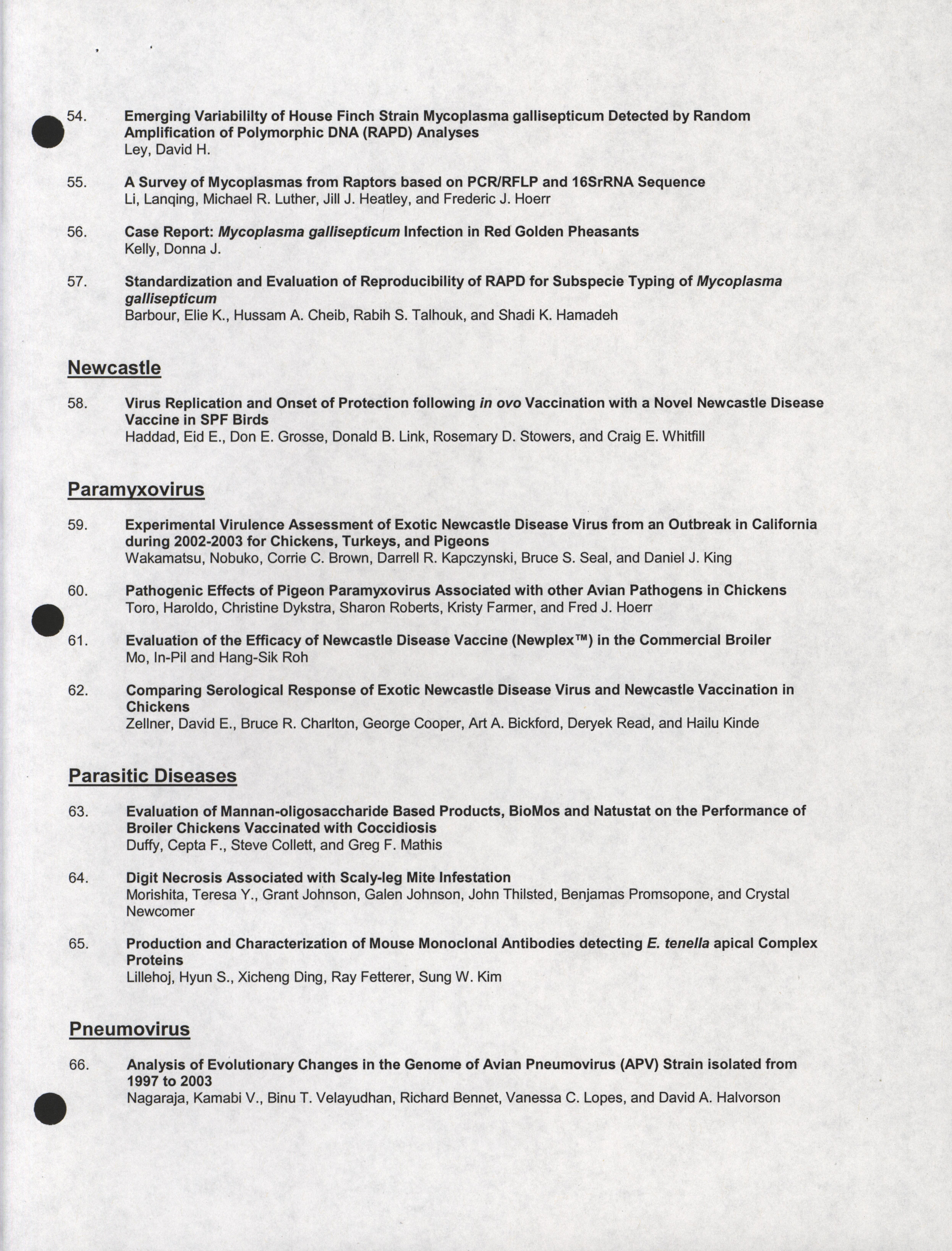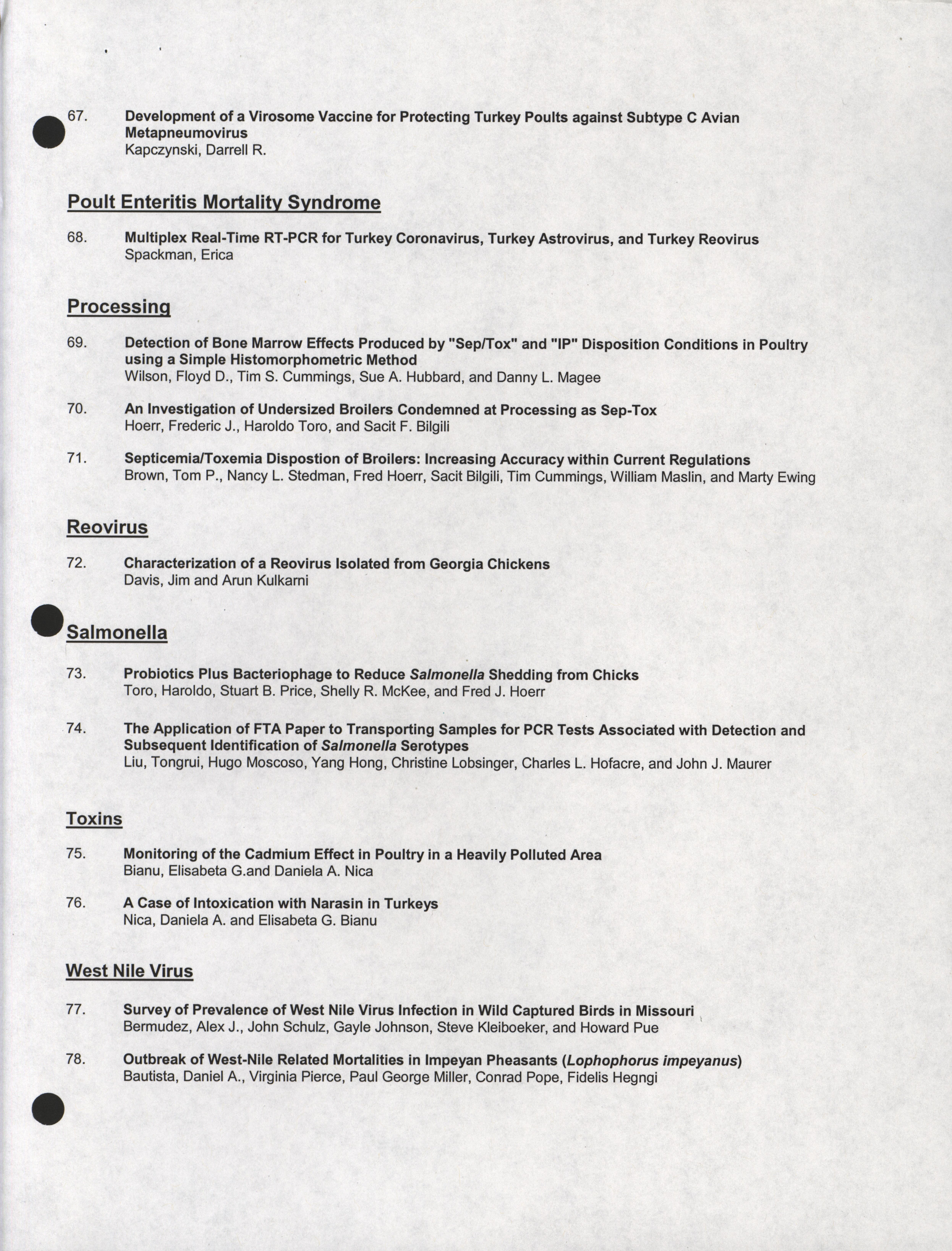- "Poster session list, July 26-28, 2004", American Association of Avian Pathologists Collection, Iowa State University Library Digital Collections
