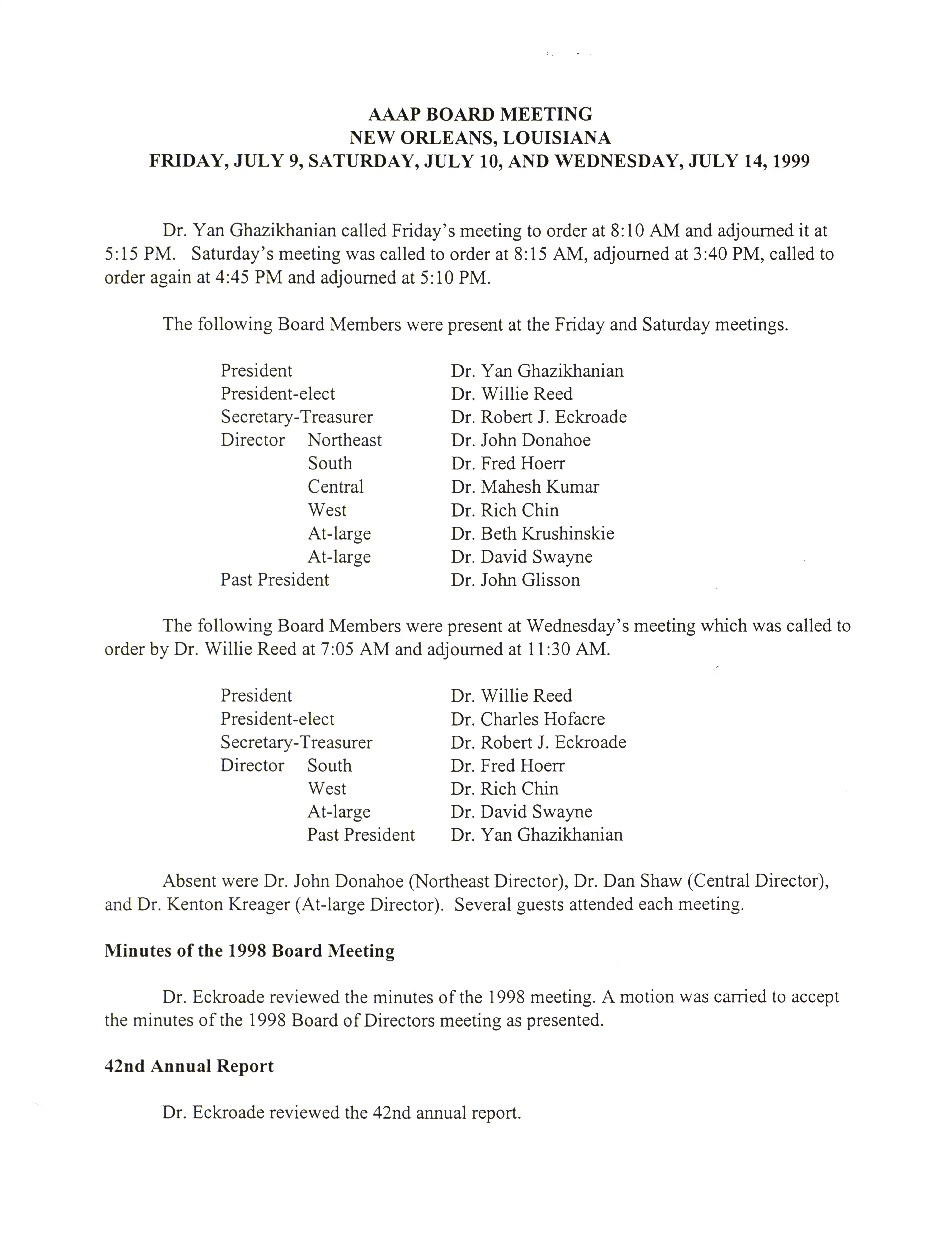 - AAAP board meeting, July 9, 10, and 14, 1999