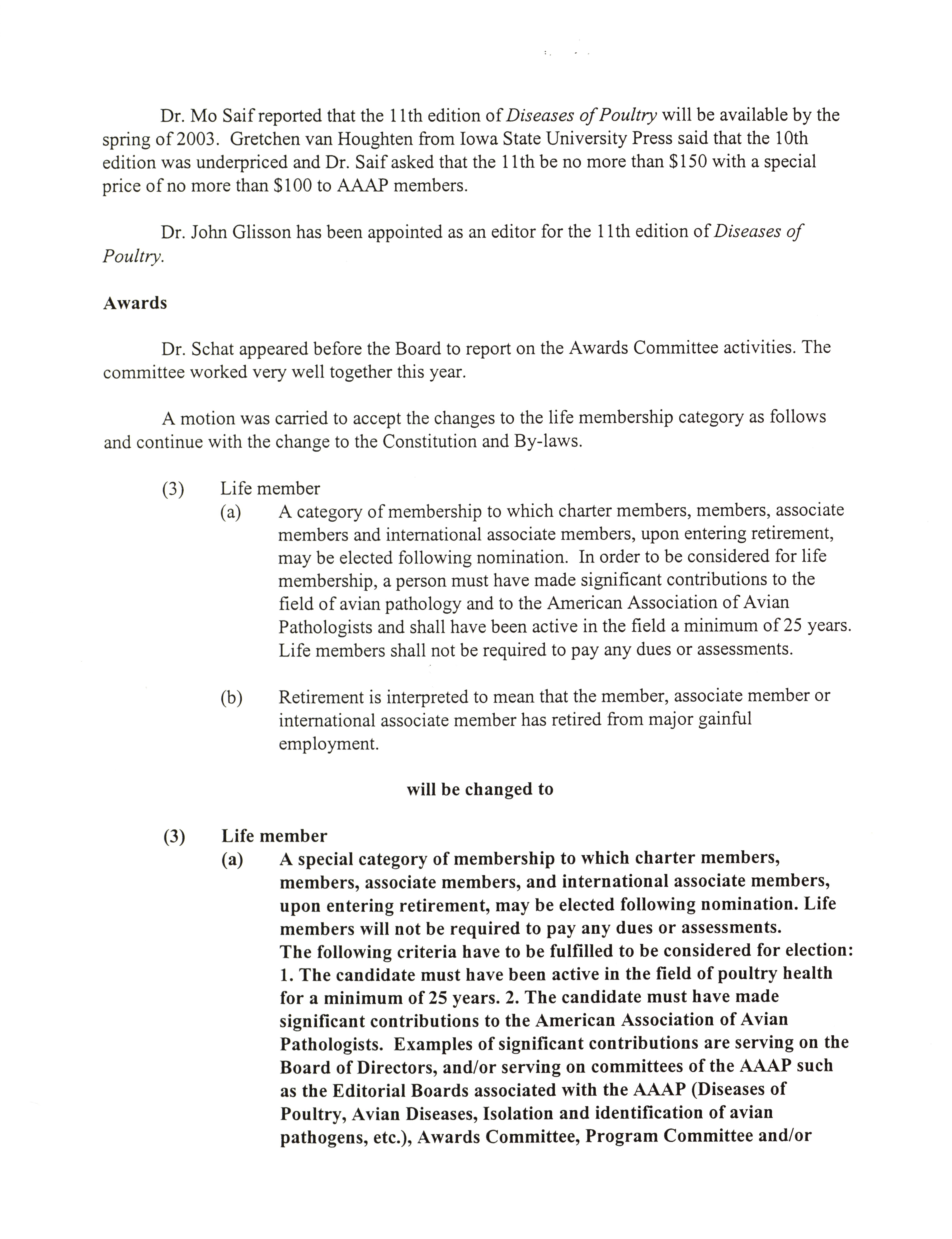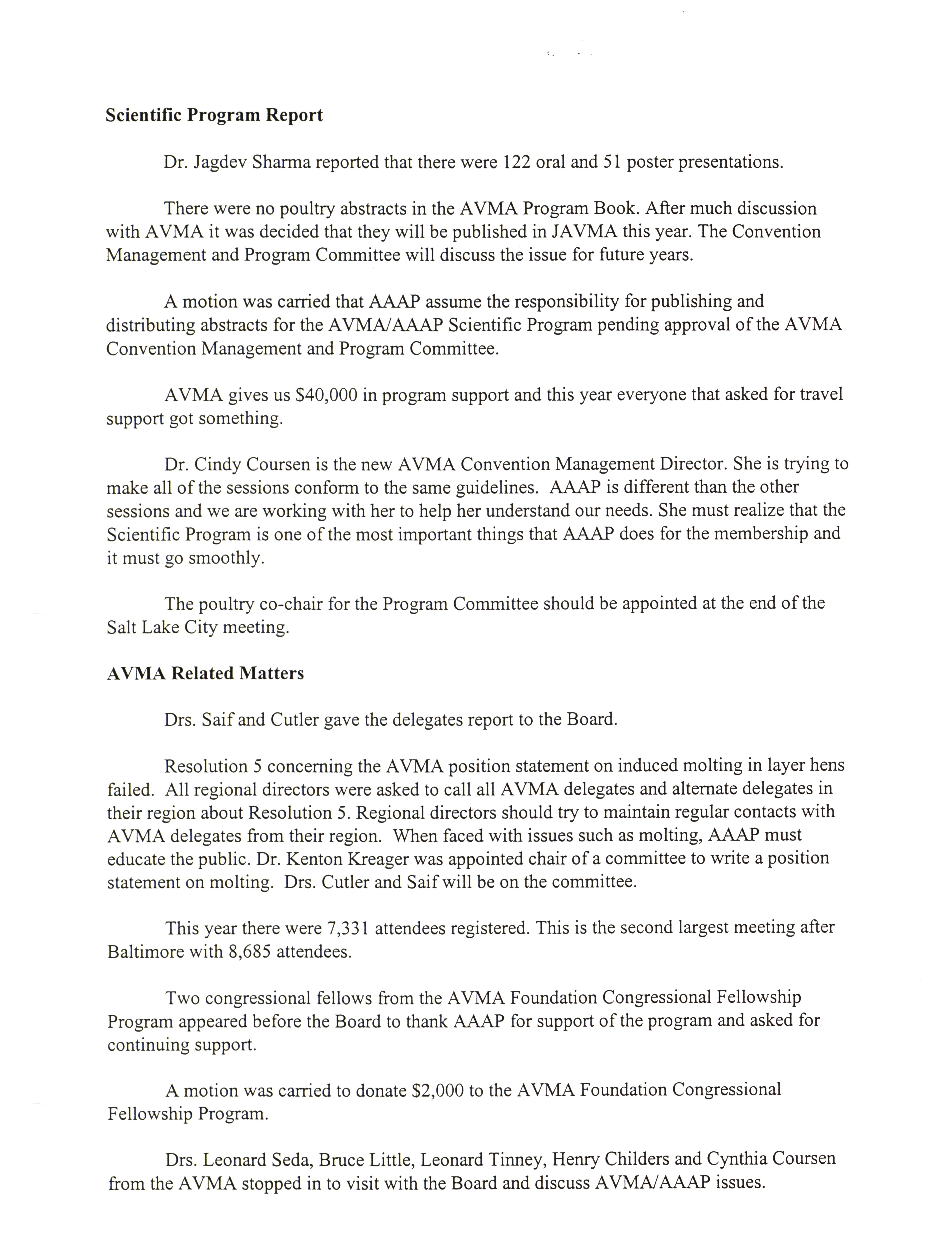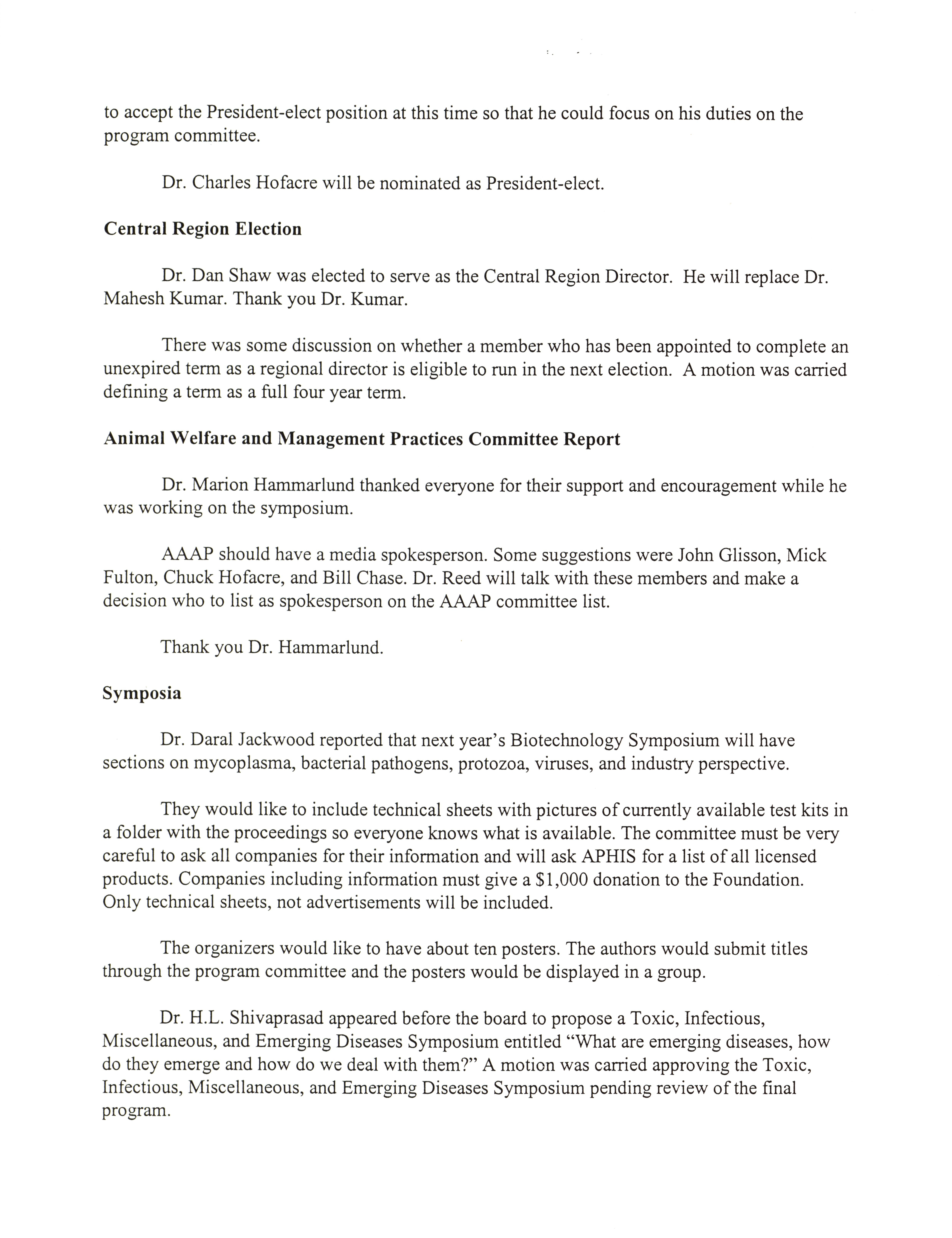 - "AAAP board meeting, July 9, 10, and 14, 1999", American Association of Avian Pathologists Collection, Iowa State University Library Digital Collections