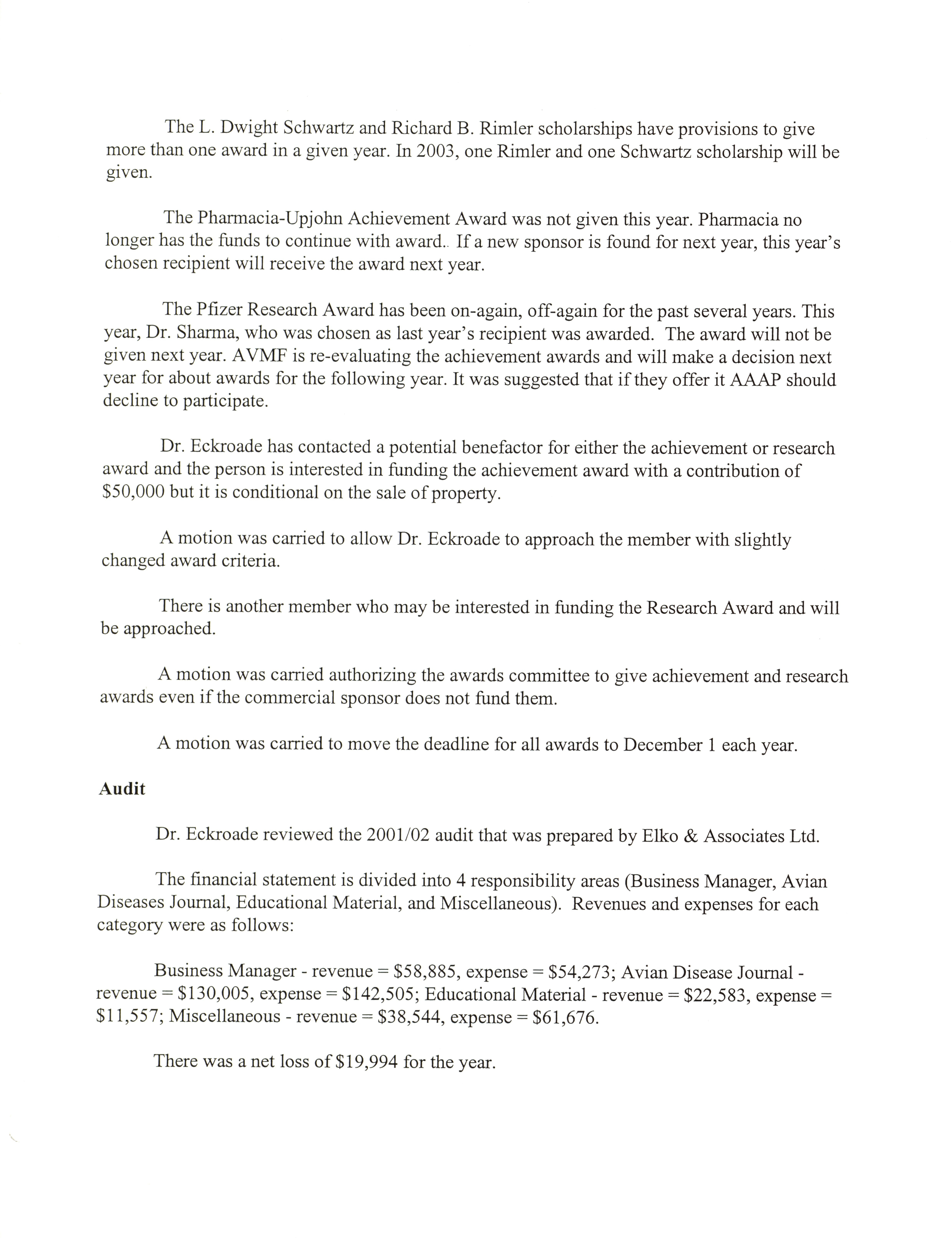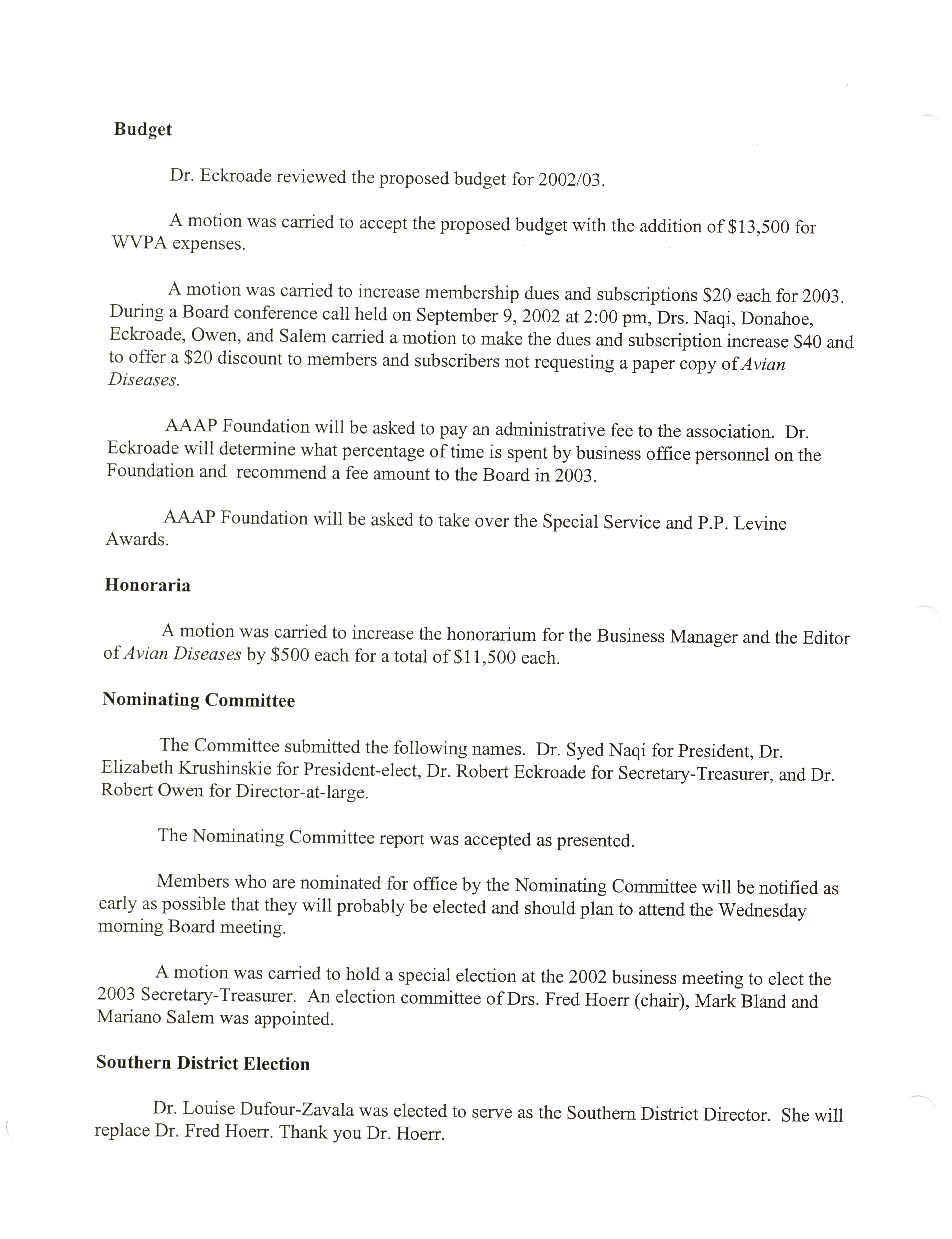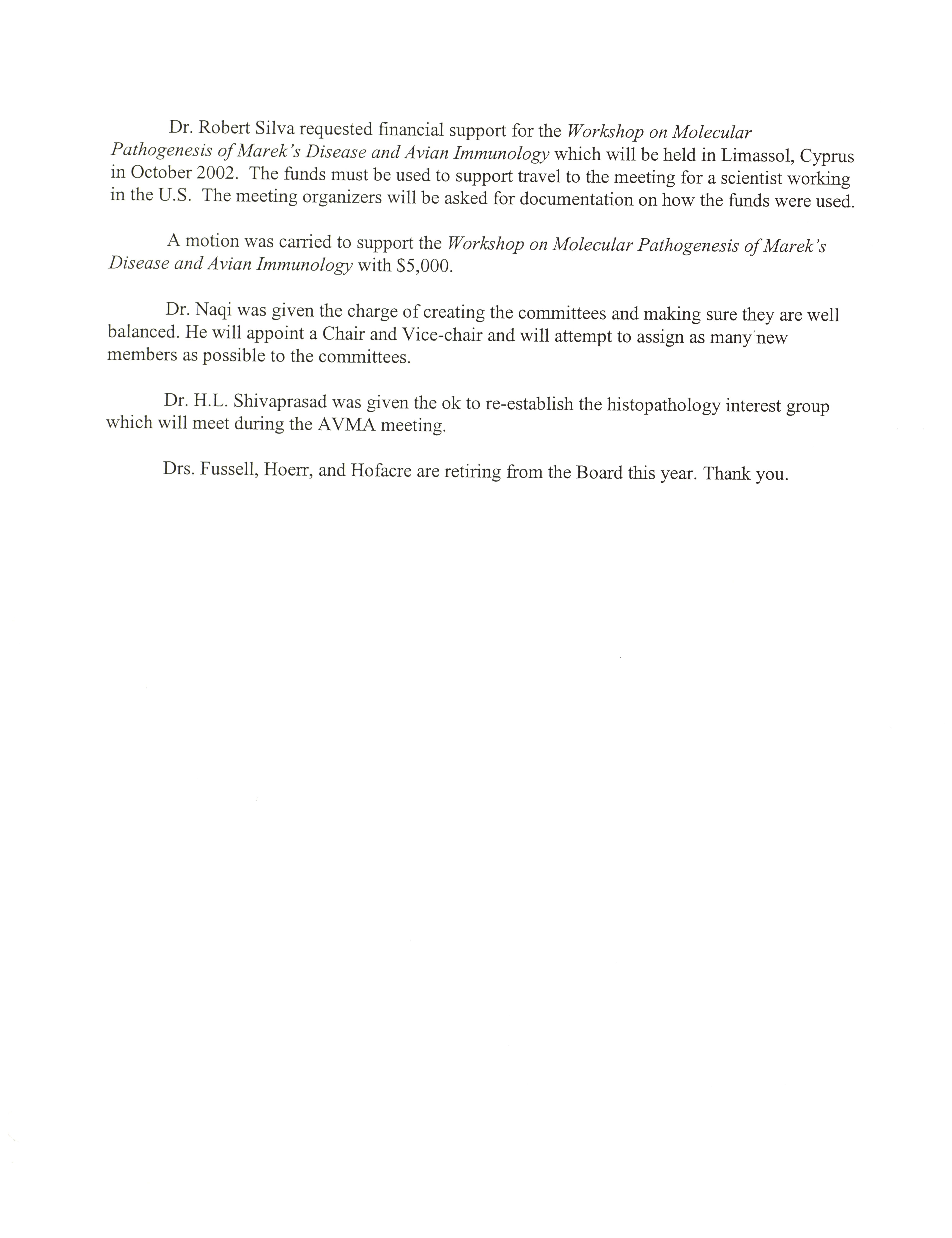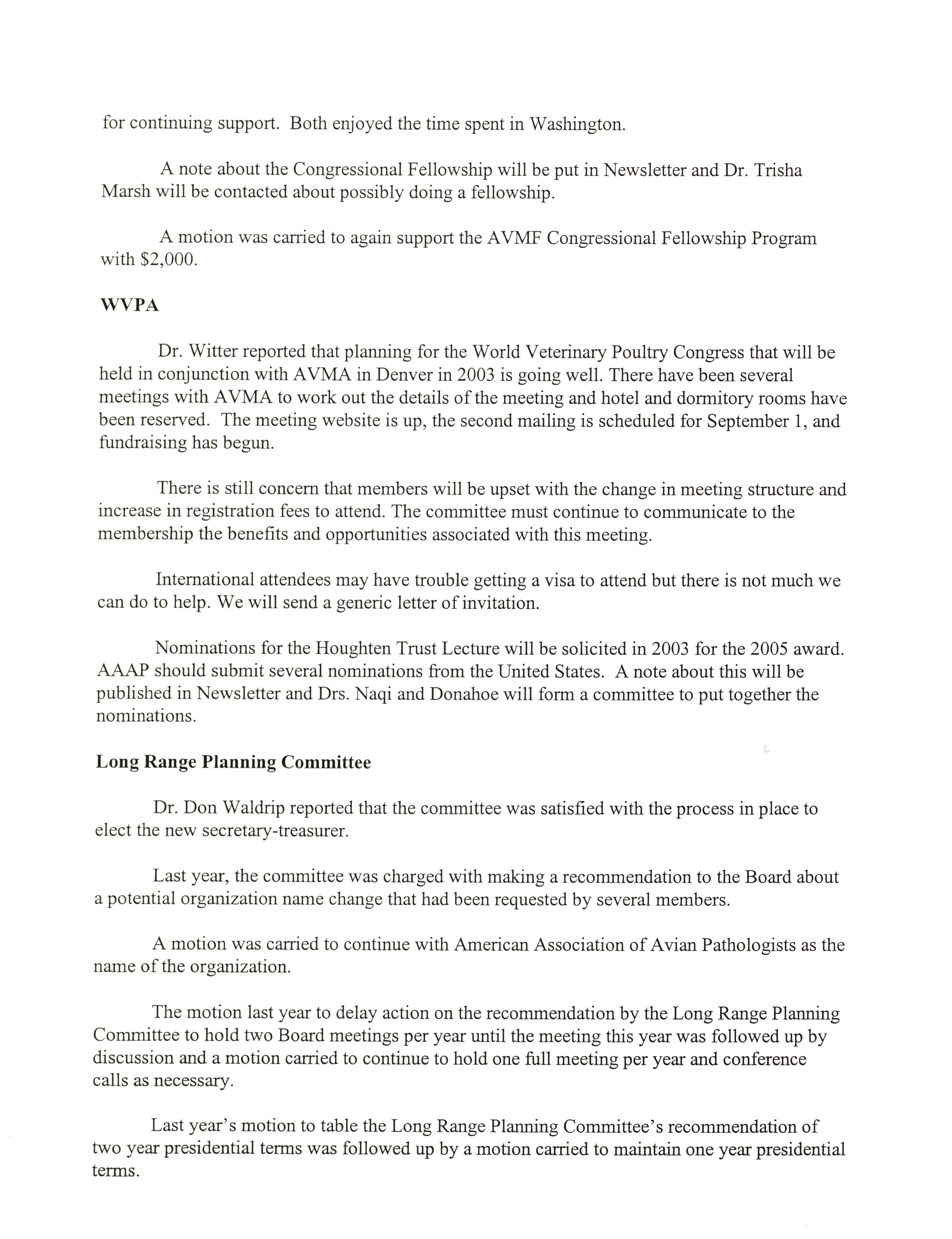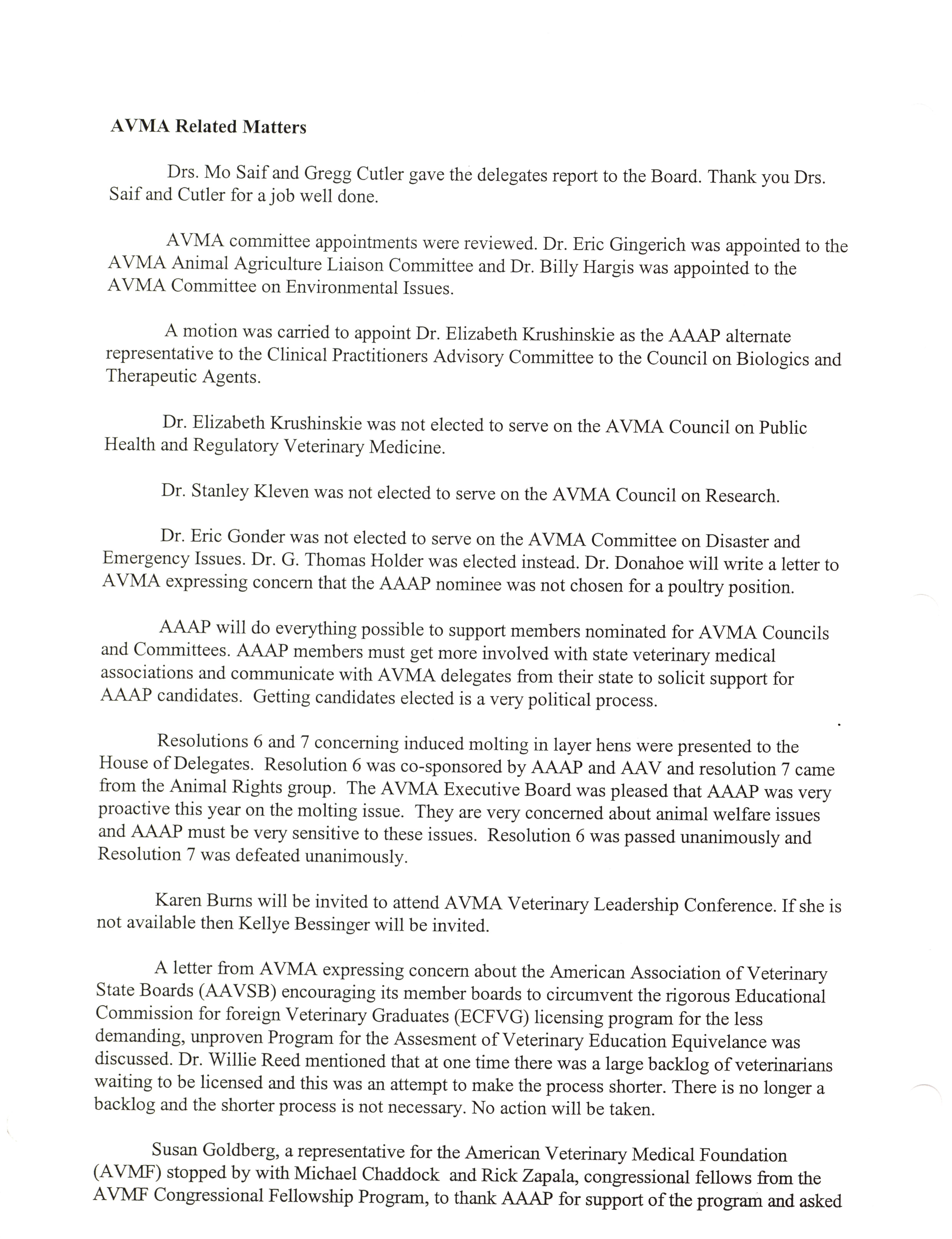 - "AAAP board meeting, July 12, 13, and 17, 2002", American Association of Avian Pathologists Collection, Iowa State University Library Digital Collections