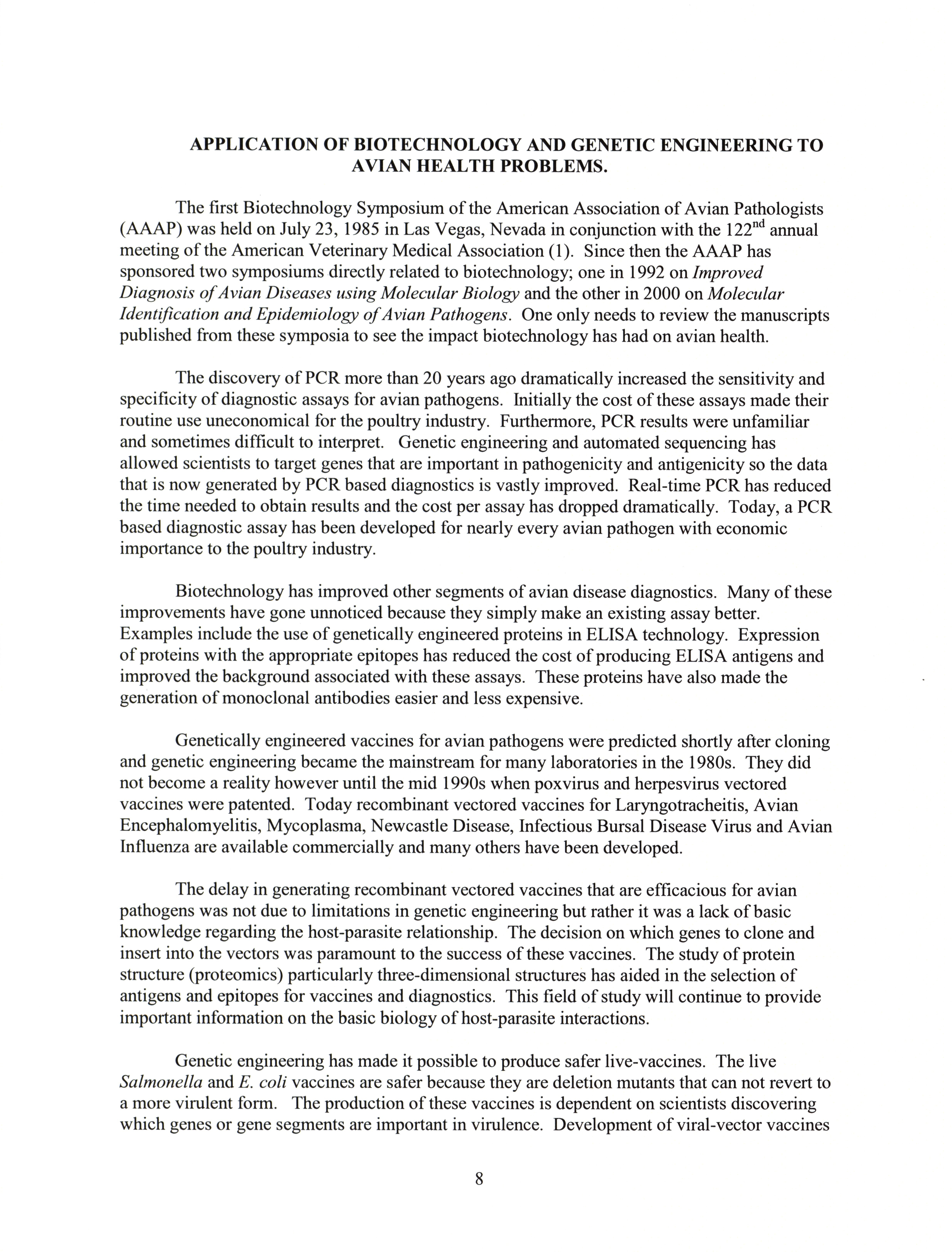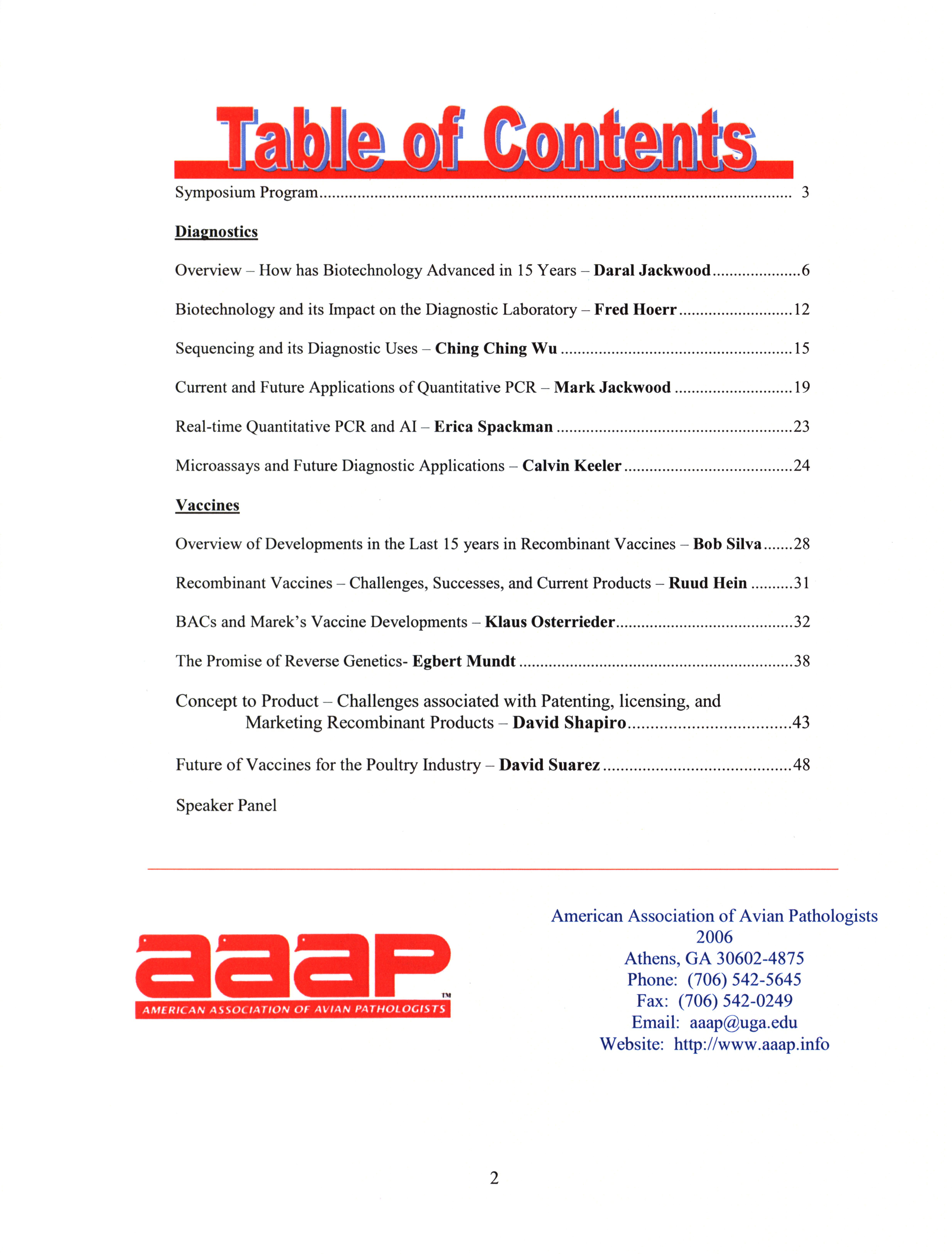 - "AAAP symposium program: biotechnology: impact on avian health, July 15, 2007", American Association of Avian Pathologists Collection, Iowa State University Library Digital Collections