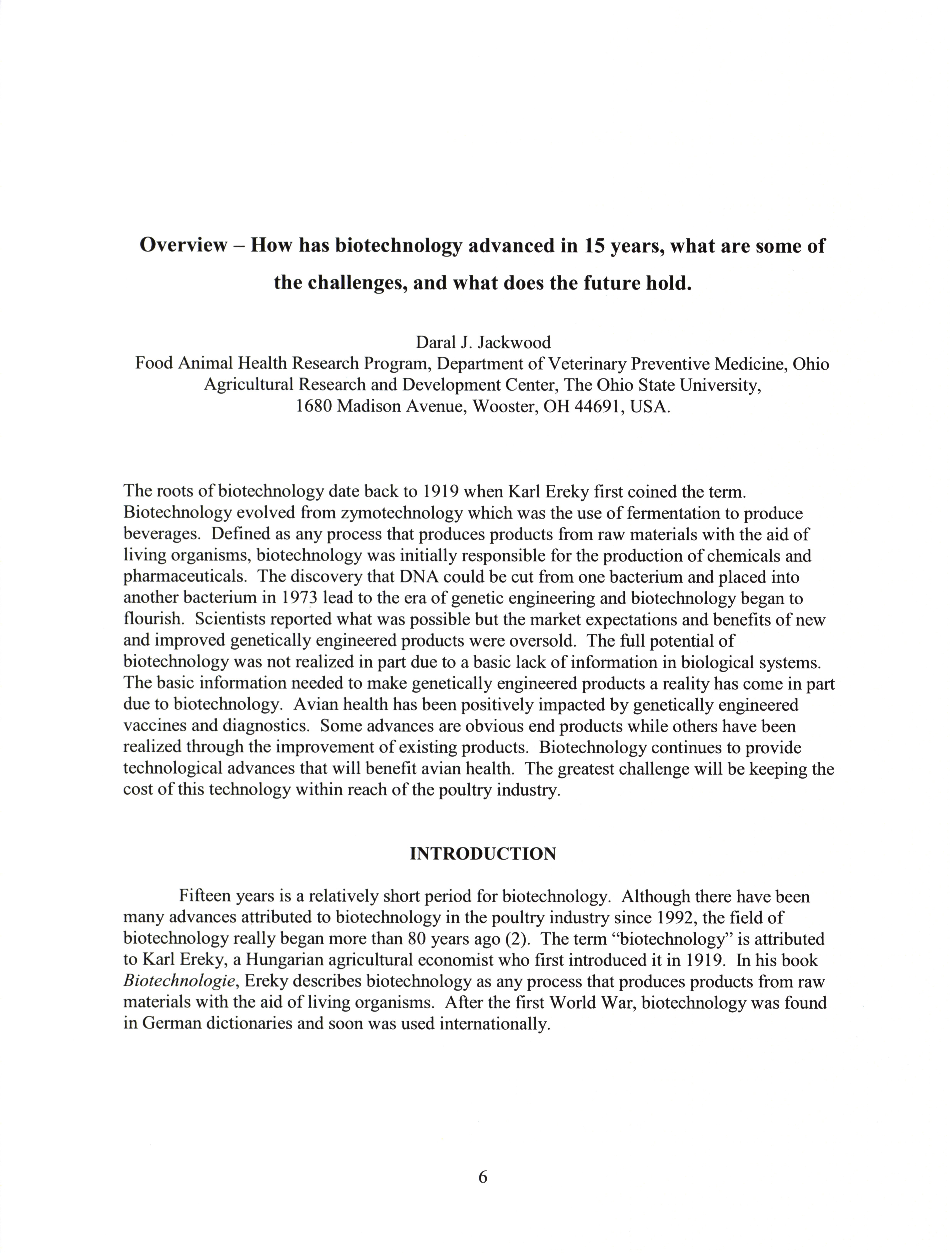 AAAP symposium program: biotechnology: impact on avian health, July 15, 2007 Item Info