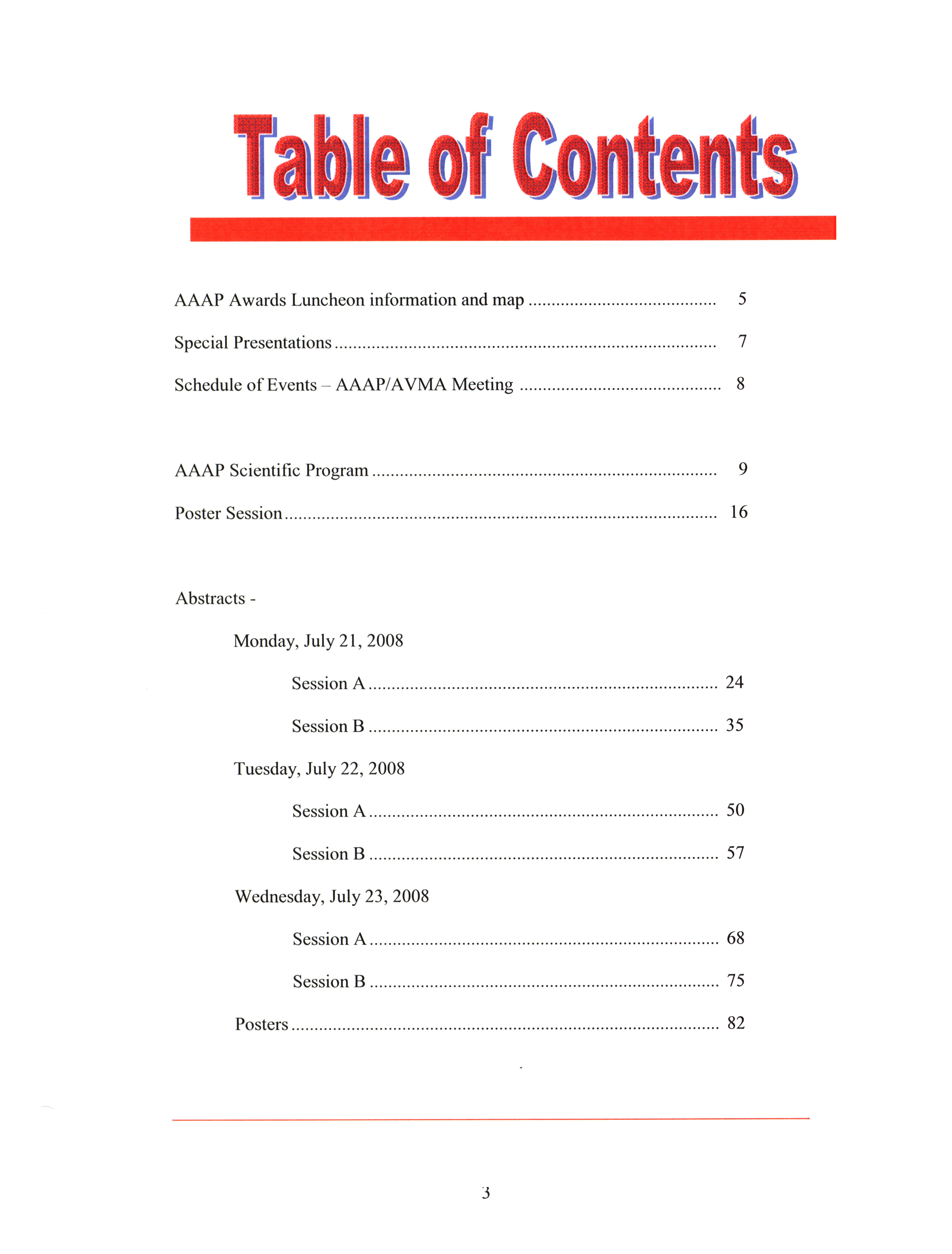 AAAP/AVMA scientific program, July 19-23, 2008 Item Info