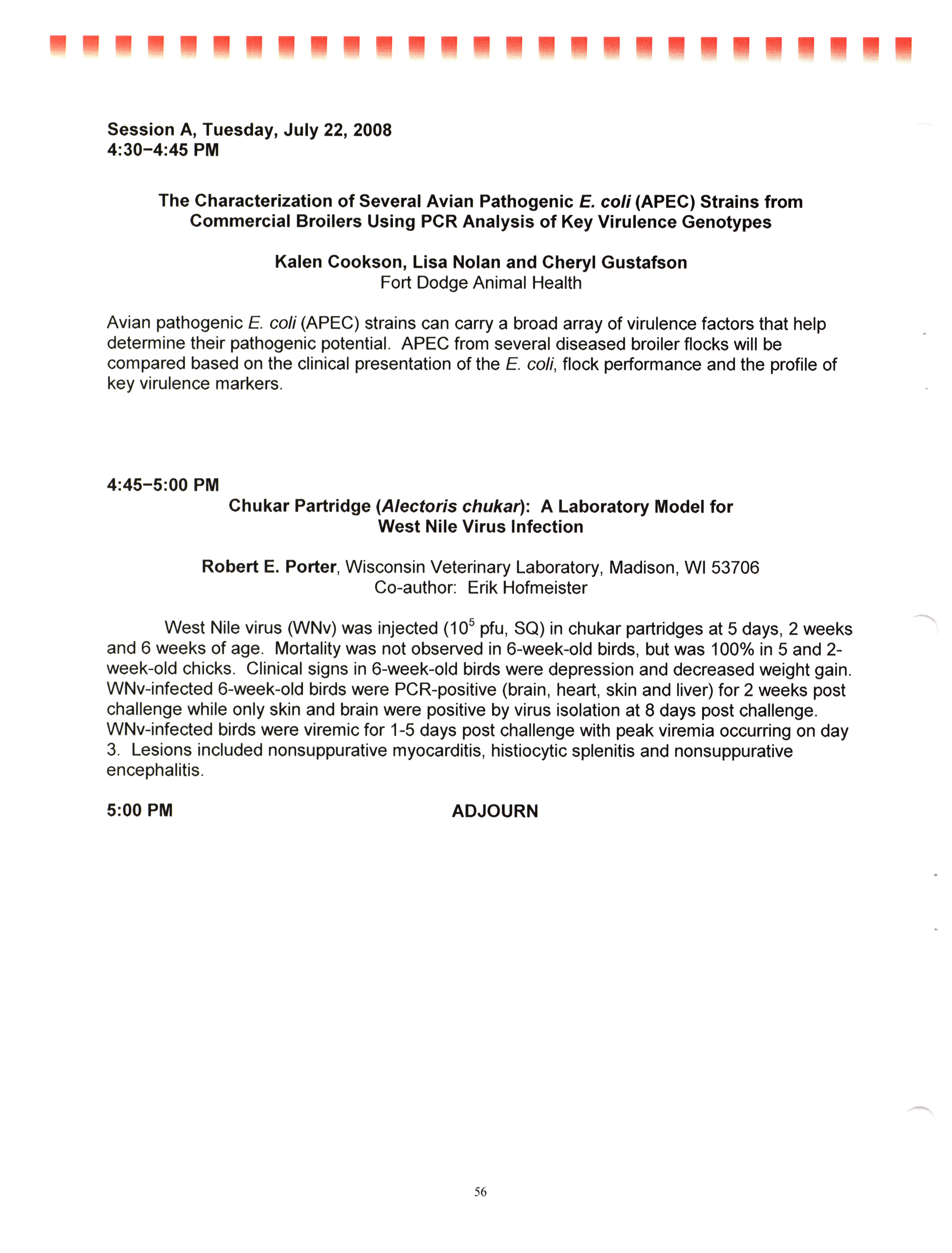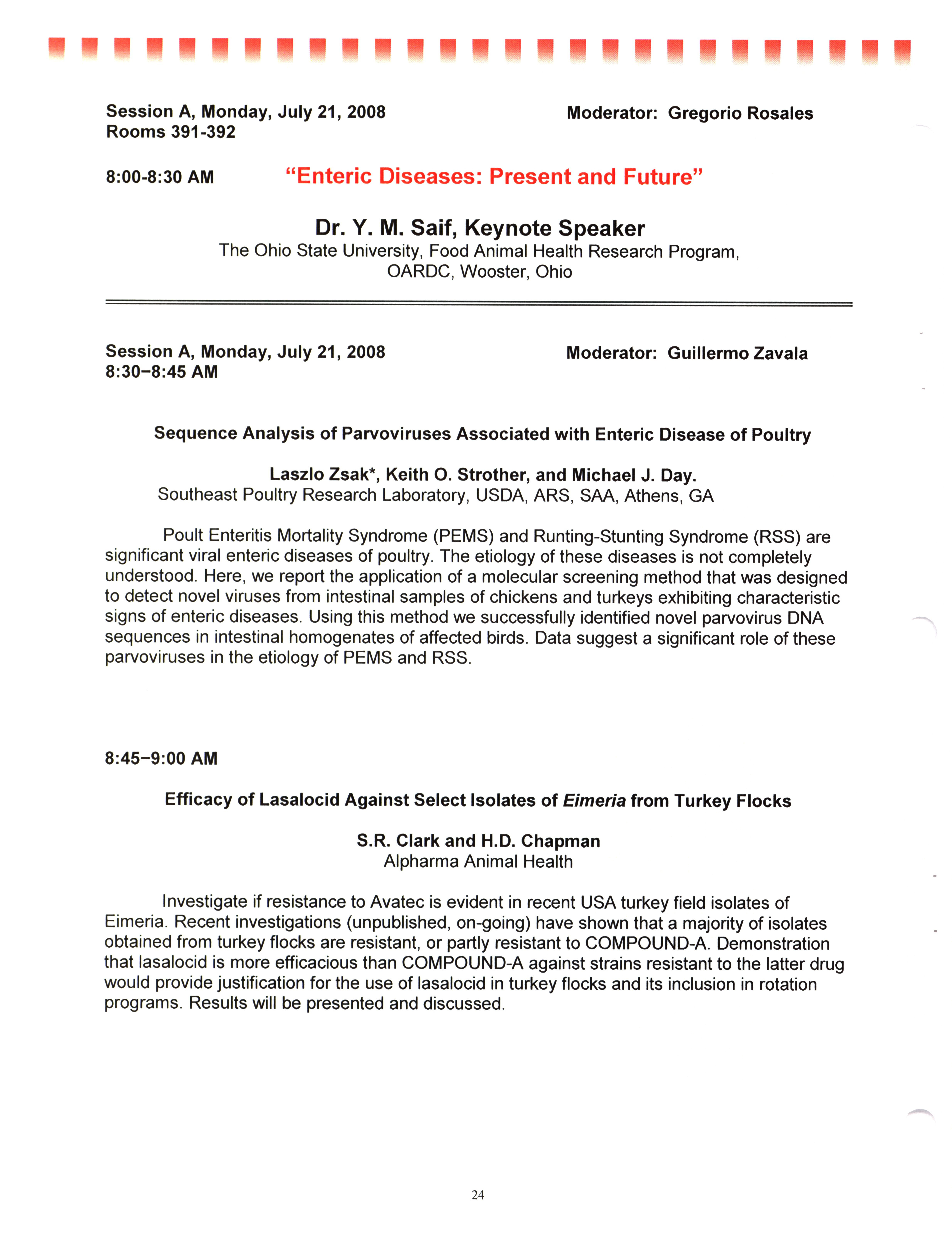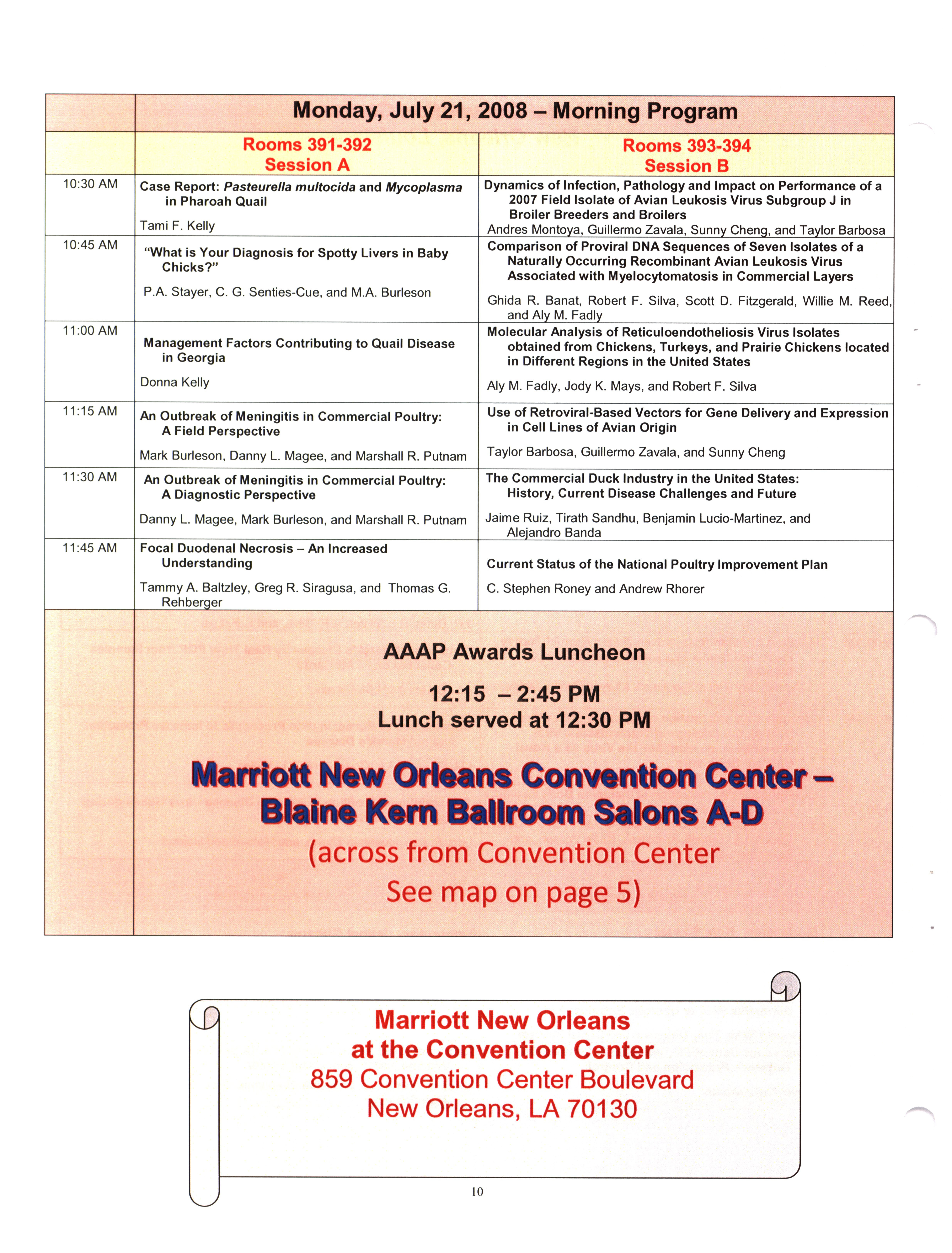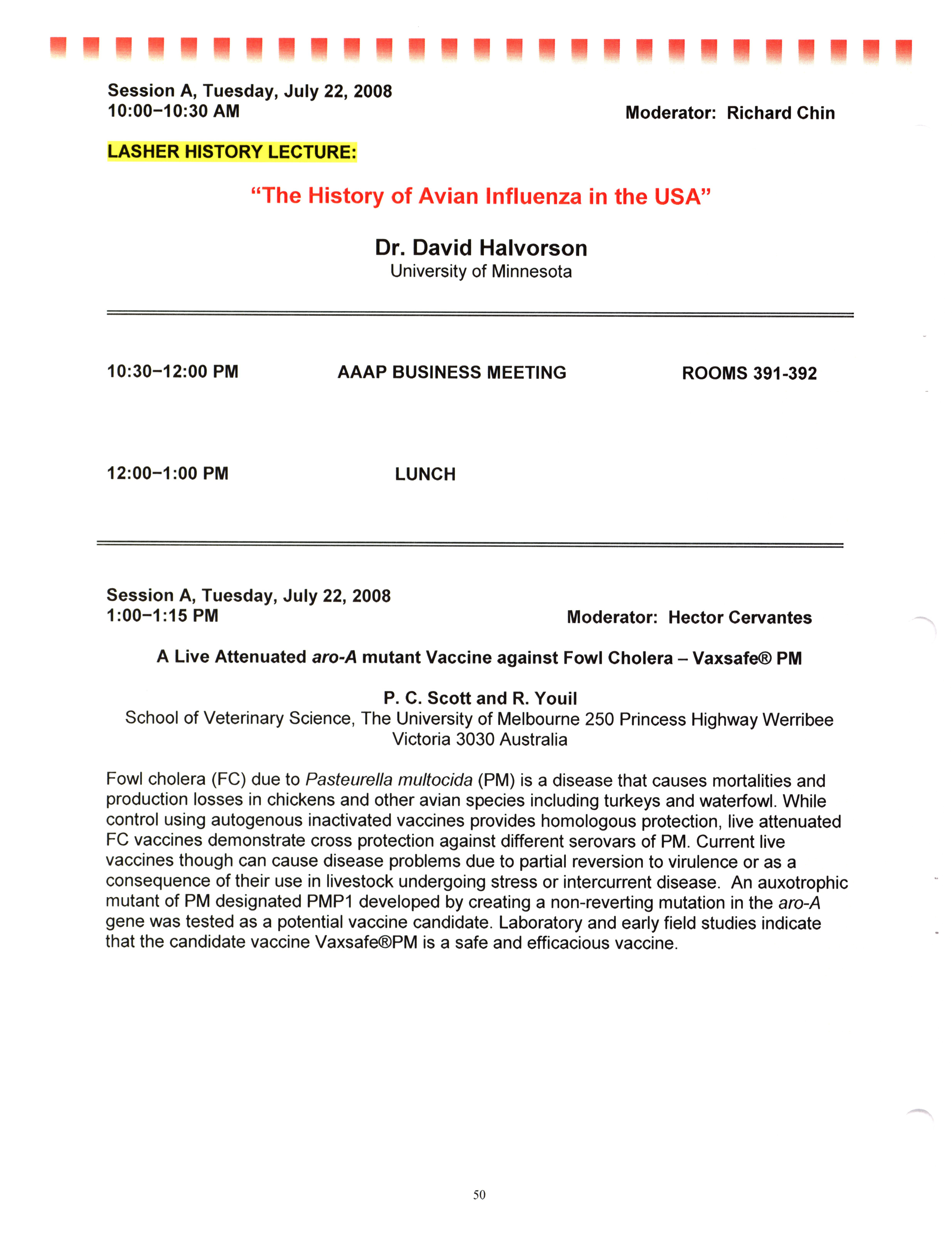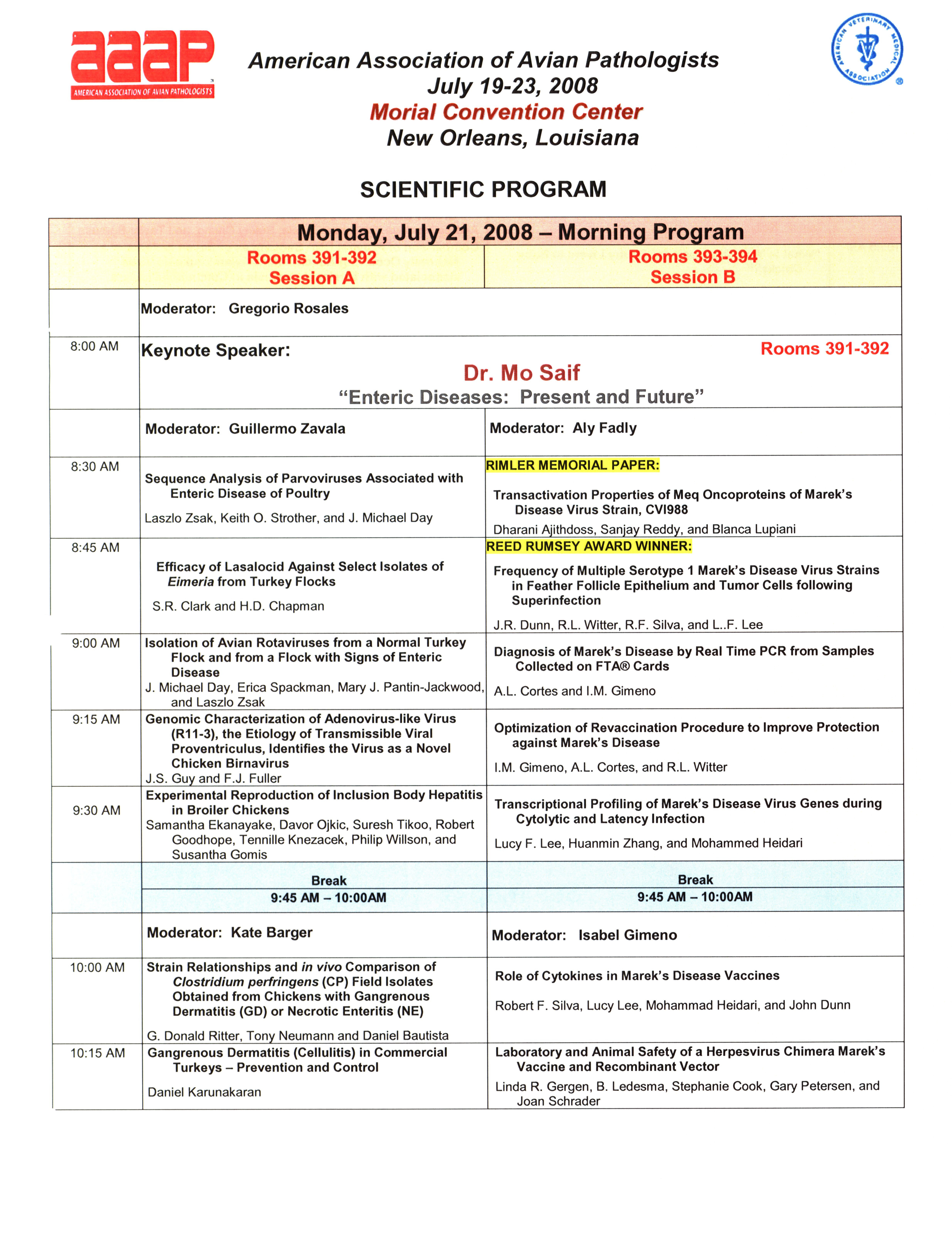 - "AAAP/AVMA scientific program, July 19-23, 2008", American Association of Avian Pathologists Collection, Iowa State University Library Digital Collections