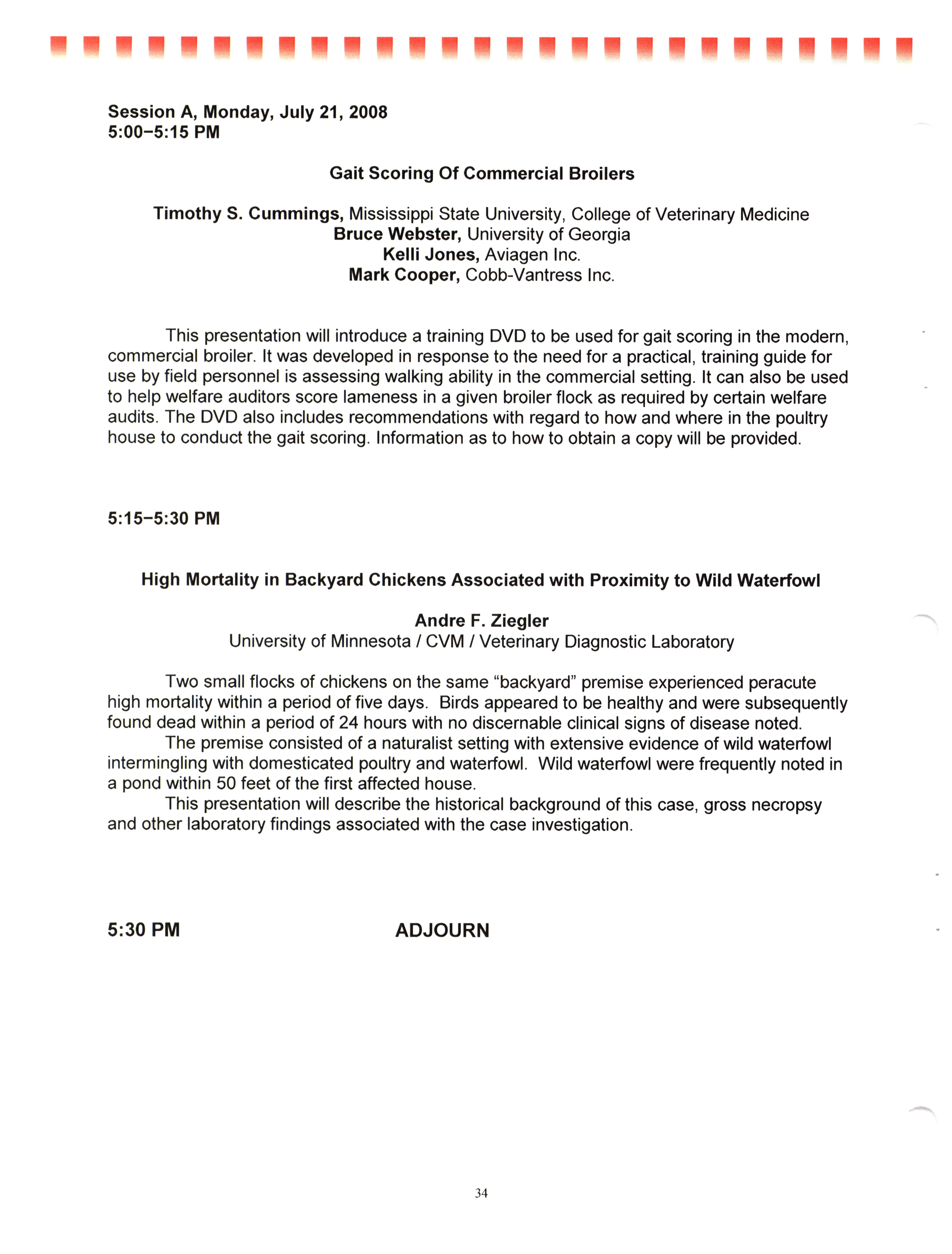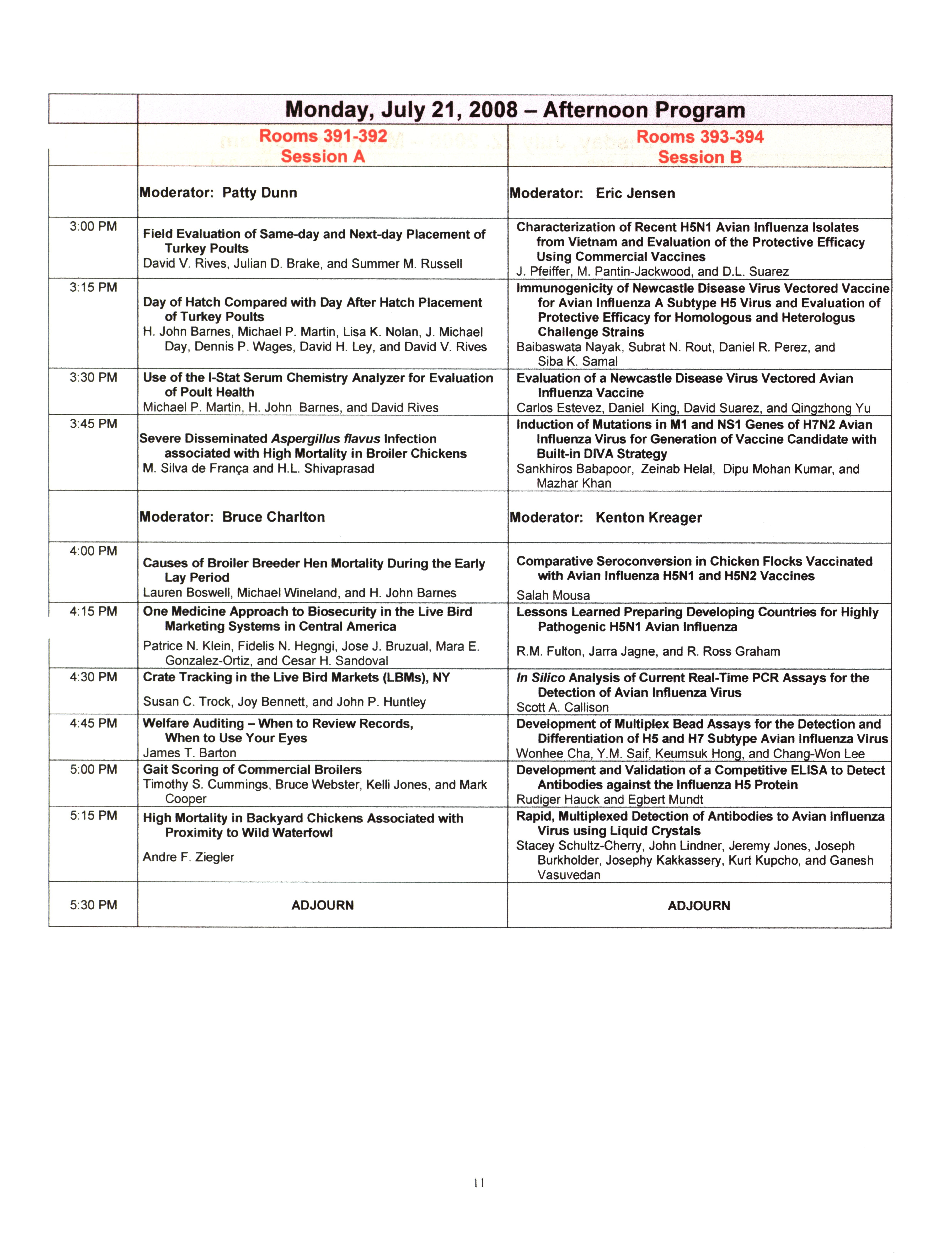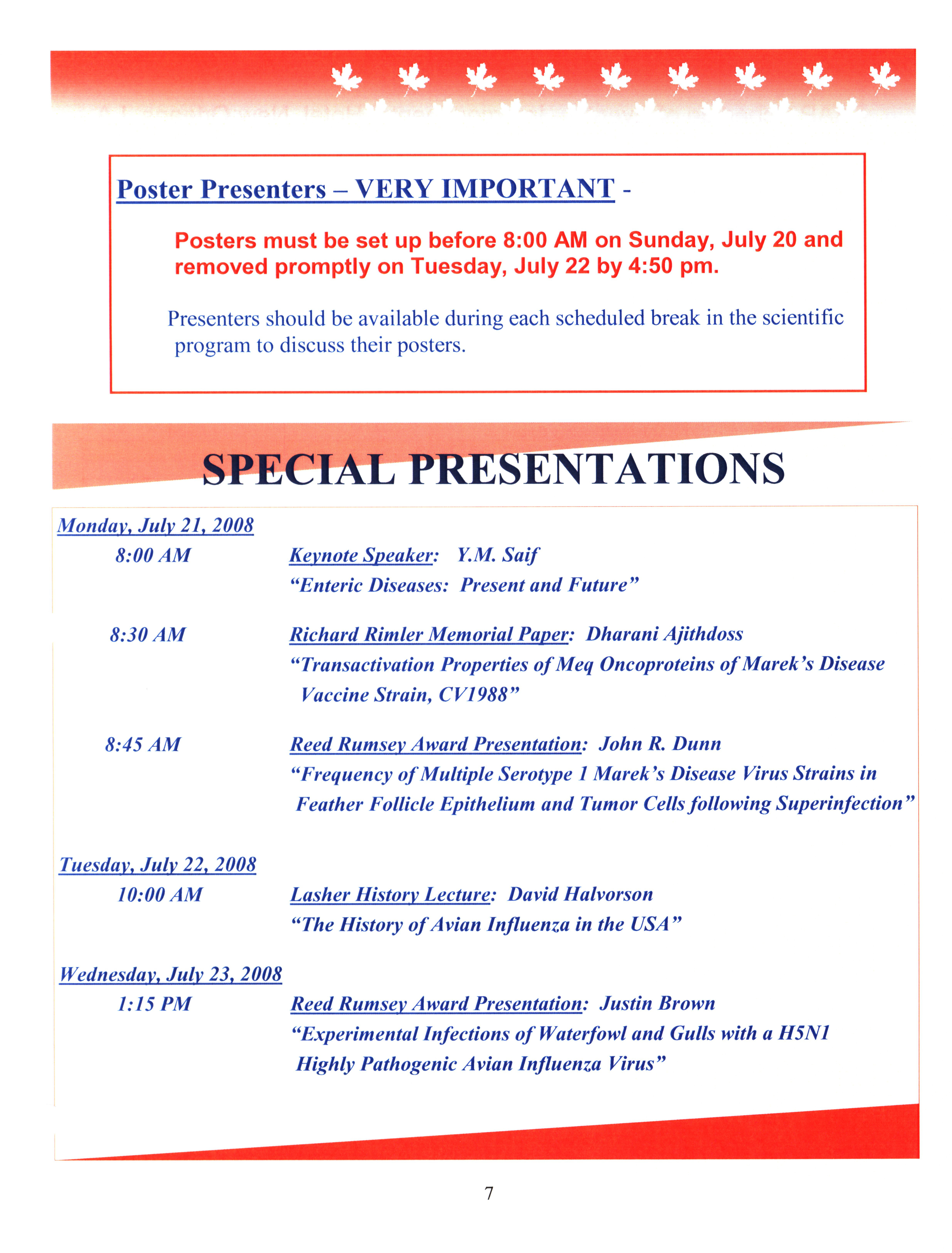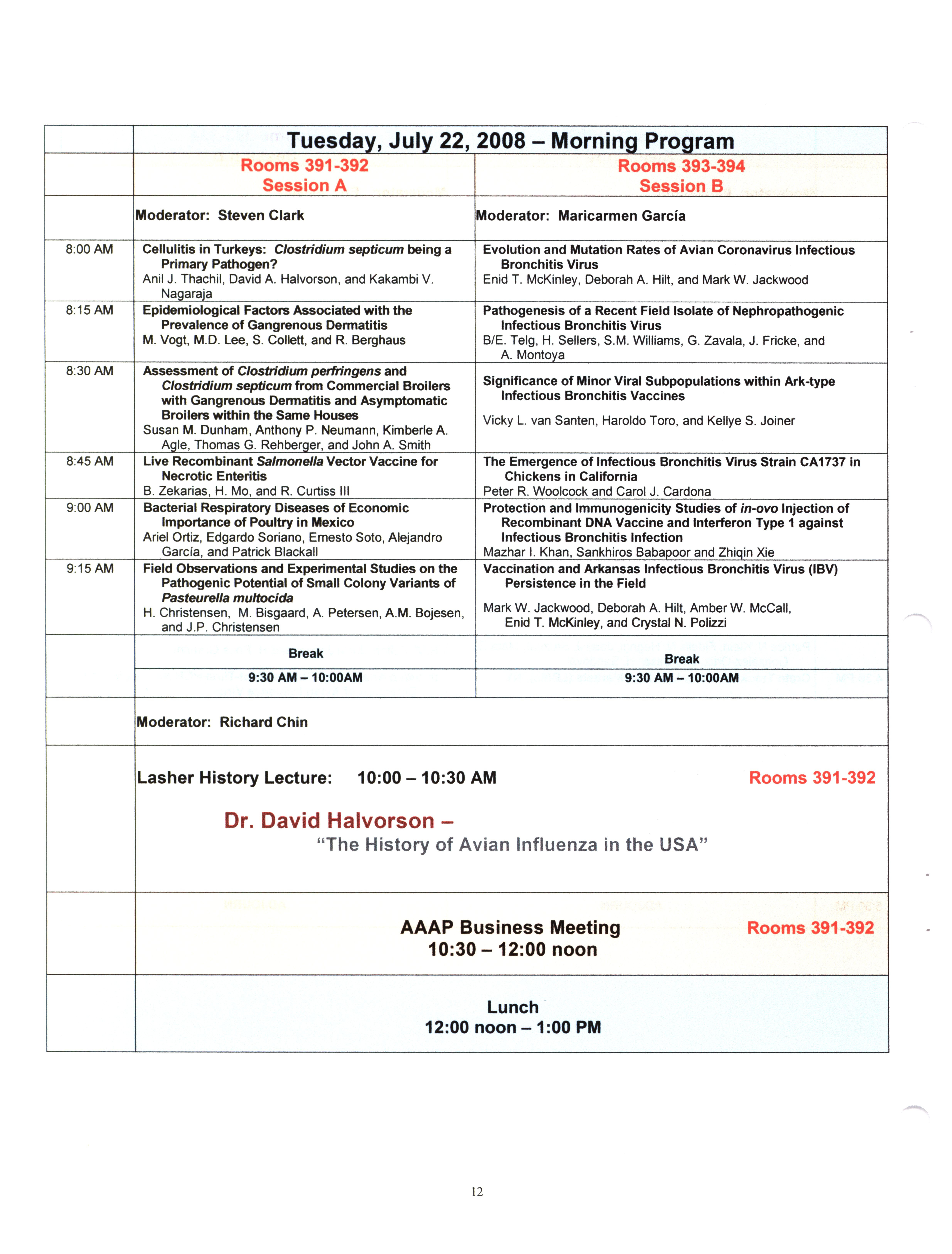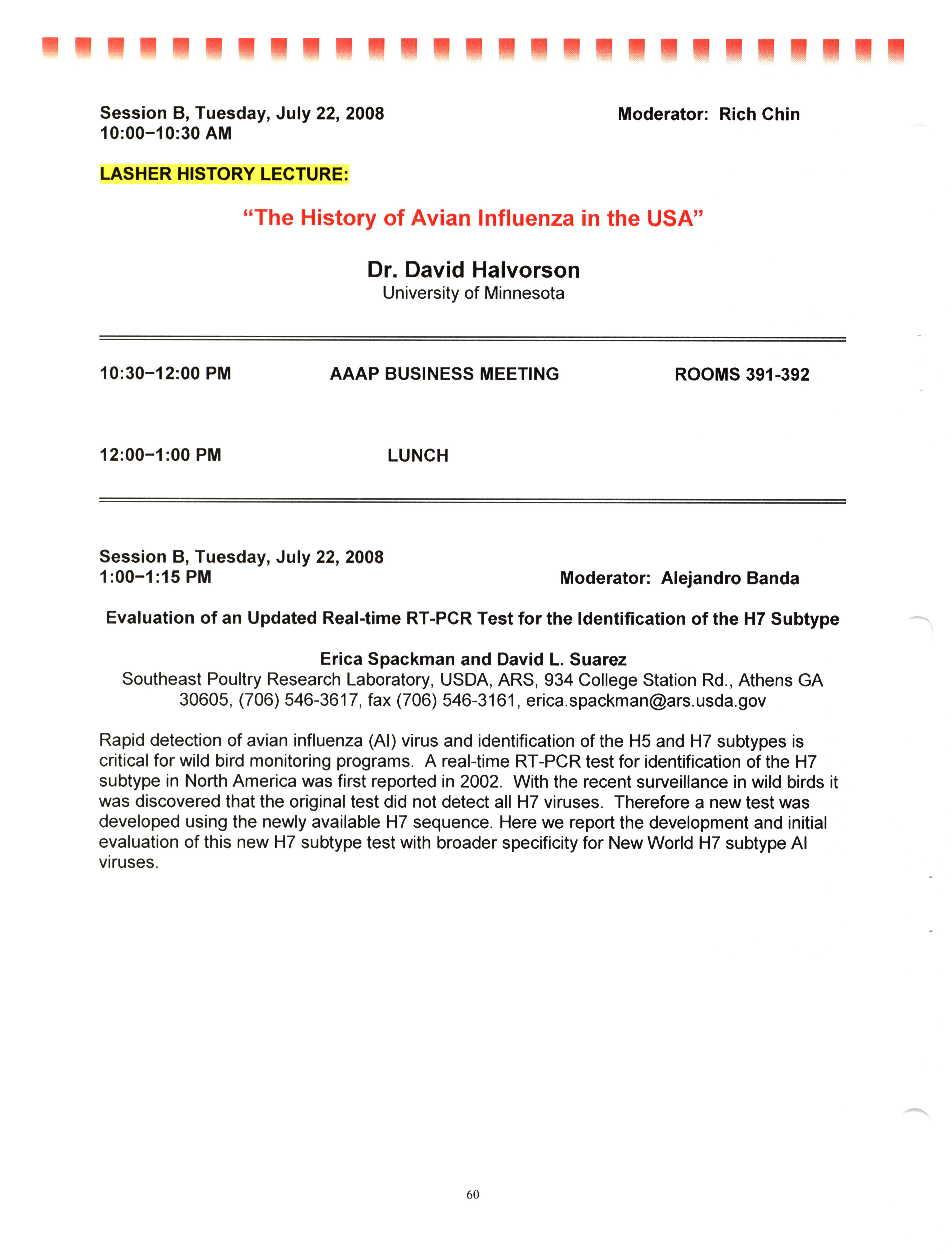- "AAAP/AVMA scientific program, July 19-23, 2008", American Association of Avian Pathologists Collection, Iowa State University Library Digital Collections