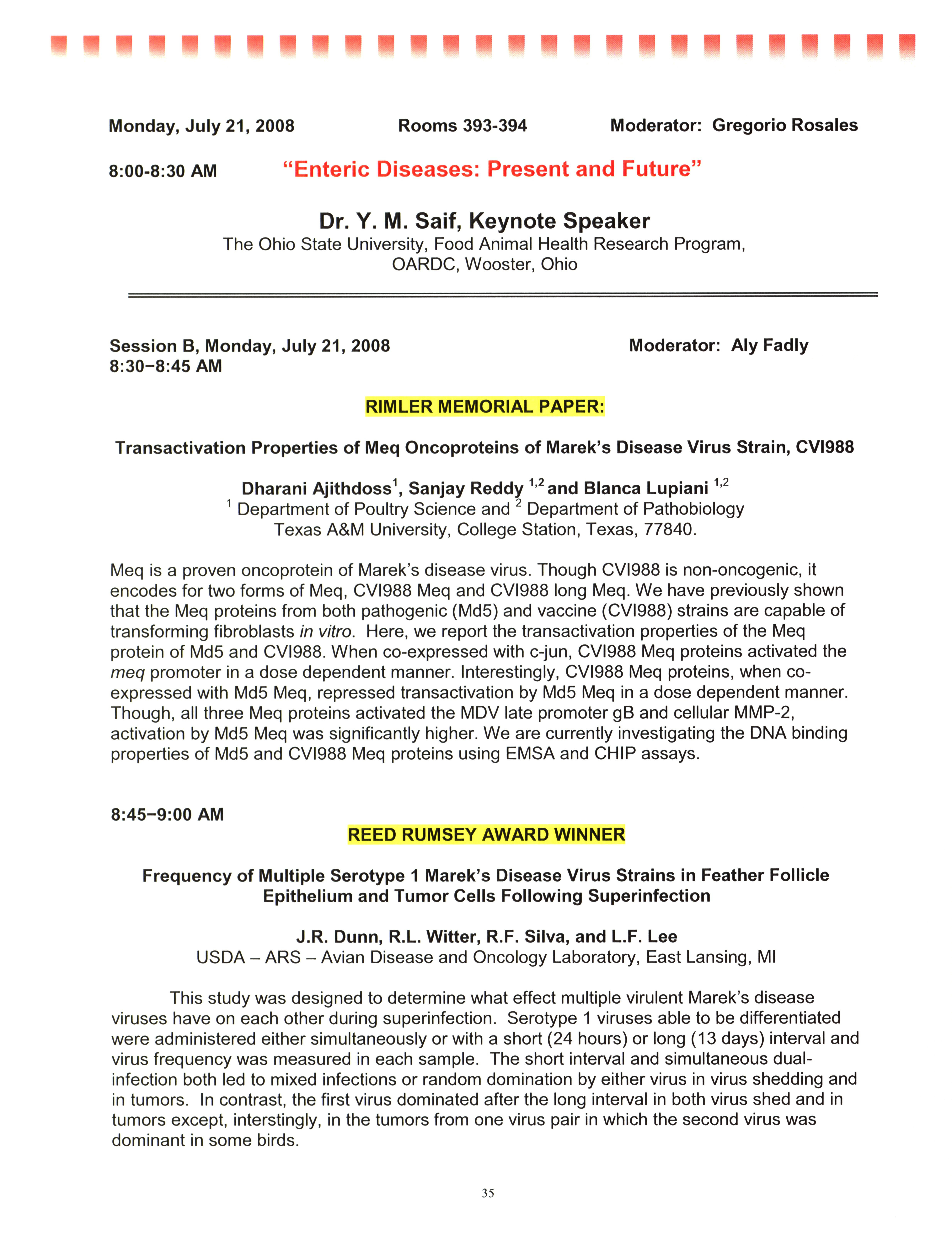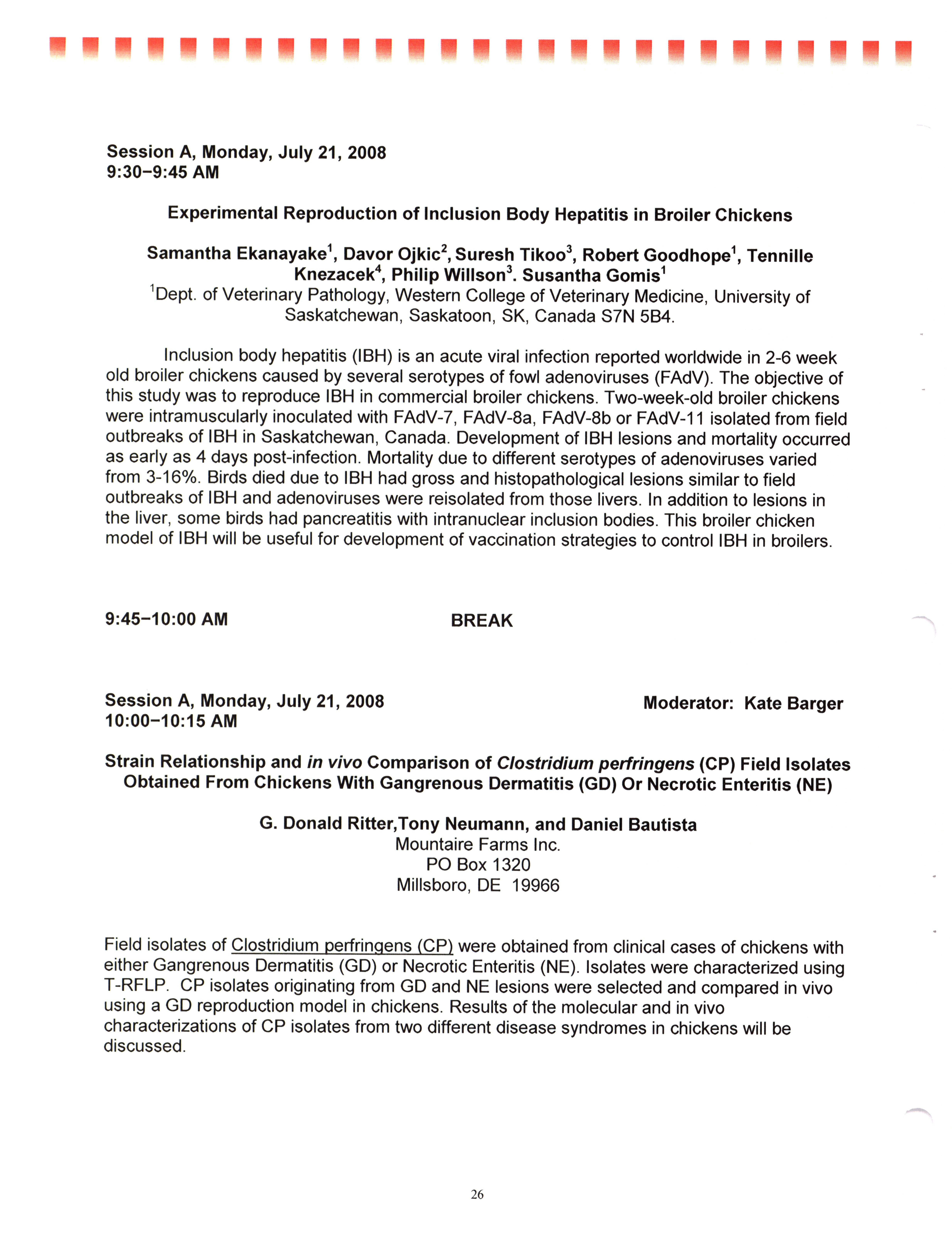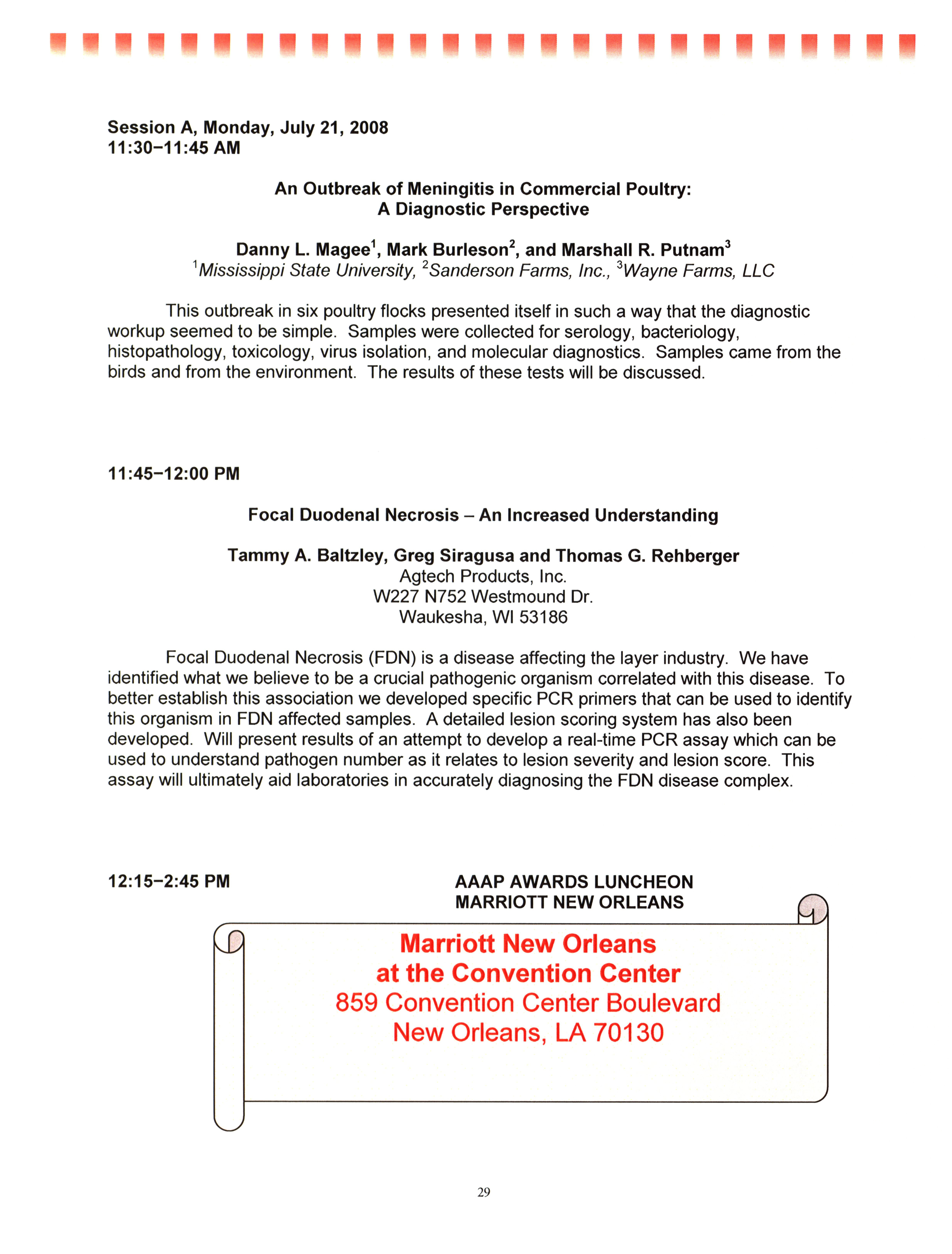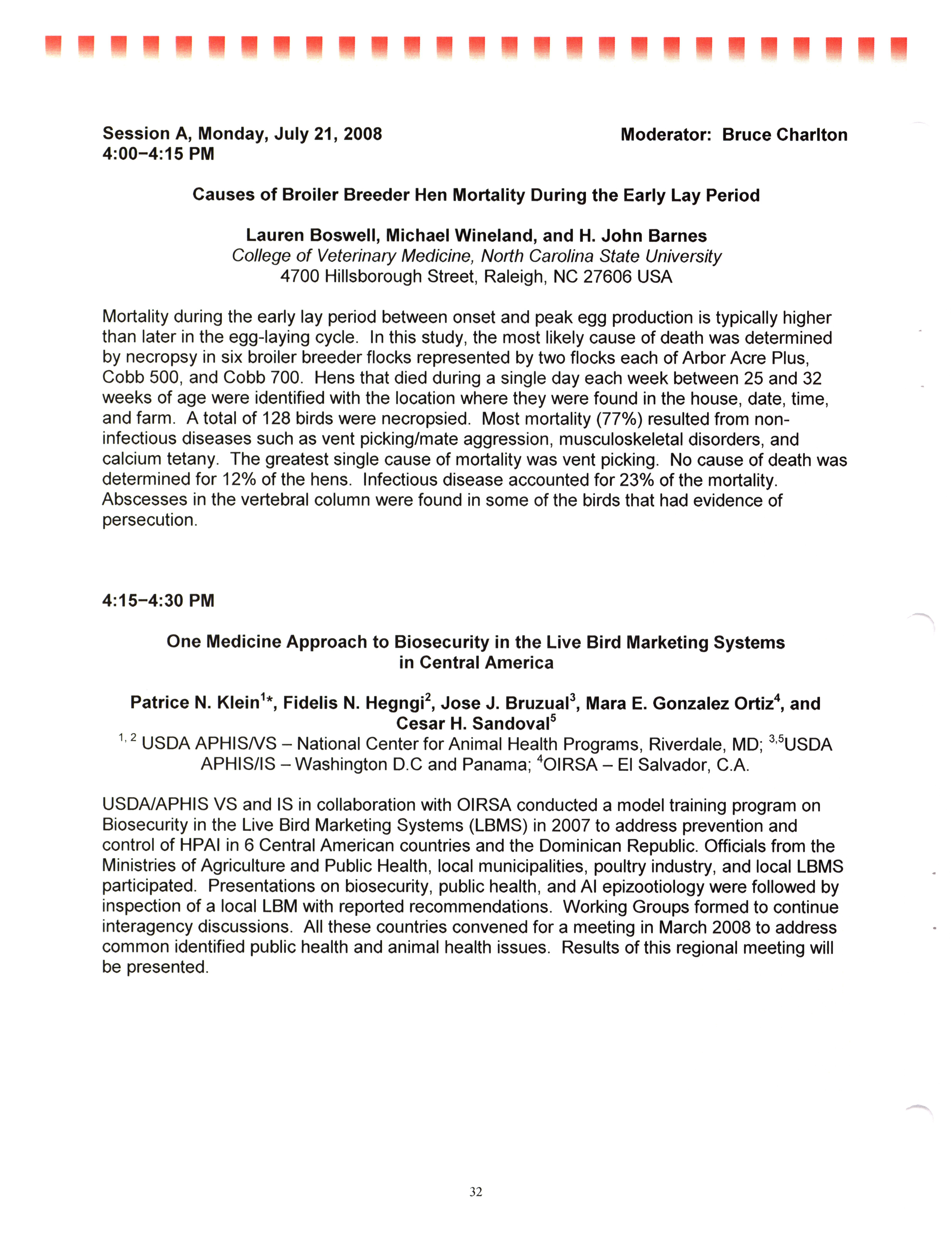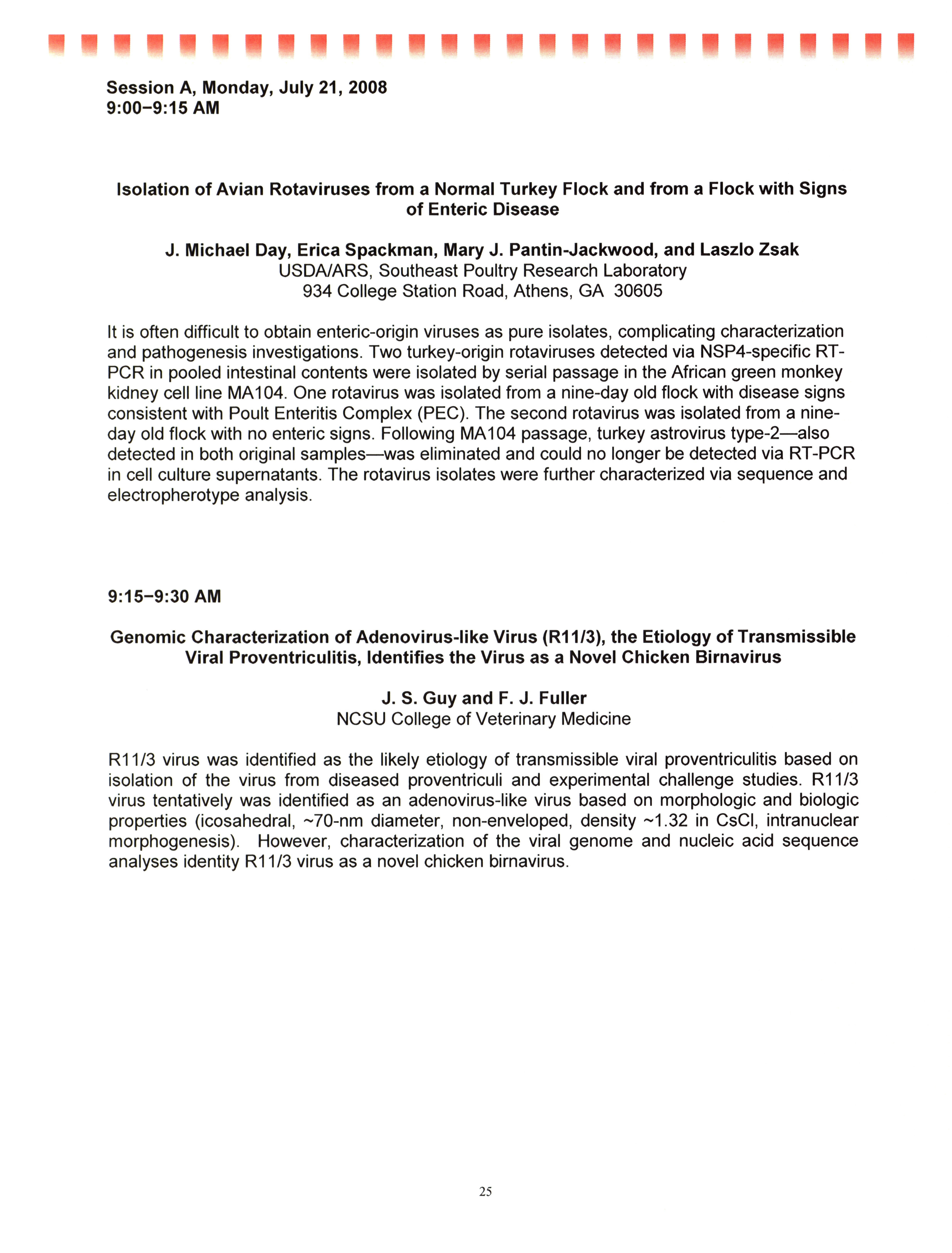 - "AAAP/AVMA scientific program, July 19-23, 2008", American Association of Avian Pathologists Collection, Iowa State University Library Digital Collections