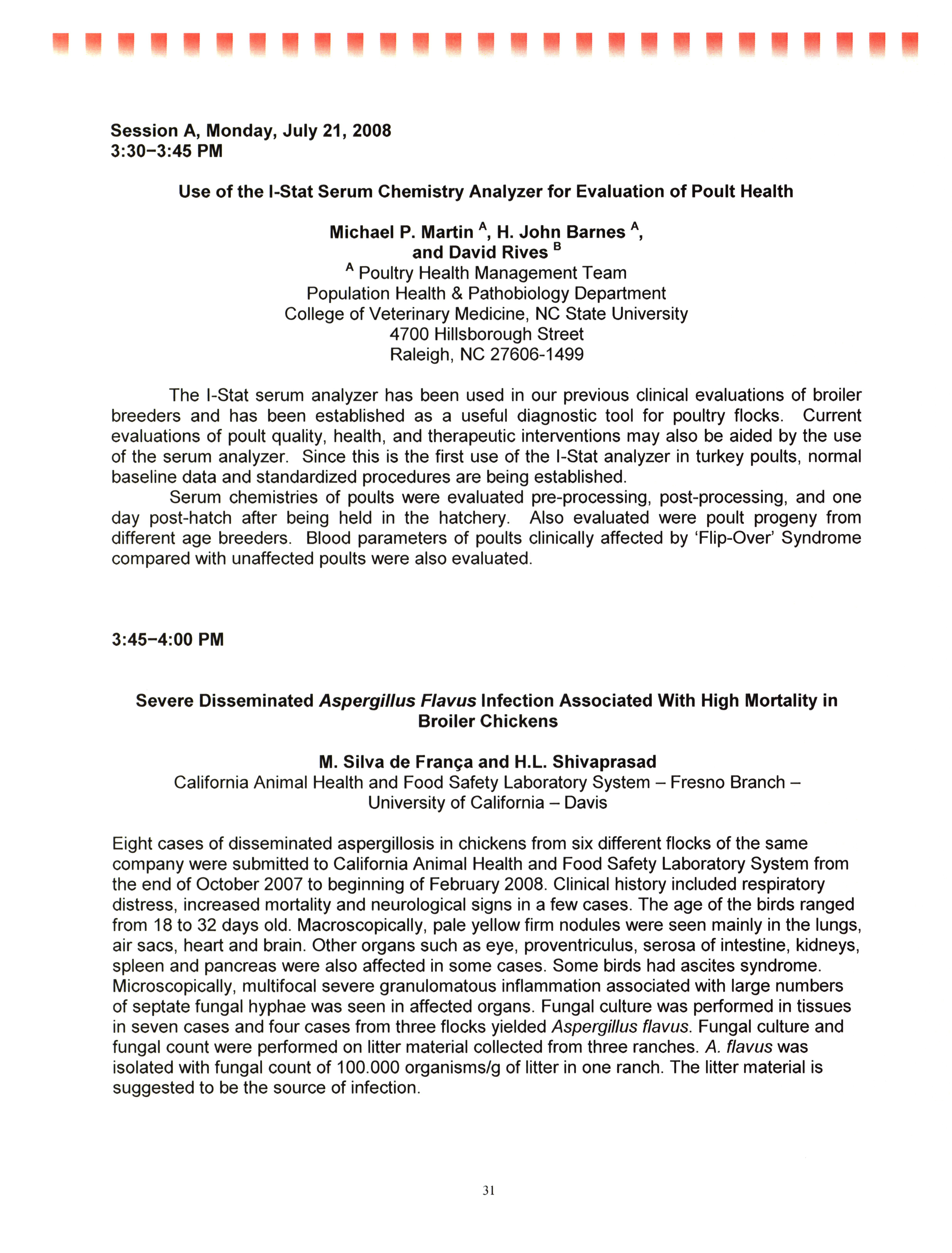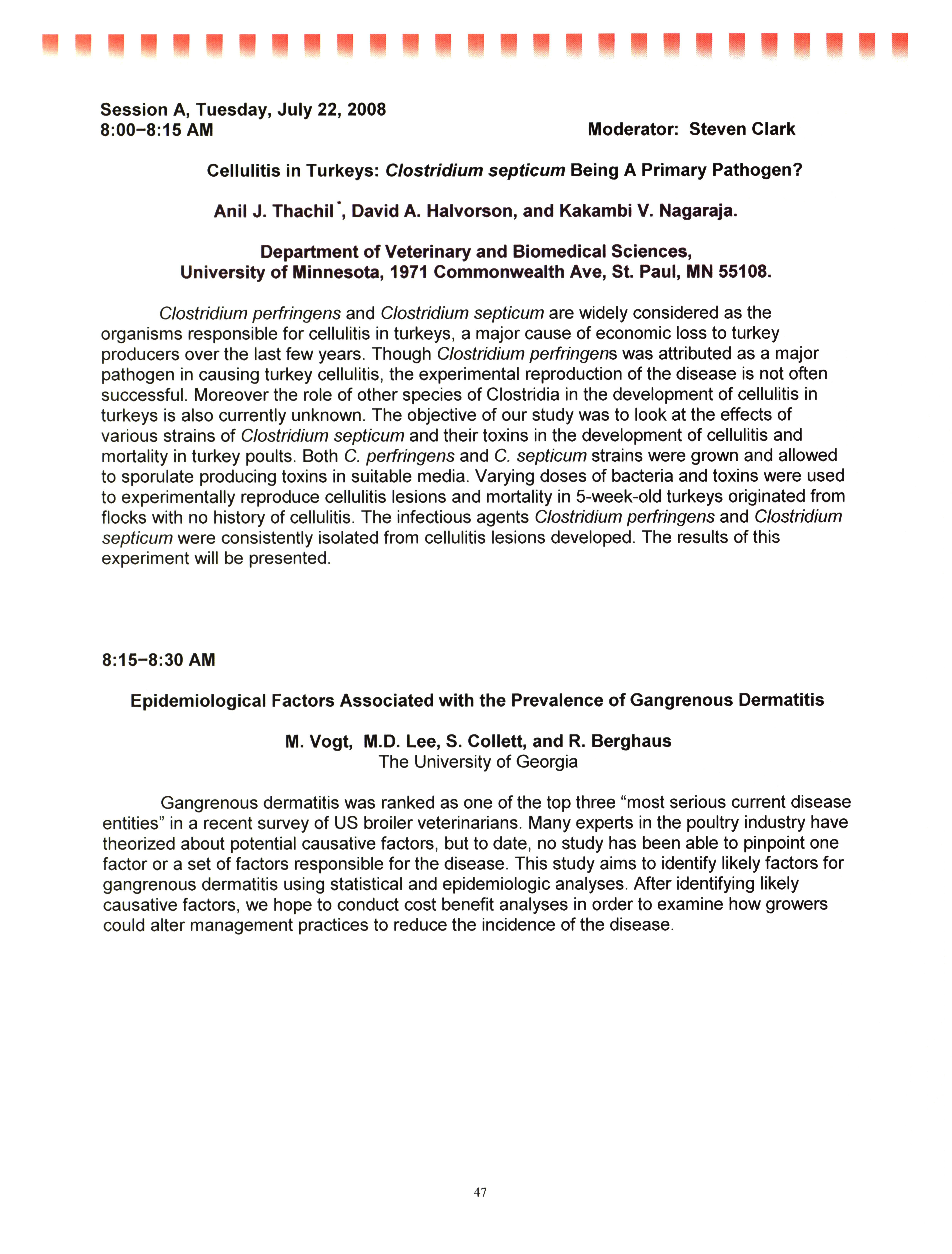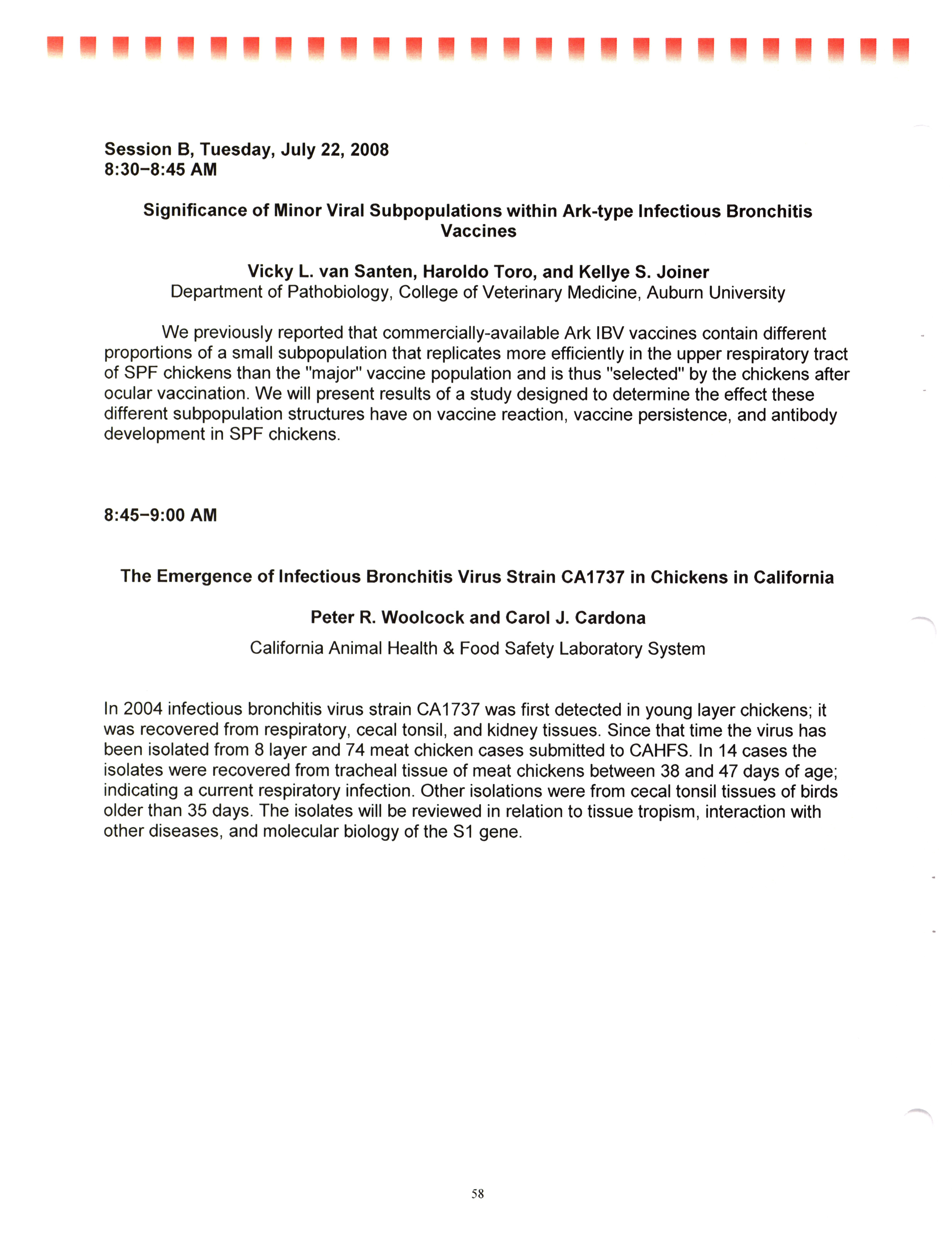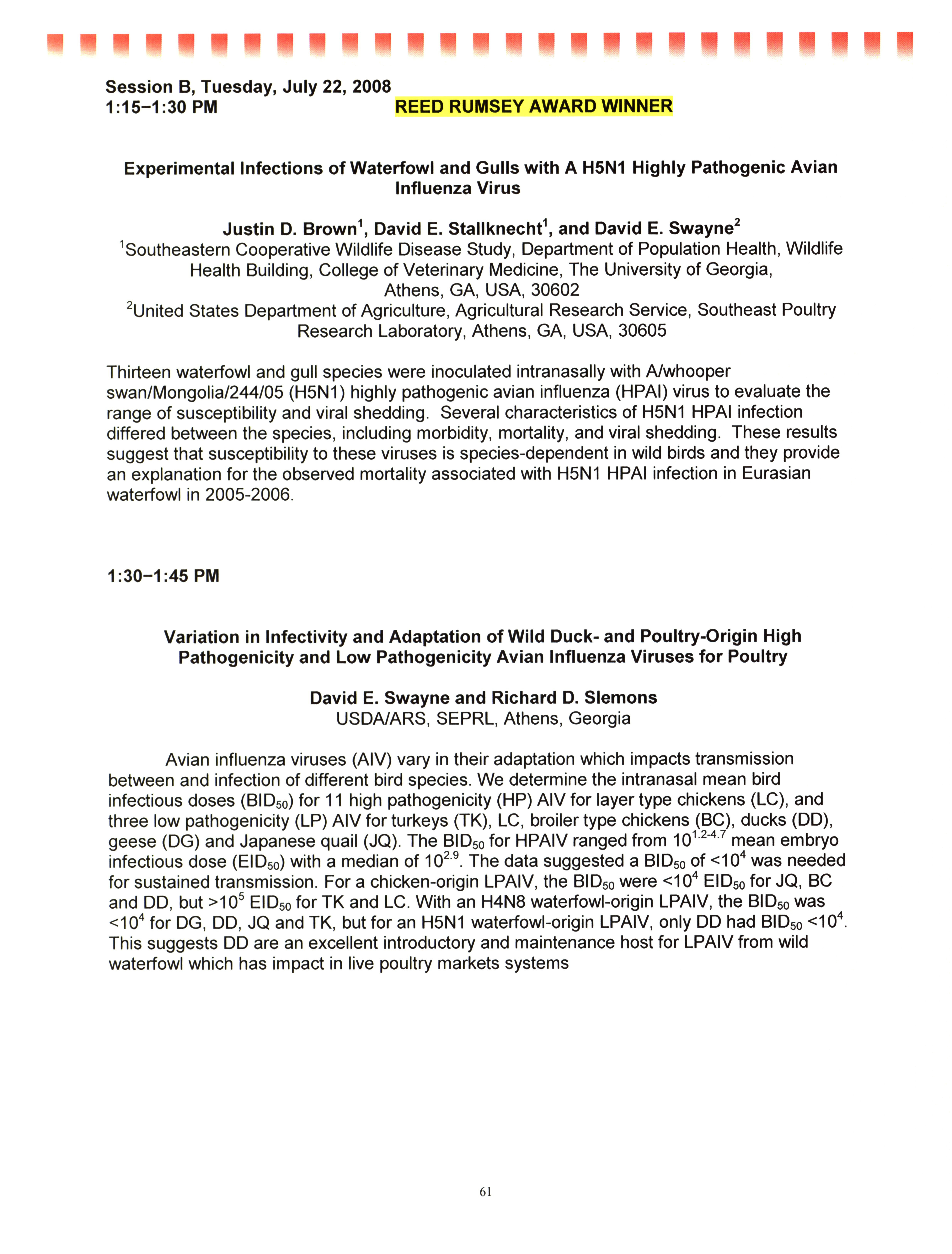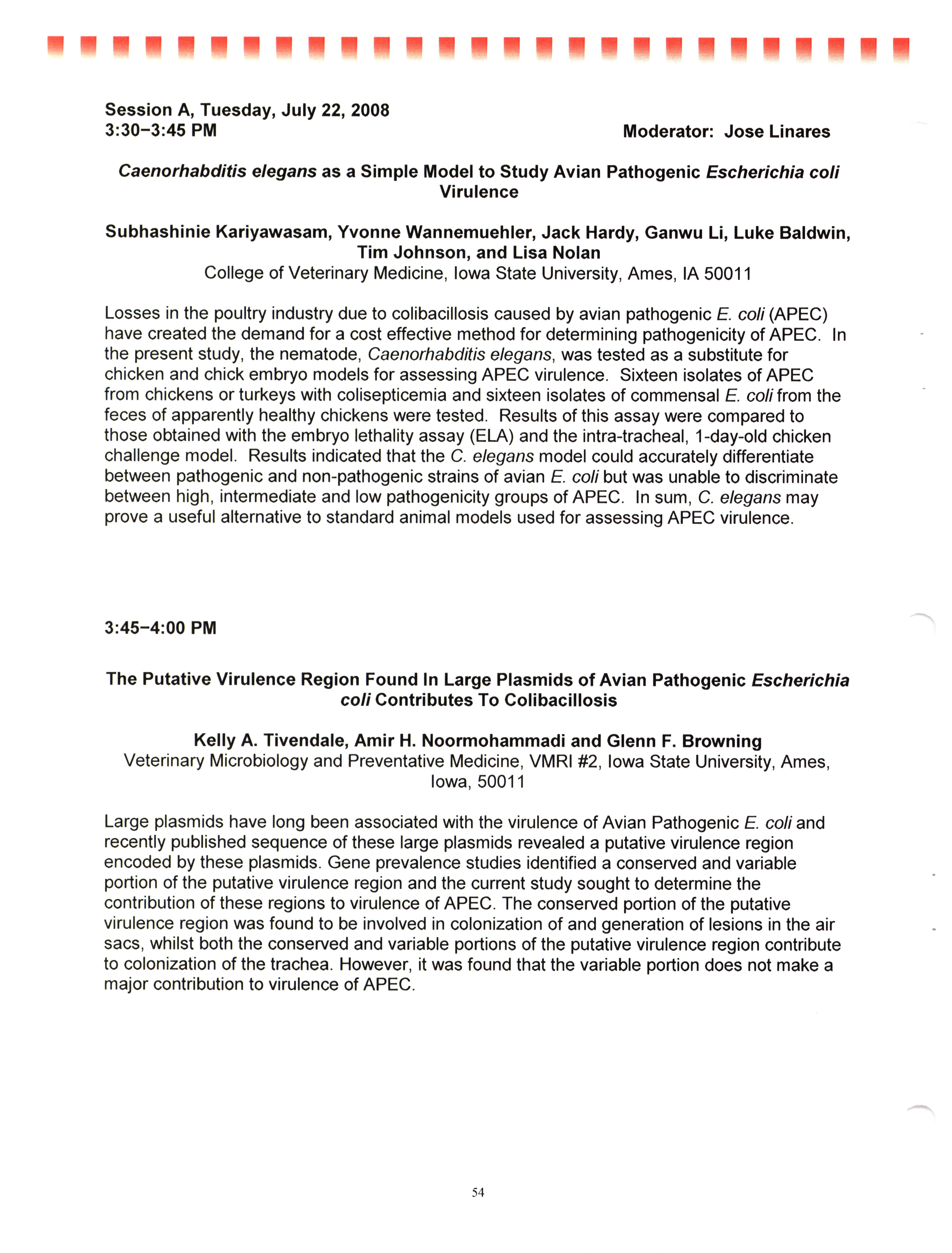- "AAAP/AVMA scientific program, July 19-23, 2008", American Association of Avian Pathologists Collection, Iowa State University Library Digital Collections