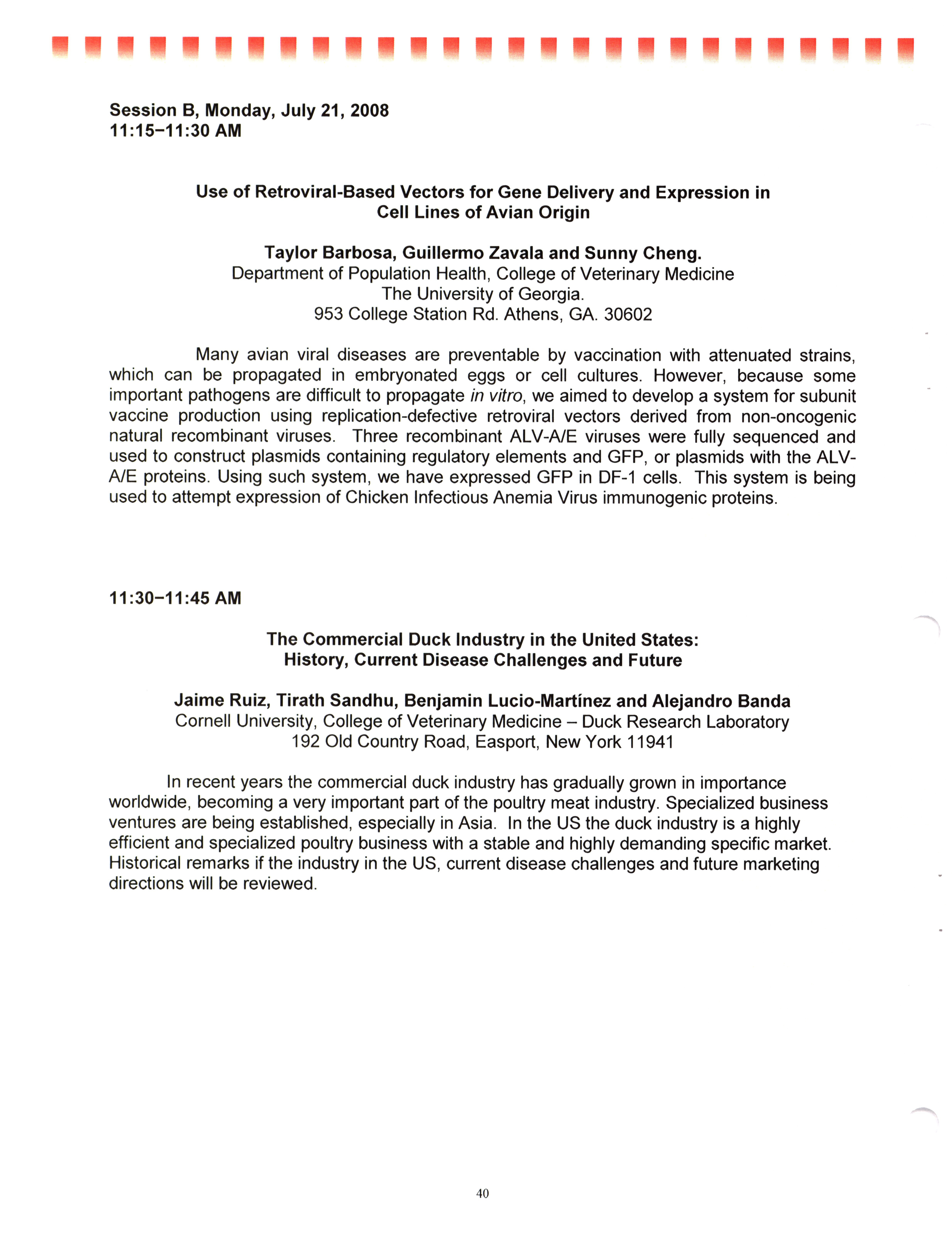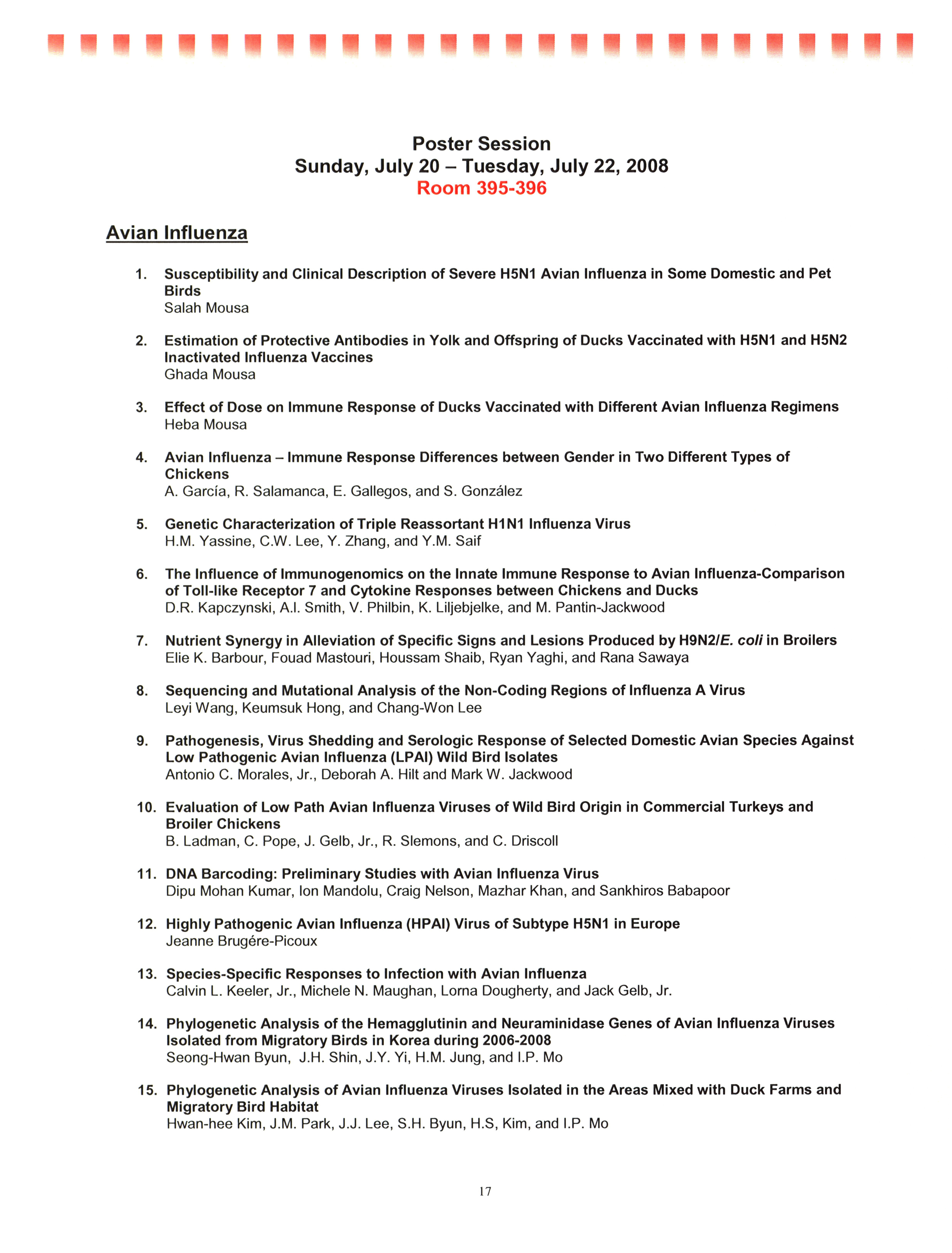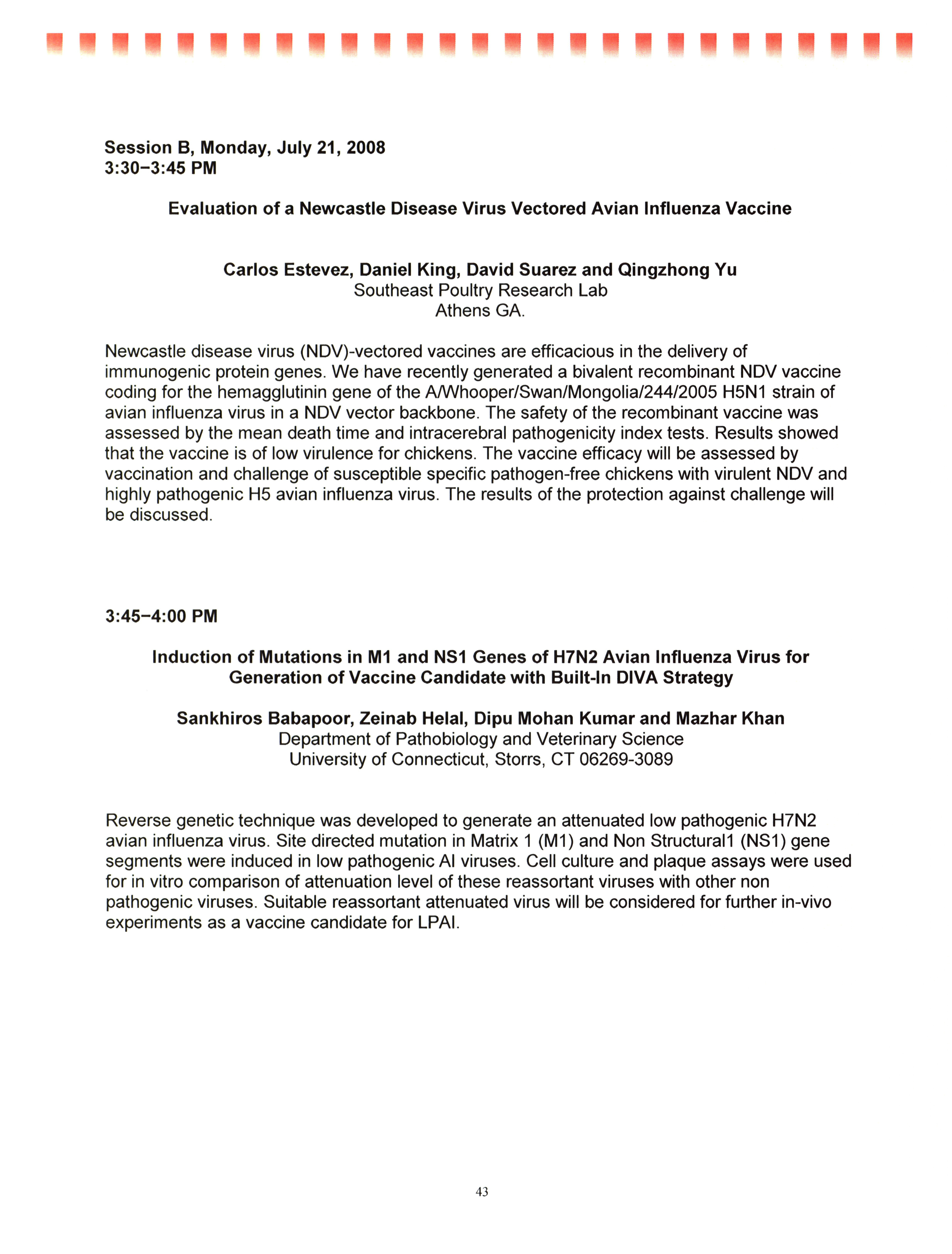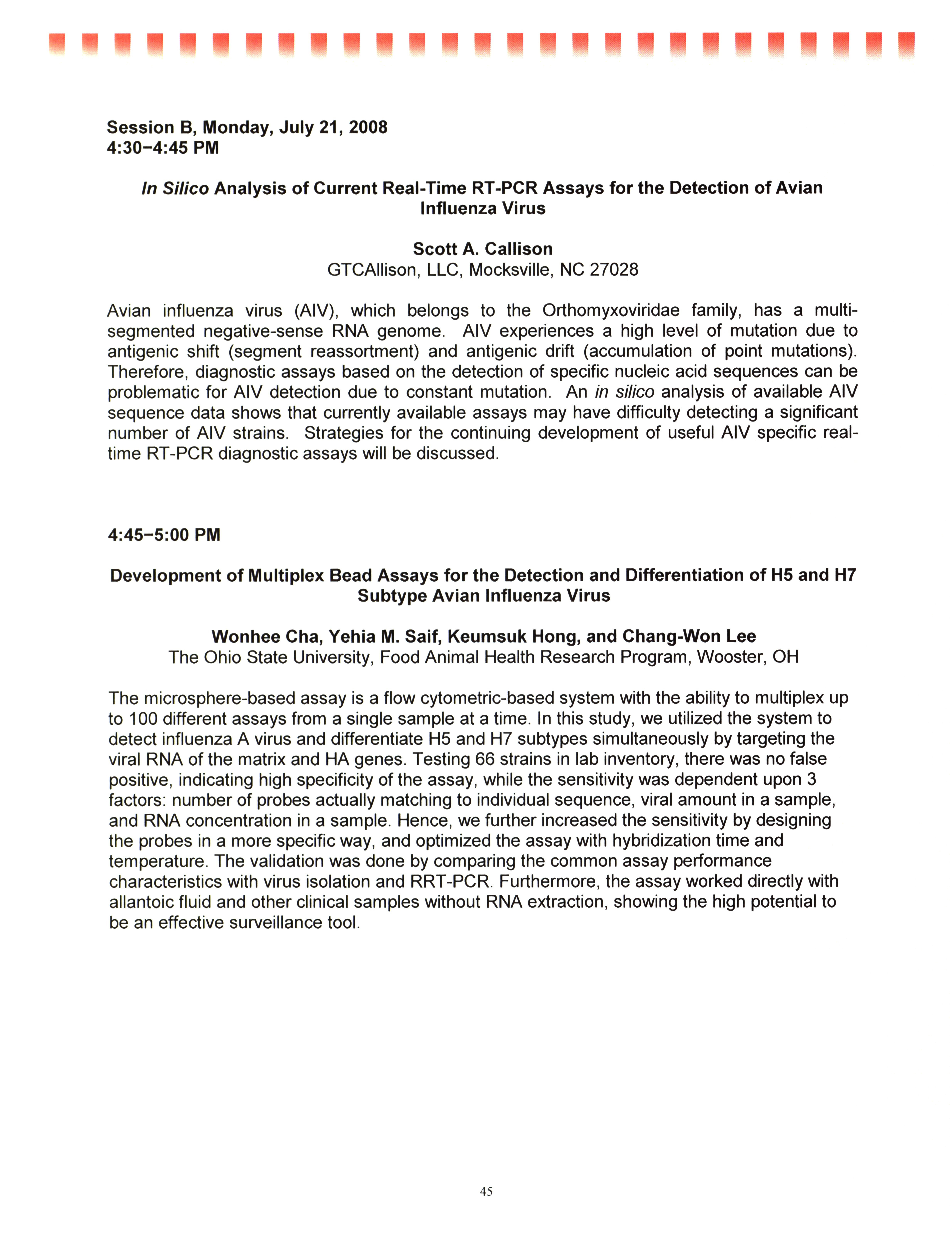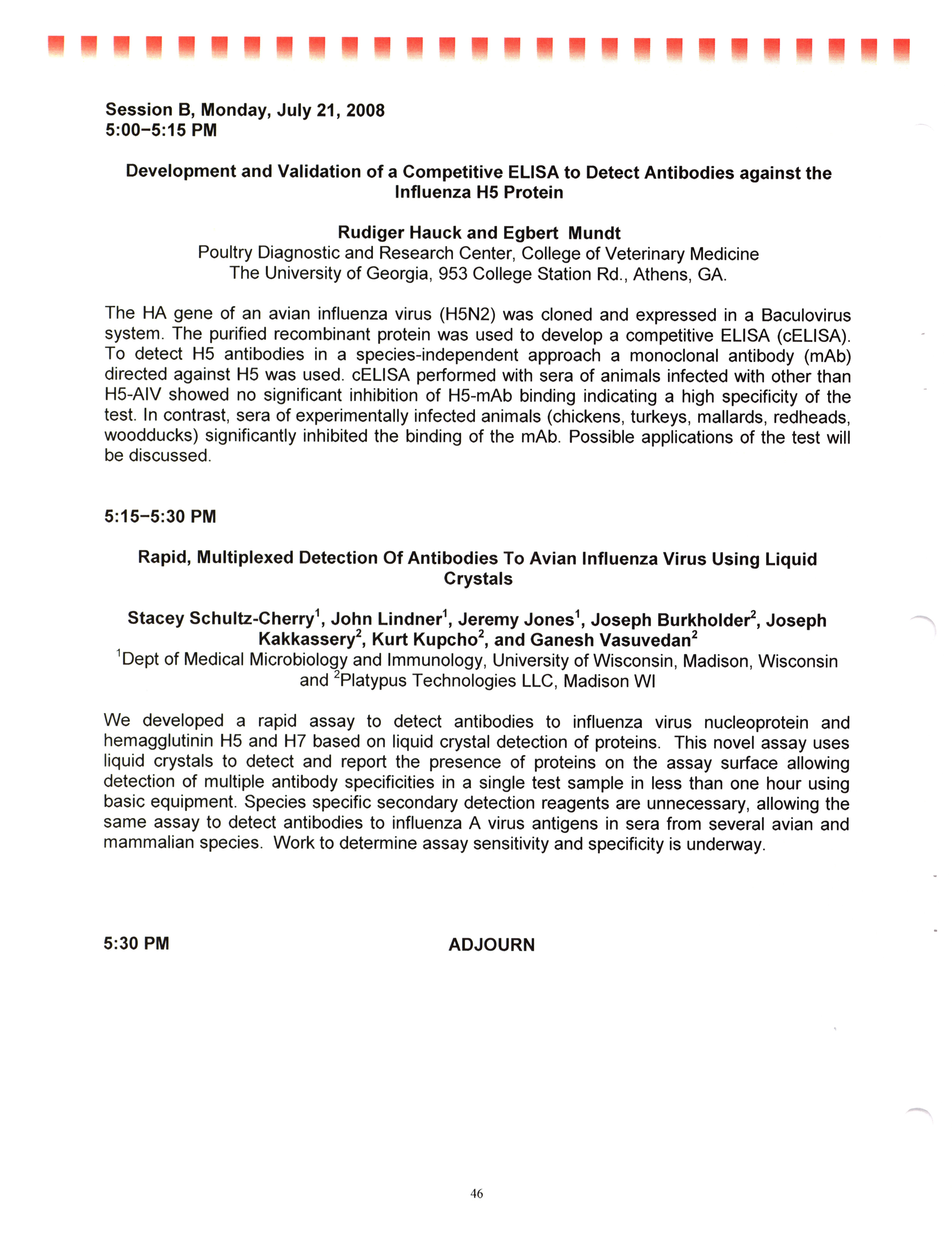 - "AAAP/AVMA scientific program, July 19-23, 2008", American Association of Avian Pathologists Collection, Iowa State University Library Digital Collections