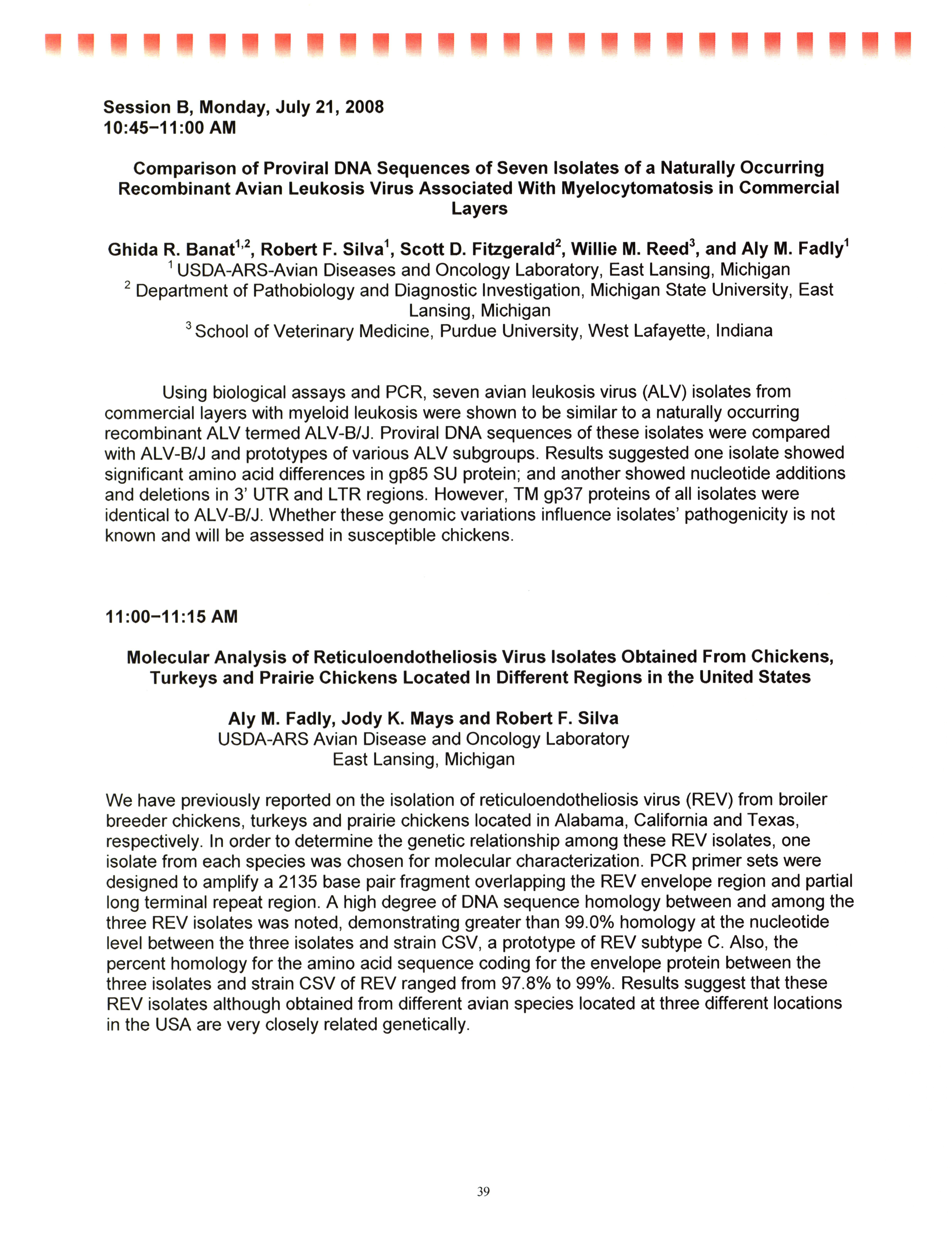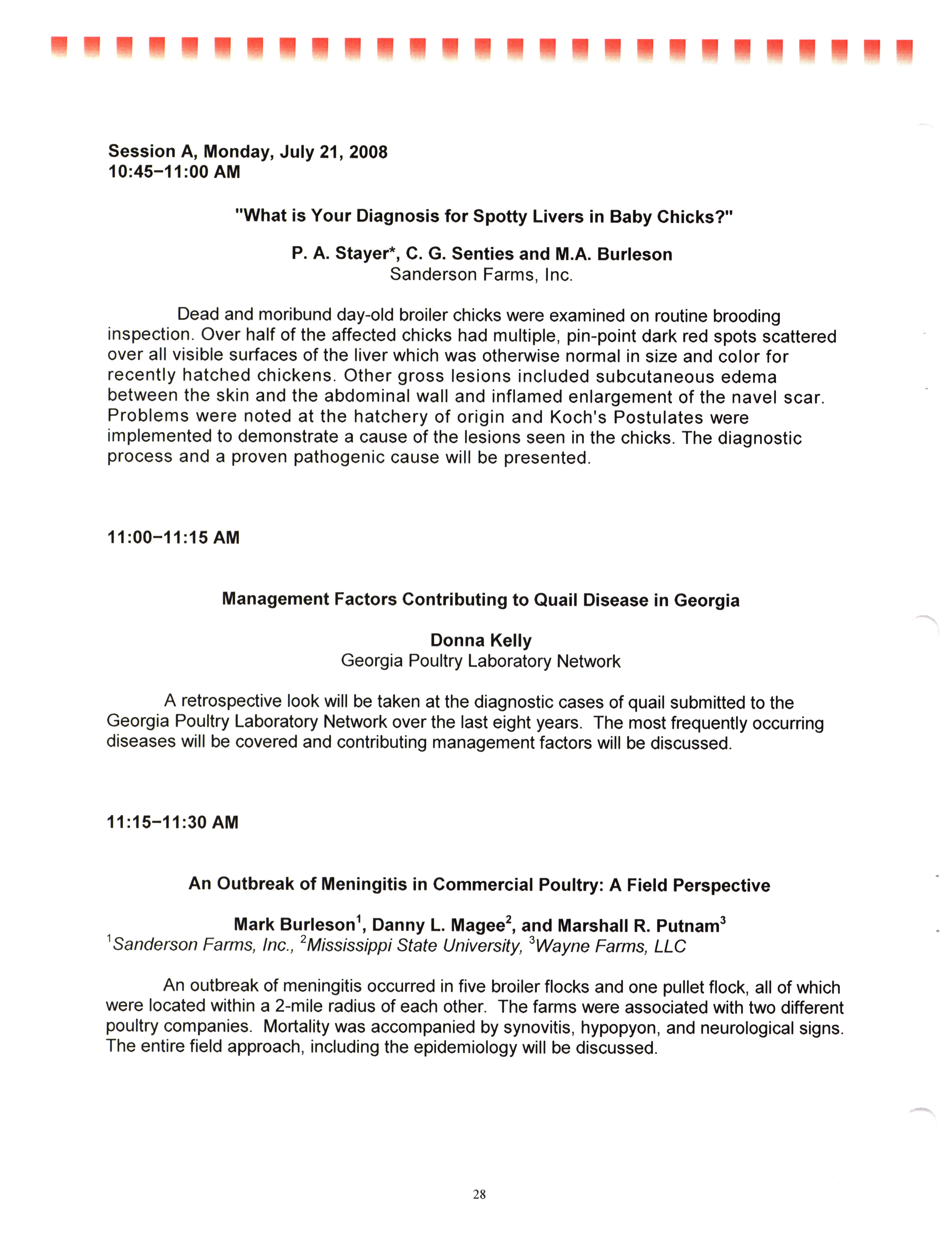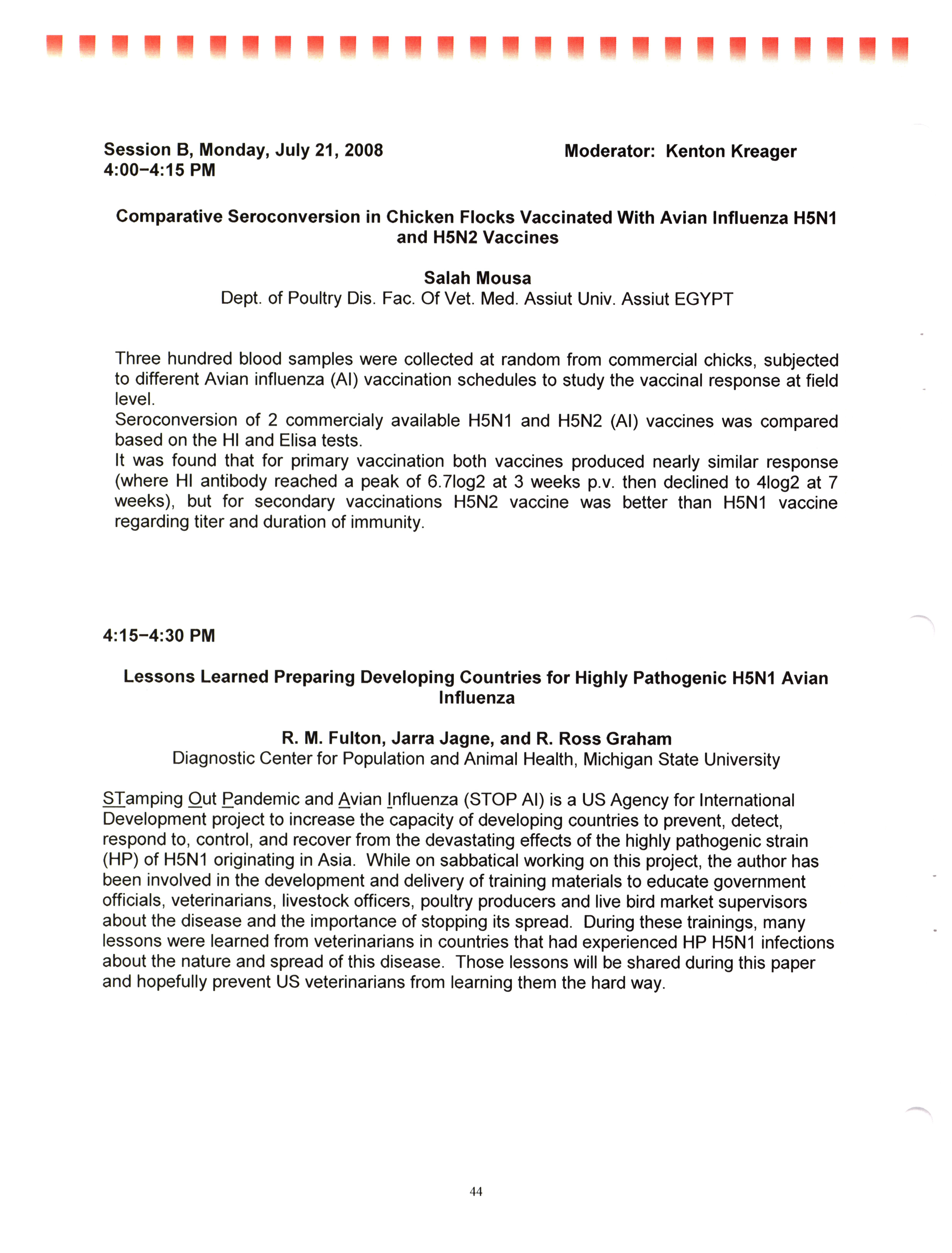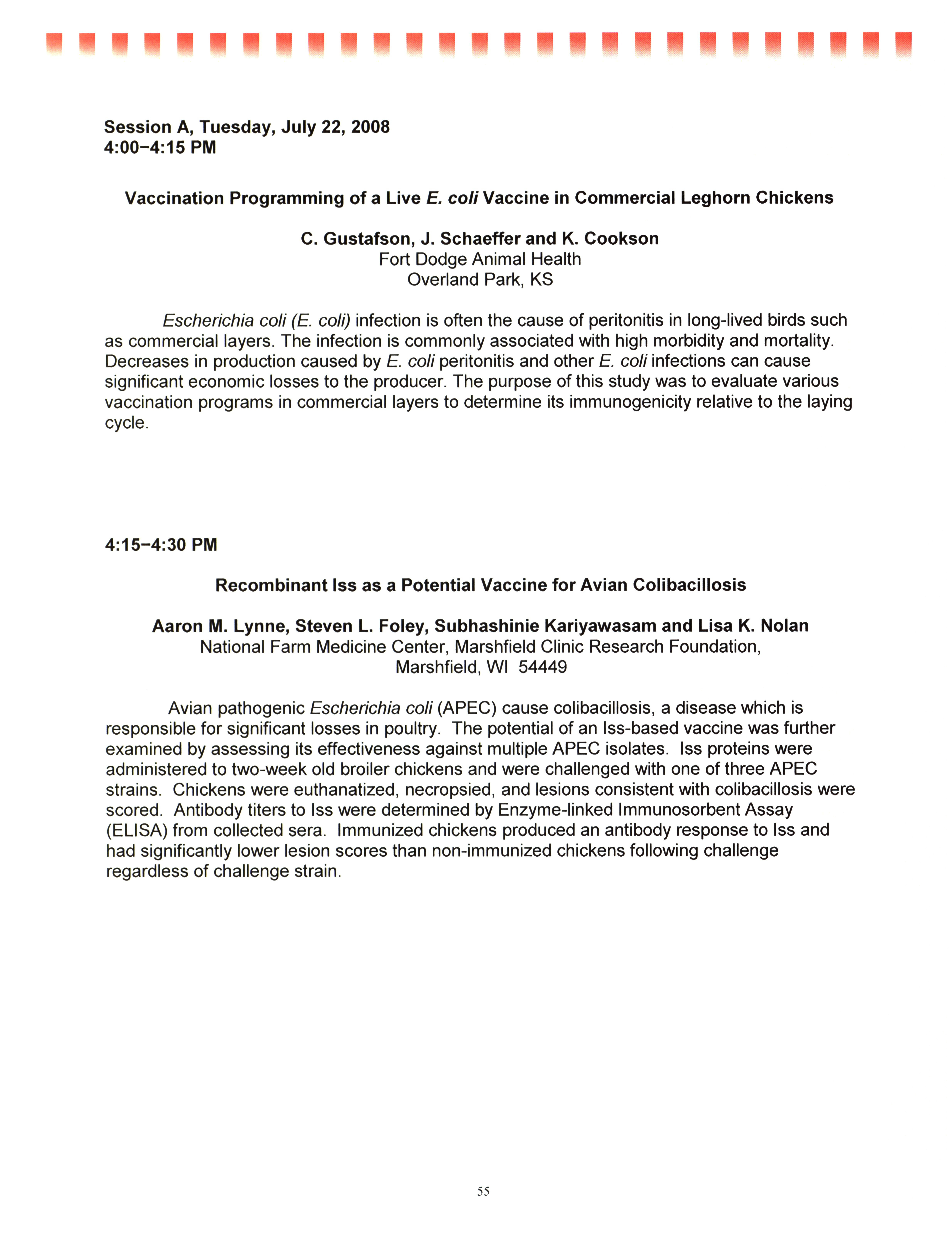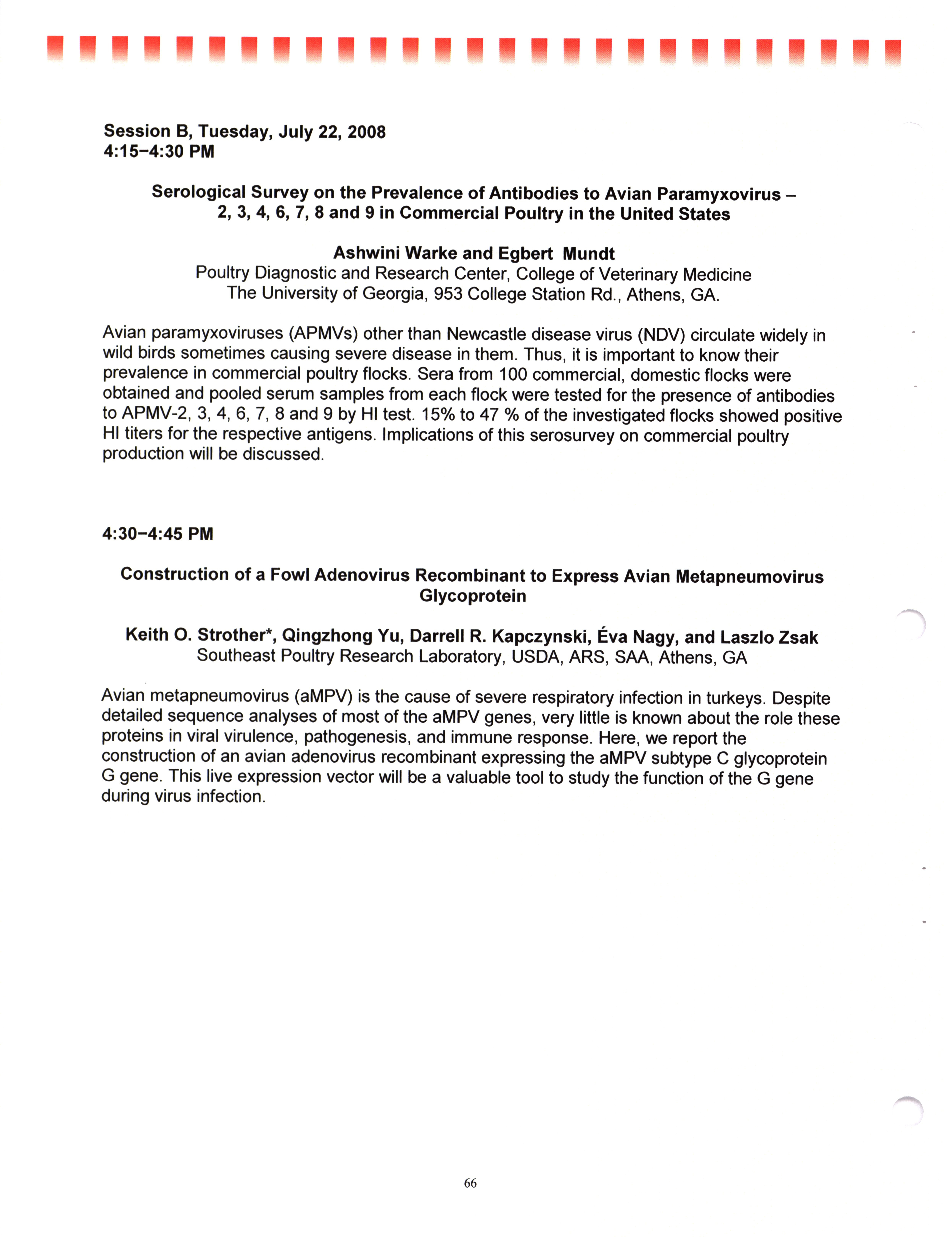 - "AAAP/AVMA scientific program, July 19-23, 2008", American Association of Avian Pathologists Collection, Iowa State University Library Digital Collections