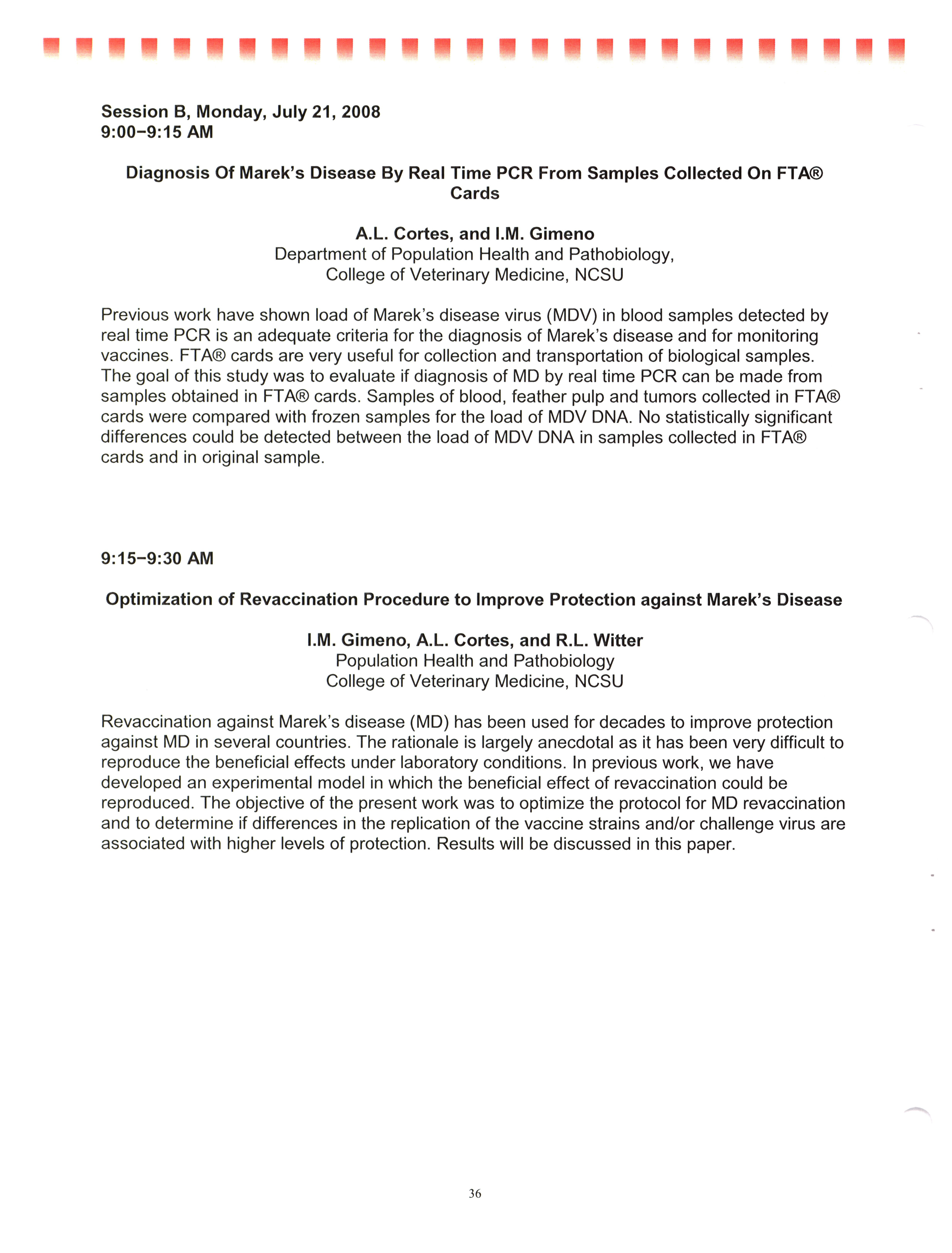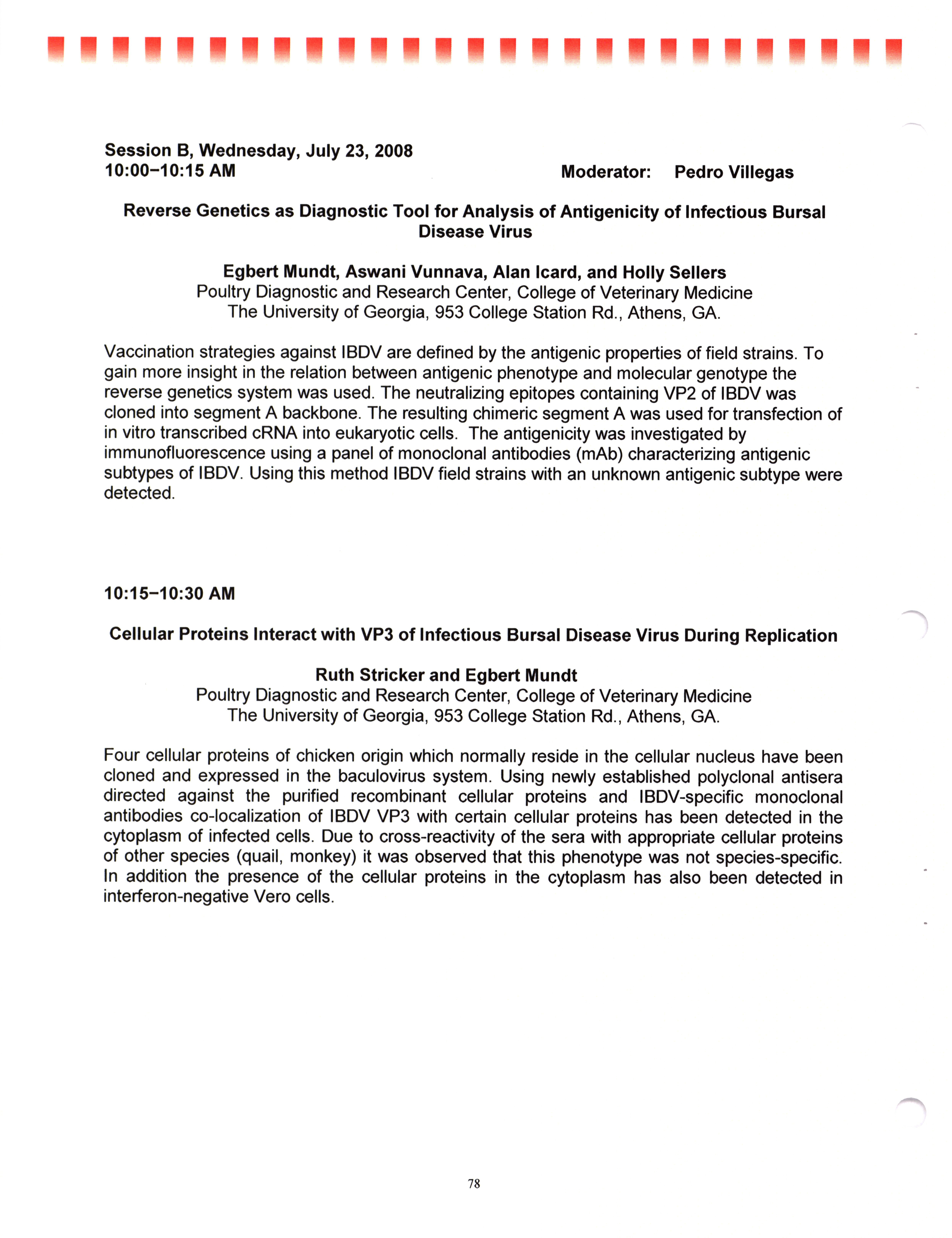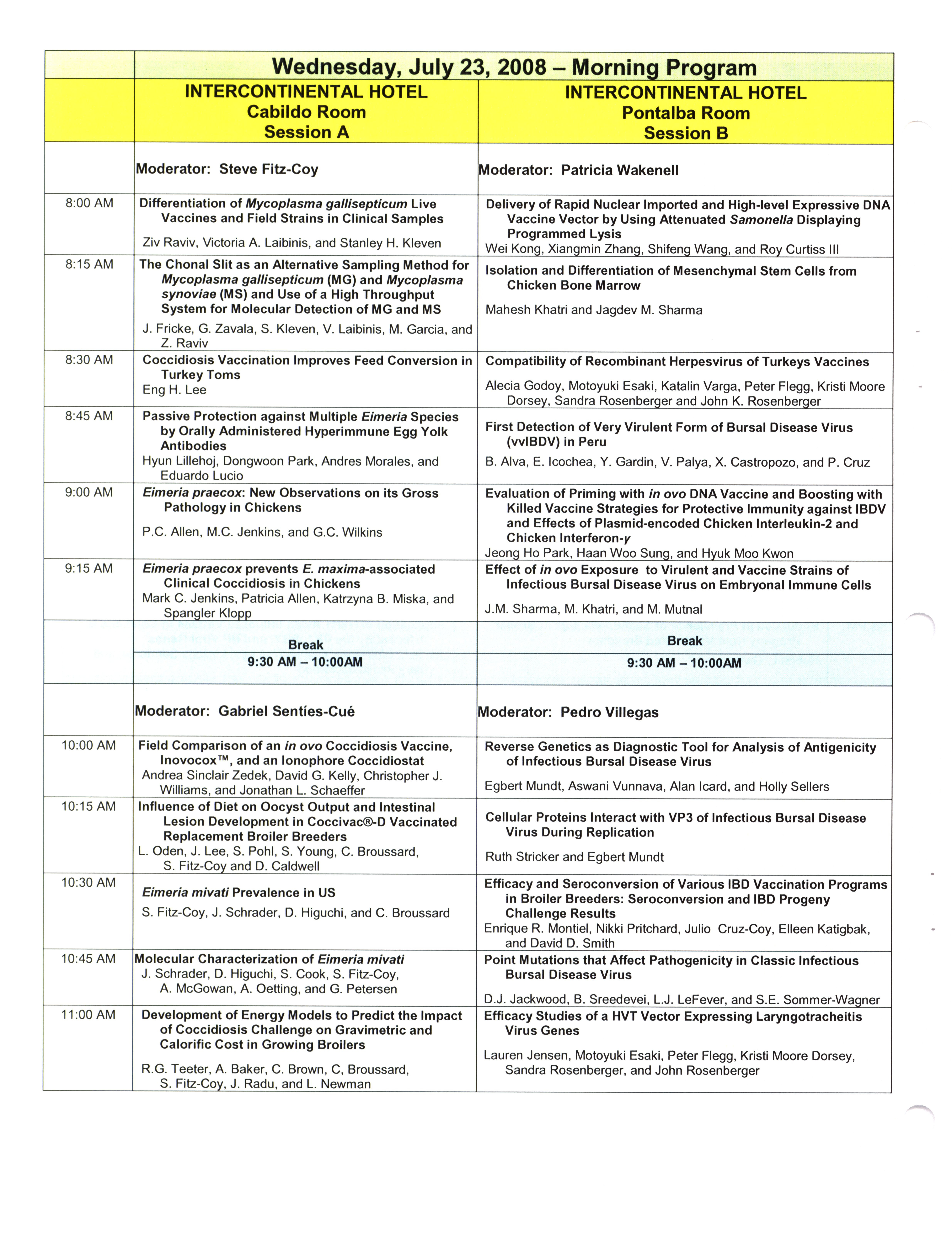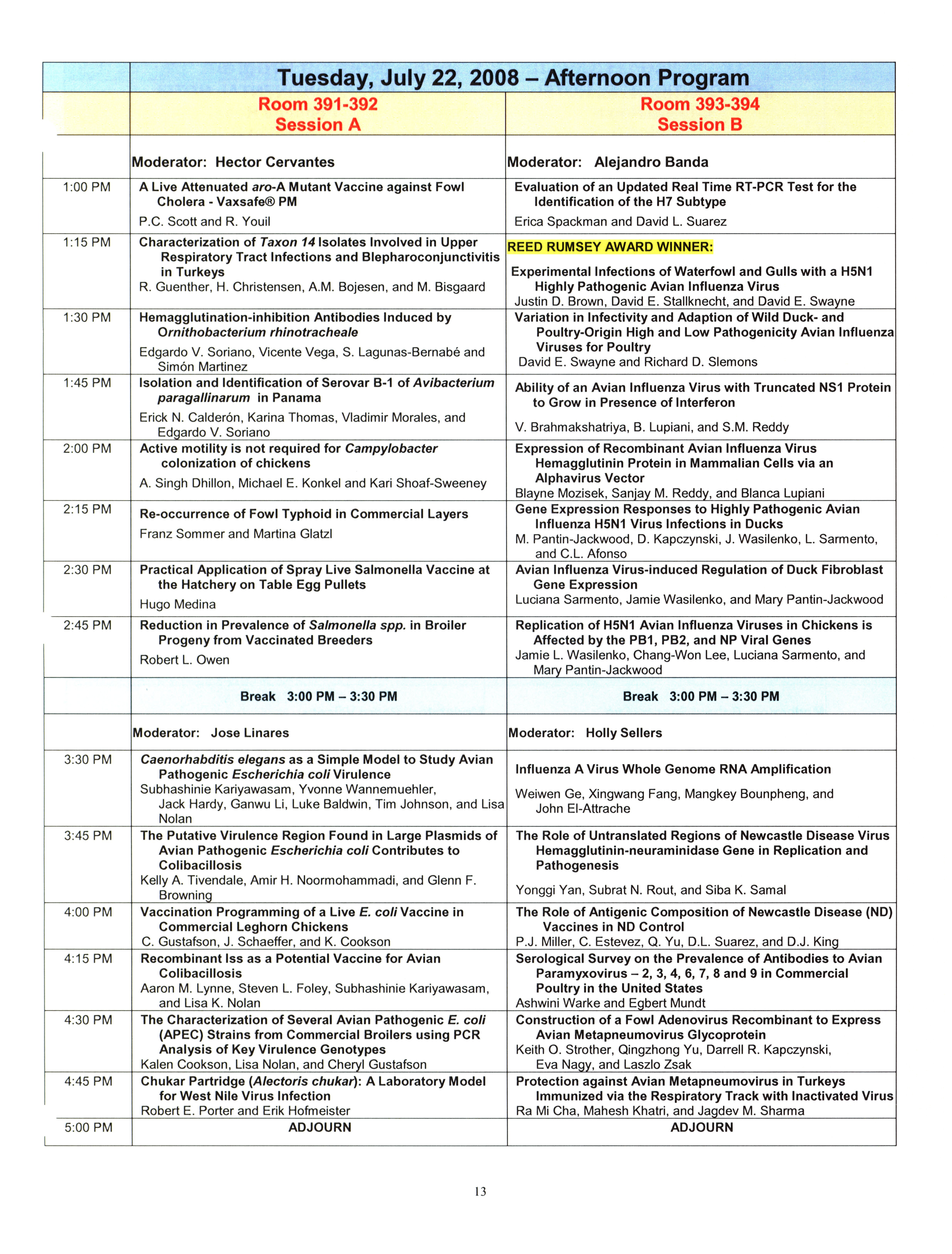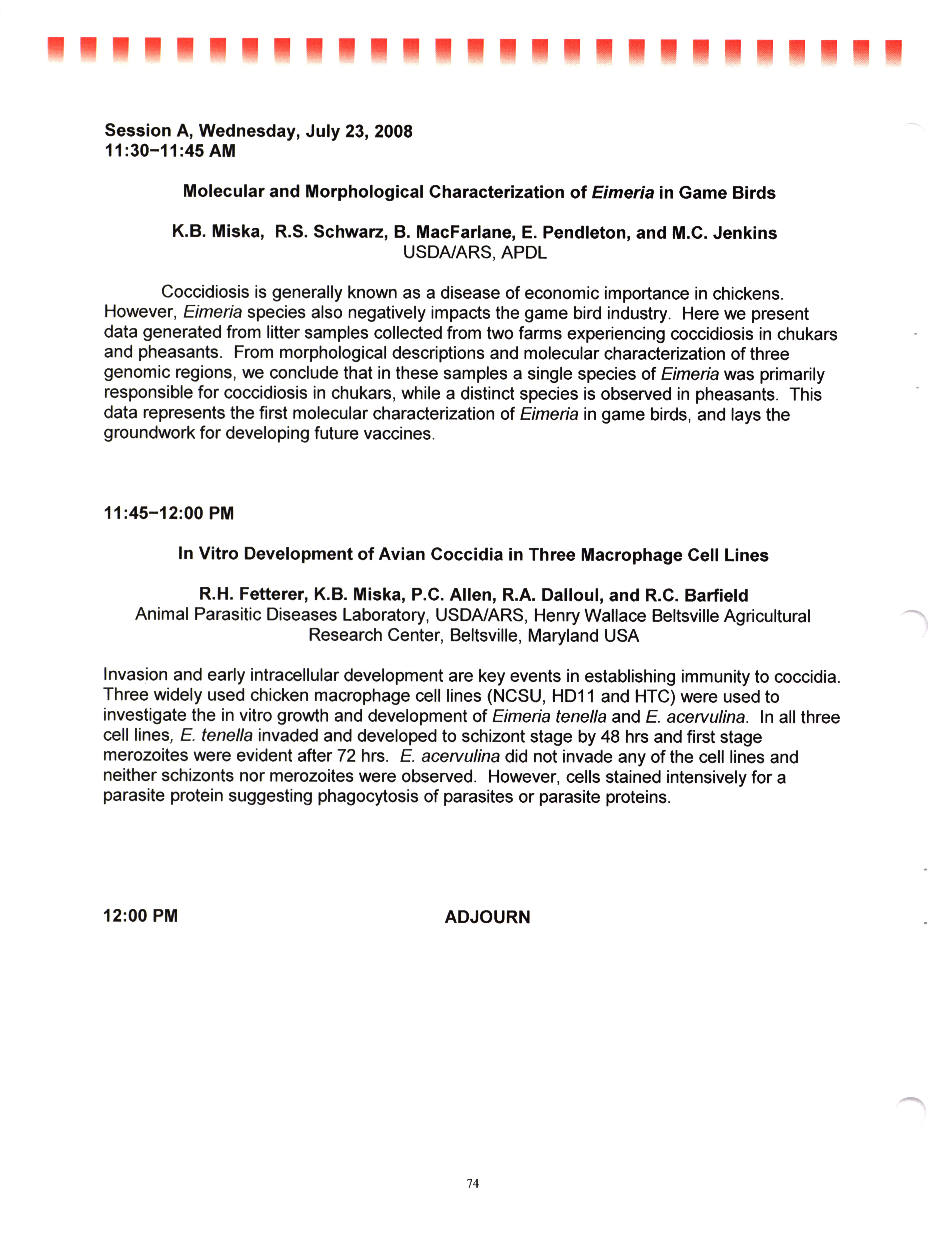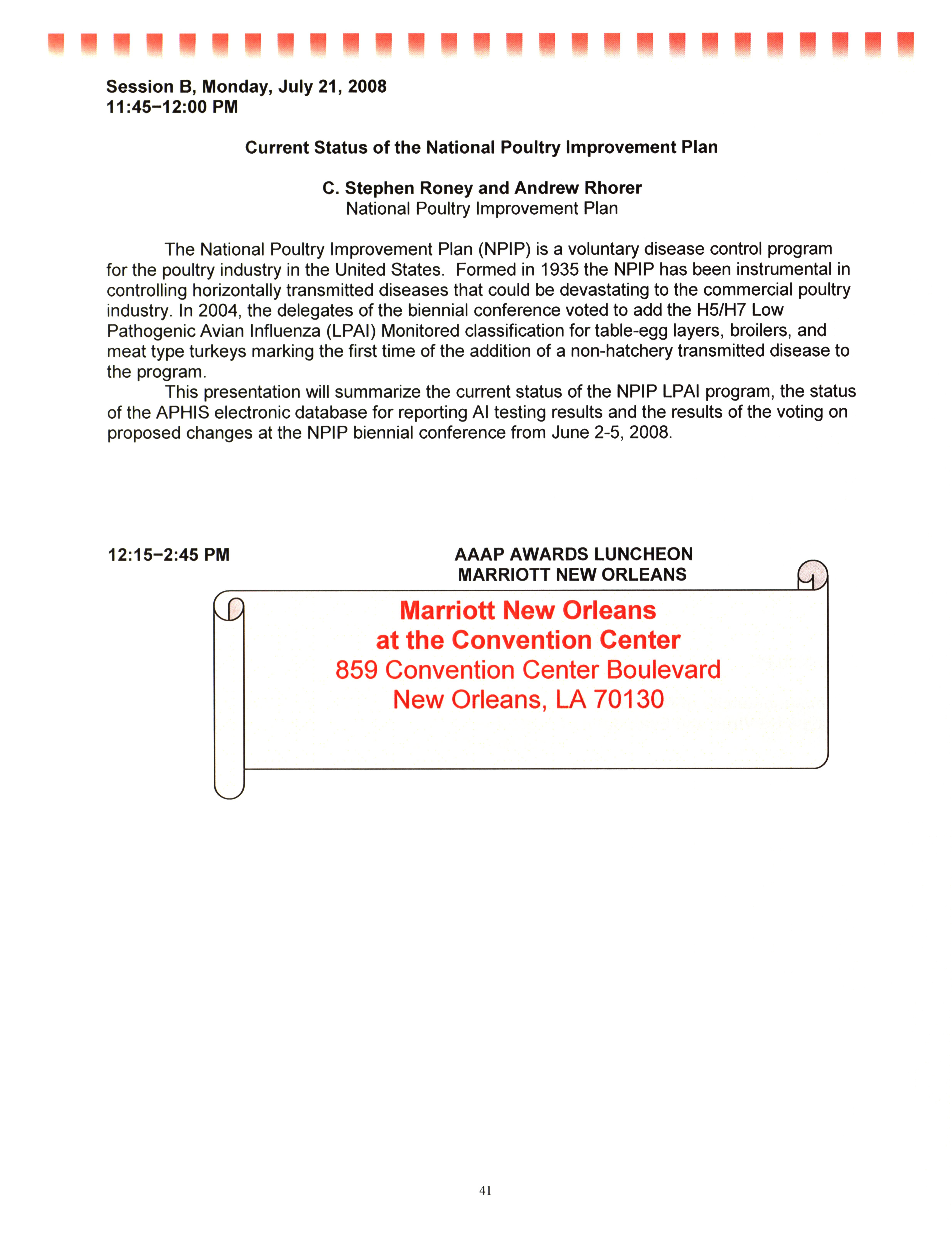 - "AAAP/AVMA scientific program, July 19-23, 2008", American Association of Avian Pathologists Collection, Iowa State University Library Digital Collections