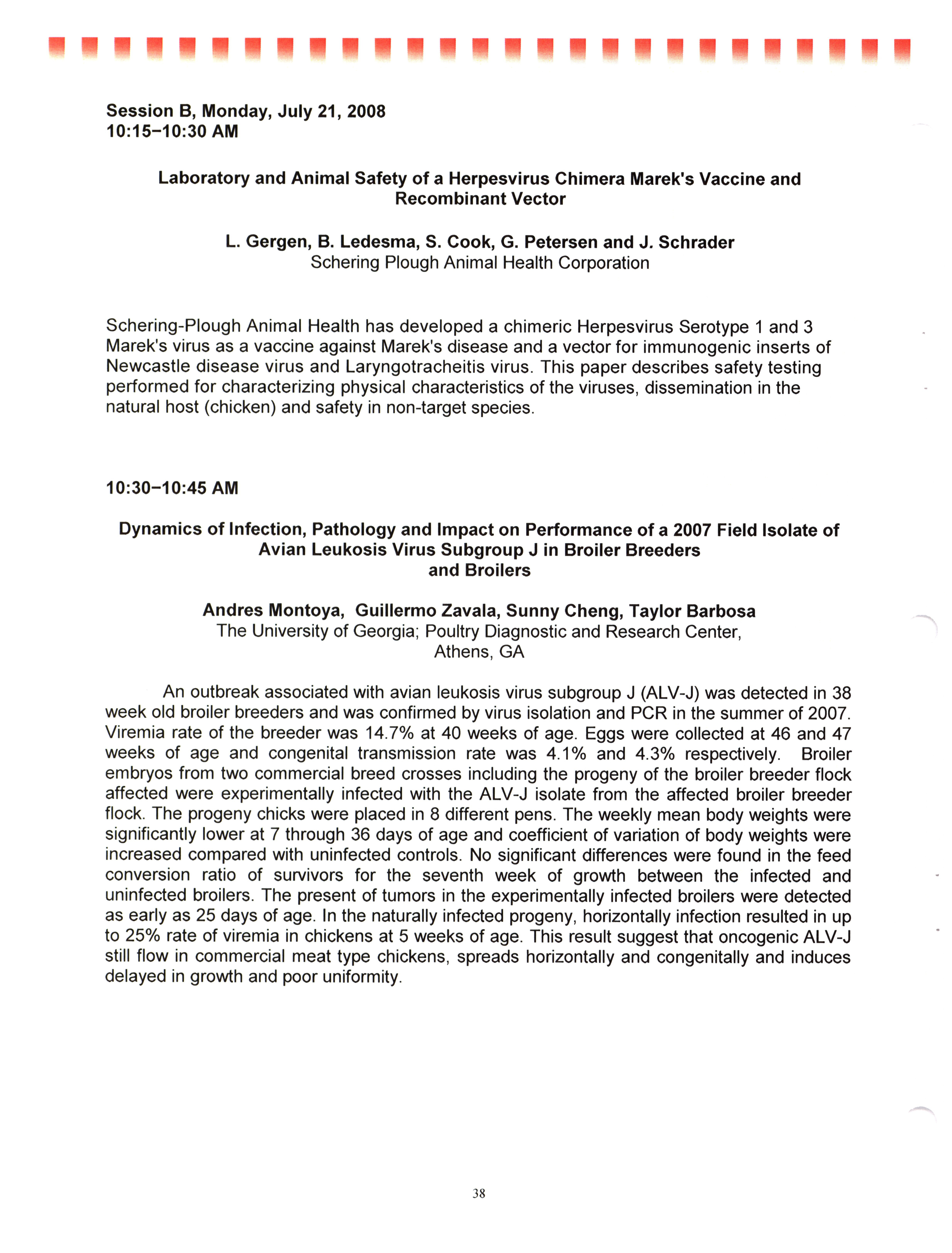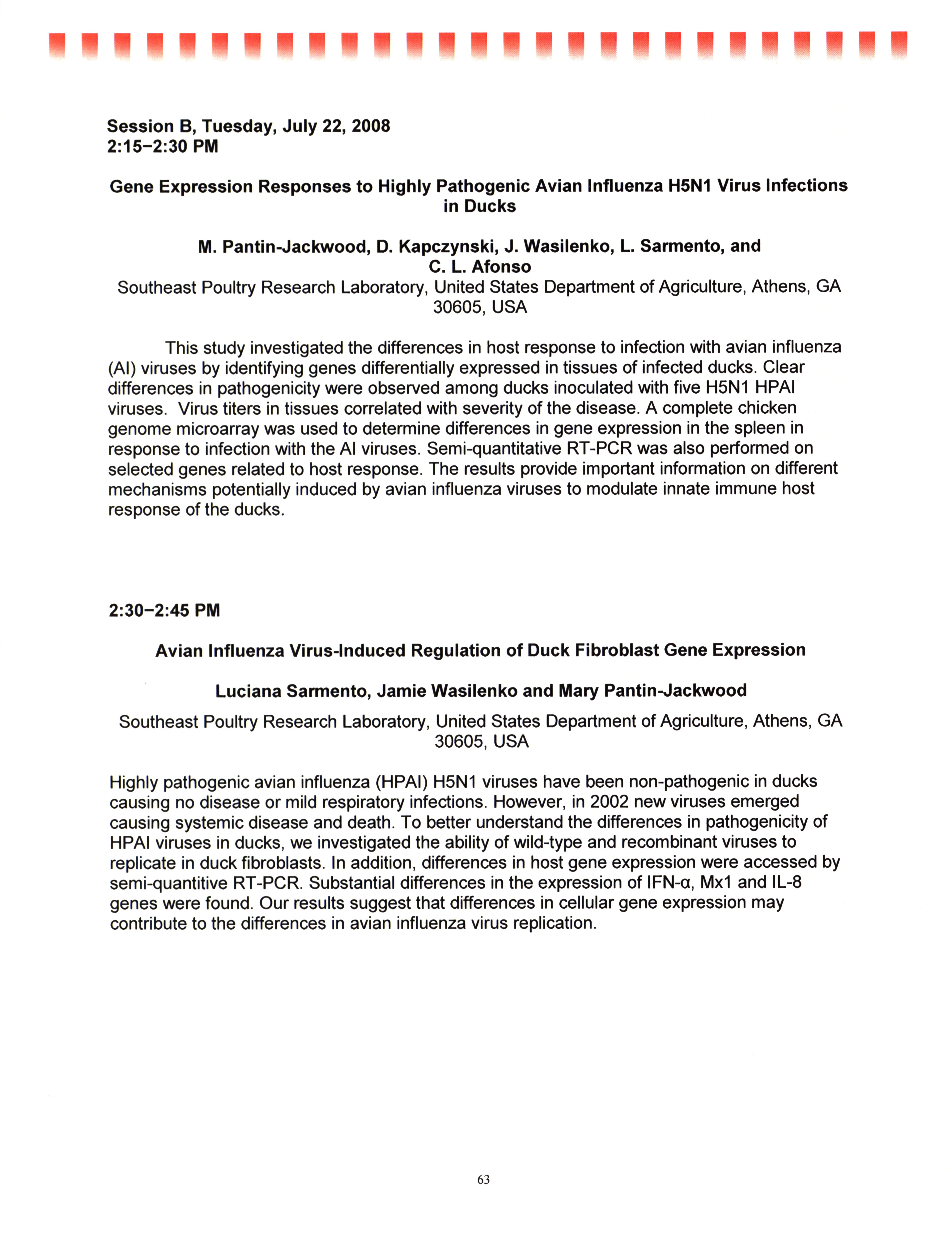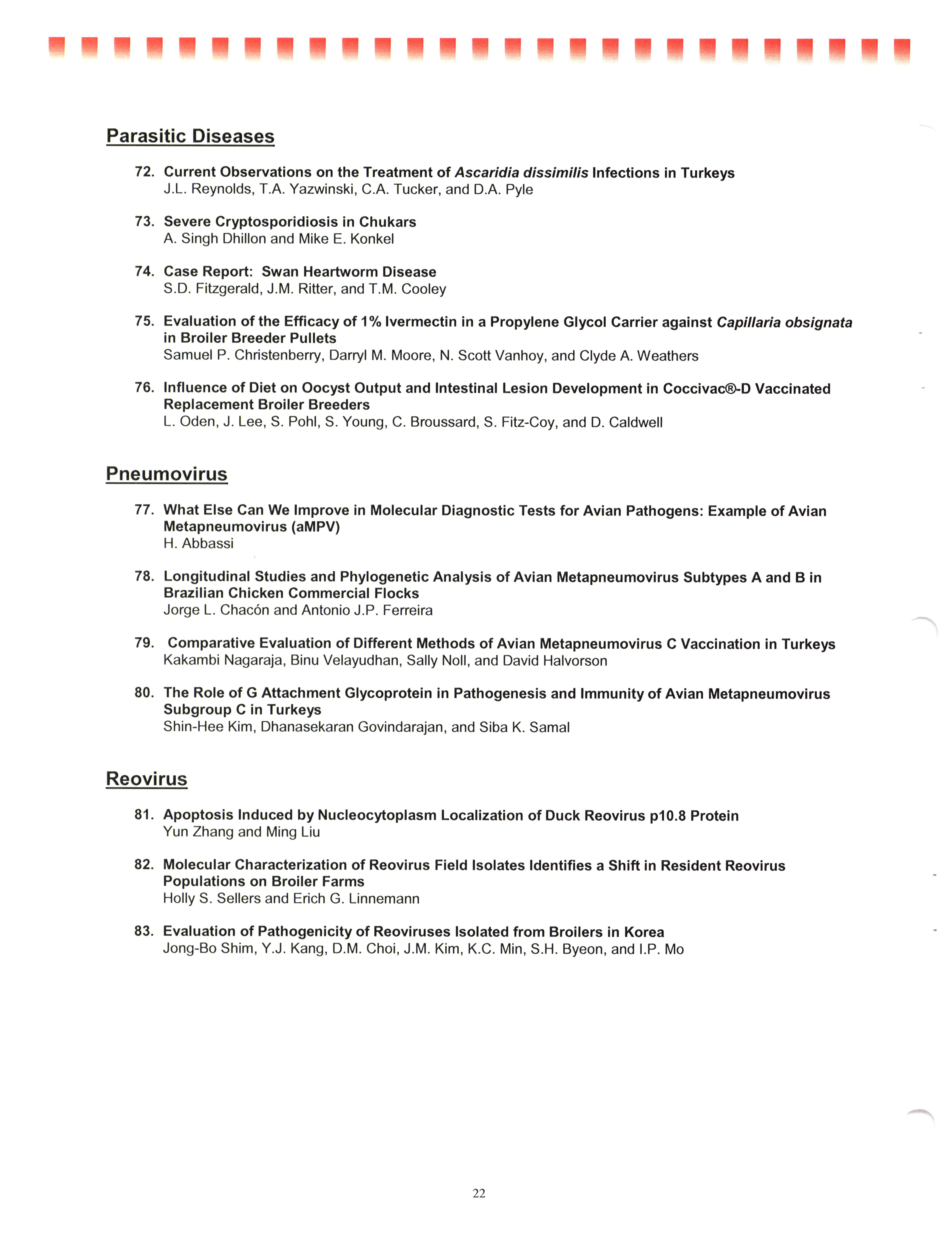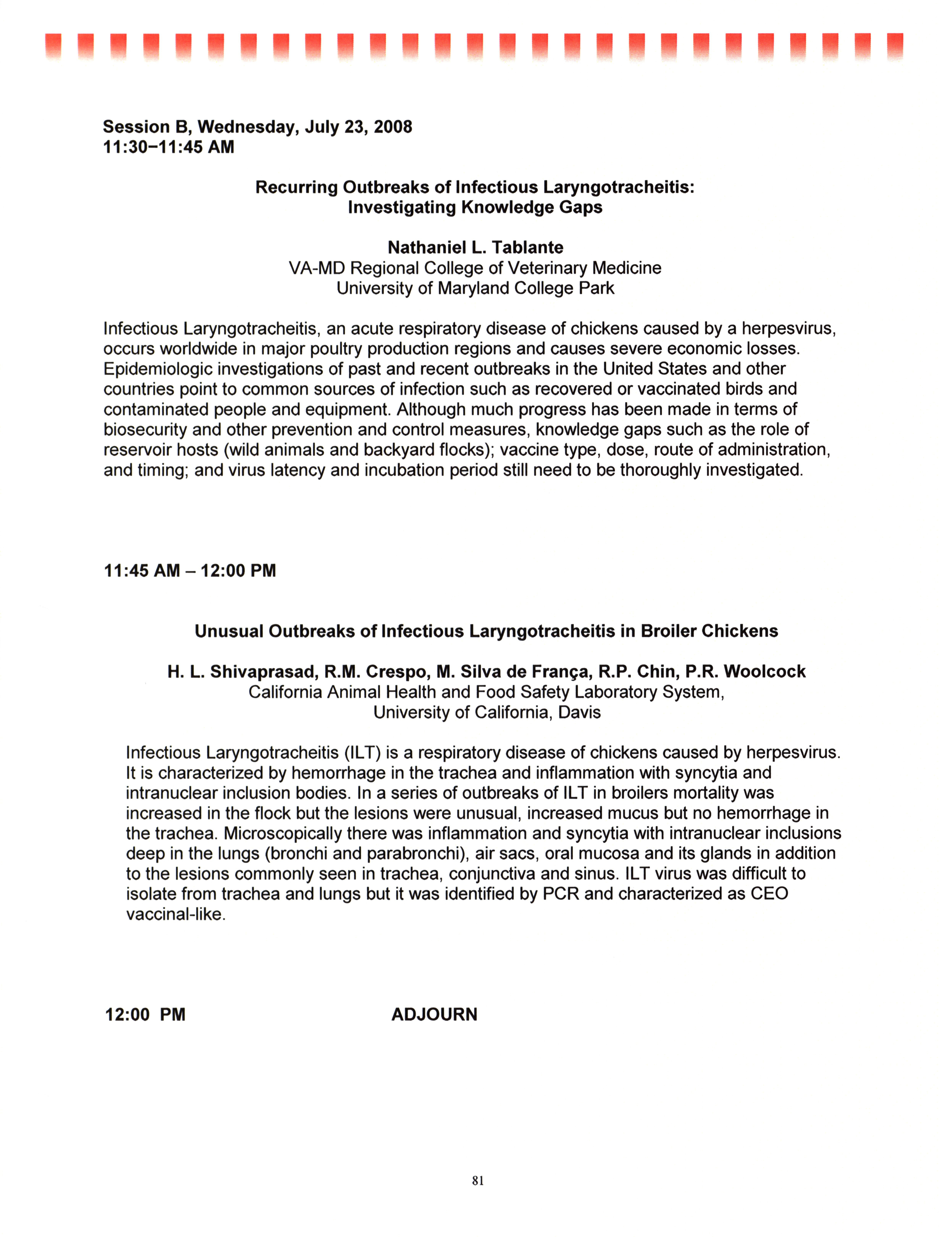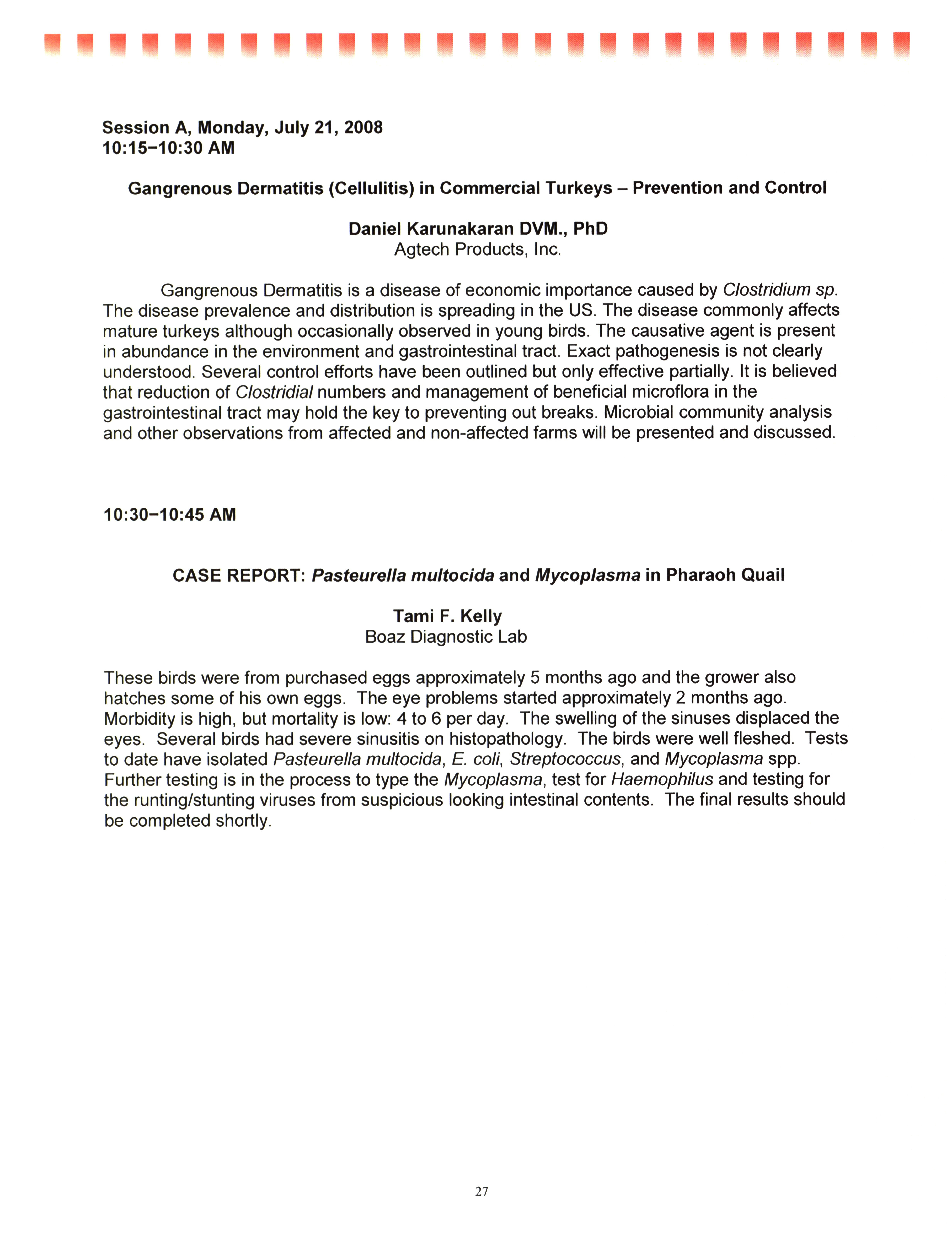 - "AAAP/AVMA scientific program, July 19-23, 2008", American Association of Avian Pathologists Collection, Iowa State University Library Digital Collections