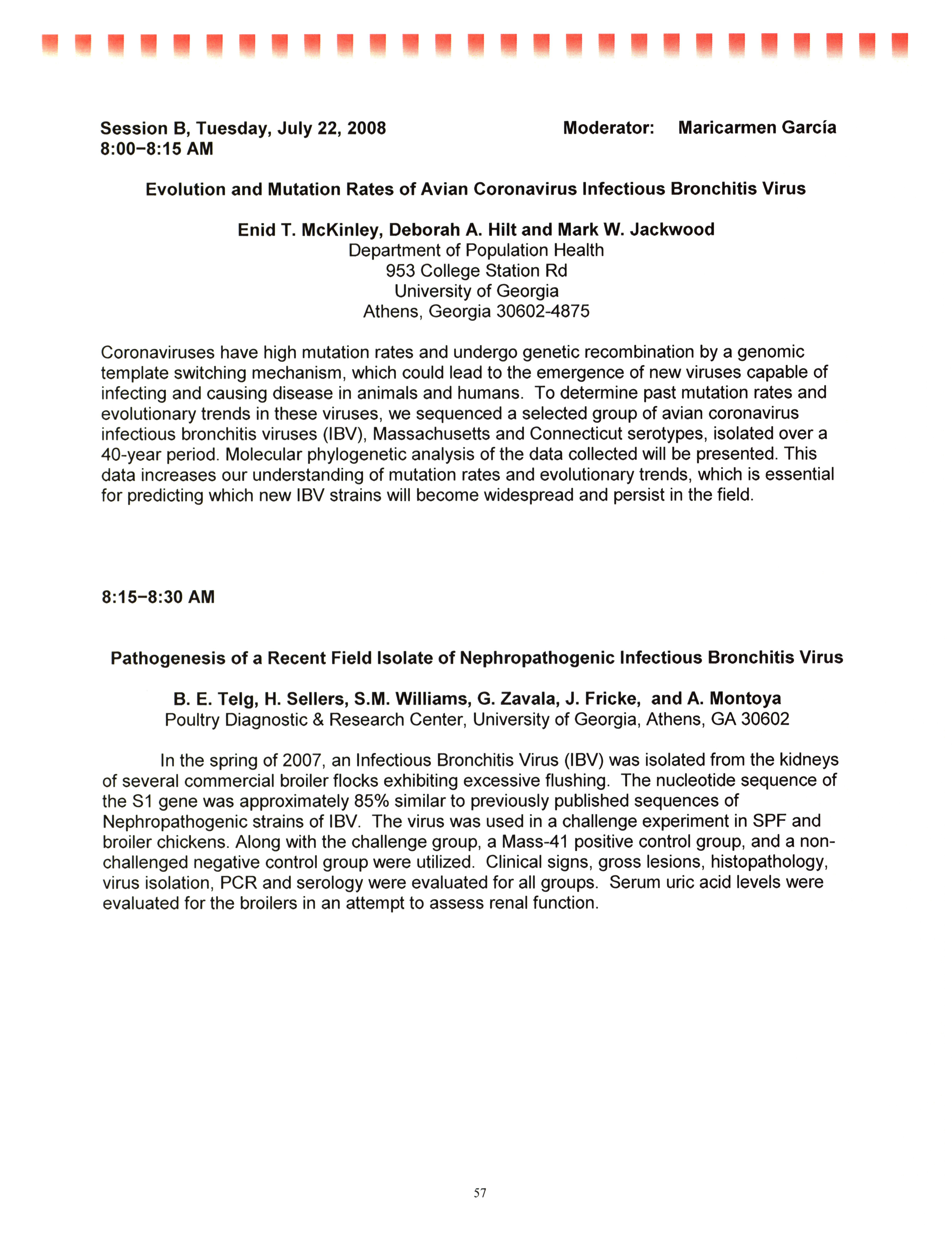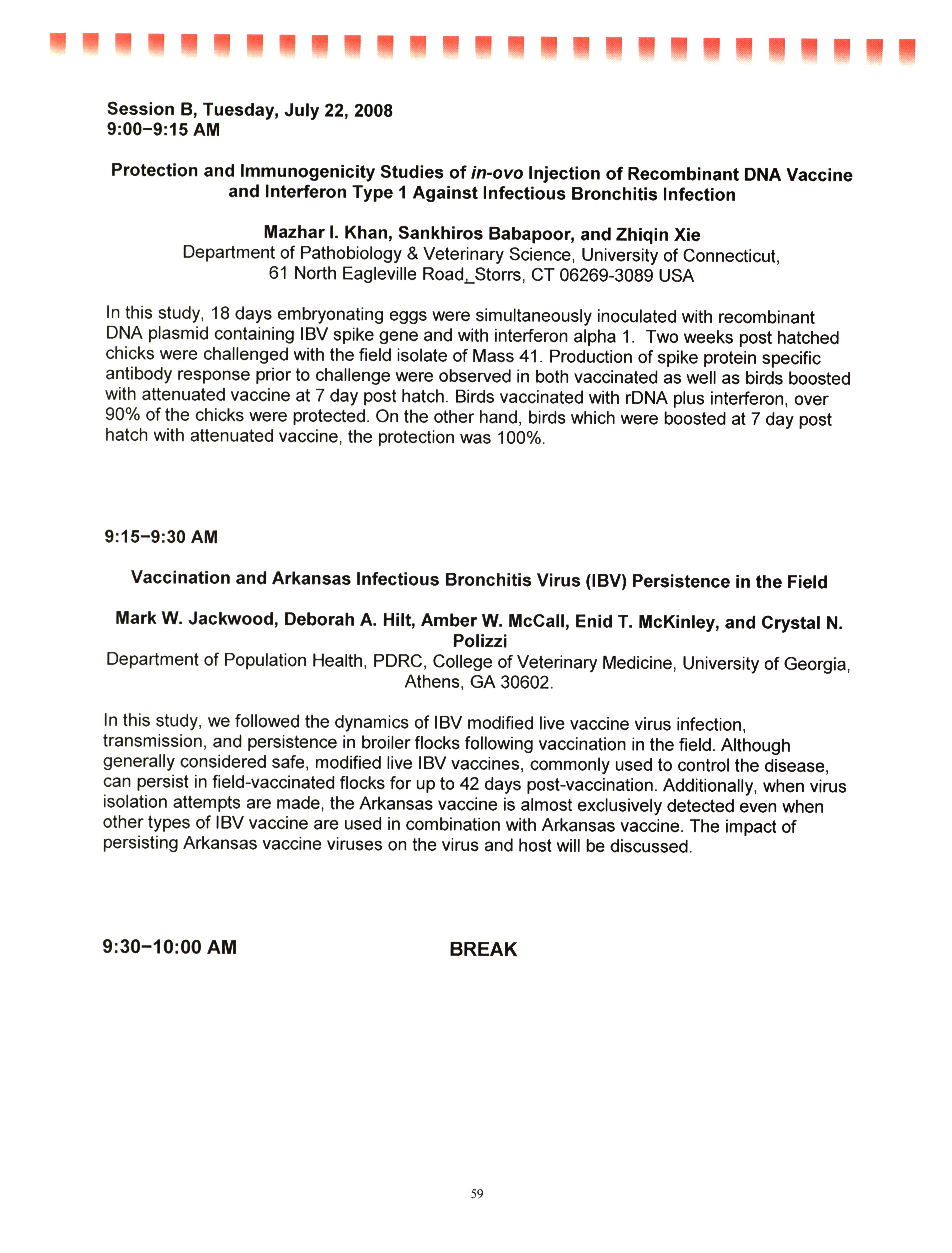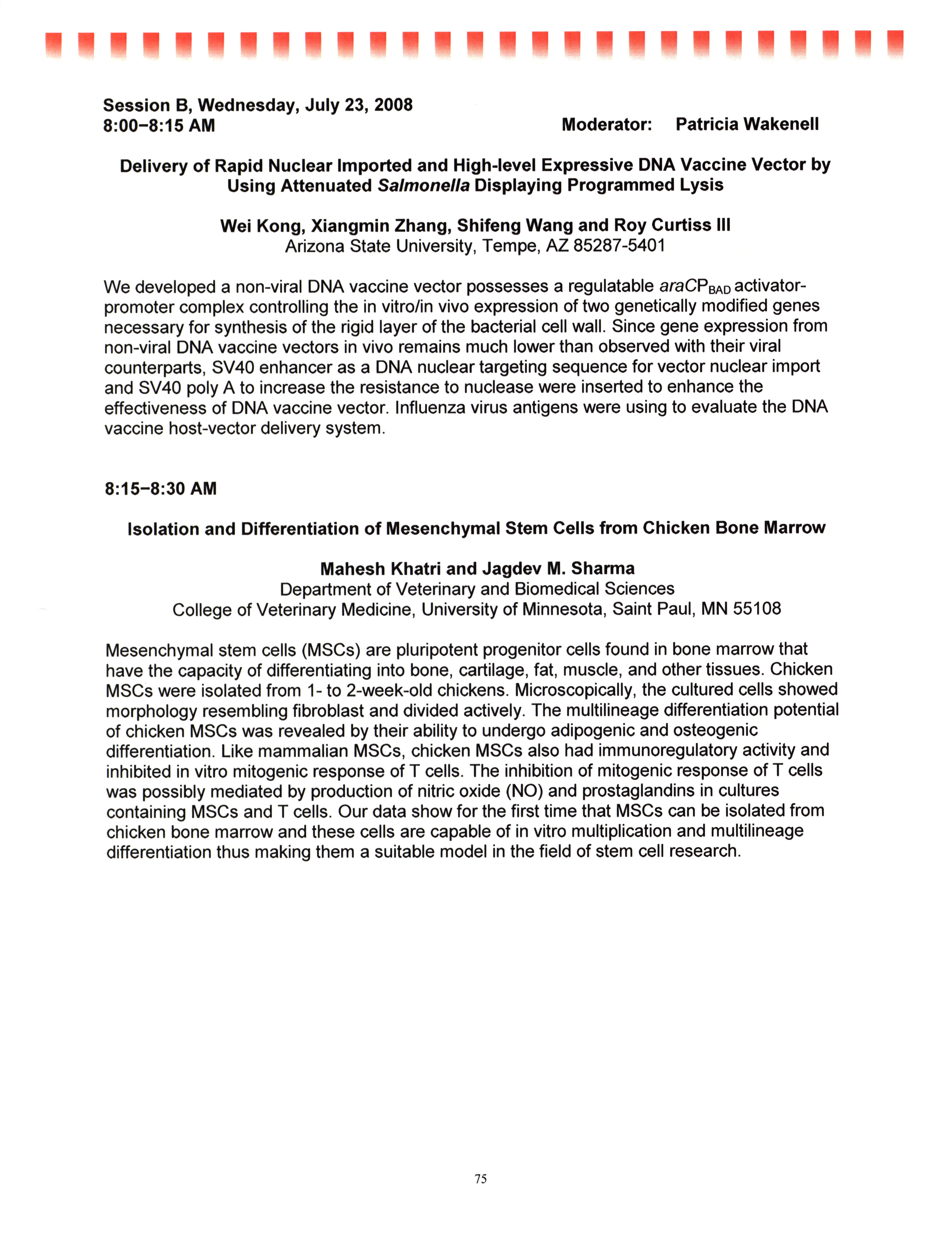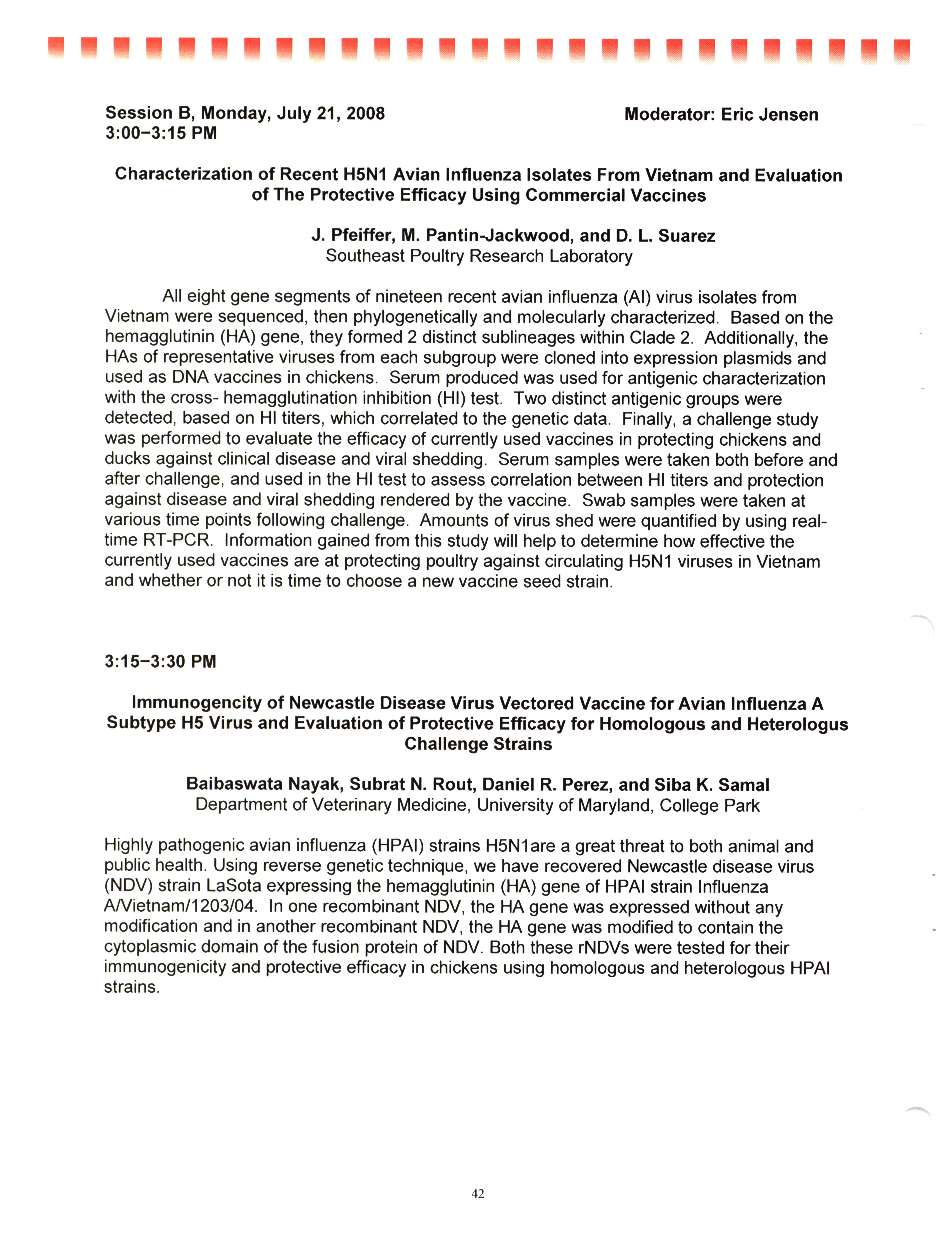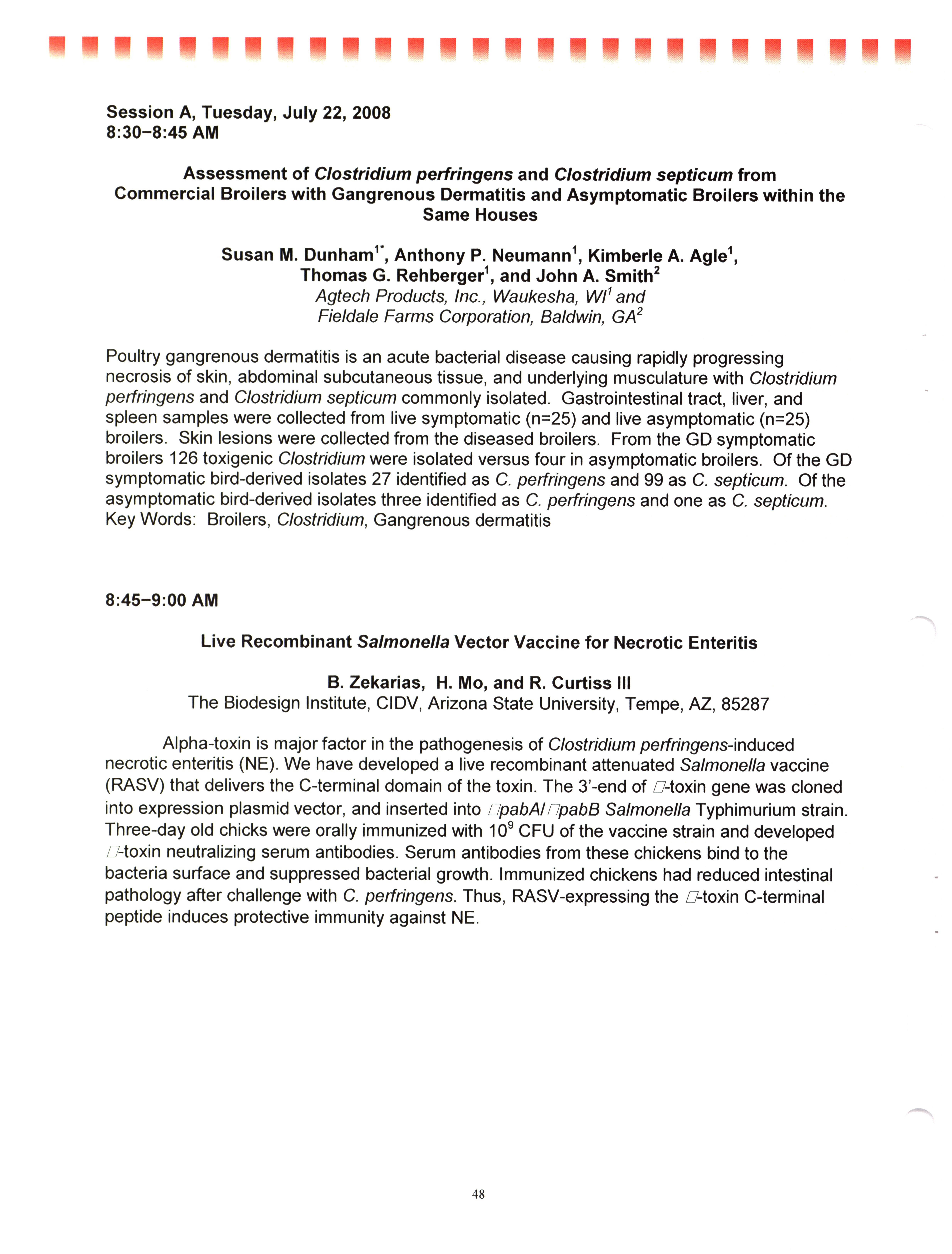 - "AAAP/AVMA scientific program, July 19-23, 2008", American Association of Avian Pathologists Collection, Iowa State University Library Digital Collections