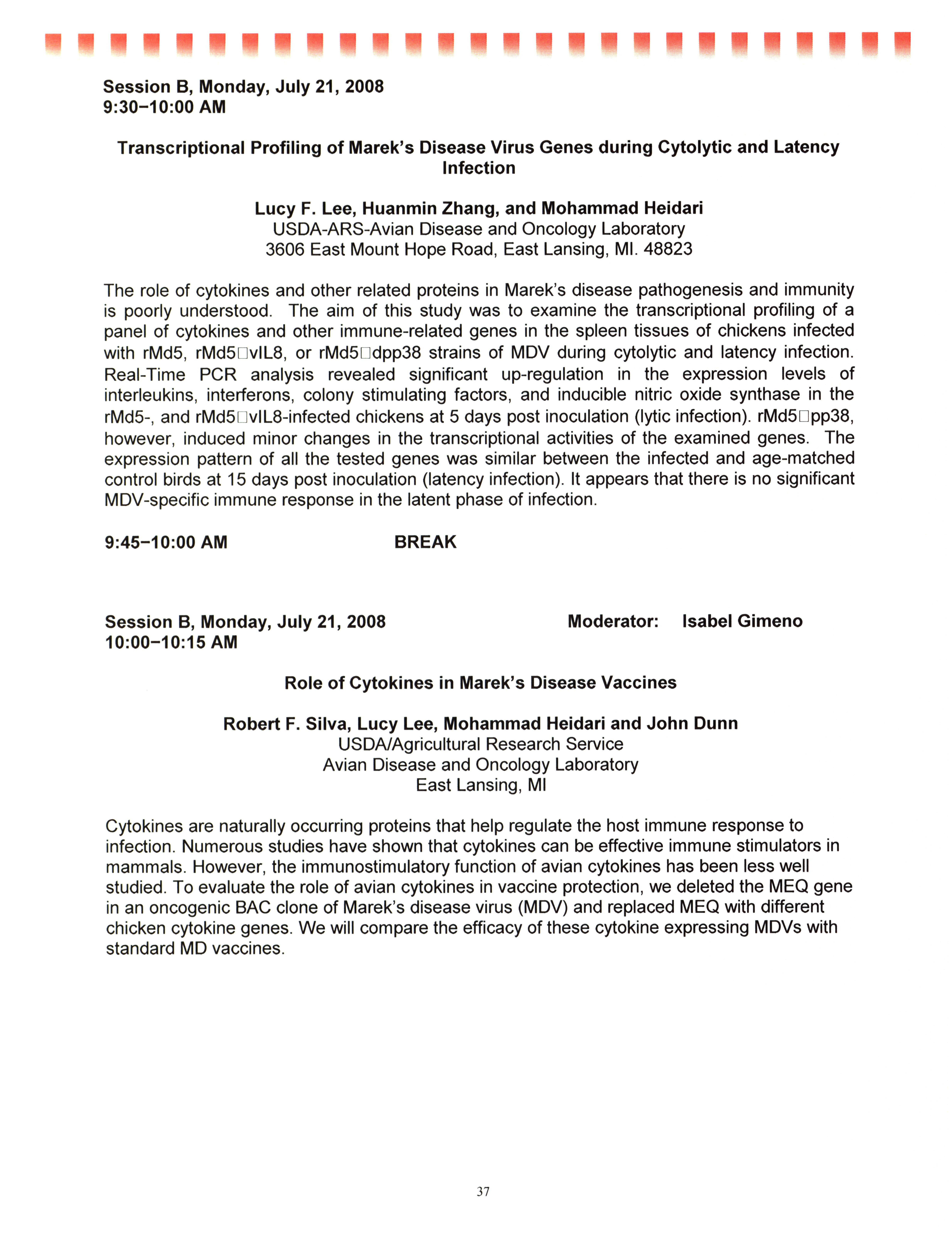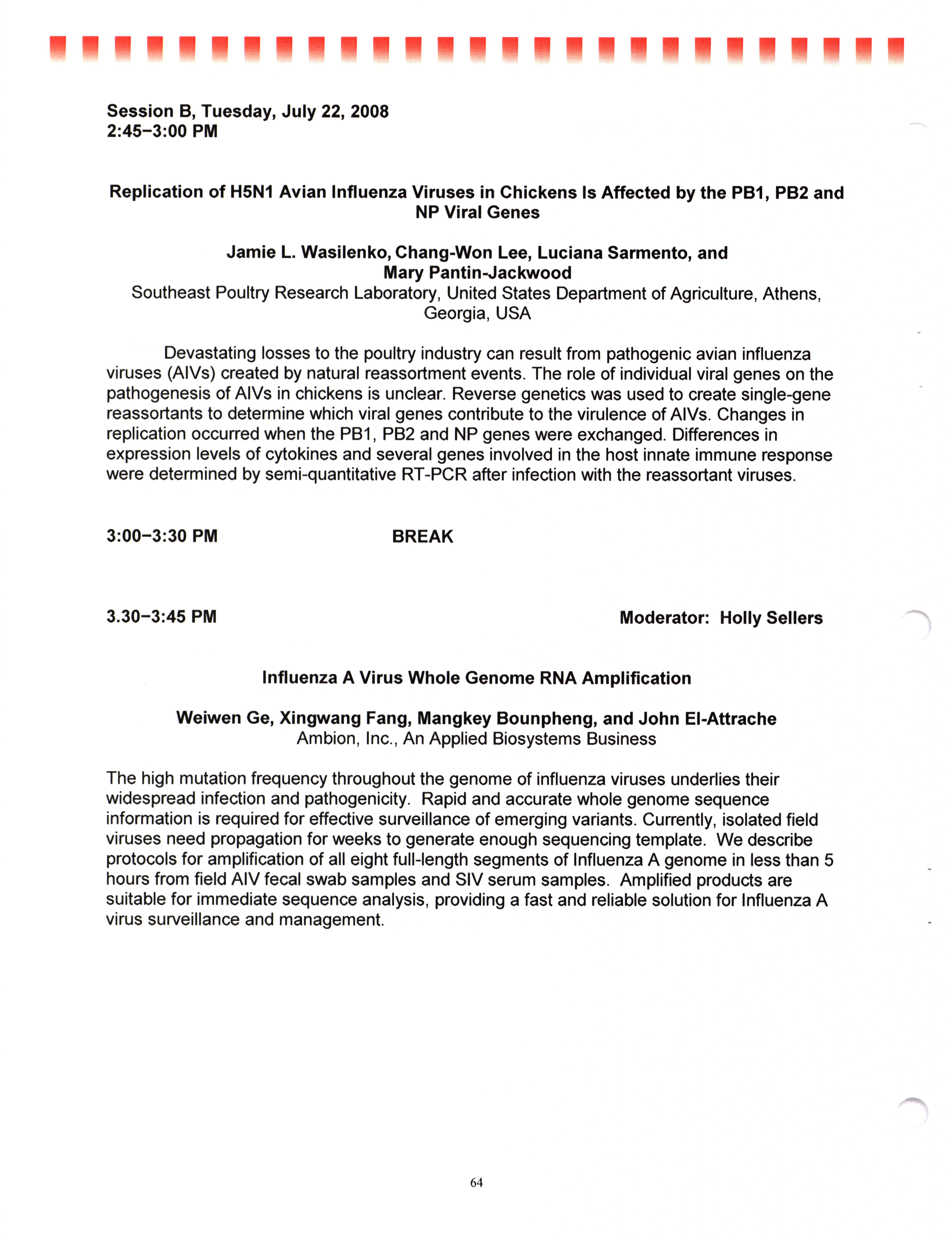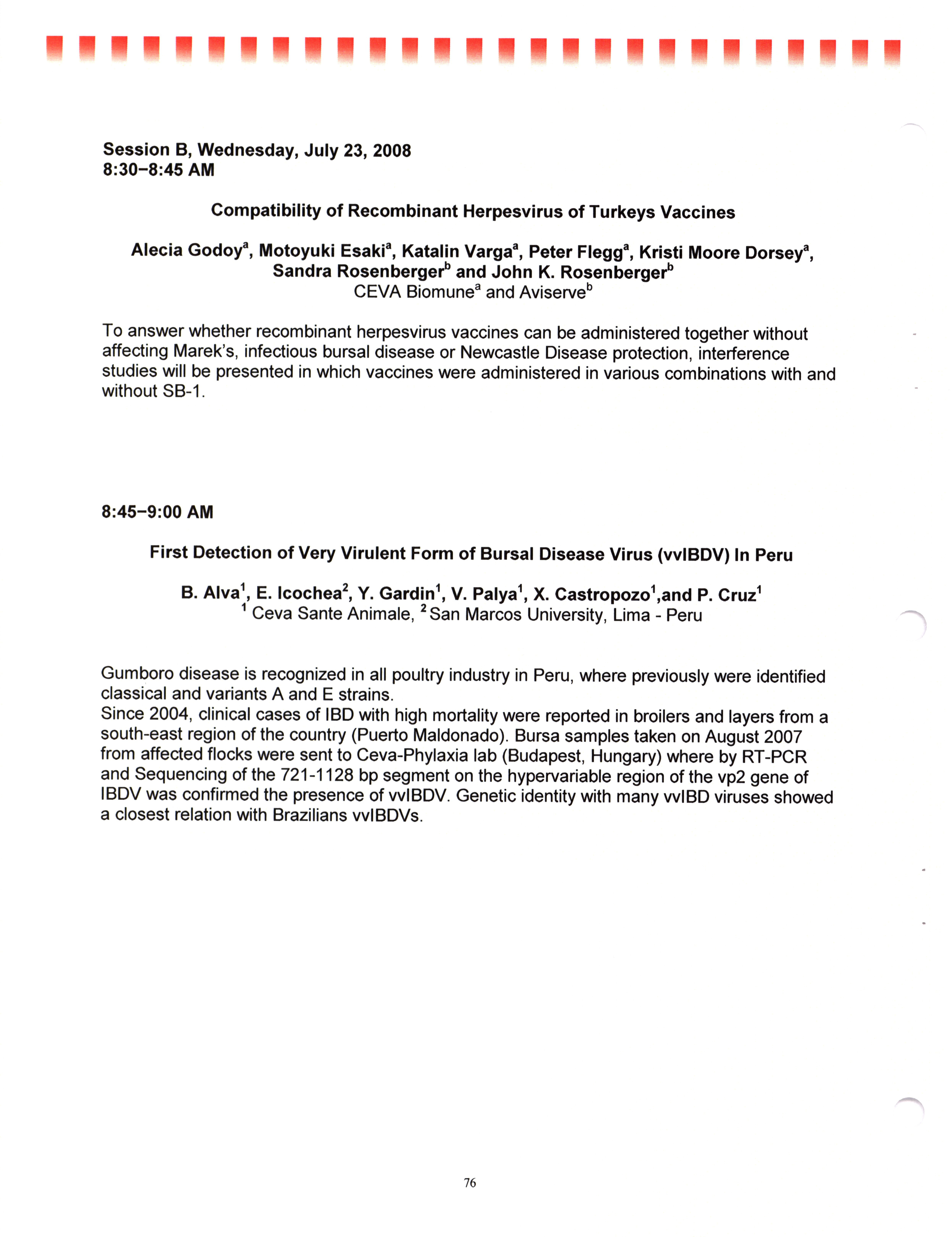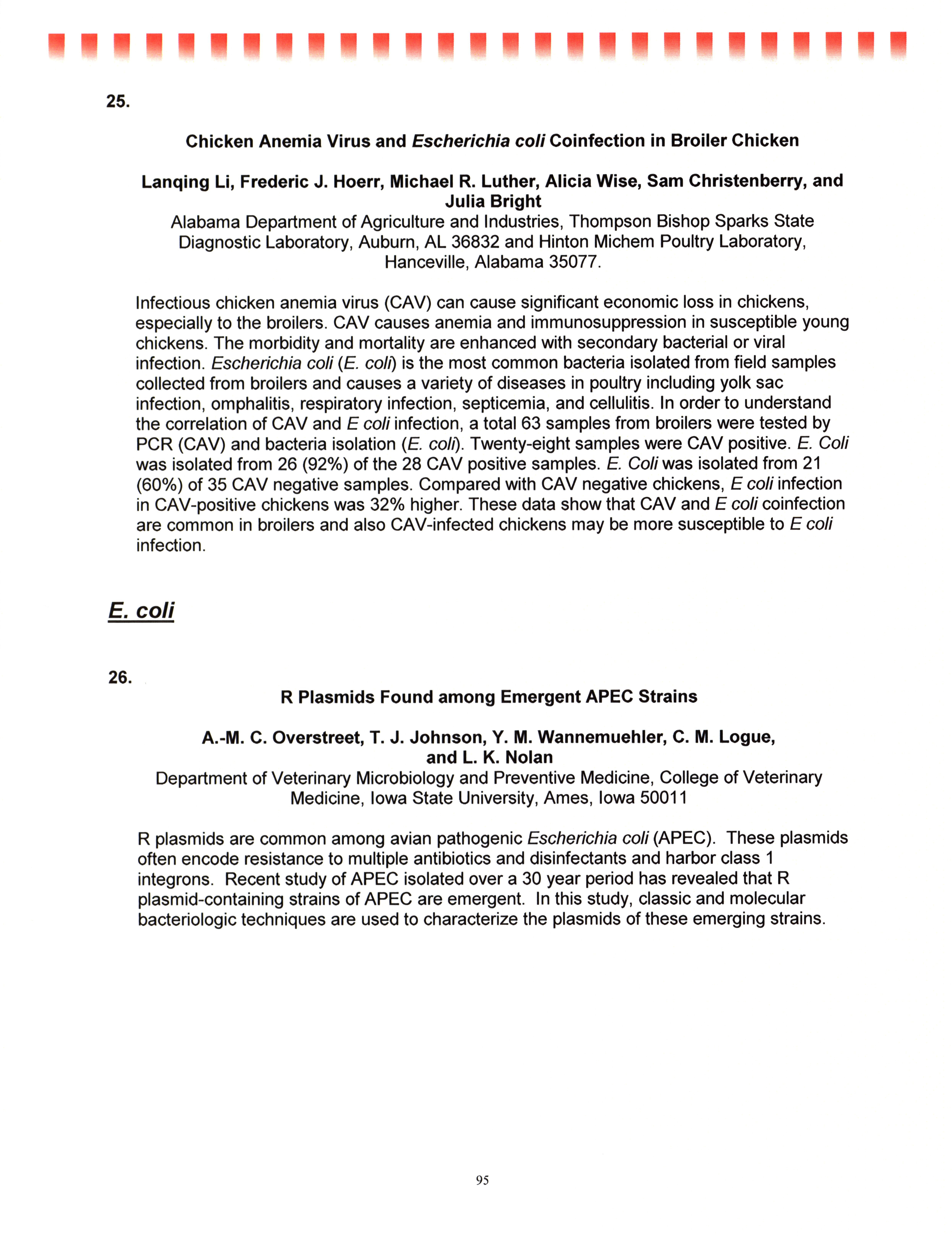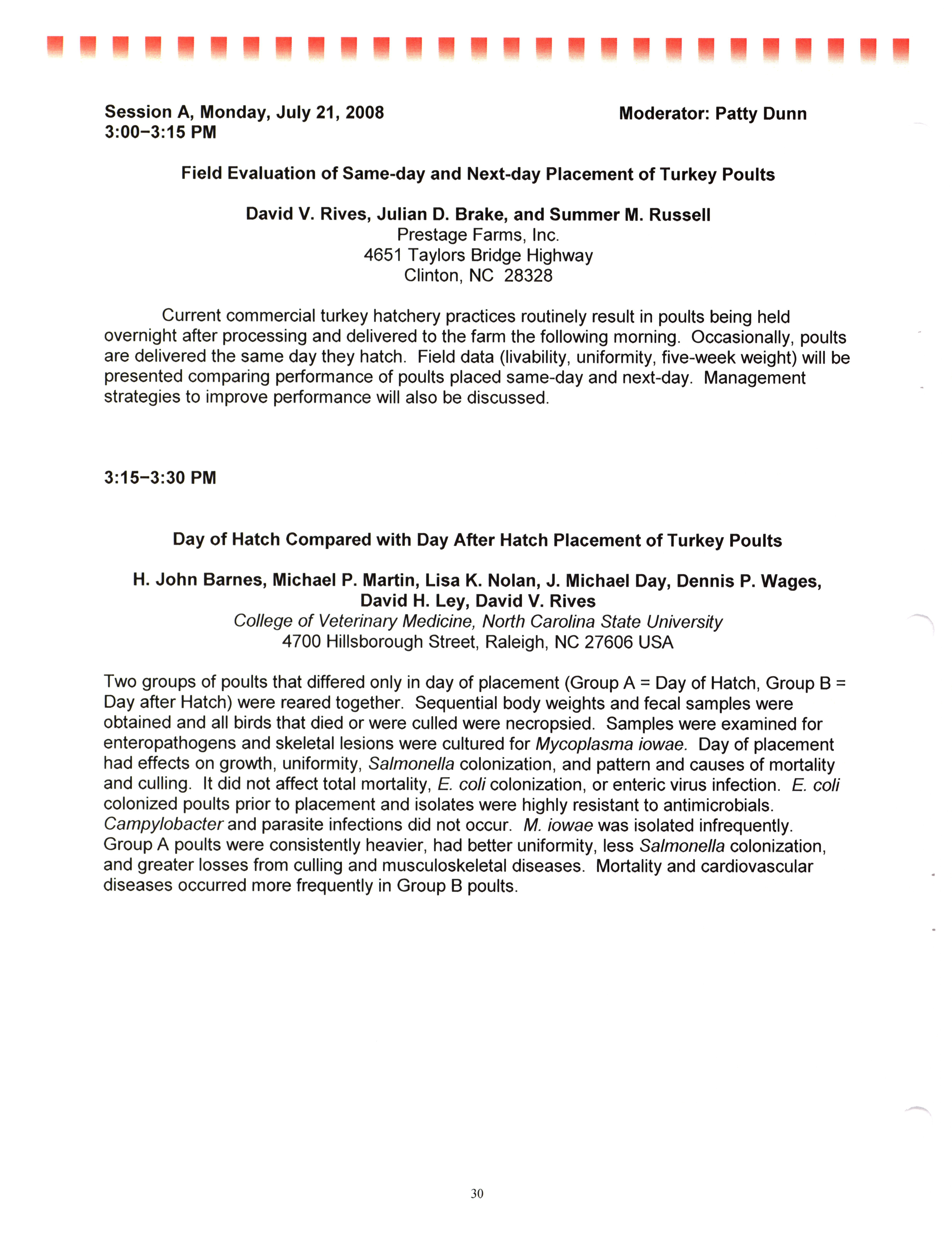 - "AAAP/AVMA scientific program, July 19-23, 2008", American Association of Avian Pathologists Collection, Iowa State University Library Digital Collections