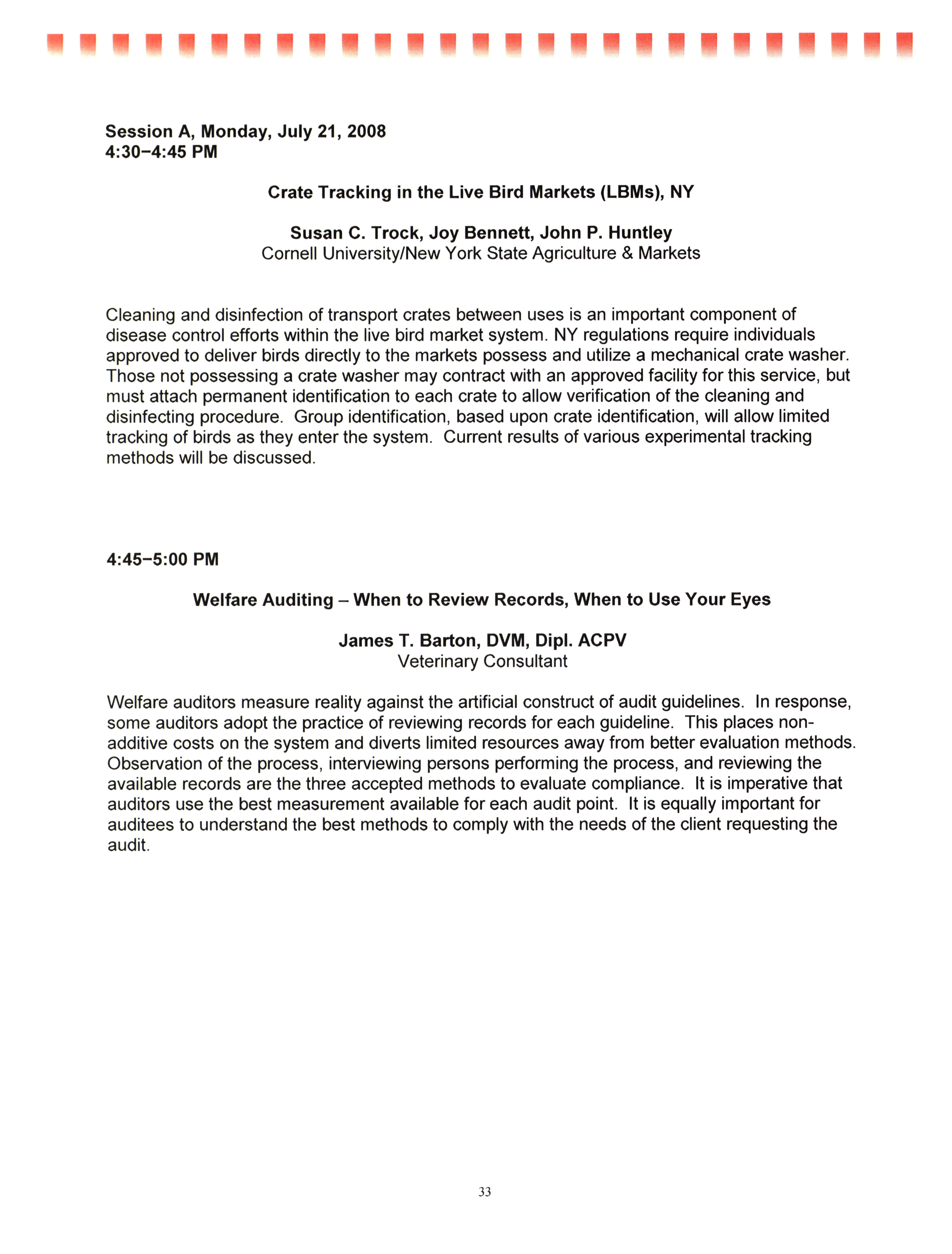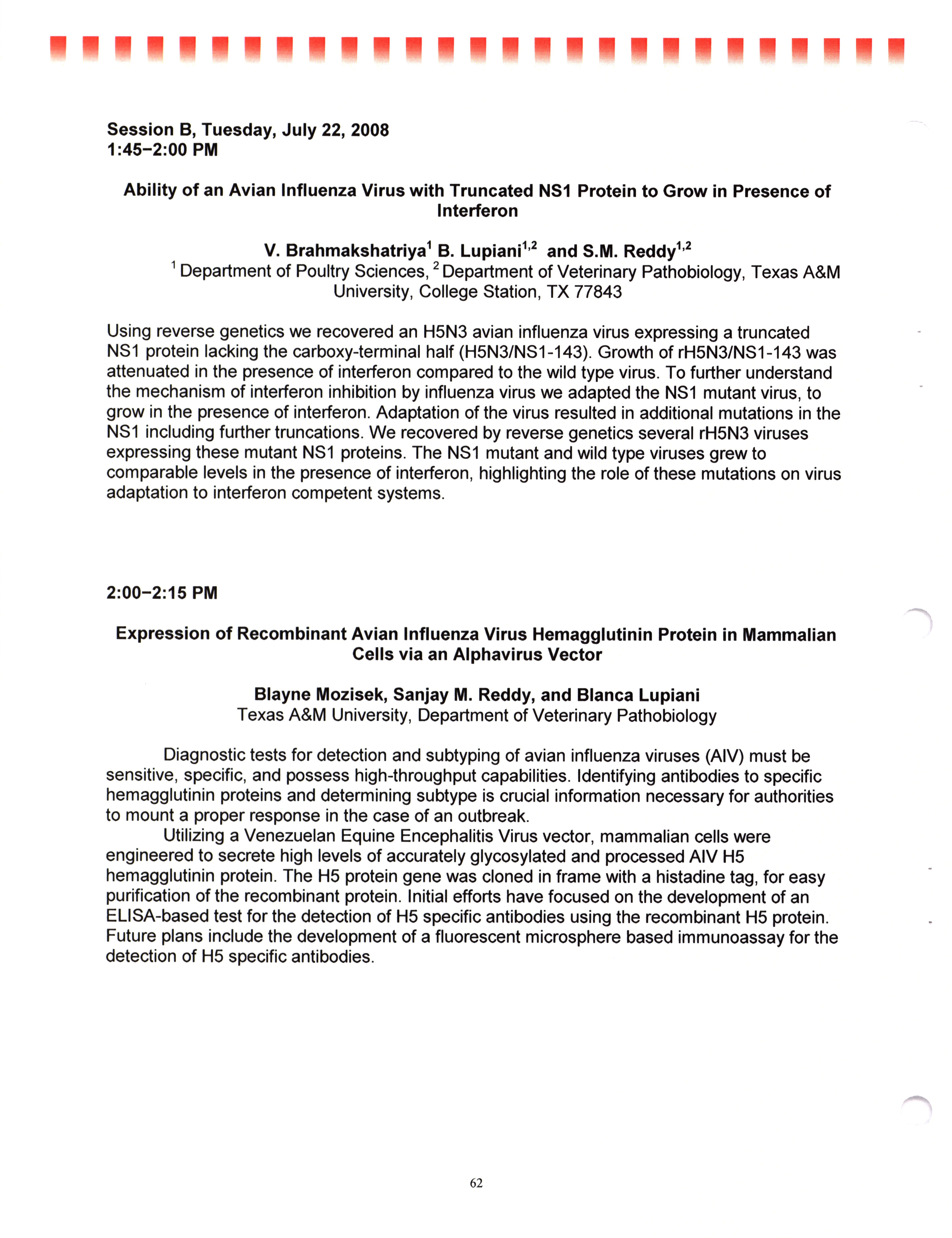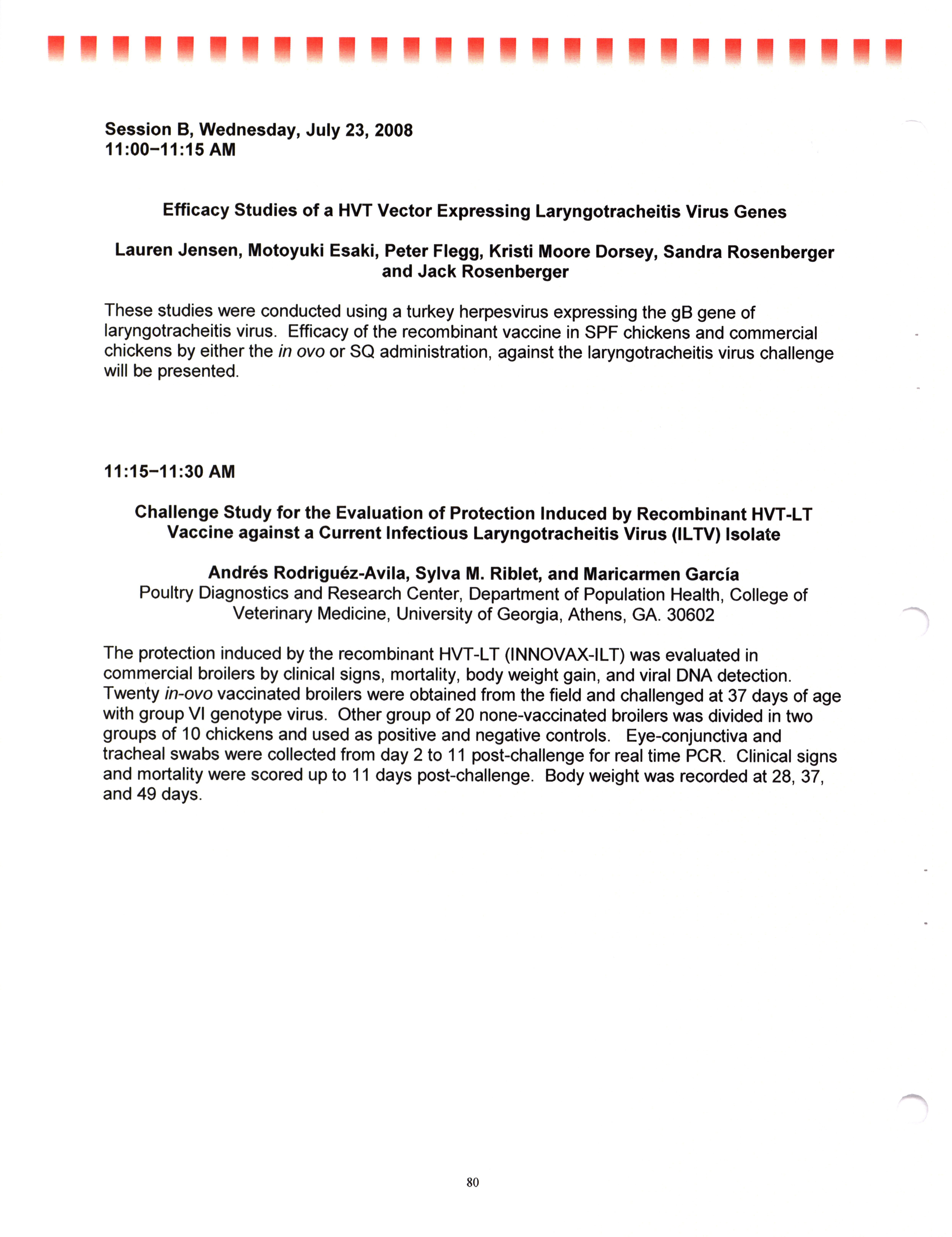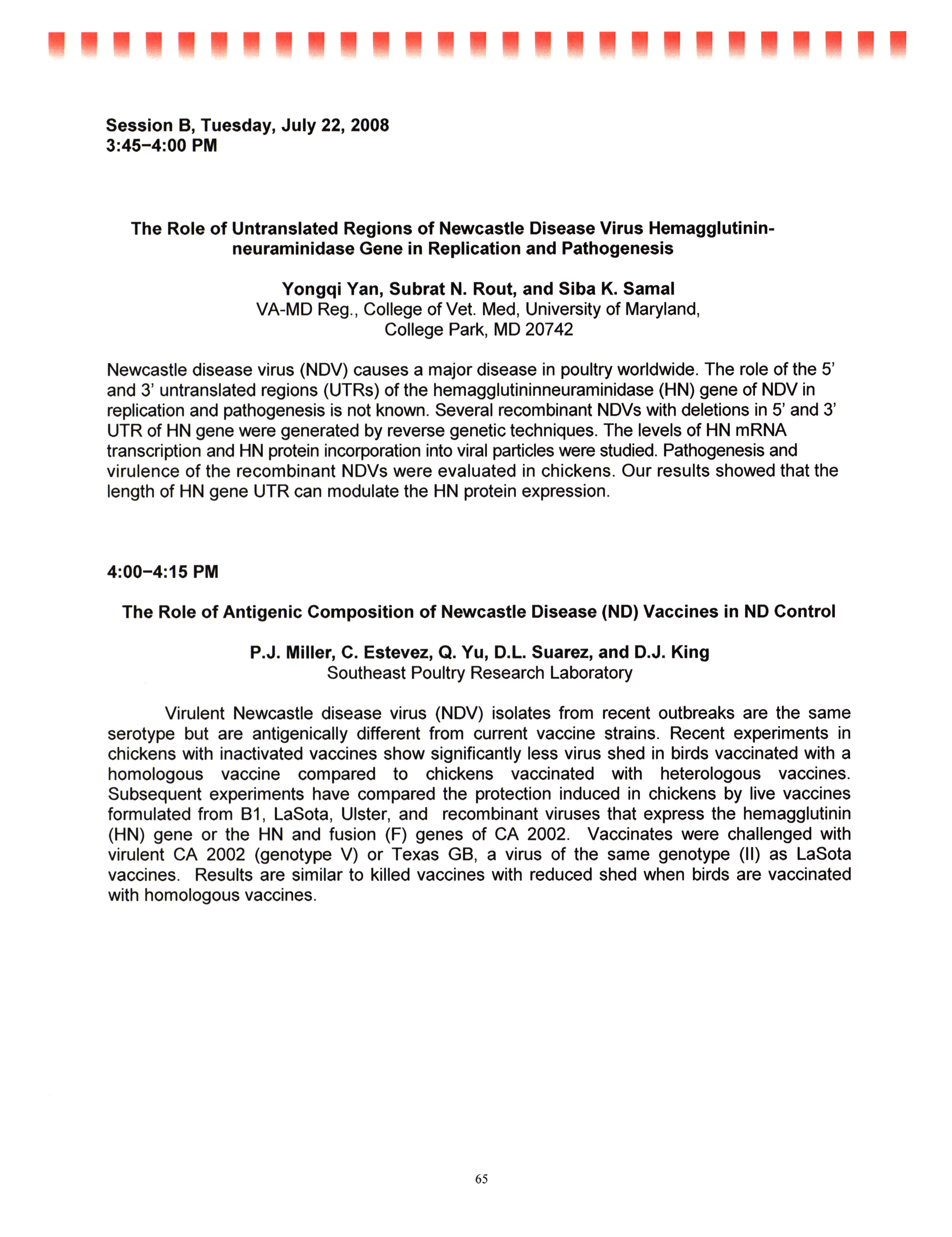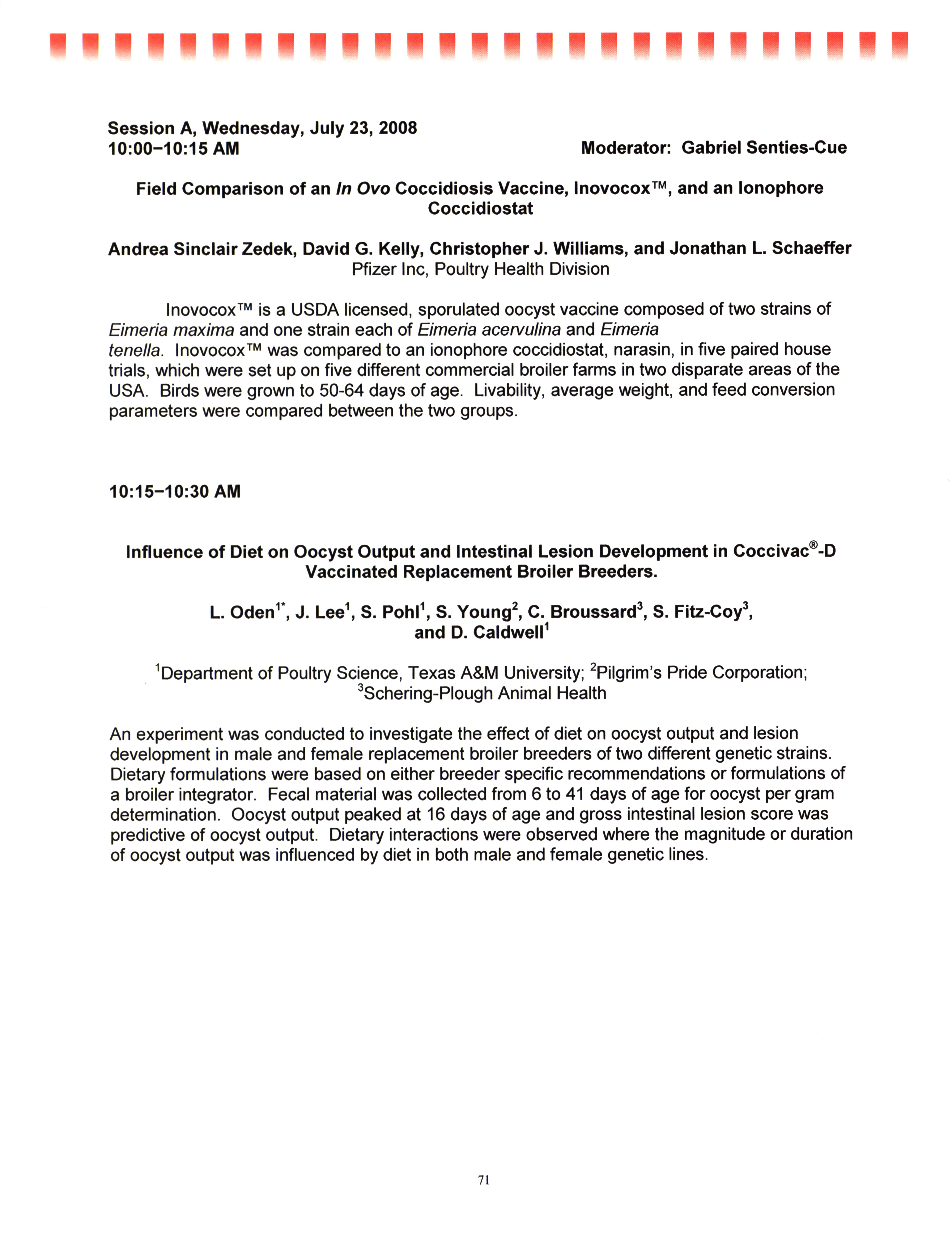 - "AAAP/AVMA scientific program, July 19-23, 2008", American Association of Avian Pathologists Collection, Iowa State University Library Digital Collections
