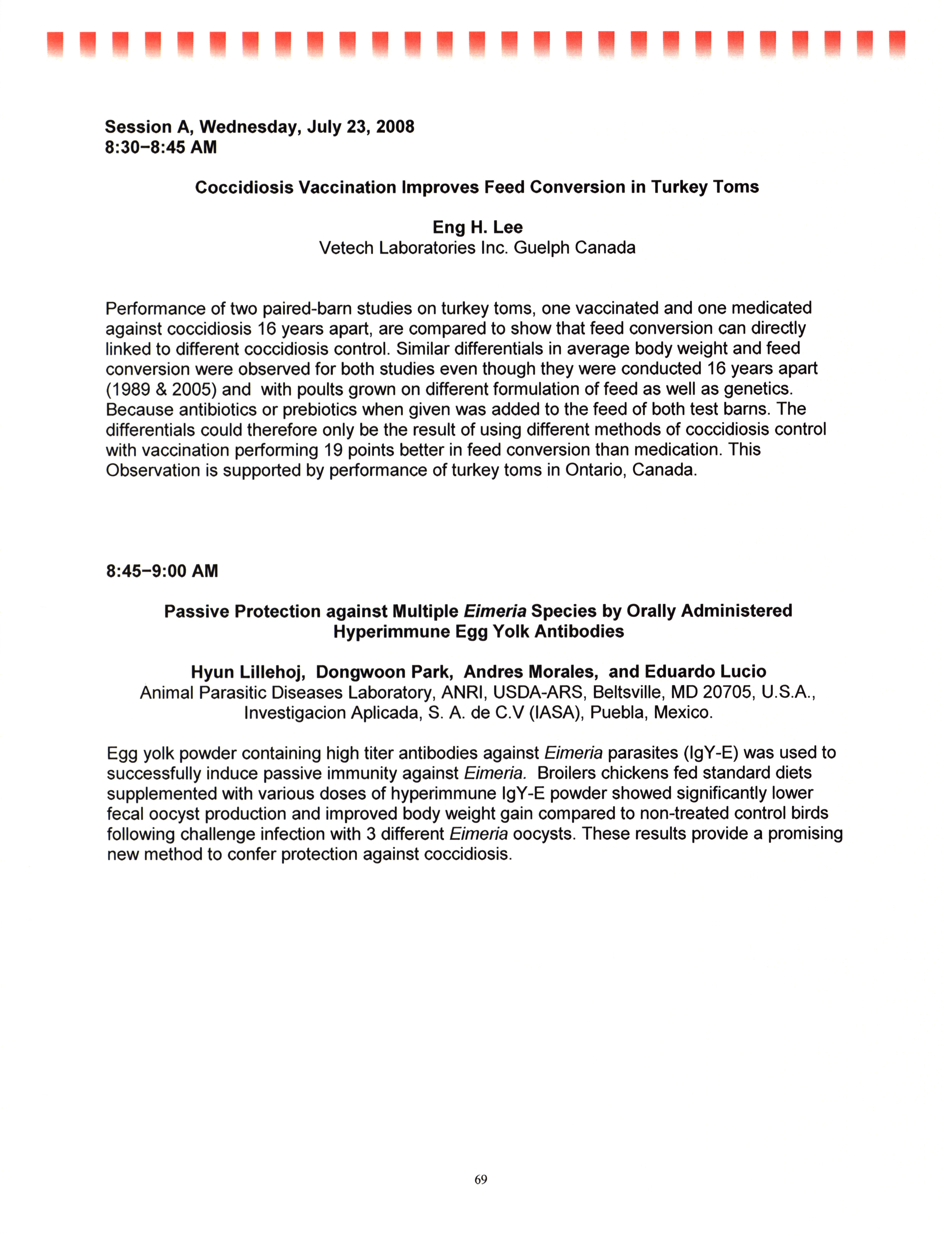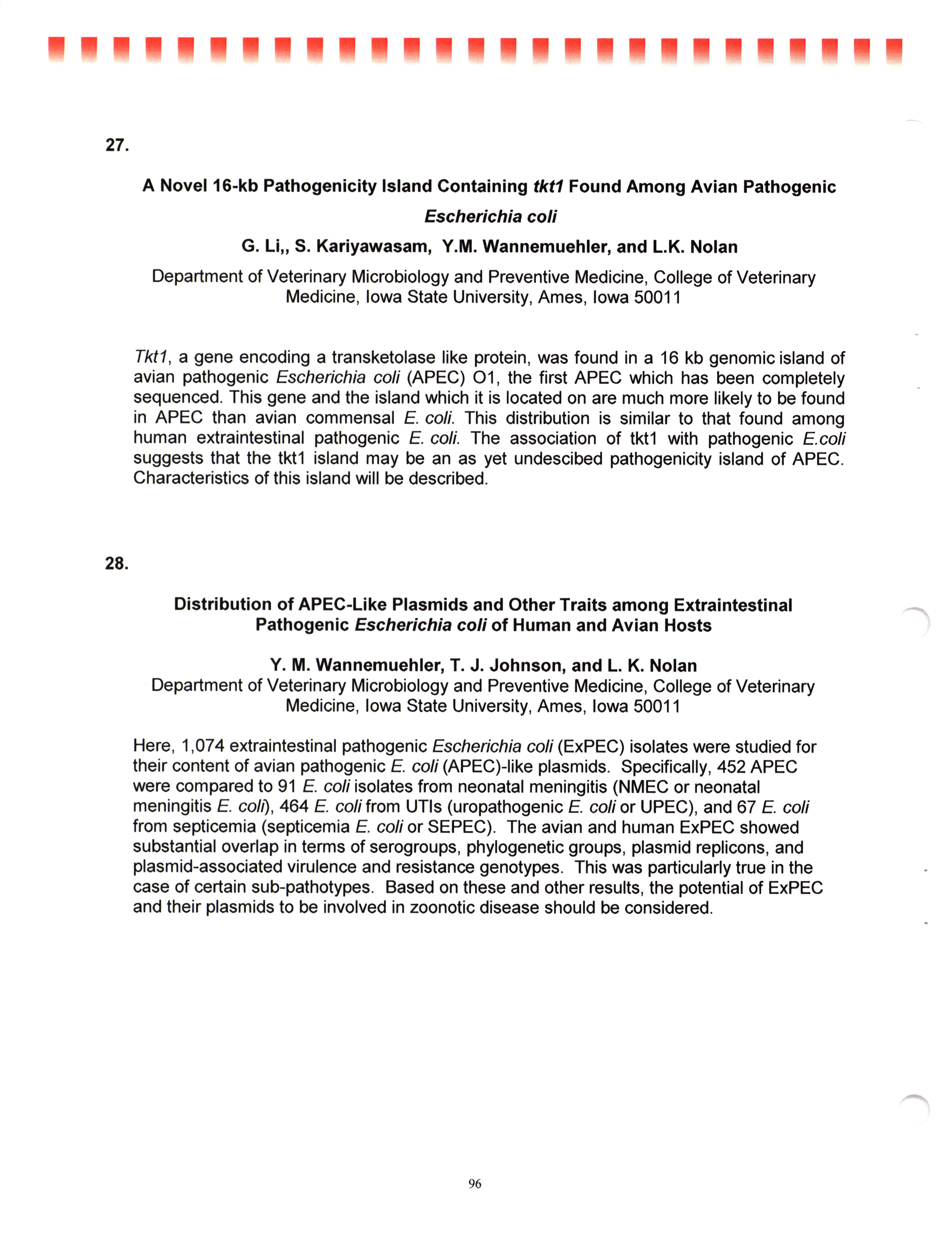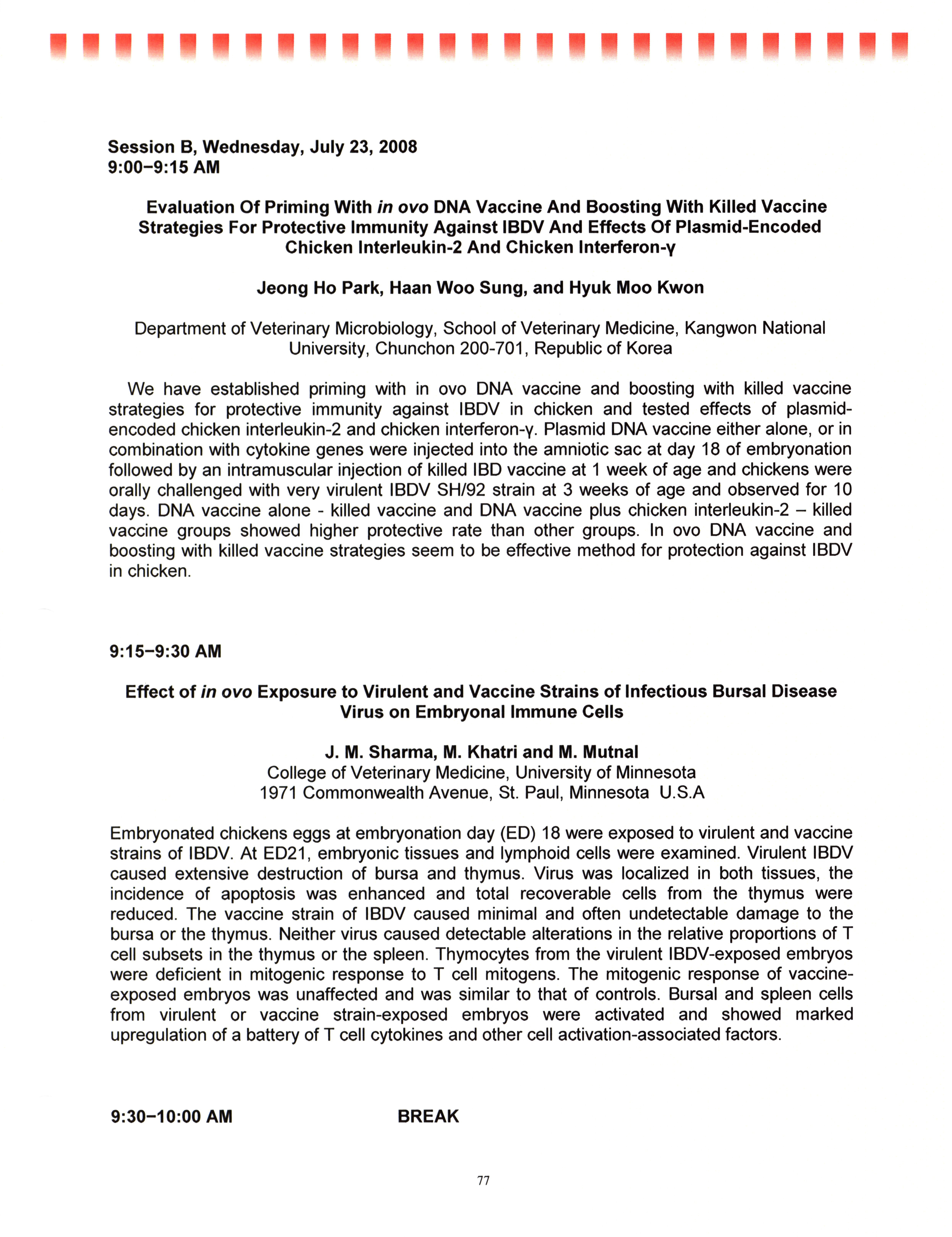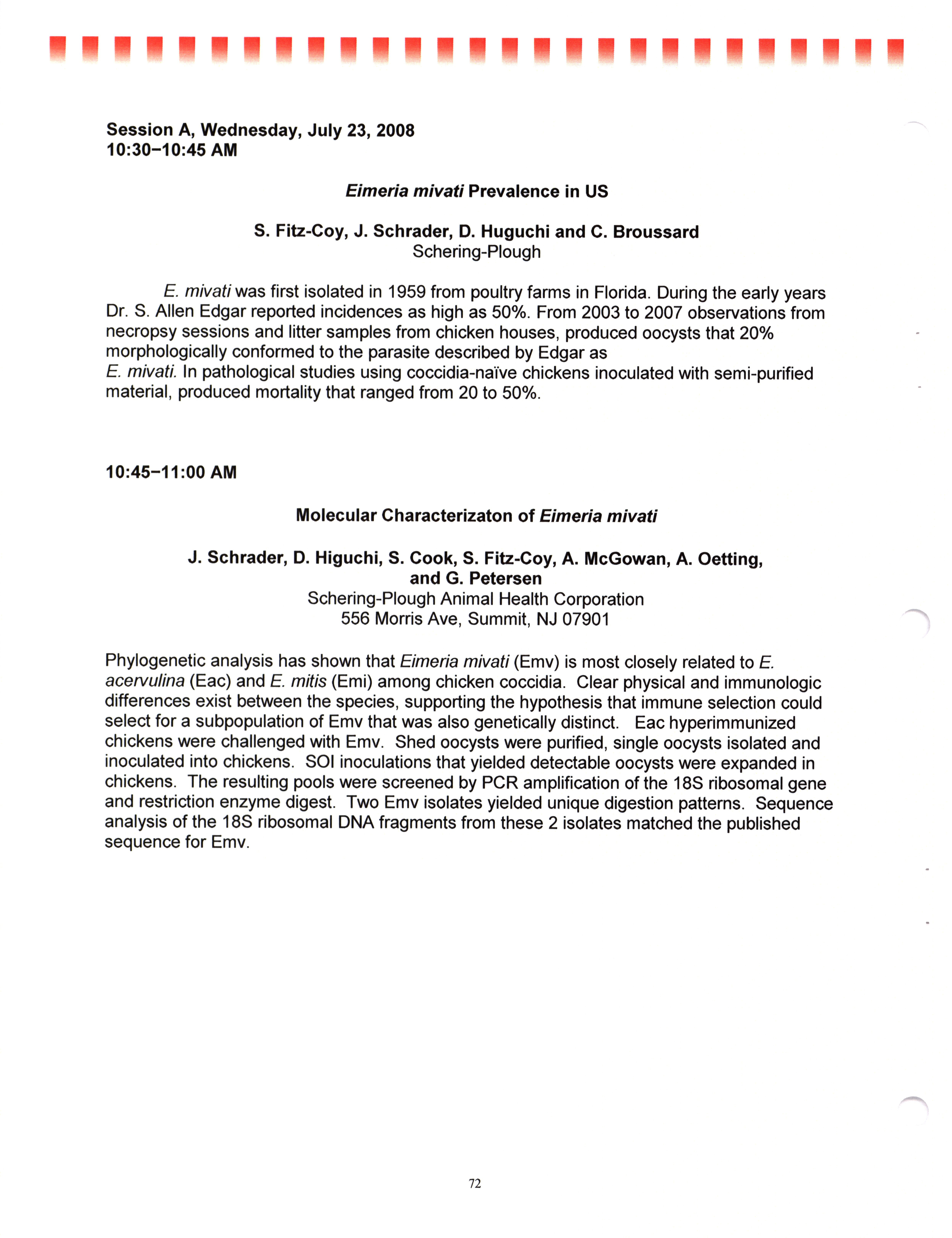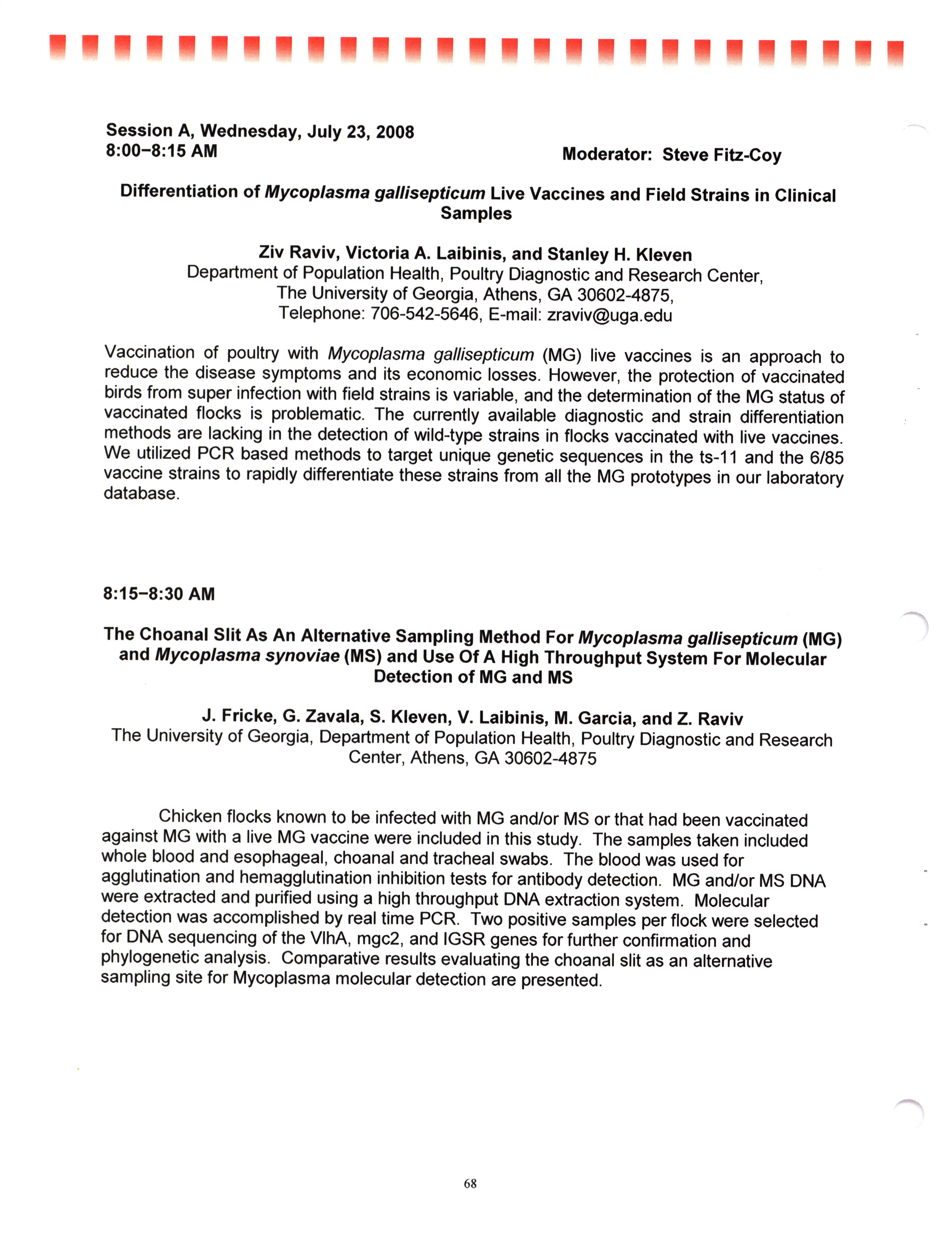 - "AAAP/AVMA scientific program, July 19-23, 2008", American Association of Avian Pathologists Collection, Iowa State University Library Digital Collections