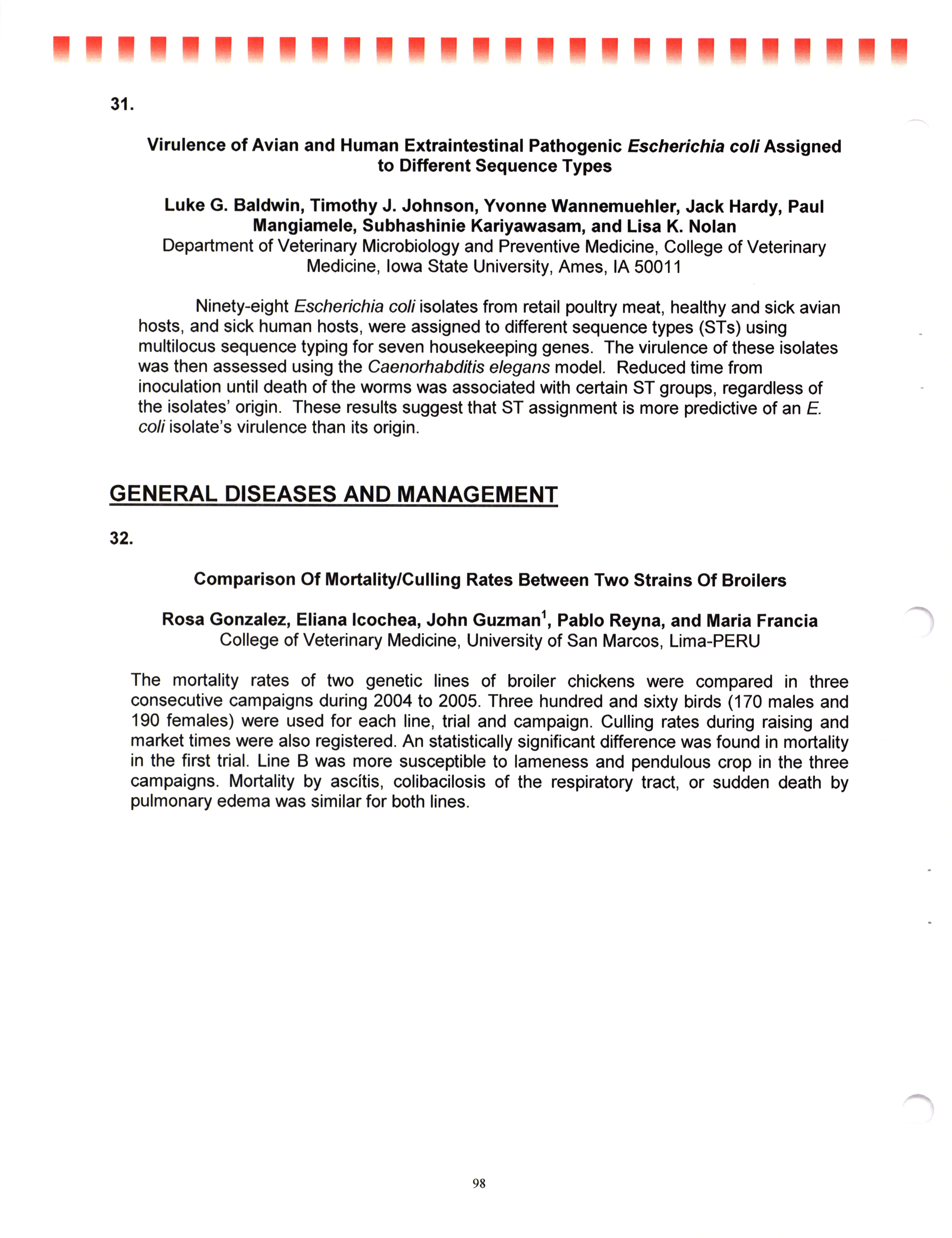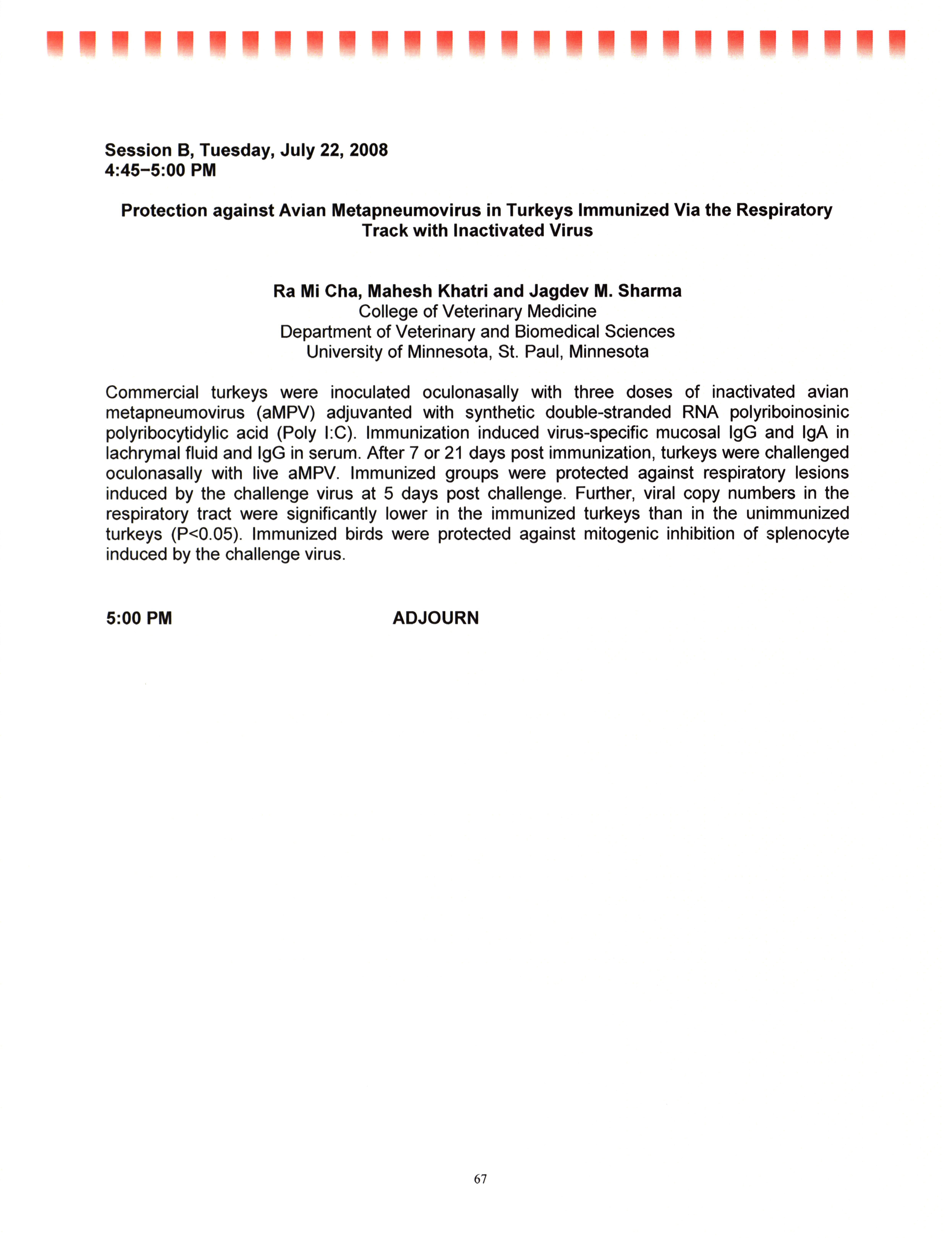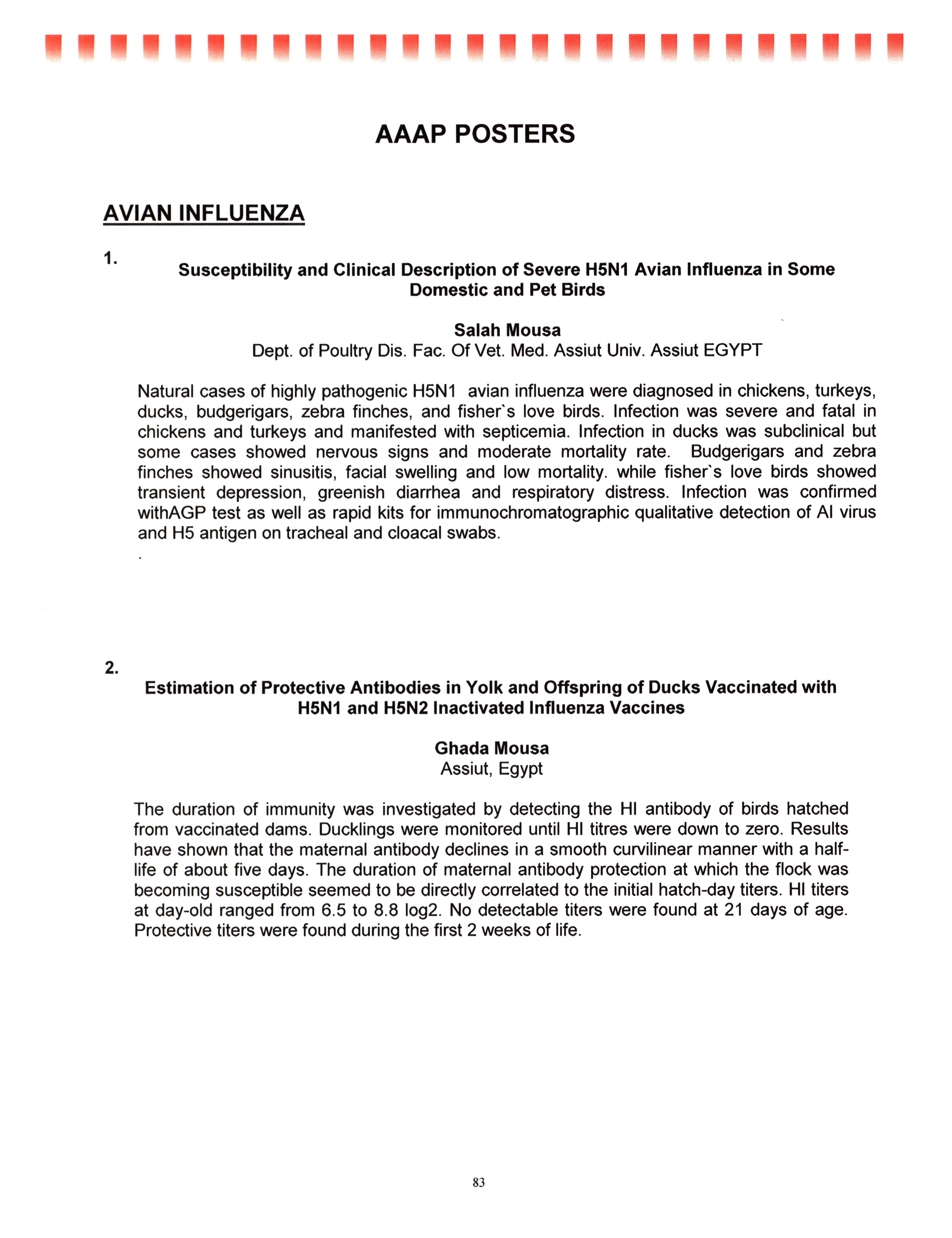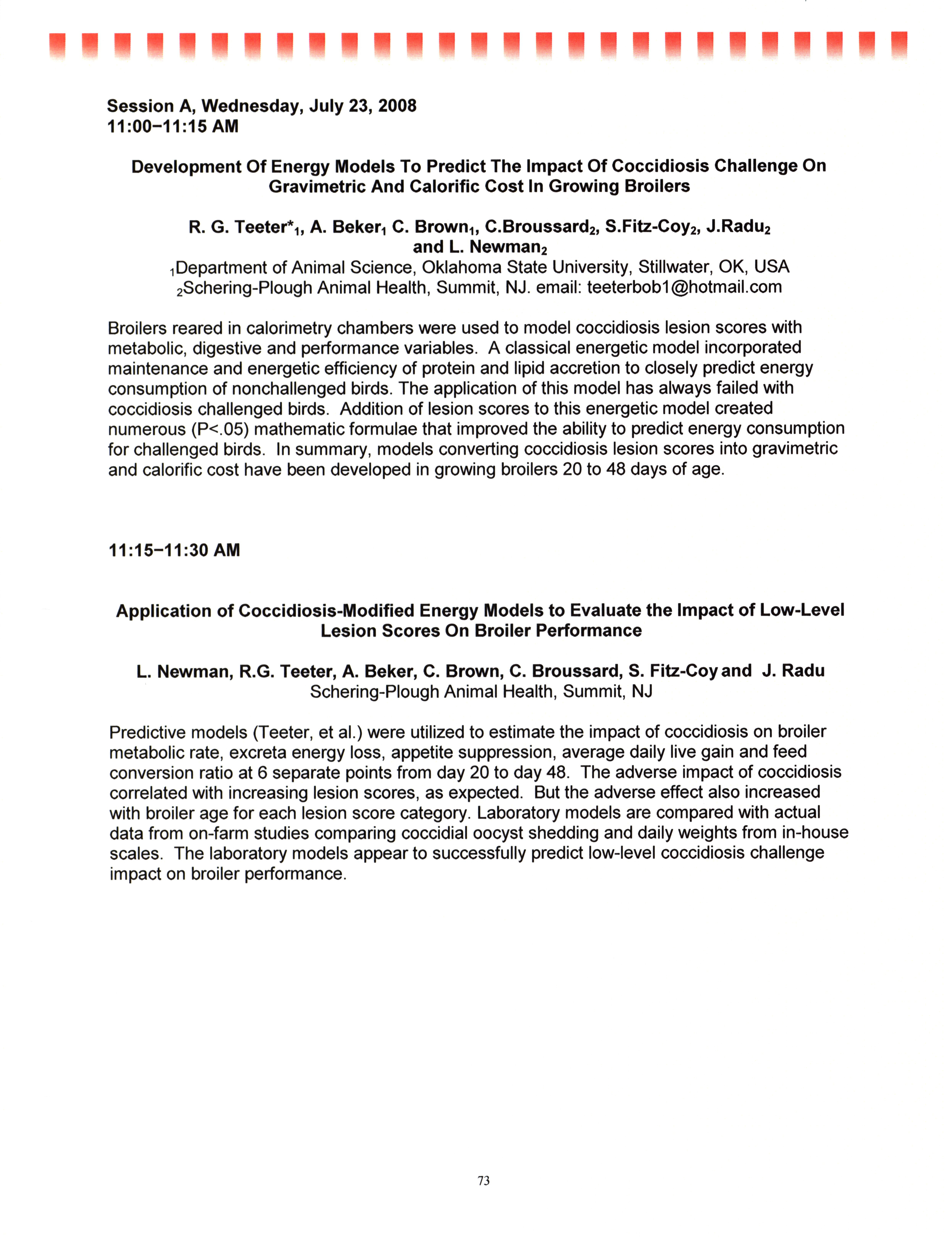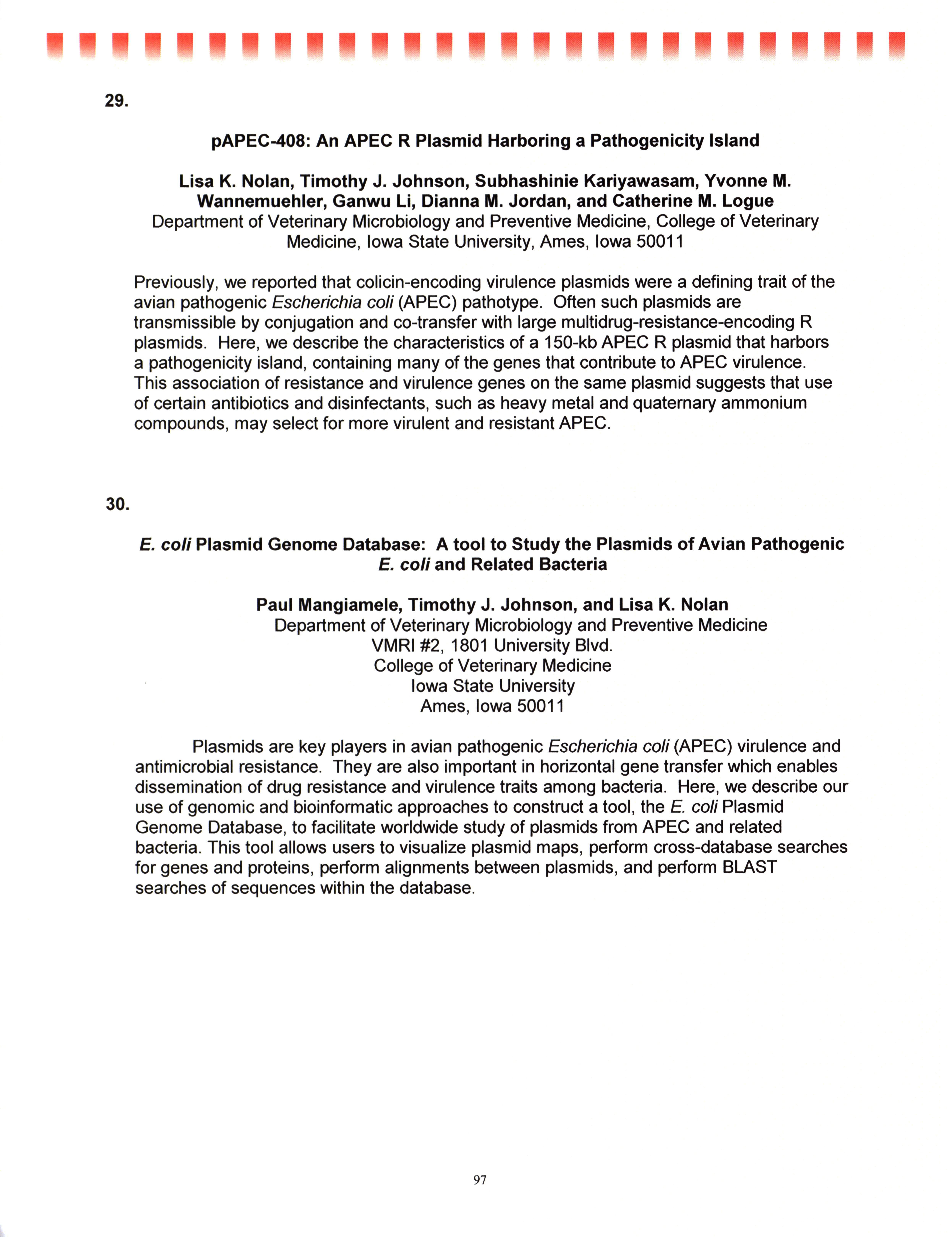 - "AAAP/AVMA scientific program, July 19-23, 2008", American Association of Avian Pathologists Collection, Iowa State University Library Digital Collections