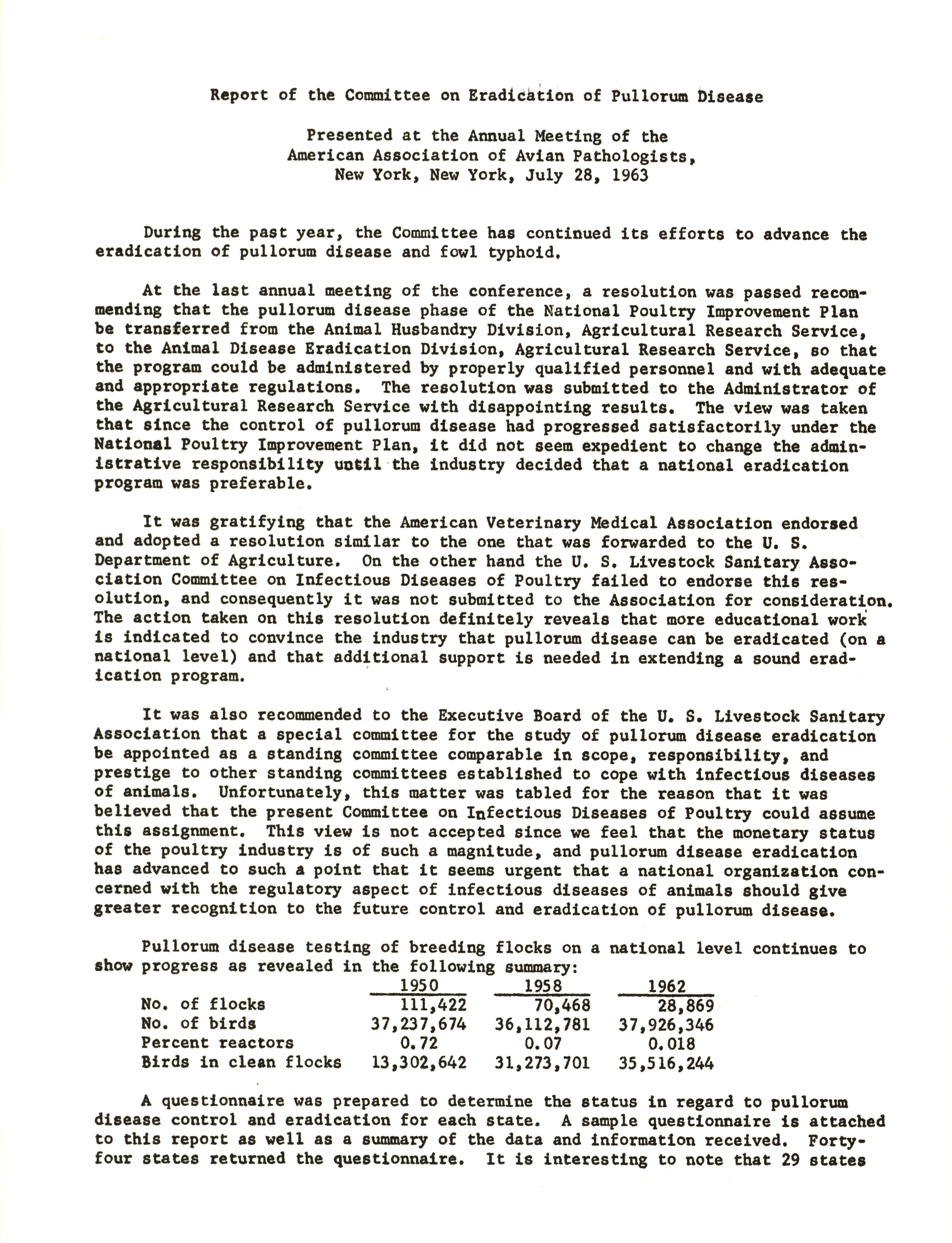 - Report of the committee on eradication of pullorum disease, July 28, 1963