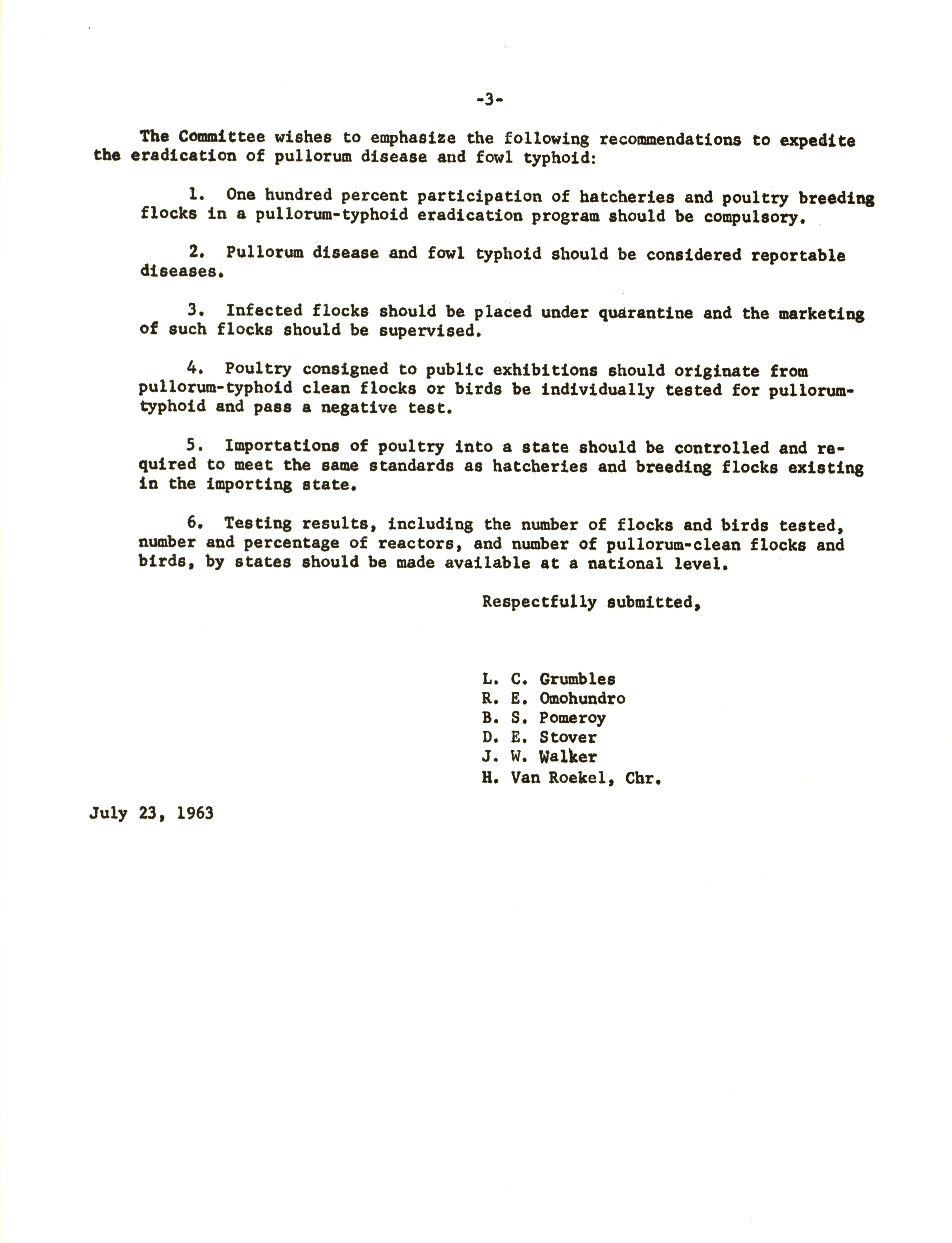 Report of the committee on eradication of pullorum disease, July 28, 1963 Item Info