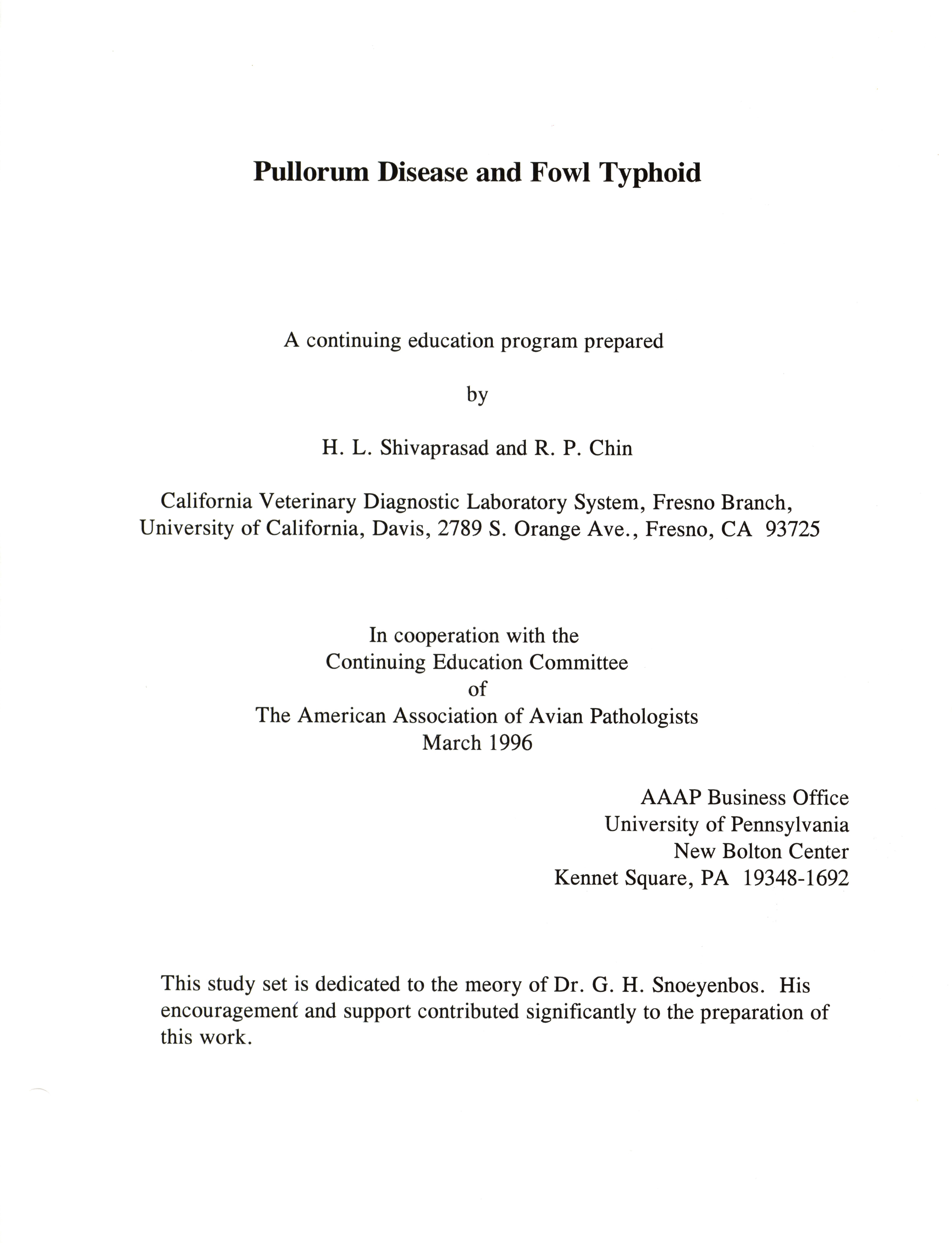 - "Pullorum disease and fowl typhoid", American Association of Avian Pathologists Collection, Iowa State University Library Digital Collections
