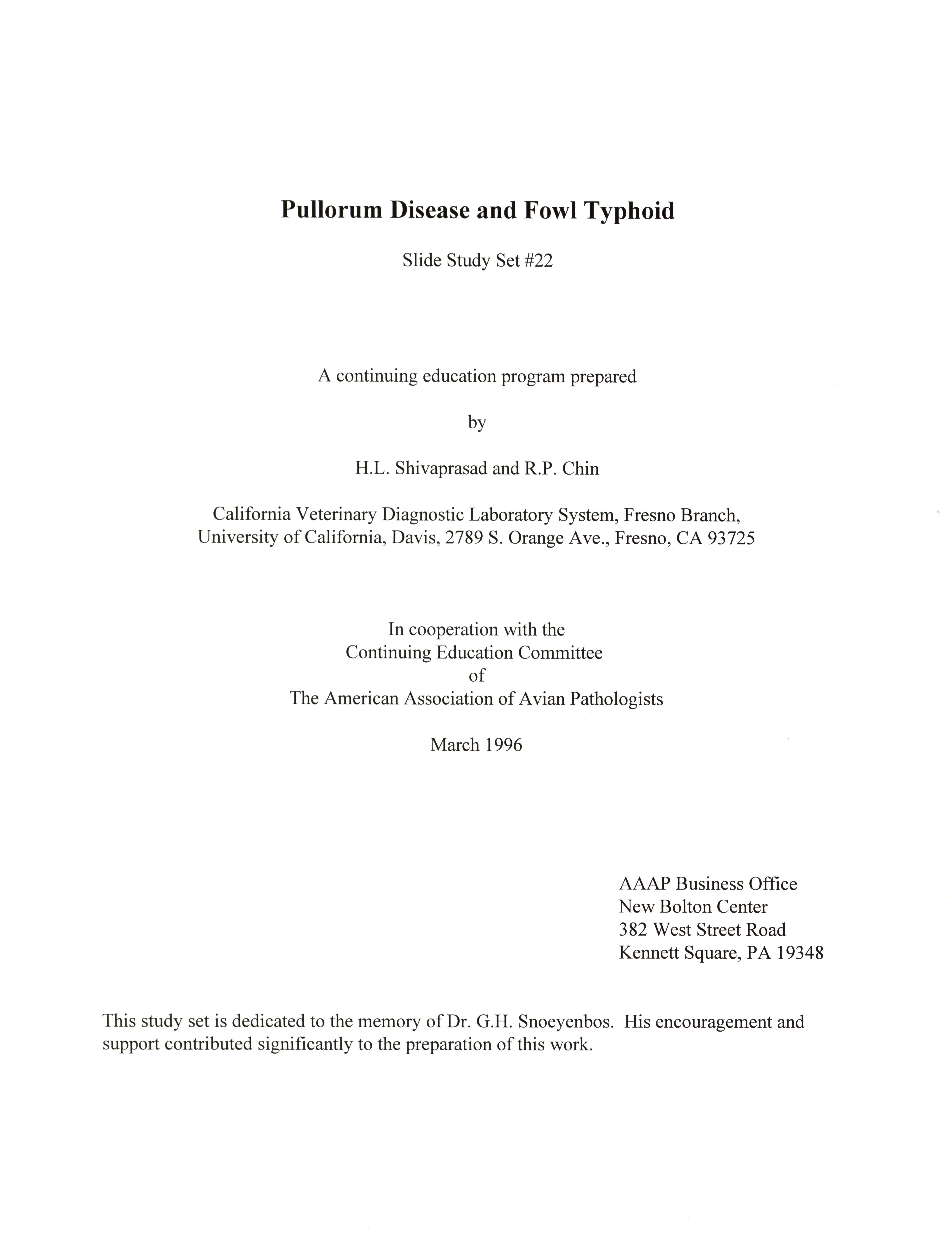 - Slide Study Set #22, Pullorum Disease and Fowl Typhoid (includes 25 color slides), 1996