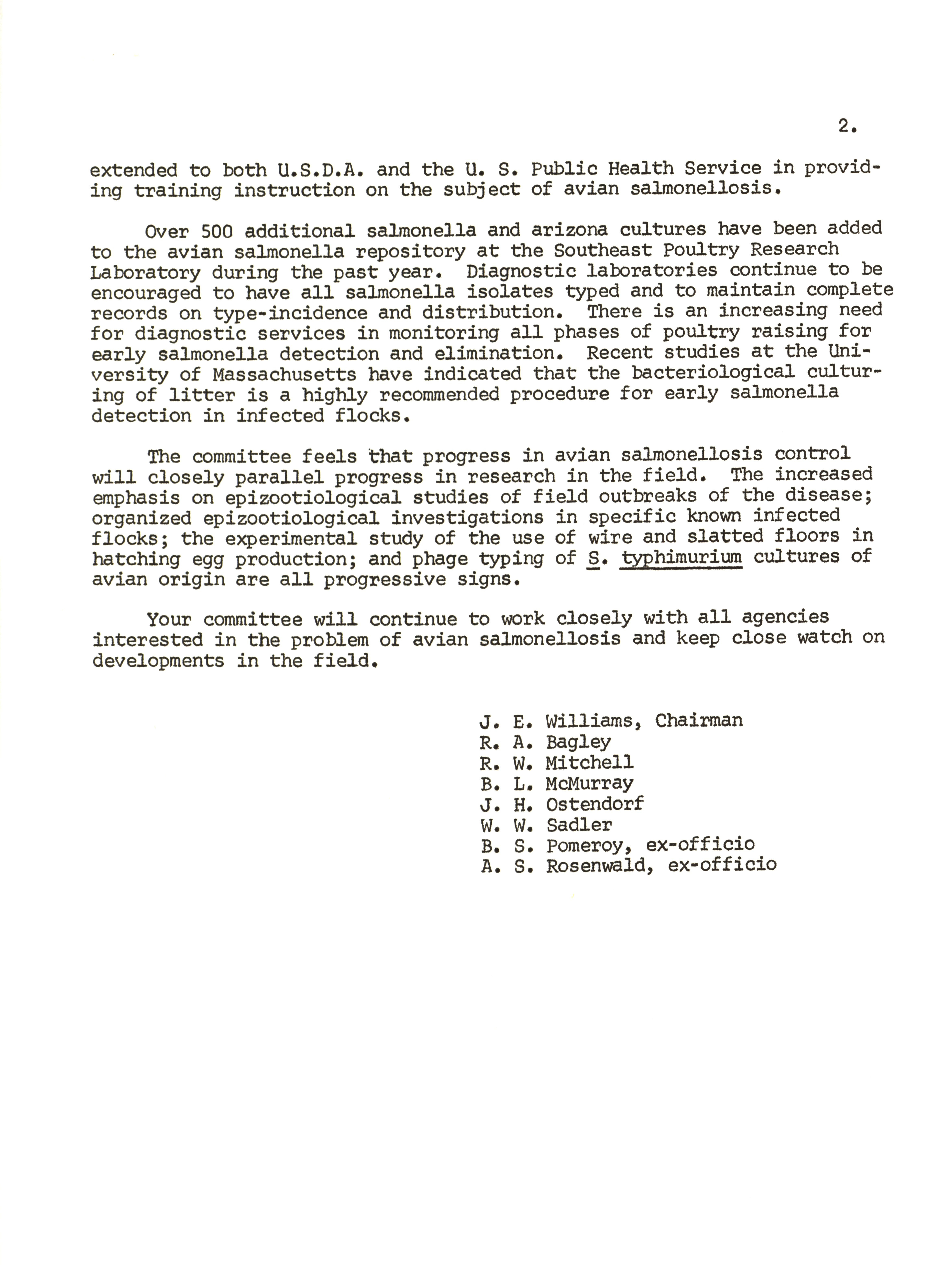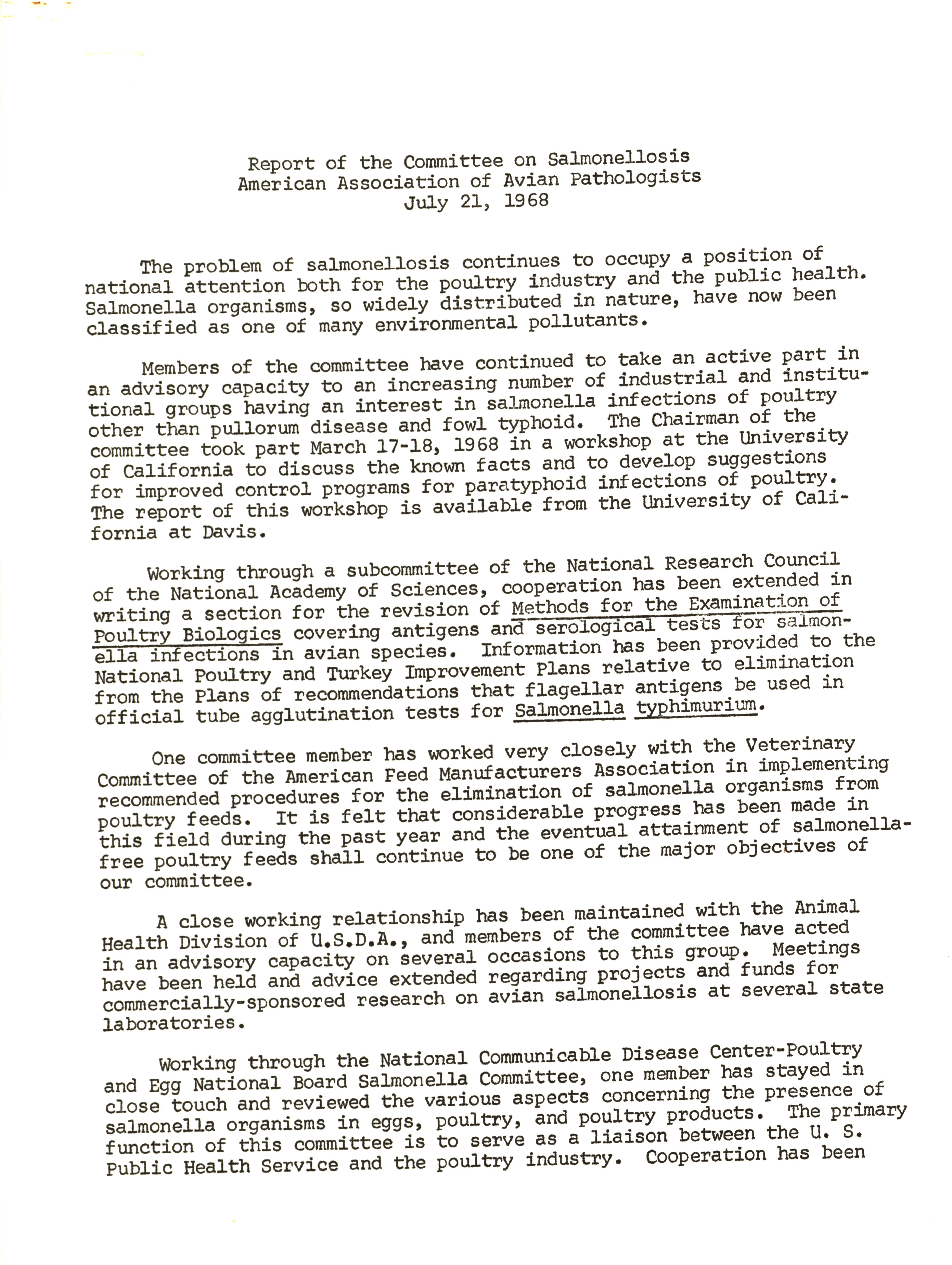 - "AAAP report of the committee on salmonellosis, July 21, 1968", American Association of Avian Pathologists Collection, Iowa State University Library Digital Collections