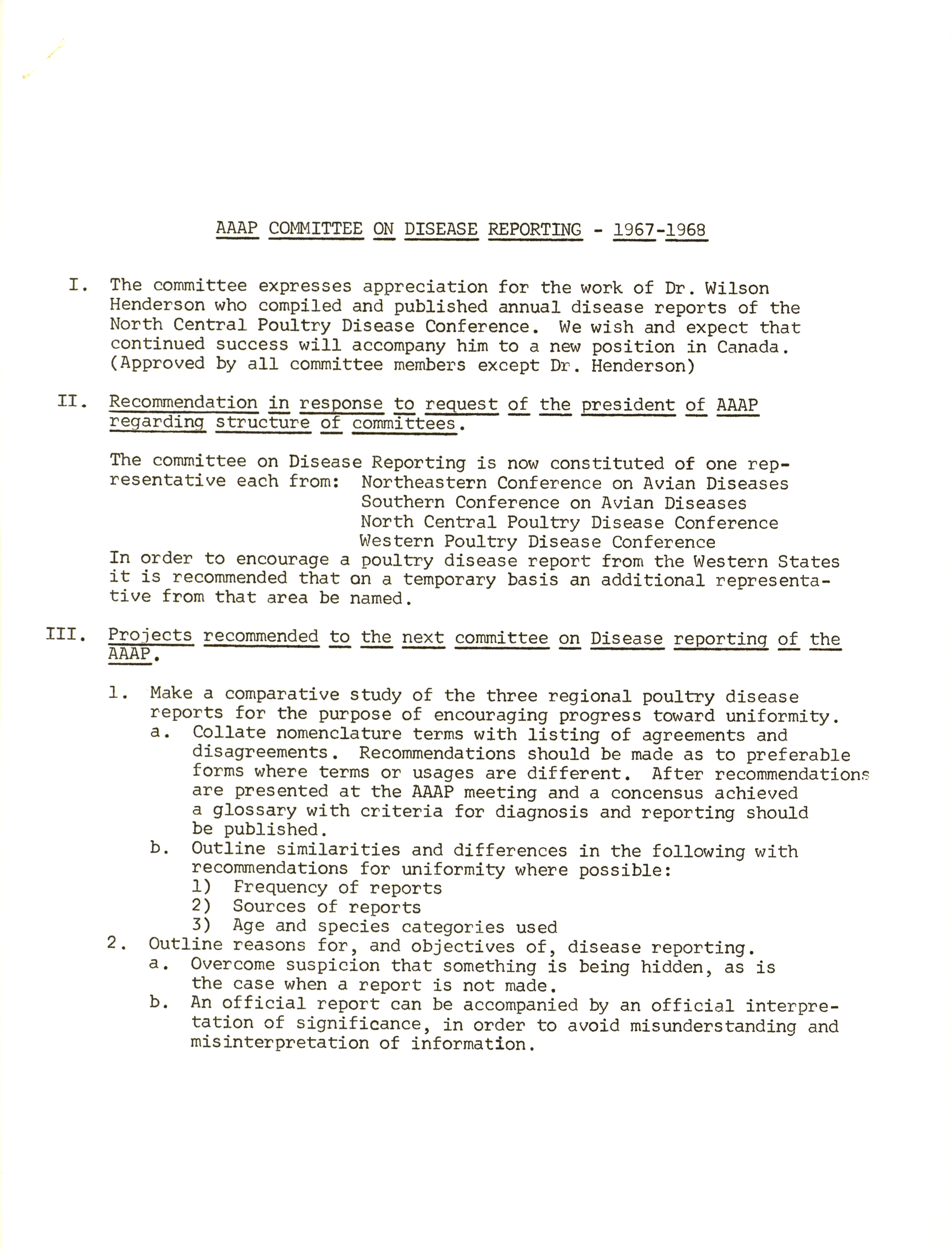 - "AAAP committee on disease reporting: 1967-1968", American Association of Avian Pathologists Collection, Iowa State University Library Digital Collections