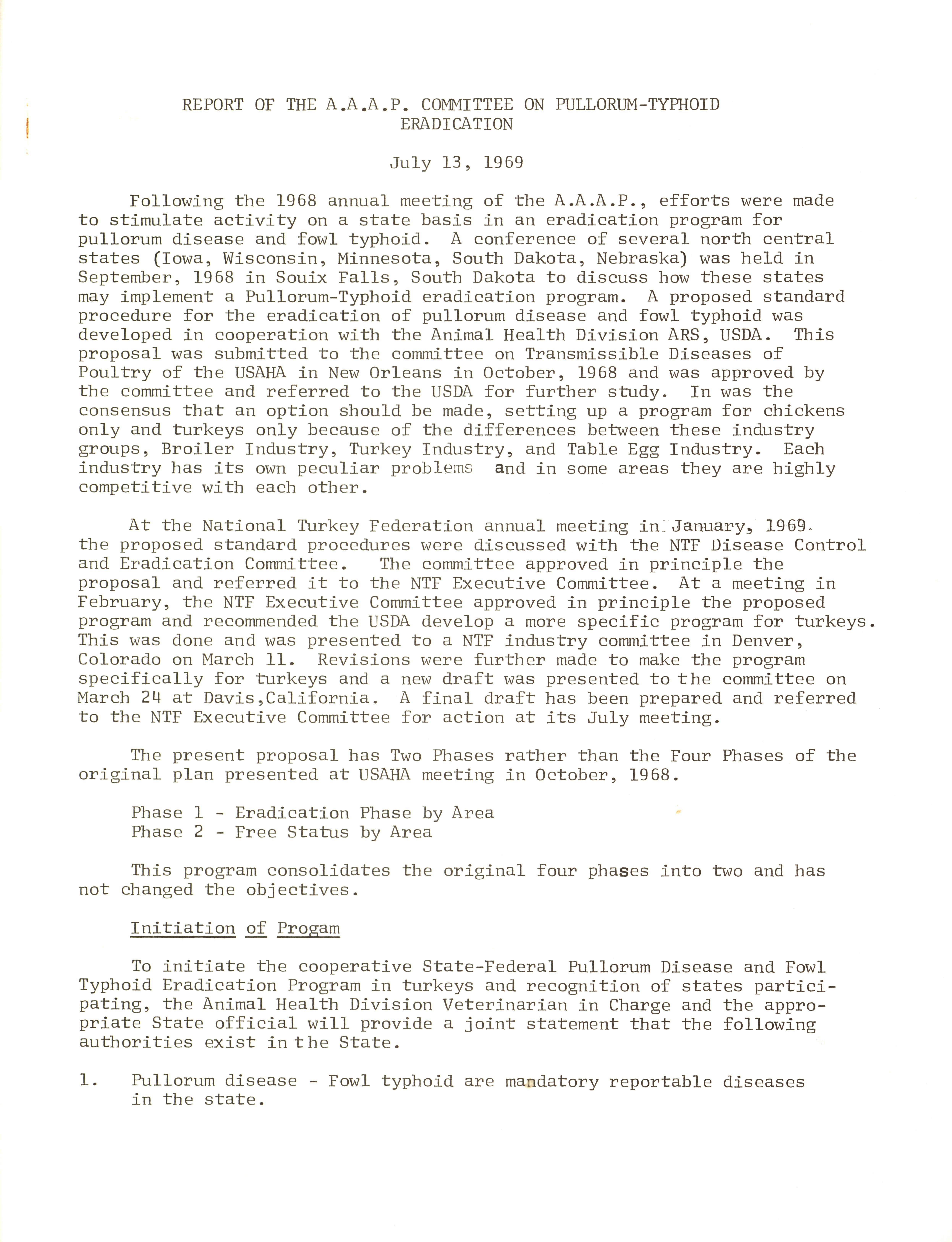 AAAP report of the committee on pullorum-typhoid eradication, July 13, 1969 Item Info