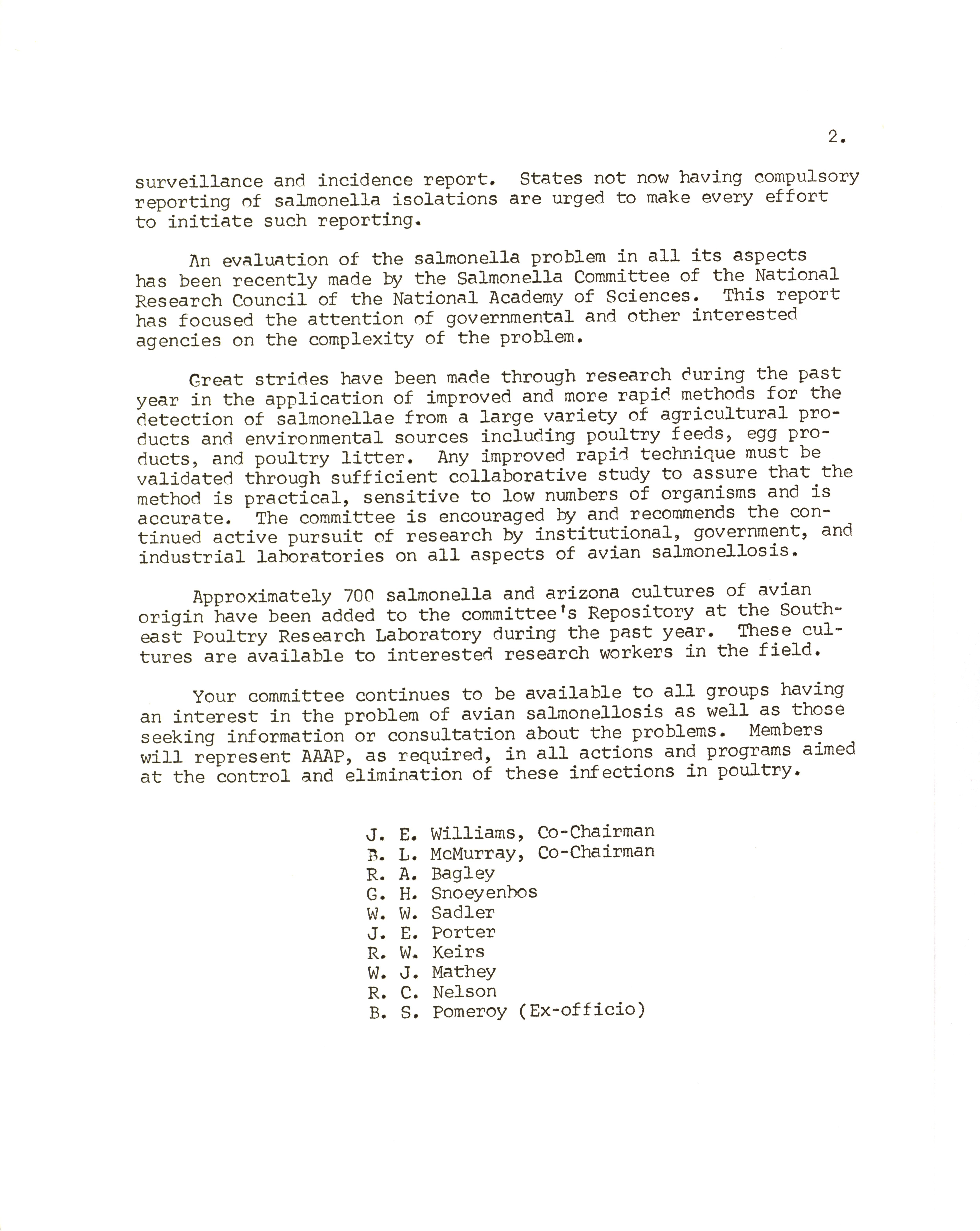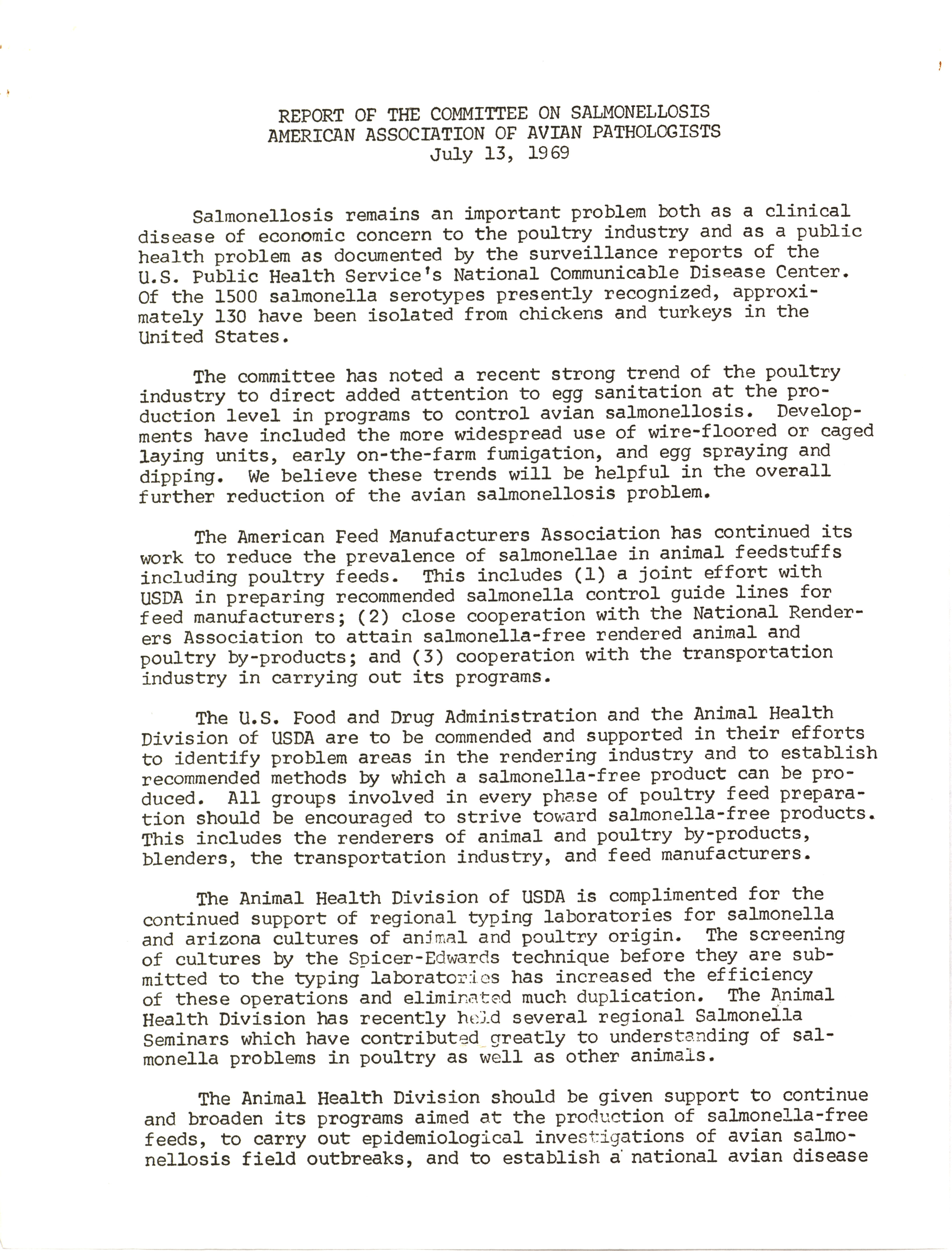 - "AAAP report of the committee on salmonellosis, July 13, 1969", American Association of Avian Pathologists Collection, Iowa State University Library Digital Collections